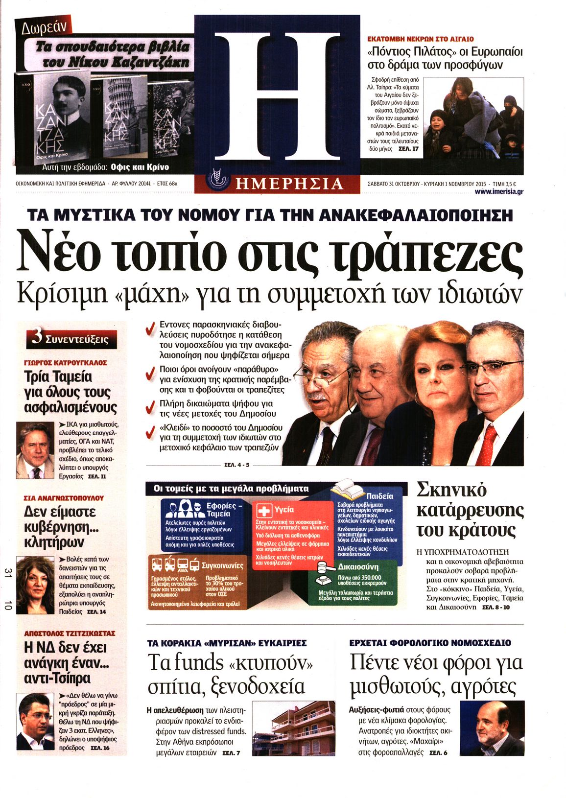 Οι οικονομικές εφημερίδες 31/10/2015 Enikos Newsroom 06:26, Σάββατο 31 Οκτωβρίου 2015 Media Διαβάστε τα σημερινά πρωτοσέλιδα των οικονομικών εφημερίδων: ΟΙΚΟΝΟΜΙΚΕΣ ΕΦΗΜΕΡΙΔΕΣ ΠΡΩΤΟΣΕΛΙΔΑ Μοιράσου το: σχολίασε κι εσύ (0 σχόλια) Ακολουθήστε το enikos.gr στο Google News και μάθετε πρώτοι όλες τις ειδήσεις Δείτε όλες τις τελευταίες ειδήσεις από την Ελλάδα και τον Κόσμο στο enikos.gr Ειδήσεις Ροή Ειδήσεων 4 ώρες πριν Αγρότες: «Όχι στον διάλογο, μας εμπαίζει η κυβέρνηση» – Αποφάσισαν κλιμάκωση των κινητοποιήσεων, τι θα γίνει τα Χριστούγεννα 4 ώρες πριν Την πρώτη Belharra παρέλαβε η χώρα μας, υψώθηκε η ελληνική σημαία στη φρεγάτα «Κίμων» – Δένδιας: «Το ισχυρότερο Πολεμικό Ναυτικό που είχε ποτέ ο ελληνισμός» 2 ώρες πριν Γιώργος Μαζωνάκης: «Έχει υποστεί ένα σωρό εκβιαστικές πρακτικές – Του είπαν ότι θα του βάλουν τον συγκεκριμένο άνθρωπο να τον καταγγείλει» 3 ώρες πριν Μιχάλης Χουρδάκης: «Είμαι διαθέσιμος να συμβάλω στην προσωρινή κάλυψη του ιατρείου της Ψερίμου» – Η επιστολή στον Άδωνι Γεωργιάδη 4 ώρες πριν Εξώδικο Γεωργιάδη στην Κωνσταντοπούλου – «Με κατηγόρησε ότι έχω καταδικαστεί για παιδεραστία» 2 ώρες πριν Γάμος: 11 ψυχρές αλλά ευγενικές φράσεις, που λέει ένας άνδρας όταν σκέφτεται τον χωρισμό 5 ώρες πριν Τα 5 ζώδια που θα ευνοηθούν στα οικονομικά τους το 2026 – «Τραβούν το χρήμα σαν μαγνήτες» 6 ώρες πριν Αυτό που κρύβεται κάτω από τη Γροιλανδία θα μπορούσε να ανατρέψει όσα γνωρίζουμε για την άνοδο της στάθμης των θαλασσών 1 ημέρα πριν 20 χρόνια τα Χριστούγεννα ξεκινούν στα Public με μεγάλη ποικιλία σε δώρα! 8 λεπτά πριν Φάμελλος: Η κινητοποίηση των αγροτών είναι για το συμφέρον όλων των κοινωνικών ομάδων – Πρέπει να φύγετε το συντομότερο 12 λεπτά πριν Primeira Liga: 8ος πιο ακριβός παίκτης στην Πορτογαλία ο Παυλίδης με αξία 35 εκατ. ευρώ – 27ος ο Ιωαννίδης, 45ος ο Βαγιαννίδης 17 λεπτά πριν Λένα Μαντά: «Με τον πατέρα μου δεν έχω ούτε μία καλή ανάμνηση» 25 λεπτά πριν Γεωργιάδης για Κωνσταντοπούλου: «Έχει καταφέρει να ξεπεράσει ακόμη και τον εαυτό της – Το ερώτημα είναι “γιατί τώρα;”» 33 λεπτά πριν Σφουγγάρισμα: Η συνήθεια που θα σας βοηθήσει να διατηρήσετε το σπίτι σας καθαρό και τακτοποιημένο ENIKOS NETWORK Σκέφτεστε συνέχεια συζητήσεις που έχετε κάνει; Τι σημαίνει αυτό, σύμφωνα με ειδικό Ξεκίνησε η «επέλαση» της γρίπης στην Ελλάδα-Ποιοι κινδυνεύουν ΑΑΔΕ: “Αλλάζει πρόσωπο” το Φορολογικό Μητρώο για πολίτες και επιχειρήσεις – Όλες οι λεπτομέρειες Κλιμάκωση των κινητοποιήσεων αποφάσισαν οι αγρότες, κλείνουν παρακαμπτήριους την Παρασκευή – Τι απαντά η κυβέρνηση Χαρτογραφώντας το «σημείο χωρίς επιστροφή»: Για πρώτη φορά αποκαλύπτεται με λεπτομέρεια το ακανθώδες όριο της ατμόσφαιρας τ... Η Google καταργεί τη λειτουργία «dark web report» – Πώς θα μπορούν οι χρήστες να διαγράφουν τα δεδομένα τους περισσότερα 17:45 , Πέμπτη 18 Δεκεμβρίου 2025 ROUK ZOUK: Εορταστικό επεισόδιο με καλεσμένους τους πρωταγωνιστές του «Γιατί ρε πατέρα» Το Σάββατο 20 Δεκεμβρίου στις 21:00, η Ζέτα Μακρυπούλια υποδέχεται εκλεκτούς ηθοποιούς που όλο... 17:20 , Πέμπτη 18 Δεκεμβρίου 2025 Άγιος έρωτας: Η Χριστίνα εξομολογείται στον πατέρα Νικόλαο, απόψε στις 21:00 στον Alpha Η Νότα αποφασίζει να εκδικηθεί τον Πέτρο και τον Στέφανο, για χάρη του Λούη, όμως τα πράγματα ... 16:50 , Πέμπτη 18 Δεκεμβρίου 2025 Να μ’ αγαπάς: Ζωή και Φωτεινή συμφιλιώνονται ως μάνα με κόρη, απόψε στις 20:00 Η ταυτότητα του Άγγελου αποκαλύπτεται στο νέο επεισόδιο της σειράς “Να μ’ αγαπάς... 15:52 , Πέμπτη