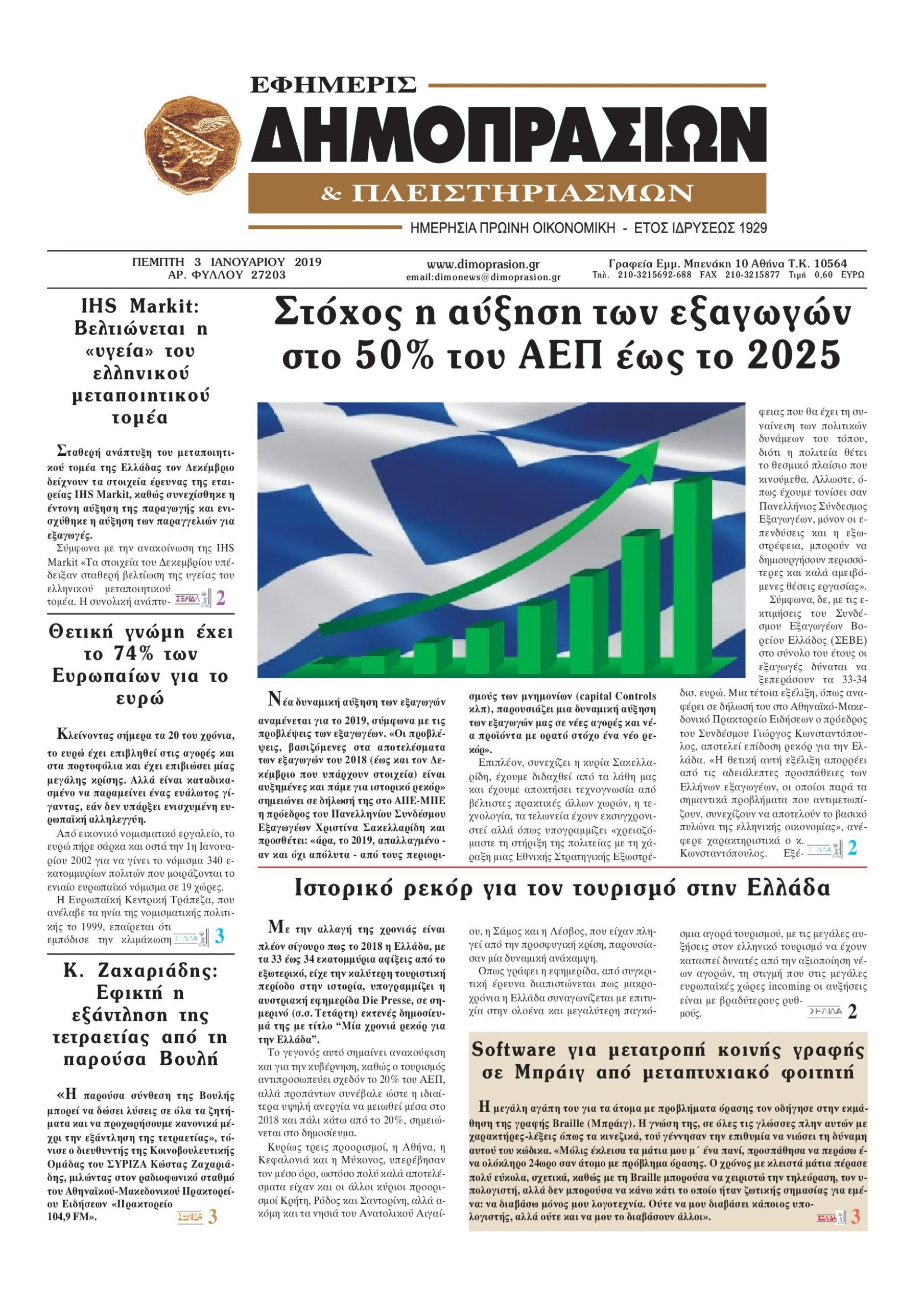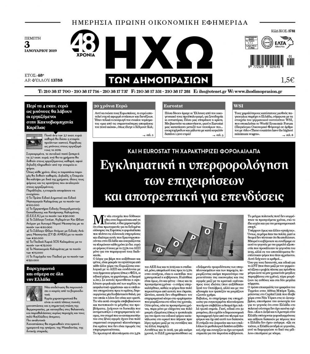Οι οικονομικές εφημερίδες 3/1/19 Enikos Newsroom 06:40, Πέμπτη 03 Ιανουαρίου 2019 Media Διαβάστε τα πρωτοσέλιδα: ΟΙΚΟΝΟΜΙΚΕΣ ΕΦΗΜΕΡΙΔΕΣ ΠΡΩΤΟΣΕΛΙΔΑ Μοιράσου το: σχολίασε κι εσύ (0 σχόλια) Ακολουθήστε το enikos.gr στο Google News και μάθετε πρώτοι όλες τις ειδήσεις Δείτε όλες τις τελευταίες ειδήσεις από την Ελλάδα και τον Κόσμο στο enikos.gr Ειδήσεις Ροή Ειδήσεων 44 λεπτά πριν Ευρωπαϊκή Ένωση: Χωρίς συμφωνία, για την μακροπρόθεσμη χρηματοδότηση της Ουκρανίας, ολοκληρώθηκε η Σύνοδος Κορυφής στις Βρυξέλλες 4 ώρες πριν ΟΠΕΚΕΠΕ: Προφυλακιστέος ο φερόμενος αρχηγός και ο λογιστής της εγκληματικής οργάνωσης 5 ώρες πριν Αυξάνουν την πίεση προς την κυβέρνηση οι αγρότες: Κλείνουν παρακαμπτήριους και ανοίγουν διόδια – Τι θα γίνει τις γιορτές 5 ώρες πριν Φοινικούντα: Το Σάββατο απολογείται ο 30χρονος γιος γνωστού επιχειρηματία της Πλάκας που παραδόθηκε – Όσα είπε στους αστυνομικούς και ο ρόλος του στο έγκλημα 4 ώρες πριν ΑΕΚ – Κραϊόβα 3-2: Επική ανατροπή και πρόκριση στους «16» του Conference League η Ένωση 5 ώρες πριν Αρχαιολόγοι ανακάλυψαν ρωμαϊκά τεχνουργήματα από μια πόλη που δεν υπήρξε ποτέ – Τα τρία εντυπωσιακά κτίρια και ο αμφορέας με τις… σαρδέλες 6 ώρες πριν Ύπνος: Η απλή βραδινή ρουτίνα για να προστατεύσετε τα μαλλιά σας από το κρύο κατά τη διάρκεια του χειμώνα 7 ώρες πριν Manifesting: Πώς να συναντήσετε τον σύντροφο της ζωής σας, ανάλογα με τον μήνα γέννησής σας 2 ημέρες πριν 20 χρόνια τα Χριστούγεννα ξεκινούν στα Public με μεγάλη ποικιλία σε δώρα! 4 λεπτά πριν Σίσσυ Τουμάση: «Είμαι ασθενοφοβική πάρα πολύ και με πιάνει μια παράνοια μ’ αυτό» 28 λεπτά πριν Ντόναλντ Τραμπ: Δεν χρειάζομαι την έγκριση του Κογκρέσου για να διατάξω στρατιωτικά πλήγματα στη Βενεζουέλα 44 λεπτά πριν Ευρωπαϊκή Ένωση: Χωρίς συμφωνία, για την μακροπρόθεσμη χρηματοδότηση της Ουκρανίας, ολοκληρώθηκε η Σύνοδος Κορυφής στις Βρυξέλλες 59 λεπτά πριν GNTM: «Κλείδωσαν» οι τέσσερις φιναλίστ – Μεγάλη ανατροπή στις τελευταίες αποχωρήσεις 1 ώρα πριν Γιώργος Μαζωνάκης: Αποθεώθηκε στην πρεμιέρα του στην «Ακτή Πειραιώς» λίγες ώρες μετά τις καταγγελίες – «Είμαι αληθινός», είπε με νόημα ENIKOS NETWORK Σε περίοδο αυξημένης δραστηριότητας η γρίπη στην Ελλάδα-Μέτρα προστασίας από τον ΕΟΔΥ Σκέφτεστε συνέχεια συζητήσεις που έχετε κάνει; Τι σημαίνει αυτό, σύμφωνα με ειδικό Στεγαστικό: Τι λέει η ΠΟΜΙΔΑ για τα νέα μέτρα που ανακοίνωσε ο Κυριάκος Μητσοτάκης Λαγκάρντ: Αισιόδοξη για την ανάπτυξη της Ευρωζώνης, αβέβαιη για τον πληθωρισμό Χαρτογραφώντας το «σημείο χωρίς επιστροφή»: Για πρώτη φορά αποκαλύπτεται με λεπτομέρεια το ακανθώδες όριο της ατμόσφαιρας τ... Η Google καταργεί τη λειτουργία «dark web report» – Πώς θα μπορούν οι χρήστες να διαγράφουν τα δεδομένα τους περισσότερα 02:50 , Παρασκευή 19 Δεκεμβρίου 2025 GNTM: «Κλείδωσαν» οι τέσσερις φιναλίστ – Μεγάλη ανατροπή στις τελευταίες αποχωρήσεις Για προτελευταία φορά εμφανίστηκαν στο πλατό του GNTM οι φιναλίστ του φετινού κύκλου, το βράδυ... 17:45 , Πέμπτη 18 Δεκεμβρίου 2025 ROUK ZOUK: Εορταστικό επεισόδιο με καλεσμένους τους πρωταγωνιστές του «Γιατί ρε πατέρα» Το Σάββατο 20 Δεκεμβρίου στις 21:00, η Ζέτα Μακρυπούλια υποδέχεται εκλεκτούς ηθοποιούς που όλο... 17:20 , Πέμπτη 18 Δεκεμβρίου 2025 Άγιος έρωτας: Η Χριστίνα εξομολογείται στον πατέρα Νικόλαο, απόψε στις 21:00 στον Alpha Η Νότα αποφασίζει να εκδικηθεί τον Πέτρο και τον Στέφανο, για χάρη του Λούη, όμως τα πράγματα ... 16:50 , Πέμπτη 18 Δεκεμβρίου 2025 Να μ’ αγαπάς: Ζωή και Φωτεινή συμφιλιών