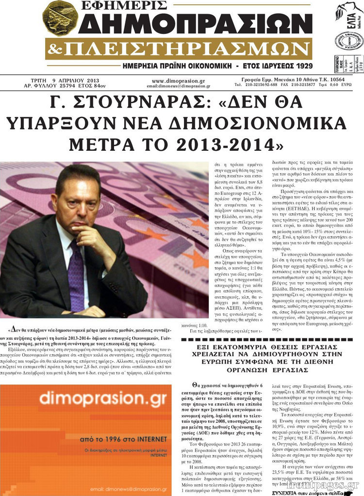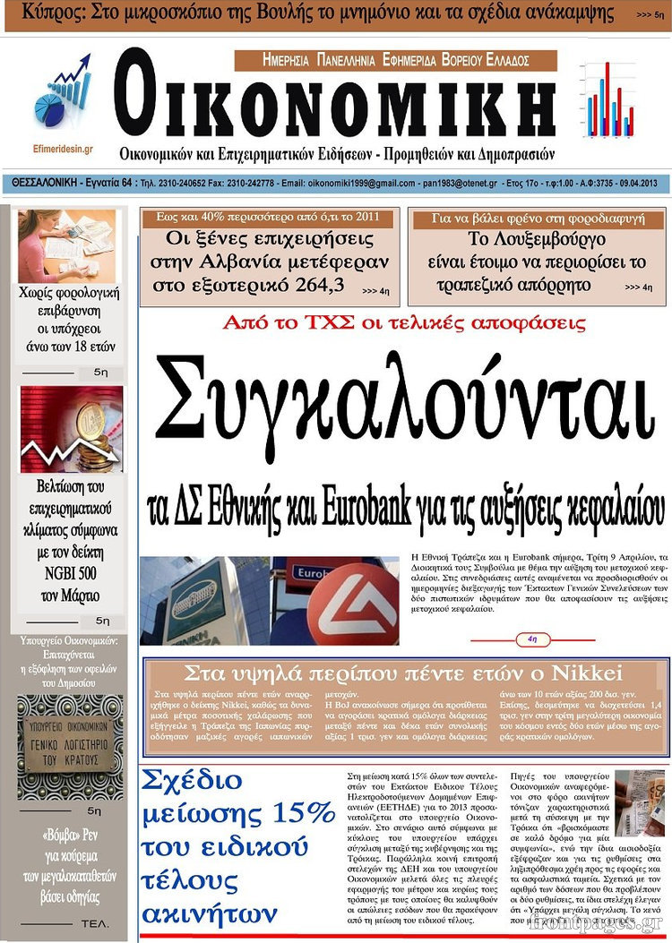 Οι οικονομικές εφημερίδες Enikos Newsroom 08:29, Τρίτη 09 Απριλίου 2013 Media Οι οικονομικές εφημερίδες Τα πρωτοσέλιδα των οικονομικών εφημερίδων. ΕΦΗΜΕΡΙΔΕΣ ΕΦΗΜΕΡΙΔΕΣ ΠΡΩΤΟΣΕΛΙΔΑ ΟΙΚΟΝΟΜΙΚΕΣ ΕΦΗΜΕΡΙΔΕΣ ΠΡΩΤΟΣΕΛΙΔΑ Μοιράσου το: σχολίασε κι εσύ (0 σχόλια) Ακολουθήστε το enikos.gr στο Google News και μάθετε πρώτοι όλες τις ειδήσεις Δείτε όλες τις τελευταίες ειδήσεις από την Ελλάδα και τον Κόσμο στο enikos.gr Ειδήσεις Ροή Ειδήσεων 1 ώρα πριν Ενοίκια: Ποια προγράμματα θα «τρέξουν» για να ανοίξουν τα κλειστά ακίνητα – Όλες οι νέες πληροφορίες 1 ώρα πριν Ίμια 30 χρόνια μετά: «Ο βοσκός πήγαινε και στις δύο βραχονησίδες έως το 2004 – Μετά του έκοψαν τα λεφτά» 50 λεπτά πριν Τραγωδία στη Ρουμανία: Σήμερα και αύριο το τελευταίο «αντίο» στους επτά οπαδούς του ΠΑΟΚ 10 λεπτά πριν Αλέξης Τσίπρας: Συγκροτεί ομάδα και κείμενο για τη σύγκλιση των προοδευτικών δυνάμεων 28 λεπτά πριν Ουκρανικό: Τα ανοιχτά μέτωπα Κιέβου – Μόσχας πριν από τις νέες συνομιλίες στο Αμπού Ντάμπι – Η τακτική «φθοράς» της Ρωσίας 3 ώρες πριν Οπτική ψευδαίσθηση: Μόνο όσοι έχουν τέλεια όραση μπορούν να εντοπίσουν τη 2η γάτα μέσα σε 13 δευτερόλεπτα 3 ώρες πριν Άνοια: Η τροφή που συνδέεται με μειωμένο κίνδυνο και καλύτερη υγεία του εγκεφάλου 6 ώρες πριν Τα ζώδια σήμερα, Παρασκευή 30 Ιανουαρίου 2026: Καρκίνοι, ακούστε το ένστικτό σας και όχι τον φόβο σας 41 λεπτά πριν Ναός μπορεί να αναδύθηκε από το νερό όπως περιγράφει η μυθολογία – Τα στοιχεία της νέας μελέτης 13 λεπτά πριν Στο real taste & style που κυκλοφορεί με τη Realnews 5 λεπτά πριν «Βιολάντα»: Σήμερα οι κηδείες της Βασιλικής Σκαμπαρδώνη και της Ελένης Κατσαρού 10 λεπτά πριν Αλέξης Τσίπρας: Συγκροτεί ομάδα και κείμενο για τη σύγκλιση των προοδευτικών δυνάμεων 11 λεπτά πριν Βασίλειος Τζίγκος: Πέθανε ο δήμαρχος Φιλιατών 17 λεπτά πριν Συνταγή για να μαγειρεύετε εύκολα και άψογα το λευκό ρύζι ENIKOS NETWORK Ο καρκίνος μπορεί να προστατεύσει από το Αλτσχάιμερ; Το παράδοξο συμπέρασμα μελέτης Το κόλπο για να μην πιάσουν μύκητες τα φυτά σας – Είναι εύκολο και αποτελεσματικό Ενοίκια: Ποια προγράμματα θα «τρέξουν» για να ανοίξουν τα κλειστά ακίνητα – Όλες οι νέες πληροφορίες Μυτιληναίος: Προειδοποιεί για τις επιπτώσεις από την άνοδο του ευρώ Google Search: Αναβαθμίζει τις δυνατότητες AI με Gemini 3 και Follow-up ερωτήσεις Κουίζ: Πόσο καλός είσαι στην ελληνική μυθολογία; Δοκίμασε τις γνώσεις σου και κάνε το 3 στα 3 περισσότερα 07:00 , Παρασκευή 30 Ιανουαρίου 2026 Την Κυριακή με τη Realnews: Ό,τι και αν αγοράσεις, σκανάρεις και κερδίζεις! Την Κυριακή με τη Realnews: Ό,τι και αν αγοράσεις, σκανάρεις και κερδίζεις! Με το PADU app, το... 05:48 , Παρασκευή 30 Ιανουαρίου 2026 Οι οικονομικές εφημερίδες 30/1/2026 Διαβάστε τα πρωτοσέλιδα από τις οικονομικές εφημερίδες, σήμερα 30/1/2026. 22:52 , Πέμπτη 29 Ιανουαρίου 2026 Ζελένσκι: Αναμένουμε από τη Ρωσία να σταματήσει τους βομβαρδισμούς για μία εβδομάδα, όπως συμφώνησε Ο Βολοντίμιρ Ζελένσκι δήλωσε απόψε ότι αναμένει την εφαρμογή της συμφωνίας, εκ μέρους της Ρωσί... 18:58 , Πέμπτη 29 Ιανουαρίου 2026 Το σόι σου: Ο Μιχάλης ένα βήμα πριν παρατήσει τον Χαμπέα, απόψε στις 21:00 Ένα ακόμη απολαυστικό επεισόδιο της σειράς “Το σόι σου” έρχεται απόψε στις 21:00 σ... ΤΕΛΕΥΤΑΙΕΣ ΕΙΔΗΣΕΙΣ 5 λεπτά πριν «Βιολάντα»: Σήμερα οι κηδείες της Βασιλικής... 10 λεπτά πριν Αλέξης Τσίπρας: Συγκροτεί ομάδα και κείμενο για τη... 11 λεπτά πριν Βασίλειος Τζίγκος: Πέθανε ο δήμαρχος Φιλιατών 17 λεπτά πριν Συνταγή για να μαγειρεύετε εύκολα και άψογα το λευκό... 23 λεπτ