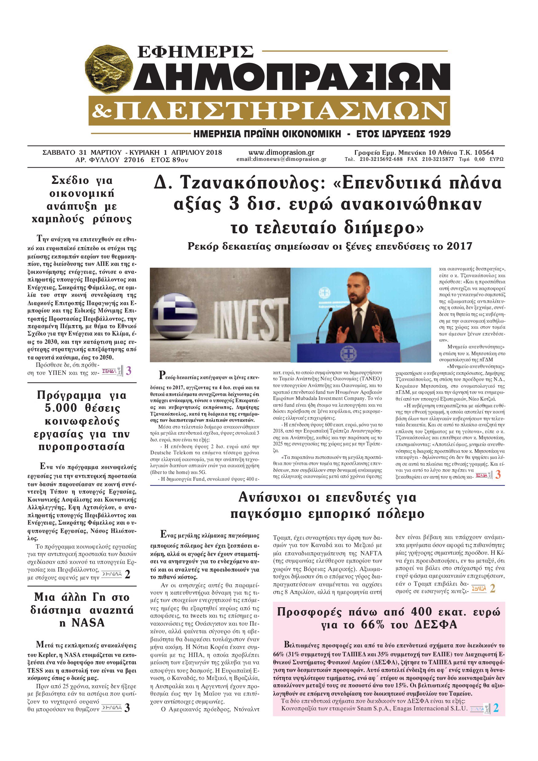 Οι οικονομικές εφημερίδες 31/3/2018 Enikos Newsroom 07:13, Σάββατο 31 Μαρτίου 2018 Media Διαβάστε τα σημερινά πρωτοσέλιδα των οικονομικών εφημερίδων: ΟΙΚΟΝΟΜΙΚΕΣ ΕΦΗΜΕΡΙΔΕΣ ΠΡΩΤΟΣΕΛΙΔΑ Μοιράσου το: σχολίασε κι εσύ (0 σχόλια) Ακολουθήστε το enikos.gr στο Google News και μάθετε πρώτοι όλες τις ειδήσεις Δείτε όλες τις τελευταίες ειδήσεις από την Ελλάδα και τον Κόσμο στο enikos.gr Ειδήσεις Ροή Ειδήσεων 1 ώρα πριν Σύνοδος Κορυφής: Συνεχίζεται το θρίλερ στις Βρυξέλλες για την χρηματοδότηση της Ουκρανίας 4 ώρες πριν ΟΠΕΚΕΠΕ: Προφυλακιστέος ο φερόμενος αρχηγός και ο λογιστής της εγκληματικής οργάνωσης 6 ώρες πριν Αυξάνουν την πίεση προς την κυβέρνηση οι αγρότες: Κλείνουν παρακαμπτήριους και ανοίγουν διόδια – Τι θα γίνει τις γιορτές 5 ώρες πριν Φοινικούντα: Το Σάββατο απολογείται ο 30χρονος γιος γνωστού επιχειρηματία της Πλάκας που παραδόθηκε – Όσα είπε στους αστυνομικούς και ο ρόλος του στο έγκλημα 4 ώρες πριν ΑΕΚ – Κραϊόβα 3-2: Επική ανατροπή και πρόκριση στους «16» του Conference League η Ένωση 5 ώρες πριν Αρχαιολόγοι ανακάλυψαν ρωμαϊκά τεχνουργήματα από μια πόλη που δεν υπήρξε ποτέ – Τα τρία εντυπωσιακά κτίρια και ο αμφορέας με τις… σαρδέλες 6 ώρες πριν Ύπνος: Η απλή βραδινή ρουτίνα για να προστατεύσετε τα μαλλιά σας από το κρύο κατά τη διάρκεια του χειμώνα 7 ώρες πριν Manifesting: Πώς να συναντήσετε τον σύντροφο της ζωής σας, ανάλογα με τον μήνα γέννησής σας 2 ημέρες πριν 20 χρόνια τα Χριστούγεννα ξεκινούν στα Public με μεγάλη ποικιλία σε δώρα! 20 λεπτά πριν Αιματηρή βομβιστική επίθεση στην Υεμένη: Τουλάχιστον τρεις νεκροί και 13 τραυματίες 24 λεπτά πριν Στη Φλόριντα σήμερα οι διαβουλεύσεις σχετικά με τα επόμενα στάδια για τη Λωρίδα της Γάζας 28 λεπτά πριν Σίσσυ Τουμάση: «Είμαι ασθενοφοβική πάρα πολύ και με πιάνει μια παράνοια μ’ αυτό» 52 λεπτά πριν Ντόναλντ Τραμπ: Δεν χρειάζομαι την έγκριση του Κογκρέσου για να διατάξω στρατιωτικά πλήγματα στη Βενεζουέλα 1 ώρα πριν Σύνοδος Κορυφής: Συνεχίζεται το θρίλερ στις Βρυξέλλες για την χρηματοδότηση της Ουκρανίας ENIKOS NETWORK Σε περίοδο αυξημένης δραστηριότητας η γρίπη στην Ελλάδα-Μέτρα προστασίας από τον ΕΟΔΥ Σκέφτεστε συνέχεια συζητήσεις που έχετε κάνει; Τι σημαίνει αυτό, σύμφωνα με ειδικό Στεγαστικό: Τι λέει η ΠΟΜΙΔΑ για τα νέα μέτρα που ανακοίνωσε ο Κυριάκος Μητσοτάκης Λαγκάρντ: Αισιόδοξη για την ανάπτυξη της Ευρωζώνης, αβέβαιη για τον πληθωρισμό Χαρτογραφώντας το «σημείο χωρίς επιστροφή»: Για πρώτη φορά αποκαλύπτεται με λεπτομέρεια το ακανθώδες όριο της ατμόσφαιρας τ... Η Google καταργεί τη λειτουργία «dark web report» – Πώς θα μπορούν οι χρήστες να διαγράφουν τα δεδομένα τους περισσότερα 02:50 , Παρασκευή 19 Δεκεμβρίου 2025 GNTM: «Κλείδωσαν» οι τέσσερις φιναλίστ – Μεγάλη ανατροπή στις τελευταίες αποχωρήσεις Για προτελευταία φορά εμφανίστηκαν στο πλατό του GNTM οι φιναλίστ του φετινού κύκλου, το βράδυ... 17:45 , Πέμπτη 18 Δεκεμβρίου 2025 ROUK ZOUK: Εορταστικό επεισόδιο με καλεσμένους τους πρωταγωνιστές του «Γιατί ρε πατέρα» Το Σάββατο 20 Δεκεμβρίου στις 21:00, η Ζέτα Μακρυπούλια υποδέχεται εκλεκτούς ηθοποιούς που όλο... 17:20 , Πέμπτη 18 Δεκεμβρίου 2025 Άγιος έρωτας: Η Χριστίνα εξομολογείται στον πατέρα Νικόλαο, απόψε στις 21:00 στον Alpha Η Νότα αποφασίζει να εκδικηθεί τον Πέτρο και τον Στέφανο, για χάρη του Λούη, όμως τα πράγματα ... 16:50 , Πέμπτη 18 Δεκεμβρίου 2025 Να μ’ αγαπάς: Ζωή και Φωτεινή συμφιλιώνονται ως μάνα με κόρη, απόψε στις 20:00 Η ταυτότητα του Άγγελου αποκαλύπτεται στο νέο επεισόδιο 