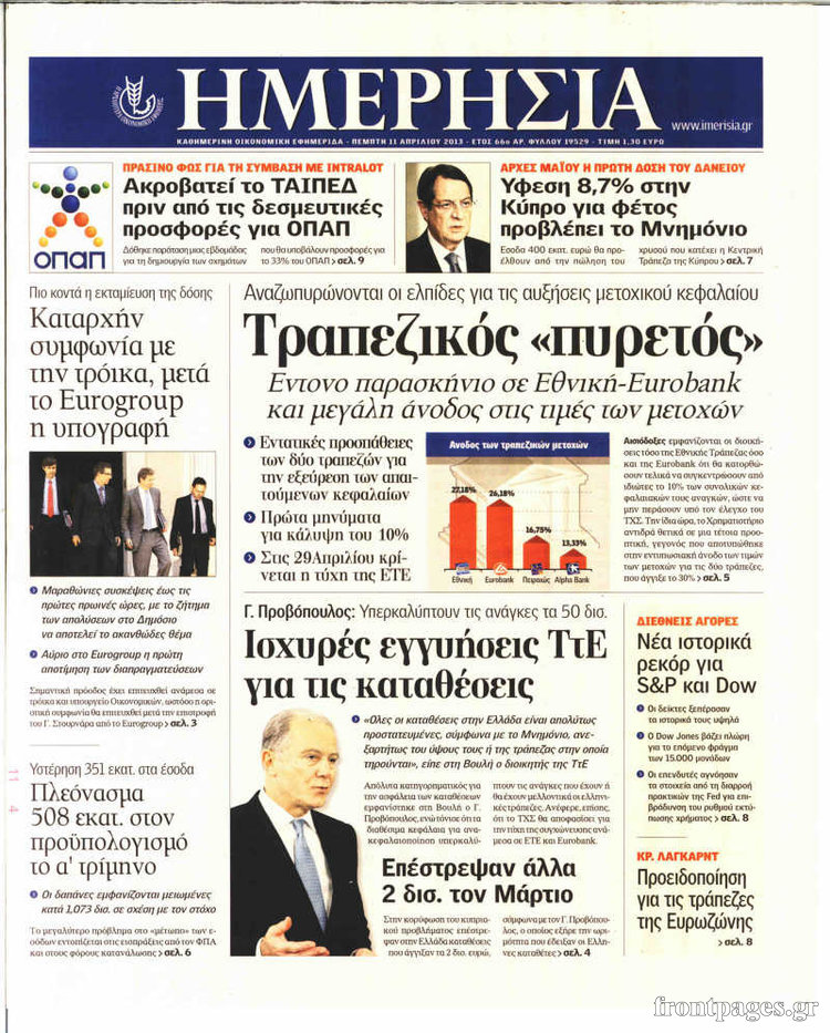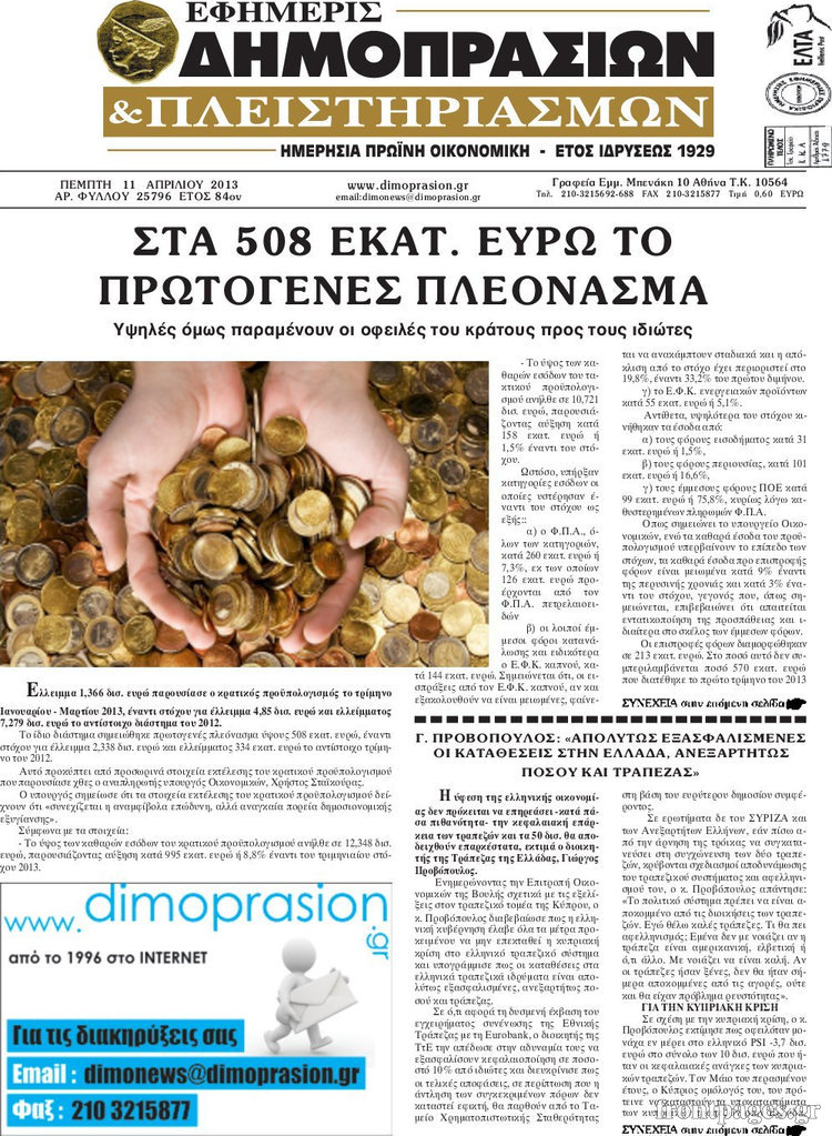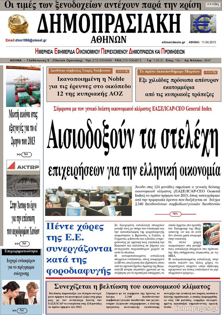 Οι οικονομικές εφημερίδες Enikos Newsroom 09:37, Πέμπτη 11 Απριλίου 2013 Media Οι οικονομικές εφημερίδες ΟΙΚΟΝΟΜΙΚΕΣ ΕΦΗΜΕΡΙΔΕΣ Μοιράσου το: σχολίασε κι εσύ (0 σχόλια) Ακολουθήστε το enikos.gr στο Google News και μάθετε πρώτοι όλες τις ειδήσεις Δείτε όλες τις τελευταίες ειδήσεις από την Ελλάδα και τον Κόσμο στο enikos.gr Ειδήσεις Ροή Ειδήσεων 2 ώρες πριν Τσιάρας: Καλούμε άμεσα τους εκπροσώπους των αγροτών σε ουσιαστικό διάλογο – Υπάρχουν περιθώρια, η κοινωνία περιμένει υπευθυνότητα 1 ώρα πριν Κυψέλη: Για πρώτη ημέρα βρισκόταν στο σχολείο η 16χρονη που επιτέθηκε με μαχαίρι στην 14χρονη – Τι αναφέρουν μαρτυρίες μαθητών για το επεισόδιο 2 ώρες πριν Λάρισα: Αναβλήθηκε για τον Οκτώβριο του 2026 η δίκη δύο αγροτών του μπλόκου της Νίκαιας 6 ώρες πριν Σίδνεϊ: Τα ονόματα των θυμάτων από την τρομοκρατική επίθεση – Η 10χρονη Ματίλντα και ο επιζών του Ολοκαυτώματος που έσωσε τη γυναίκα του 7 ώρες πριν Δείτε το συνέδριο «Ελληνικός Τουρισμός, Μια Εθνική Υπόθεση!» 1 ώρα πριν Τα 3 ζώδια που θα έχουν τύχη «βουνό» έως τις 21 Δεκεμβρίου – «Η ανατροπή που περιμένετε πλησιάζει» 5 ώρες πριν Μακροζωία: 55χρονος που ισχυρίζεται ότι βιολογικά είναι 20 ετών μοιράζεται μια απλή συμβουλή για υγιή εγκέφαλο 6 ώρες πριν Οι 8 φράσεις που δίνουν αμέσως την εντύπωση πως είστε δύσκολος άνθρωπος 8 ώρες πριν Κληρονόμησε 2,8 εκατ. ευρώ και φοβάται ότι οι άνδρες θα την πλησιάζουν για τα λεφτά – «Μήπως καλύτερα να το κρατήσω μυστικό;» 4 λεπτά πριν Μεσσηνία: Αγρότες απέκλεισαν τον αυτοκινητόδρομο στο ύψος της Θουρίας – Κλειστά και τα δύο ρεύματα 11 λεπτά πριν Ρεάλ Μαδρίτης: 180 λεπτά και 3 γκολ μακριά από το ιστορικό ρεκόρ του Κριστιάνο Ρονάλντο ο Μπαπέ 16 λεπτά πριν Σοκ στη Σίκινο: Ανθρώπινος σκελετός εντοπίστηκε από κυνηγούς – Ανήκει στη μία εκ των 2 τουριστριών που αγνοούνταν από το 2024 22 λεπτά πριν Κουίζ για την παλιά Αθήνα: Αναγνωρίζετε την οδό; Είναι από τις πιο γνωστές 28 λεπτά πριν Νίκος Δένδιας: Ανακριβές ότι πήραμε πίσω την πρότασή μας για το SAFE – ΒΙΝΤΕΟ ENIKOS NETWORK Οι 9 κορυφαίες ιατρικές έρευνες για το 2025 που αλλάζουν το τοπίο της υγείας Ραντεβού από σήμερα για ιατρικές εξετάσεις με ένα κλικ μέσω του MyHealth app ΕΛΣΤΑΤ: Μείωση 6,4% στον αριθμό των κενών θέσεων εργασίας στο σύνολο της οικονομίας κατά το γ’ τρίμηνο 2025 – Δείτε αναλυτι... IRIS: Τι αλλάζει μετά την Πρωτοχρονιά στις συναλλαγές και ποιες θα είναι «επικίνδυνες» Σύγχρονος Νοστράδαμος: Προειδοποιεί για «μεγάλο γεγονός» τους επόμενους μήνες που θα συγκλονίσει τη Βρετανία και τον κόσμο Τεστ παρατηρητικότητας: Μπορείτε να βρείτε τις 3 διαφορές στις εικόνες με έναν πιγκουίνο σε 14 δευτερόλεπτα περισσότερα 15:31 , Δευτέρα 15 Δεκεμβρίου 2025 Συνέδριο «Ελληνικός Τουρισμός 2025, Μια εθνική υπόθεση!» – Το στοίχημα του ανθρώπινου δυναμικού στον τουρισμό Τον κρίσιμο ρόλο της εκπαίδευσης, της κατάρτισης και της επάρκειας ανθρώπινου δυναμικού για τη... 14:57 , Δευτέρα 15 Δεκεμβρίου 2025 Συνέδριο «Ελληνικός Τουρισμός 2025, Μια εθνική υπόθεση!» – Σταύρος Αρναουτάκης: Βασικό θέμα για την ανάπτυξη κάθε Περιφέρειας είναι οι υποδομές Το ετήσιο συνέδριο «Ελληνικός Τουρισμός 2025, Μια εθνική υπόθεση!» συνδιοργανώνουν η Next is N... 14:27 , Δευτέρα 15 Δεκεμβρίου 2025 Να μ’ αγαπάς: Η Φωτεινή αποφασίζει να δώσει τέλος στη ζωή της Η Φωτεινή βεβαιώνεται πως είναι έγκυος στο νέο επεισόδιο της σειράς “Να μ’ αγαπάς&... 14:08 , Δευτέρα 15 Δεκεμβρίου 2025 Grand Hotel: Η Μελίνα προσπαθεί να παρασύρει τον Χαραλάμπη και να τον μπλέξει στο