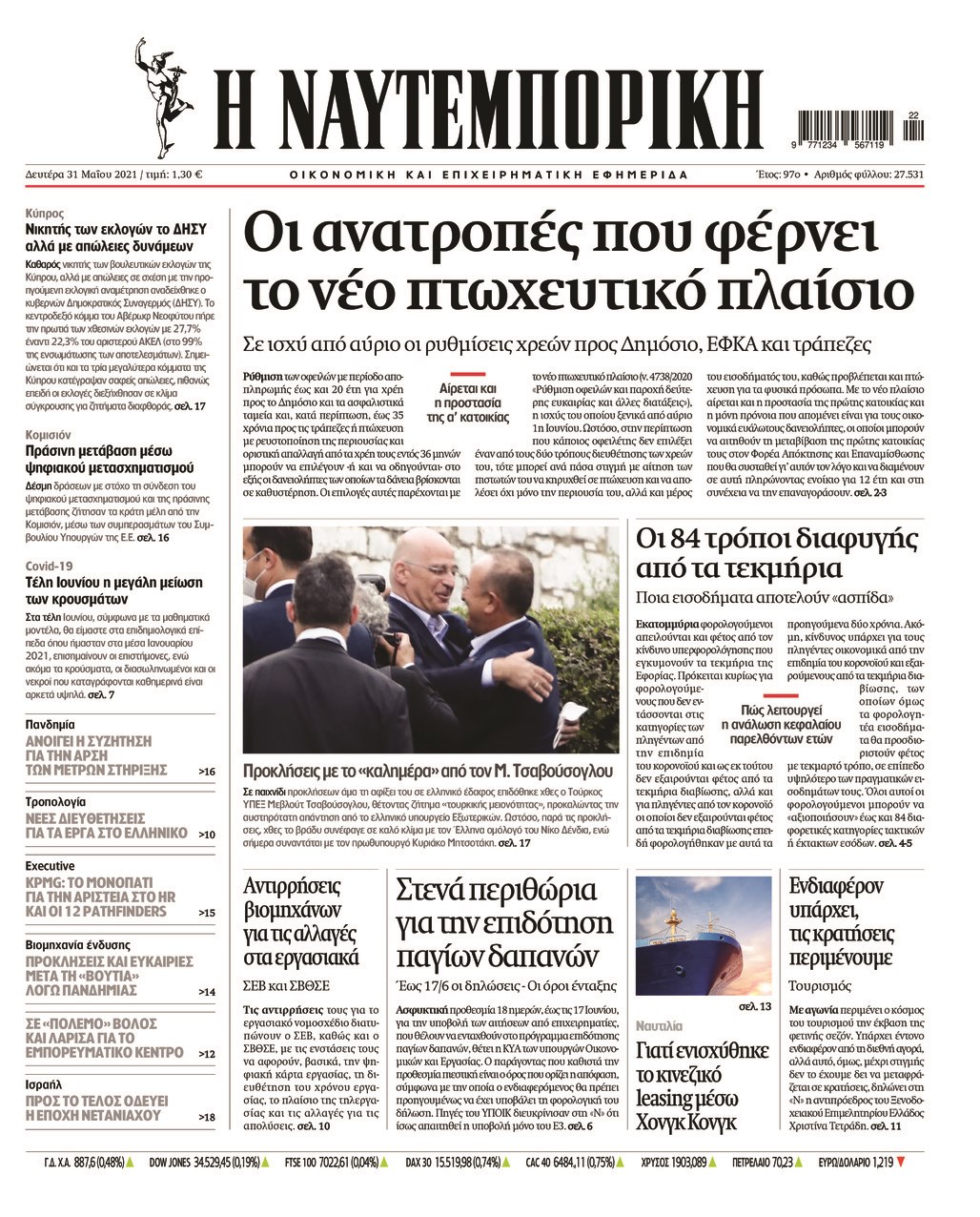 Οι οικονομικές εφημερίδες 31/5/2021 Διονύσης Νίκκας 06:50, Δευτέρα 31 Μαΐου 2021 Media Διαβάστε τα πρωτοσέλιδα των οικονομικών εφημερίδων… ΟΙΚΟΝΟΜΙΚΕΣ ΕΦΗΜΕΡΙΔΕΣ Μοιράσου το: σχολίασε κι εσύ (0 σχόλια) Ακολουθήστε το enikos.gr στο Google News και μάθετε πρώτοι όλες τις ειδήσεις Δείτε όλες τις τελευταίες ειδήσεις από την Ελλάδα και τον Κόσμο στο enikos.gr Ειδήσεις Ροή Ειδήσεων 2 ώρες πριν Νίκος Παππάς: Άφαντος παραμένει ο ευρωβουλευτής μετά την επίθεση στον Νίκο Γιαννόπουλο 23 λεπτά πριν Βρυξέλλες: Ένταση με τους αγρότες – Πέταξαν πατάτες και κροτίδες 2 ώρες πριν Συναγερμός και στην Ελλάδα για τη «σούπερ γρίπη»: Πόσο σοβαρή είναι και ποιοι θεωρούνται πιο ευάλωτοι – 3 ειδικοί μιλούν στο enikos.gr 1 ώρα πριν Μητσοτάκης: Η Ελλάδα στηρίζει την Ουκρανία και θα υποστηρίξει οποιαδήποτε λύση της παρέχει χρηματοδοτική σταθερότητα 25 λεπτά πριν Γαλλία: Το δικαστήριο έκρινε ένοχο τον «διεστραμμένο» αναισθησιολόγο για τη δολοφονία 12 ασθενών – Είχε το παρατσούκλι «Δρ. Θάνατος» 3 ώρες πριν Τα 4 ζώδια που λαμβάνουν ένα ισχυρό σημάδι από το σύμπαν – «Αποκαλύπτεται κάτι που μπορεί να αλλάξει τη ζωή μας» 4 ώρες πριν Η σύζυγός του παραπονιέται για τα χρήματα που της δίνει για ψώνια κάθε μήνα – «Λέει ότι νιώθει φτωχή και της είπα να βρει δουλειά» 2 ώρες πριν Αν κάνετε συνεχώς αυτά τα 8 πράγματα με τα κατοικίδιά σας, σας λείπει η ανθρώπινη επαφή 1 ημέρα πριν 20 χρόνια τα Χριστούγεννα ξεκινούν στα Public με μεγάλη ποικιλία σε δώρα! 5 λεπτά πριν ΑΠΕΥΘΕΙΑΣ – Η ενημέρωση από τον Κυβερνητικό Εκπρόσωπο 6 λεπτά πριν Ανδρουλάκης: Απαράδεκτη η πρόταση της Κομισιόν για μείωση των κονδυλίων της ΚΑΠ – Τι είπε για τις αγροτικές κινητοποιήσεις 10 λεπτά πριν Ιράν: Η θάλασσα «βάφτηκε» κόκκινη στο νησί Χορμούζ – Η εξήγηση Κολυδά για το εντυπωσιακό φαινόμενο 15 λεπτά πριν Άρης Μαλιαγρός: Το βίντεο – αφιέρωμα στον ηθοποιό από την Finos Film: – «Τιμάμε τον γλυκύτατο κύριο με το μονόκλ» 18 λεπτά πριν Ο Π.Σ.Α.Ε. ΜΜΕ τιμάει την ημέρα Αλληλεγγύης ENIKOS NETWORK Τι περιλαμβάνει το σχέδιο της ΕΕ για την καρδιαγγειακή υγεία-Οι προτάσεις της Ελληνικής Καρδιολογικής Εταιρείας Σύγχρονες τεχνικές αποκατάστασης χόνδρινων βλαβών & διατήρησης της άρθρωσης Ενοίκια: Τι αλλάζει με τη νέα τροπολογία στην πληρωμή Ειδικό επιδοτούμενο πρόγραμμα κατάρτισης από ΔΥΠΑ και ΕΛΓΟ – ΔΗΜΗΤΡΑ: Έως αύριο οι ενστάσεις – Όσα πρέπει να γνωρίζετε Χαρτογραφώντας το «σημείο χωρίς επιστροφή»: Για πρώτη φορά αποκαλύπτεται με λεπτομέρεια το ακανθώδες όριο της ατμόσφαιρας τ... Η Google καταργεί τη λειτουργία «dark web report» – Πώς θα μπορούν οι χρήστες να διαγράφουν τα δεδομένα τους περισσότερα 08:00 , Πέμπτη 18 Δεκεμβρίου 2025 Την Κυριακή με τη Realnews: Δωροεπιταγή 10€ Δωροεπιταγή αξίας 10€ για αγορές άνω των 60€ από τα πολυκαταστήματα FactoryOutlet H προσφορά ι... 07:50 , Πέμπτη 18 Δεκεμβρίου 2025 «Το σόι σου»: Backstage στα γυρίσματα για το εορταστικό επεισόδιο «Το σόι σου» φορά τα γιορτινά του για τα Χριστούγεννα και η Όλγα Λαφαζάνη, με την κάμερα του «... 07:36 , Πέμπτη 18 Δεκεμβρίου 2025 Οι αθλητικές μεταδόσεις 18/12/2025 – Πού θα δείτε τον αγώνα της ΑΕΚ με την Κραϊόβα για το Conference League Τα ματς ΑΕΚ – Ουνιβερσιτάτεα Κραϊόβα για το Conference League και Παναθηναϊκός – Χάποελ Τελ Αβ... 05:48 , Πέμπτη 18 Δεκεμβρίου 2025 Οι οικονομικές εφημερίδες 18/12/2025 Διαβάστε τα πρωτοσέλιδα από τις οικονομικές εφημερίδες, σήμερα 18/12/2025. ΤΕΛΕΥΤΑΙΕΣ ΕΙΔΗΣΕΙΣ 5 λεπτά πριν ΑΠΕΥΘΕΙΑΣ – Η ενημέρωση από τον Κυβερνητικό... 6 λεπτά πριν Ανδρουλάκης: Απα
