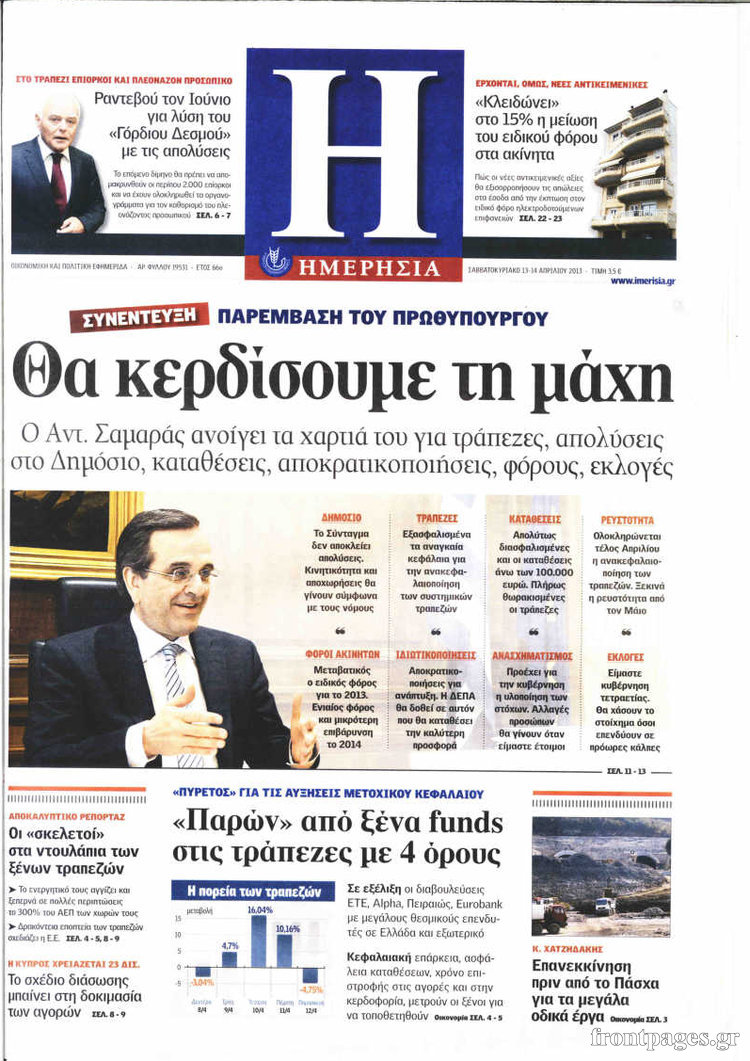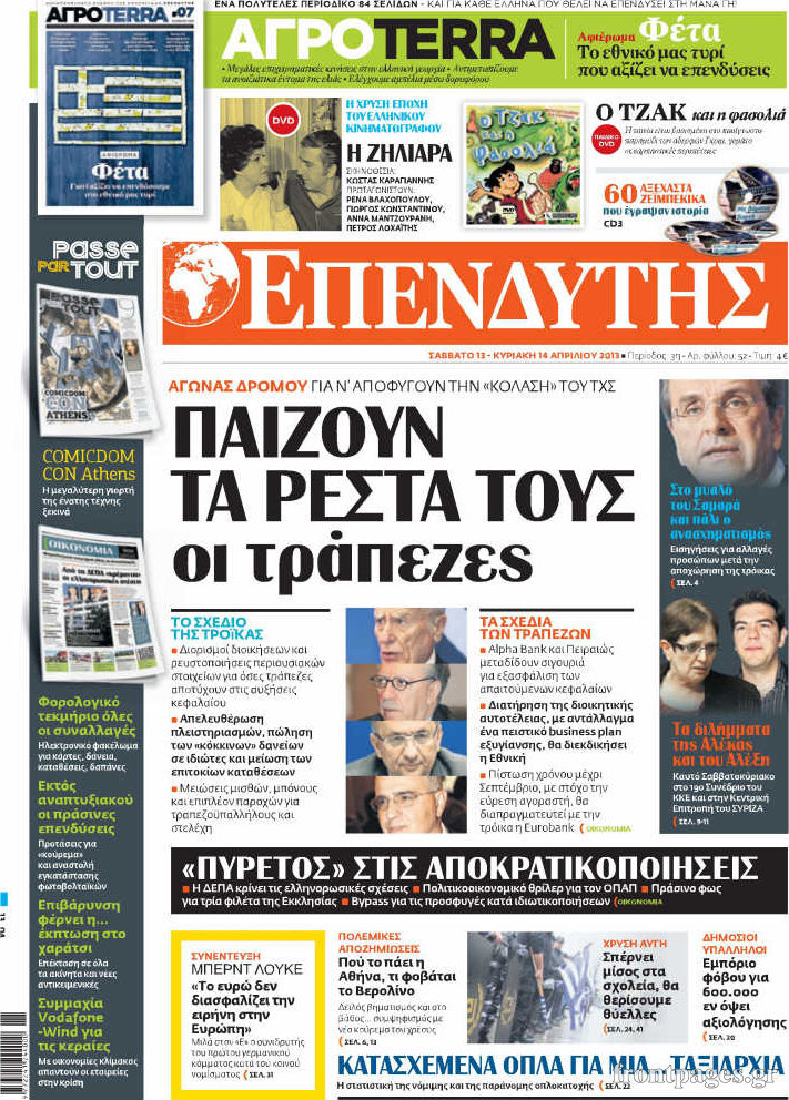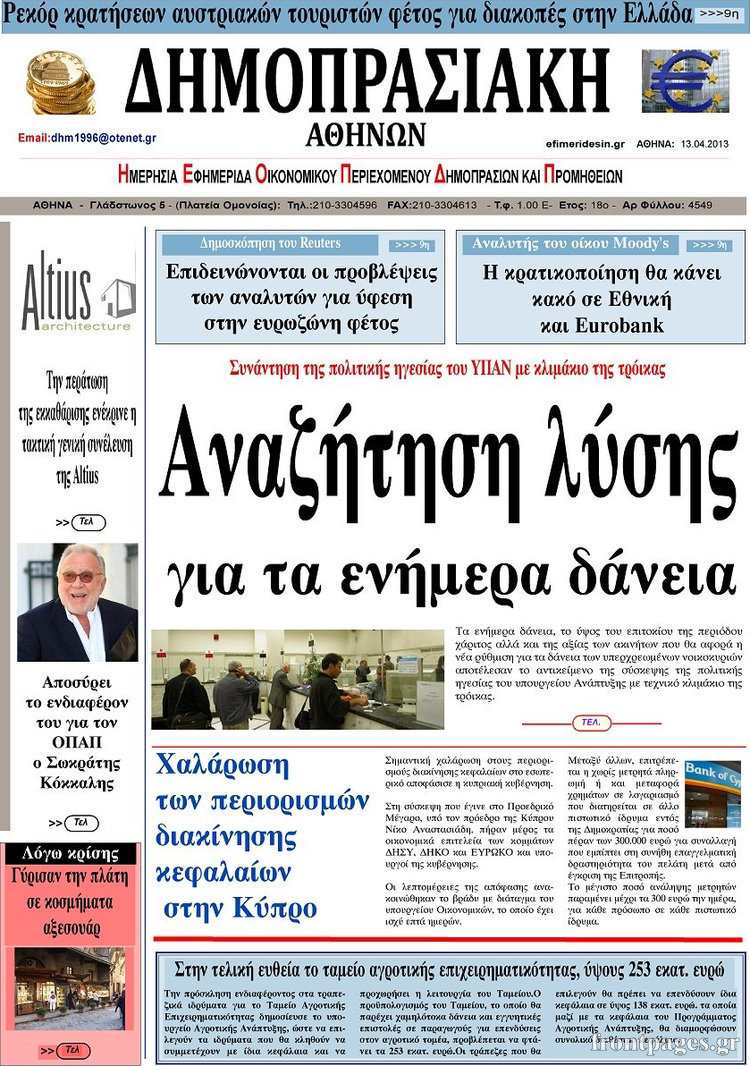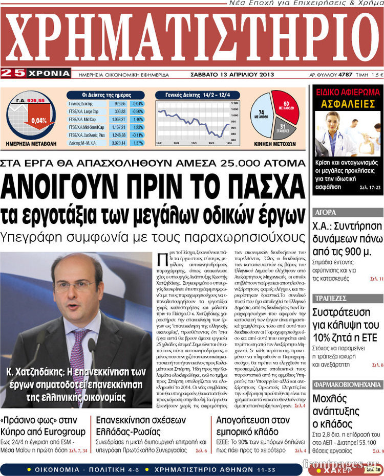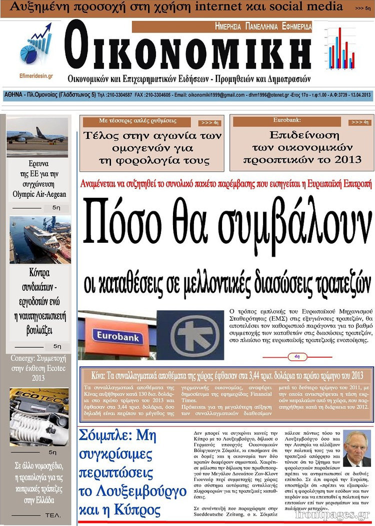 Oι οικονομικές εφημερίδες Enikos Newsroom 09:57, Σάββατο 13 Απριλίου 2013 Media Oι οικονομικές εφημερίδες ΕΦΗΜΕΡΙΔΕΣ ΟΙΚΟΝΟΜΙΚΕΣ ΕΦΗΜΕΡΙΔΕΣ Μοιράσου το: σχολίασε κι εσύ (0 σχόλια) Ακολουθήστε το enikos.gr στο Google News και μάθετε πρώτοι όλες τις ειδήσεις Δείτε όλες τις τελευταίες ειδήσεις από την Ελλάδα και τον Κόσμο στο enikos.gr Ειδήσεις Ροή Ειδήσεων 4 ώρες πριν Μακελειό στο Σίδνεϊ: Πατέρας και γιος οι δράστες της τρομοκρατικής επίθεσης – Γιατί η Αυστραλία βάζει στο στόχαστρο το Ιράν 5 ώρες πριν Μακελειό στην Αυστραλία: «Πέρασαν οι σφαίρες πάνω από το αυτοκίνητο» – Συγκλονίζει η μαρτυρία Έλληνα που ζει στο Σίδνεϊ 3 ώρες πριν Όλα τα αιτήματα αγροτών, κτηνοτρόφων και μελισσοκόμων προς την κυβέρνηση – Παραμένουν στα μπλόκα και προαναγγέλλουν κλιμάκωση 8 ώρες πριν Τραγική εξέλιξη στο Αίγιο: Πέθανε ο 43χρονος που γρονθοκόπησε γιατρό στο νοσοκομείο 6 ώρες πριν Λακωνία: Βίντεο ντοκουμέντο από την επιχείρηση διάσωσης της 13χρονης που έπεσε σε πηγάδι – Ποια ήταν τα πρώτα λόγια της 5 ώρες πριν Ύπνος: 5 λόγοι για τους οποίους ξυπνάτε κουρασμένοι το πρωί κατά τη διάρκεια του χειμώνα 8 ώρες πριν Οι 7 βραδινές συνήθειες που μαρτυρούν ότι κάποιος υποφέρει από βαθιά μοναξιά, σύμφωνα με την ψυχολογία 16 ώρες πριν Τα 8 πράγματα που τα ευτυχισμένα ζευγάρια δεν κάνουν ποτέ μπροστά στα παιδιά τους 7 ώρες πριν Κουζίνα: Η καθημερινή συνήθεια των ανθρώπων που την διατηρούν πάντα καθαρή 19 λεπτά πριν Νότια Κορέα: Έφοδος της αστυνομίας στα γραφεία της Ενωτικής Εκκλησίας στη Σεούλ 34 λεπτά πριν Serie A: Ήττα σοκ για την Φιορεντίνα στο ντέρμπι των ουραγών, κορυφή για την Ίντερ, στο «κόλπο» ξανά η Γιούβε – Τα αποτελέσματα και η βαθμολογία 49 λεπτά πριν Λίβανος: Οι IDF ανέφεραν ότι σκότωσαν τρία μέλη της Χεζμπολάχ 1 ώρα πριν Ρωσία: Στο στόχαστρο της Μόσχας η Deutsche Welle – «Δεν θα μας φιμώσουν», δηλώνει η Διεύθυνση 1 ώρα πριν Συγκίνησε η Ντορέττα Παπαδημητρίου: «Κλείνουν 11 χρόνια από όταν έφυγε από τη ζωή, ήταν πολύ ξαφνικό όπως έγινε και αυτό μας συσπείρωσε» ENIKOS NETWORK 8 κορυφαίες συμβουλές για άνδρες που θέλουν φλογερή σεξουαλική ζωή, σύμφωνα με ειδικό Baby botox: Ποια τα οφέλη και οι κίνδυνοι του να ξεκινήσει κάποιος τις ενέσεις πριν εμφανιστούν ρυτίδες Τέλος οι διώξεις για χρέη σε Εφορία και ΕΦΚΑ – Τι προβλέπει νέα διάταξη μετά την πτώχευση Υπουργείο Αγροτικής Ανάπτυξης: Ενισχύσεις de minimis ύψους 2,1 εκατ. ευρώ – Οι δικαιούχοι Σύγχρονος Νοστράδαμος: Προειδοποιεί για «μεγάλο γεγονός» τους επόμενους μήνες που θα συγκλονίσει τη Βρετανία και τον κόσμο Τεστ παρατηρητικότητας: Μπορείτε να βρείτε τις 3 διαφορές στις εικόνες με έναν πιγκουίνο σε 14 δευτερόλεπτα περισσότερα 21:34 , Κυριακή 14 Δεκεμβρίου 2025 Ο Δικαστής: Η Λέττα είναι αποφασισμένη να αποκαλύψει την αλήθεια για το τροχαίο, απόψε στις 21:45 στον ΑΝΤ1 Ραγδαίες οι εξελίξεις στο νέο επεισόδιο της σειράς “Ο Δικαστής” απόψε στις 21:45 σ... 17:38 , Κυριακή 14 Δεκεμβρίου 2025 Τηλεθέαση (13/12): Τα ποσοστά για το βράδυ του Σαββάτου Η «μάχη» της prime time για την τηλεθέαση, συνεχίστηκε δυναμικά το βράδυ του Σαββάτου (13/12).... 16:32 , Κυριακή 14 Δεκεμβρίου 2025 Τηλεθέαση (13/12): Πώς κινήθηκαν οι εκπομπές στην πρωινή ζώνη το Σάββατο Με αμείωτη ένταση συνεχίστηκε η μάχη για την τηλεθέαση στην πρωινή ζώνη των τηλεοπτικών καναλι... 15:07 , Κυριακή 14 Δεκεμβρίου 2025 IQ160: Η Μαρίνα στέλνει το φούτερ του Τηλέμαχου για το τεστ πατρότητας Η Πηνελόπη αποφασίζει να κάνει αμνιοπαρακέντηση, για να βεβαιωθεί για την υγεία του 