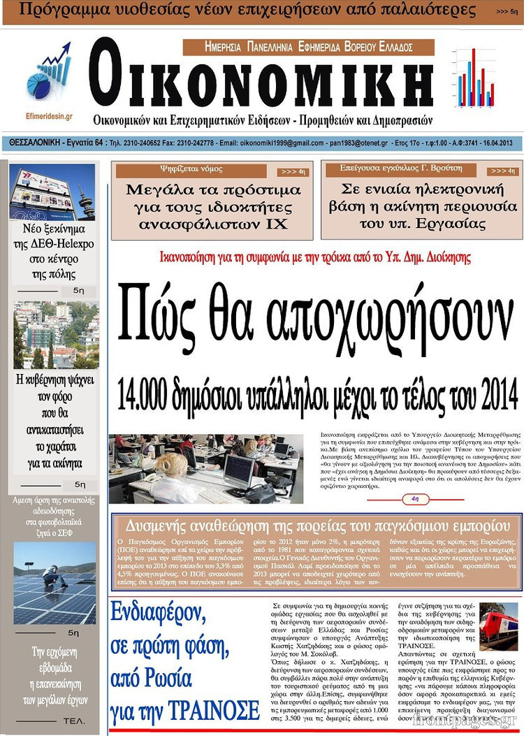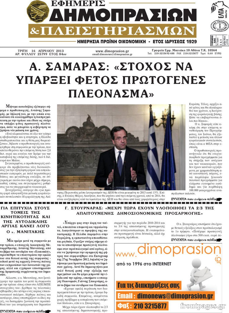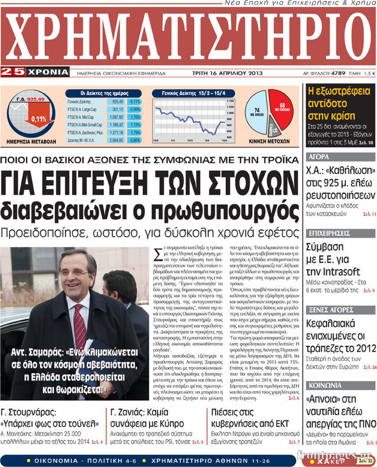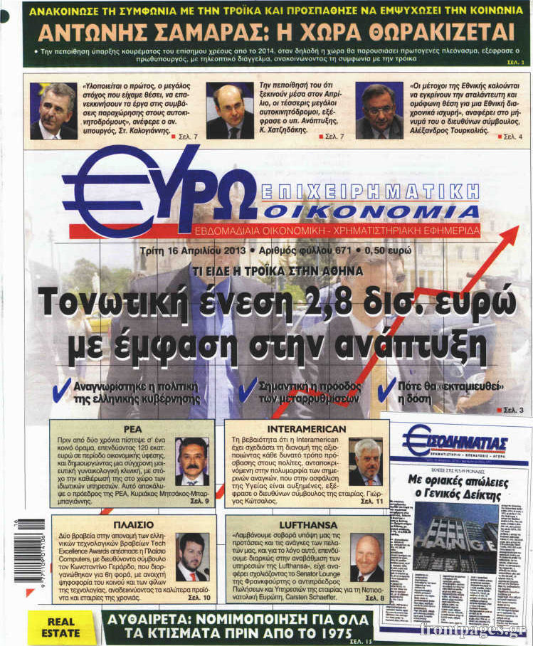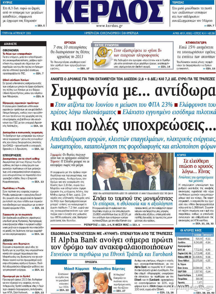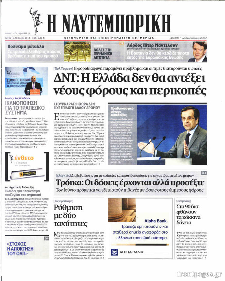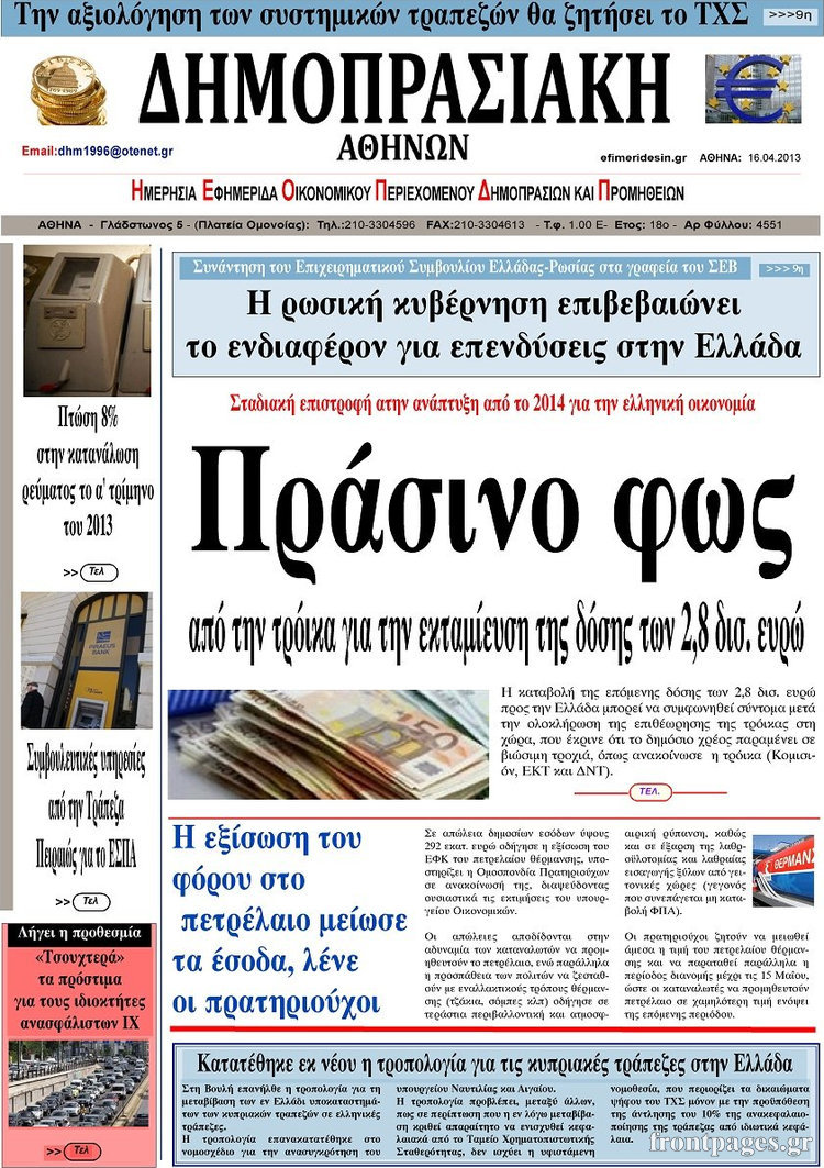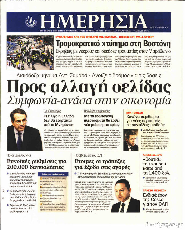 Οι οικονομικές εφημερίδες Enikos Newsroom 08:23, Τρίτη 16 Απριλίου 2013 Media Οι οικονομικές εφημερίδες Τα πρωτοσέλιδα των οικονομικών εφημερίδων. ΕΦΗΜΕΡΙΔΕΣ ΟΙΚΟΝΟΜΙΚΕΣ ΕΦΗΜΕΡΙΔΕΣ ΠΡΩΤΟΣΕΛΙΔΑ Μοιράσου το: σχολίασε κι εσύ (0 σχόλια) Ακολουθήστε το enikos.gr στο Google News και μάθετε πρώτοι όλες τις ειδήσεις Δείτε όλες τις τελευταίες ειδήσεις από την Ελλάδα και τον Κόσμο στο enikos.gr Ειδήσεις Ροή Ειδήσεων 3 ώρες πριν Εκτός ευρωομάδας ΣΥΡΙΖΑ ο Νίκος Παππάς μετά την επίθεση στον δημοσιογράφο Νίκο Γιαννόπουλο – Η μήνυση και οι νέες δηλώσεις 3 ώρες πριν «Αγριεύουν» οι αγρότες: «Δεν συντρέχει λόγος συνάντησης με τον πρωθυπουργό» – Ώρα αποφάσεων στη σύσκεψη της Πέμπτης 3 ώρες πριν Κυψέλη: Χωρίς την οικογένειά της δίπλα της απολογήθηκε η 16χρονη – «Της είχε επιτεθεί κάποιος για να την βιάσει, φοβήθηκε και κυκλοφορούσε με μαχαίρι» 3 ώρες πριν Politico: Το πρόβλημα της Ευρώπης δεν είναι το Βέλγιο αλλά ο Ντόναλντ Τραμπ 5 ώρες πριν Αλεξανδρούπολη: Πολυοργανική ανεπάρκεια λόγω υποσιτισμού η αιτία θανάτου του 3χρονου αγοριού 3 ώρες πριν Μυστήριο με τεράστιες κυκλικές πέτρες 200 κιλών – Ανακαλύφθηκαν τυχαία κατά τη διάρκεια οδικών έργων και κανείς δεν ξέρει από πού προέρχονται 4 ώρες πριν Ύπνος: Ειδικός εξηγεί τον πραγματικό λόγο που ξυπνάτε στις 4 τα ξημερώματα – Ο ρόλος των ορμονών και του κιρκάδιου ρυθμού 5 ώρες πριν Αριθμολογία: Οι άνθρωποι που έχουν γεννηθεί αυτές τις 4 ημερομηνίες, είναι τρυφεροί και αγαπούν ανιδιοτελώς 17 ώρες πριν 20 χρόνια τα Χριστούγεννα ξεκινούν στα Public με μεγάλη ποικιλία σε δώρα! 4 λεπτά πριν Βρυξέλλες: Νυχτερινό… μπλόκο αγροτών μπροστά από το κτίριο της Ευρωπαϊκής Επιτροπής – Πάνω από 100 τρακτέρ απέκλεισαν την λεωφόρο 19 λεπτά πριν Euroleague: Απρόσμενη ήττα για την Μονακό του Βασίλη Σπανούλη – Η βαθμολογία μετά το τέλος της 16ης αγωνιστικής 35 λεπτά πριν Μουντιάλ 2026: Η νέα ταξιδιωτική απαγόρευση του Ντόναλντ Τραμπ πλήττει (και) τους οπαδούς Σενεγάλης – Ακτής Ελεφαντοστού 46 λεπτά πριν Κυριάκος Μητσοτάκης: Στις Βρυξέλλες για την Σύνοδο Κορυφής ΕΕ και Δυτικών Βαλκανίων – Δείτε φωτογραφίες 58 λεπτά πριν Σάρα Εσκενάζυ: Η πρώτη ανάρτηση για το θάνατο του πατέρα της, Αλμπέρτο Εσκενάζυ και η επιθυμία της οικογένειας ENIKOS NETWORK Αϋπνία: Το κόλπο που θα σας βοηθήσει να κοιμηθείτε απόψε – Είναι απλό και έχει αποτέλεσμα 2,6 εκατομμύρια πολίτες έχουν ήδη εμβολιαστεί κατά της γρίπης ΕΛΣΤΑΤ: Τι δείχνουν τα νέα στοιχεία για τις ηλεκτρονικές παραγγελίες των επιχειρήσεων ΚΕΠΕ: Οι 3 διακριτές συμβολές των ΜμΕ και της μεταποίησης στην ελληνική οικονομία Χαρτογραφώντας το «σημείο χωρίς επιστροφή»: Για πρώτη φορά αποκαλύπτεται με λεπτομέρεια το ακανθώδες όριο της ατμόσφαιρας τ... Η Google καταργεί τη λειτουργία «dark web report» – Πώς θα μπορούν οι χρήστες να διαγράφουν τα δεδομένα τους περισσότερα 22:24 , Τετάρτη 17 Δεκεμβρίου 2025 Το Σπίτι Δίπλα Στο Ποτάμι: Σε κίνδυνο η υγεία του Απόστολου – Τι θα δούμε απόψε “Το Σπίτι Δίπλα στο Ποτάμι” ξετυλίγει το νήμα της ζωής των πέντε αδελφών με καταισ... 21:14 , Τετάρτη 17 Δεκεμβρίου 2025 Παιχνίδια Εκδίκησης: Θα καταφέρει ο Χρήστος να κλονίσει την εμπιστοσύνη της Μάγιας απέναντι στον Άγη; Τα «Παιχνίδια Εκδίκησης» έρχονται απόψε στις 22:30, στον Αντ1, με το τελευταίο επεισόδιο της χ... 20:57 , Τετάρτη 17 Δεκεμβρίου 2025 Άγιος Έρωτας: Η Χλόη καταθέτει εναντίον του πατέρα της και ο Χάρης αποκαλύπτει στον Κλεάνθη ότι δεν είναι ο βιολογικός του πατέρας. Γεμάτο αποκαλύψεις είνα