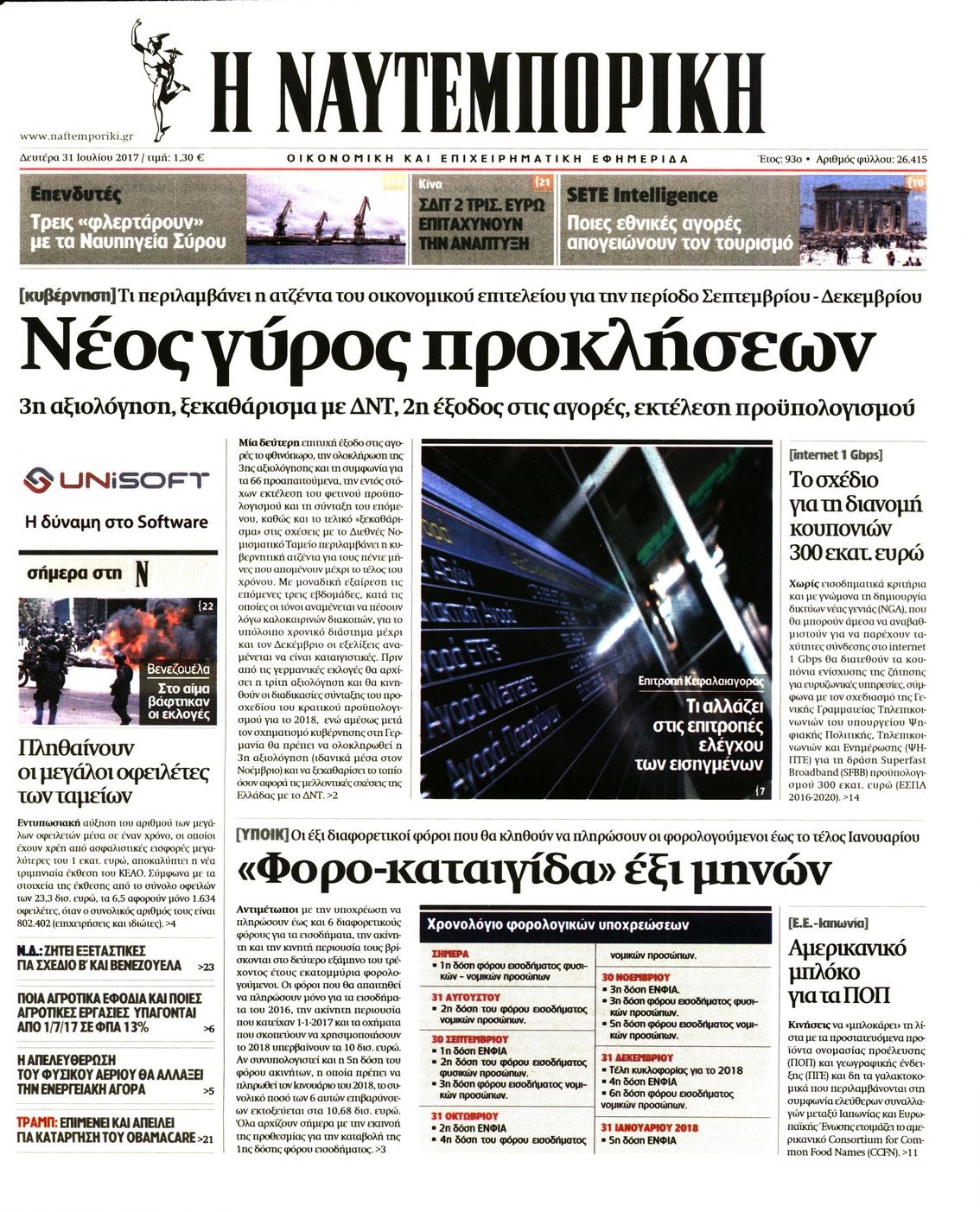 Οι οικονομικές εφημερίδες 31/7/2017 Enikos Newsroom 07:16, Δευτέρα 31 Ιουλίου 2017 Media Διαβάστε τα σημερινά πρωτοσέλιδα των οικονομικών εφημερίδων: ΟΙΚΟΝΟΜΙΚΕΣ ΕΦΗΜΕΡΙΔΕΣ ΠΡΩΤΟΣΕΛΙΔΑ Μοιράσου το: σχολίασε κι εσύ (0 σχόλια) Ακολουθήστε το enikos.gr στο Google News και μάθετε πρώτοι όλες τις ειδήσεις Δείτε όλες τις τελευταίες ειδήσεις από την Ελλάδα και τον Κόσμο στο enikos.gr Ειδήσεις Ροή Ειδήσεων 3 ώρες πριν Αυξάνουν την πίεση προς την κυβέρνηση οι αγρότες: Κλείνουν παρακαμπτήριους και ανοίγουν διόδια – Τι θα γίνει τις γιορτές 1 ώρα πριν ΟΠΕΚΕΠΕ: Προφυλακιστέος ο φερόμενος αρχηγός και ο λογιστής της εγκληματικής οργάνωσης 2 ώρες πριν Φοινικούντα: Το Σάββατο απολογείται ο 30χρονος γιος γνωστού επιχειρηματία της Πλάκας που παραδόθηκε – Όσα είπε στους αστυνομικούς και ο ρόλος του στο έγκλημα 2 ώρες πριν Μπορεί ο Μαδούρο να αντέξει τον αποκλεισμό του Τραμπ; Τι θα χρειαστεί η Ουάσινγκτον για να τον ανατρέψει 4 ώρες πριν Πρίγκιπας Ουίλιαμ – Κέιτ: Η νέα οικογενειακή φωτογραφία για τις Χριστουγεννιάτικες κάρτες του 2025 3 ώρες πριν Ύπνος: Η απλή βραδινή ρουτίνα για να προστατεύσετε τα μαλλιά σας από το κρύο κατά τη διάρκεια του χειμώνα 4 ώρες πριν Manifesting: Πώς να συναντήσετε τον σύντροφο της ζωής σας, ανάλογα με τον μήνα γέννησής σας 2 ημέρες πριν 20 χρόνια τα Χριστούγεννα ξεκινούν στα Public με μεγάλη ποικιλία σε δώρα! 2 ώρες πριν Αρχαιολόγοι ανακάλυψαν ρωμαϊκά τεχνουργήματα από μια πόλη που δεν υπήρξε ποτέ – Τα τρία εντυπωσιακά κτίρια και ο αμφορέας με τις… σαρδέλες 4 λεπτά πριν Νέος πρέσβης της Μεγάλης Βρετανίας στις ΗΠΑ ο Κρίστιαν Τέρνερ 7 λεπτά πριν Conference League: Με Νόα, Ντρίτα, Άλκμααρ ή Τσέλιε στους «16» η ΑΕΚ 16 λεπτά πριν Conference League: Απευθείας στους «16» η ΑΕΚ Λάρνακας και η Ρακόβ των Σβάρνα και Κωνσταντόπουλου – Τα αποτελέσματα και η βαθμολογία, 3η η ΑΕΚ 26 λεπτά πριν Σε ομάδες που συνδέονται με το ρωσικό κράτος αποδίδει η Δανία δύο κυβερνοεπιθέσεις που δέχθηκε 40 λεπτά πριν Βαθμολογία UEFA: Η Πολωνία προσπέρασε την Ελλάδα ENIKOS NETWORK Σε περίοδο αυξημένης δραστηριότητας η γρίπη στην Ελλάδα-Μέτρα προστασίας από τον ΕΟΔΥ Σκέφτεστε συνέχεια συζητήσεις που έχετε κάνει; Τι σημαίνει αυτό, σύμφωνα με ειδικό Στεγαστικό: Τι λέει η ΠΟΜΙΔΑ για τα νέα μέτρα που ανακοίνωσε ο Κυριάκος Μητσοτάκης Λαγκάρντ: Αισιόδοξη για την ανάπτυξη της Ευρωζώνης, αβέβαιη για τον πληθωρισμό Χαρτογραφώντας το «σημείο χωρίς επιστροφή»: Για πρώτη φορά αποκαλύπτεται με λεπτομέρεια το ακανθώδες όριο της ατμόσφαιρας τ... Η Google καταργεί τη λειτουργία «dark web report» – Πώς θα μπορούν οι χρήστες να διαγράφουν τα δεδομένα τους περισσότερα 17:45 , Πέμπτη 18 Δεκεμβρίου 2025 ROUK ZOUK: Εορταστικό επεισόδιο με καλεσμένους τους πρωταγωνιστές του «Γιατί ρε πατέρα» Το Σάββατο 20 Δεκεμβρίου στις 21:00, η Ζέτα Μακρυπούλια υποδέχεται εκλεκτούς ηθοποιούς που όλο... 17:20 , Πέμπτη 18 Δεκεμβρίου 2025 Άγιος έρωτας: Η Χριστίνα εξομολογείται στον πατέρα Νικόλαο, απόψε στις 21:00 στον Alpha Η Νότα αποφασίζει να εκδικηθεί τον Πέτρο και τον Στέφανο, για χάρη του Λούη, όμως τα πράγματα ... 16:50 , Πέμπτη 18 Δεκεμβρίου 2025 Να μ’ αγαπάς: Ζωή και Φωτεινή συμφιλιώνονται ως μάνα με κόρη, απόψε στις 20:00 Η ταυτότητα του Άγγελου αποκαλύπτεται στο νέο επεισόδιο της σειράς “Να μ’ αγαπάς... 15:52 , Πέμπτη 18 Δεκεμβρίου 2025 Το Σπίτι Δίπλα Στο Ποτάμι: Το καθηλωτικό τελευταίο επεισόδιο για το 2025 απόψε στις 22:30 Καθηλώνει το σημερινό επεισόδιο της σειράς “Το Σπίτι Δίπλα Στο Ποτάμι” που έρχεται... ΤΕΛΕΥΤΑΙΕ
