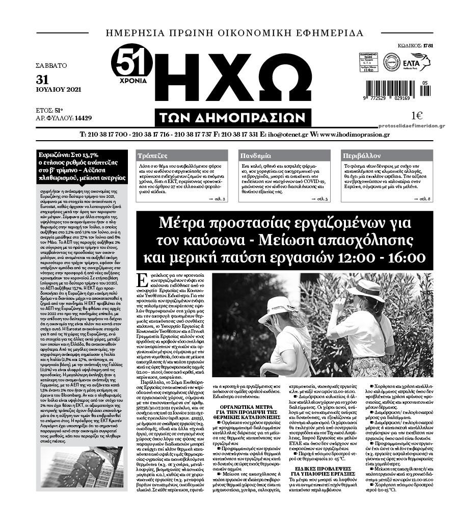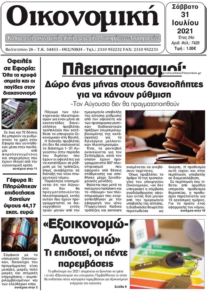 Οι οικονομικές εφημερίδες 31/7/2021 Διονύσης Νίκκας 07:30, Σάββατο 31 Ιουλίου 2021 Media Διαβάστε τα πρωτοσέλιδα των οικονομικών εφημερίδων… ΟΙΚΟΝΟΜΙΚΕΣ ΕΦΗΜΕΡΙΔΕΣ Μοιράσου το: σχολίασε κι εσύ (0 σχόλια) Ακολουθήστε το enikos.gr στο Google News και μάθετε πρώτοι όλες τις ειδήσεις Δείτε όλες τις τελευταίες ειδήσεις από την Ελλάδα και τον Κόσμο στο enikos.gr Ειδήσεις Ροή Ειδήσεων 2 ώρες πριν Ευρωπαϊκή Ένωση: Συμφωνία για δάνειο 90 δισ. ευρώ στην Ουκρανία τη διετία 2026-2027 7 ώρες πριν ΟΠΕΚΕΠΕ: Προφυλακιστέος ο φερόμενος αρχηγός και ο λογιστής της εγκληματικής οργάνωσης 8 ώρες πριν Αυξάνουν την πίεση προς την κυβέρνηση οι αγρότες: Κλείνουν παρακαμπτήριους και ανοίγουν διόδια – Τι θα γίνει τις γιορτές 8 ώρες πριν Φοινικούντα: Το Σάββατο απολογείται ο 30χρονος γιος γνωστού επιχειρηματία της Πλάκας που παραδόθηκε – Όσα είπε στους αστυνομικούς και ο ρόλος του στο έγκλημα 6 ώρες πριν ΑΕΚ – Κραϊόβα 3-2: Επική ανατροπή και πρόκριση στους «16» του Conference League η Ένωση 7 ώρες πριν Αρχαιολόγοι ανακάλυψαν ρωμαϊκά τεχνουργήματα από μια πόλη που δεν υπήρξε ποτέ – Τα τρία εντυπωσιακά κτίρια και ο αμφορέας με τις… σαρδέλες 8 ώρες πριν Ύπνος: Η απλή βραδινή ρουτίνα για να προστατεύσετε τα μαλλιά σας από το κρύο κατά τη διάρκεια του χειμώνα 9 ώρες πριν Manifesting: Πώς να συναντήσετε τον σύντροφο της ζωής σας, ανάλογα με τον μήνα γέννησής σας 2 ημέρες πριν 20 χρόνια τα Χριστούγεννα ξεκινούν στα Public με μεγάλη ποικιλία σε δώρα! 2 λεπτά πριν ΕΥΔΑΠ: Αλλάζουν τα τιμολόγια του νερού 10 λεπτά πριν Οπτική ψευδαίσθηση: Μόνο αν έχεις αετίσια ματιά θα βρεις τον παπαγάλο σε 12 δευτερόλεπτα 17 λεπτά πριν Αθήνα: Βρέθηκε η 16χρονη που είχε εξαφανιστεί από τις 6 Δεκεμβρίου – Η ανακοίνωση από το «Χαμόγελο του Παιδιού» 25 λεπτά πριν Κρύα χέρια και πόδια: Γιατρός εξηγεί ποια είναι η αίτια και πότε πρέπει να ανησυχήσετε 32 λεπτά πριν Σαν σήμερα 19 Δεκεμβρίου: Τα σημαντικότερα γεγονότα της ημέρας ENIKOS NETWORK Σε περίοδο αυξημένης δραστηριότητας η γρίπη στην Ελλάδα-Μέτρα προστασίας από τον ΕΟΔΥ Σκέφτεστε συνέχεια συζητήσεις που έχετε κάνει; Τι σημαίνει αυτό, σύμφωνα με ειδικό Στεγαστικό: Τι λέει η ΠΟΜΙΔΑ για τα νέα μέτρα που ανακοίνωσε ο Κυριάκος Μητσοτάκης Λαγκάρντ: Αισιόδοξη για την ανάπτυξη της Ευρωζώνης, αβέβαιη για τον πληθωρισμό Χαρτογραφώντας το «σημείο χωρίς επιστροφή»: Για πρώτη φορά αποκαλύπτεται με λεπτομέρεια το ακανθώδες όριο της ατμόσφαιρας τ... Η Google καταργεί τη λειτουργία «dark web report» – Πώς θα μπορούν οι χρήστες να διαγράφουν τα δεδομένα τους περισσότερα 05:48 , Παρασκευή 19 Δεκεμβρίου 2025 Οι οικονομικές εφημερίδες 19/12/2025 Διαβάστε τα πρωτοσέλιδα από τις οικονομικές εφημερίδες, σήμερα 19/12/2025. 05:43 , Παρασκευή 19 Δεκεμβρίου 2025 Οι αθλητικές εφημερίδες 19/12/2025 Διαβάστε τα πρωτοσέλιδα από τις αθλητικές εφημερίδες, σήμερα 19/12/2025. 05:38 , Παρασκευή 19 Δεκεμβρίου 2025 Οι πολιτικές εφημερίδες 19/12/2025 Διαβάστε τα πρωτοσέλιδα από τις πολιτικές εφημερίδες, σήμερα 19/12/2025. 02:50 , Παρασκευή 19 Δεκεμβρίου 2025 GNTM: «Κλείδωσαν» οι τέσσερις φιναλίστ – Μεγάλη ανατροπή στις τελευταίες αποχωρήσεις Για προτελευταία φορά εμφανίστηκαν στο πλατό του GNTM οι φιναλίστ του φετινού κύκλου, το βράδυ... ΤΕΛΕΥΤΑΙΕΣ ΕΙΔΗΣΕΙΣ 10 λεπτά πριν Οπτική ψευδαίσθηση: Μόνο αν έχεις αετίσια ματιά θα... 17 λεπτά πριν Αθήνα: Βρέθηκε η 16χρονη που είχε εξαφανιστεί από τις 6... 25 λεπτά πριν Κρύα χέρια και πόδια: Γιατρός εξηγεί ποια είναι η... 32 λεπτά πριν Σαν σήμερα 19 Δεκεμβρίου: Τα σημαντικότερα
