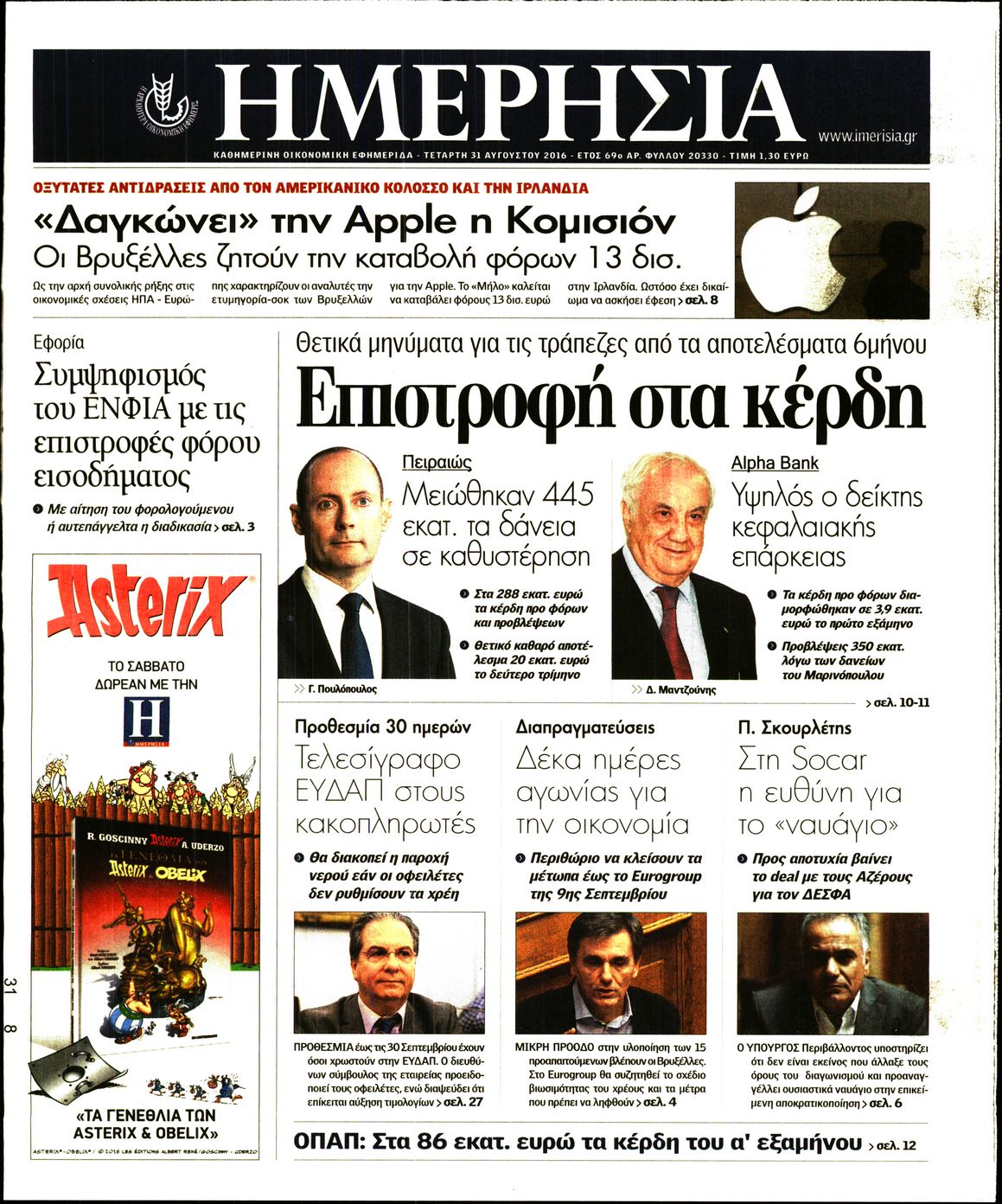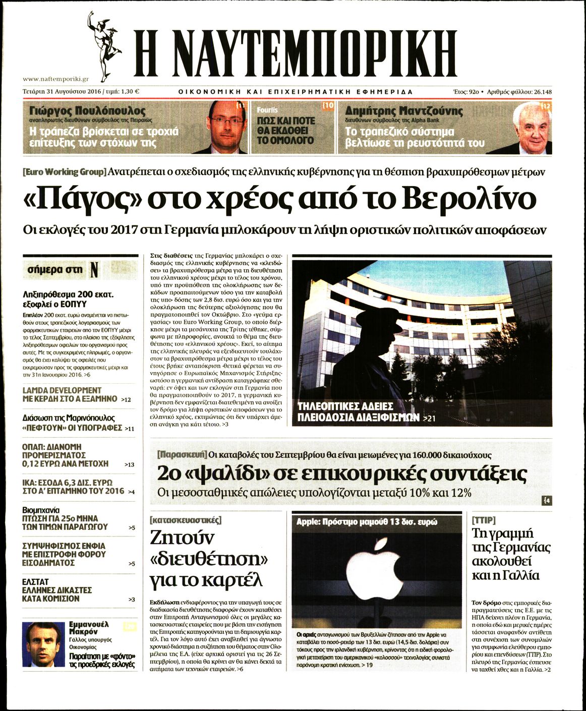 Oι οικονομικές εφημερίδες 31/8/2016 Enikos Newsroom 04:46, Τετάρτη 31 Αυγούστου 2016 Media Διαβάστε τα σημερινά πρωτοσέλιδα των οικονομικών εφημερίδων: ΟΙΚΟΝΟΜΙΚΕΣ ΕΦΗΜΕΡΙΔΕΣ ΠΡΩΤΟΣΕΛΙΔΑ Μοιράσου το: σχολίασε κι εσύ (0 σχόλια) Ακολουθήστε το enikos.gr στο Google News και μάθετε πρώτοι όλες τις ειδήσεις Δείτε όλες τις τελευταίες ειδήσεις από την Ελλάδα και τον Κόσμο στο enikos.gr Ειδήσεις Ροή Ειδήσεων 2 ώρες πριν Χριστούγεννα στα μπλόκα: Επιμένουν στις κινητοποιήσεις τους οι αγρότες – Ανοίγουν τα διόδια το Σαββατοκύριακο 2 ώρες πριν Ουκρανία: Η άνευ προηγουμένου επίθεση σε ρωσικό τάνκερ στη Μεσόγειο και το μήνυμα προς στον Πούτιν – Το «μακρύ χέρι» του Κιέβου 1 ώρα πριν Πούτιν: Τα μηνύματα σε Ευρώπη και ΝΑΤΟ από το μαραθώνιο «σόου» του – Η απαίτηση για «σεβασμό» και η ειρήνη «με τους όρους» της Μόσχας 2 ώρες πριν Τραμπ: Δεν αποκλείει την πιθανότητα ενός πολέμου στη Βενεζουέλα – «Ο Μαδούρο ξέρει καλύτερα από τον καθένα τι ακριβώς θέλω» 3 ώρες πριν Συνεχίζει να προκαλεί ο Μίτσκοσκι: «Για μένα το όνομα Μακεδονία είναι ιερό» 1 ώρα πριν Ανακαλύφθηκαν αρχαία χρυσά νομίσματα 2.200 ετών που απεικονίζουν τον θεό Απόλλωνα – Η άγνωστη σύνδεση με τον Φίλιππο Β΄ της Μακεδονίας 2 ώρες πριν Ύπνος: Μια κρυφή κατάσταση του εγκεφάλου πριν από τον ύπνο μπορεί να είναι το “κλειδί” για υψηλή ευφυΐα και δημιουργικότητα 3 ώρες πριν Αριθμολογία: Οι άνθρωποι που έχουν γεννηθεί αυτές τις 4 ημερομηνίες, συχνά παρεξηγούνται – «Η καλοσύνη τους κρύβει τεράστια δύναμη» 4 ώρες πριν Ξεχάστε το καθάρισμα το Σαββατοκύριακο: Ο «κανόνας των 20 λεπτών» που θα σας λύσει τα χέρια 9 λεπτά πριν Βασίλης Σπανούλης: Δεν εμφανίστηκε ούτε ένας δημοσιογράφος στην συνέντευξη Τύπου – «Καλησπέρα στον… κανέναν», δείτε βίντεο 20 λεπτά πριν Πόλεμος στην Ουκρανία: Εφτά νεκροί από ρωσική πυραυλική επίθεση στο λιμάνι της Οδησσού 24 λεπτά πριν ΗΠΑ: Η κυβέρνηση του Ντόναλντ Τραμπ άρχισε να δημοσιοποιεί τα αρχεία Έπσταϊν 35 λεπτά πριν Σάμος: Άνοιξε το μπλόκο των αγροτών στον κόμβο Κοκκαρίου – Σε νέα συνεδρίαση θα καθορίσουν την στάση τους 43 λεπτά πριν Άνω Λιόσια: Πυροβολισμοί σε επιχείρηση με χαλιά – Εντοπίστηκαν 10 κάλυκες ENIKOS NETWORK Το ΕΚΑΒ τιμήθηκε από την Ακαδημία Αθηνών για τα 40 χρόνια προσφοράς του Έχετε πραγματικά μεγάλη καρδιά; 10 χαρακτηριστικά όσων έχουν καλοσύνη Αναστολή μέτρων αναγκαστικής εκτέλεσης για κτηνοτρόφους που πλήττονται από την ευλογιά των αιγοπροβάτων Πλήρης επάρκεια προϊόντων στις λαϊκές της Αττικής, παρά τις αγροτικές κινητοποιήσεις – Τι απαντούν οι πωλητές Χαρτογραφώντας το «σημείο χωρίς επιστροφή»: Για πρώτη φορά αποκαλύπτεται με λεπτομέρεια το ακανθώδες όριο της ατμόσφαιρας τ... Η Google καταργεί τη λειτουργία «dark web report» – Πώς θα μπορούν οι χρήστες να διαγράφουν τα δεδομένα τους περισσότερα 22:42 , Παρασκευή 19 Δεκεμβρίου 2025 Γιώργος Γιαννόπουλος για “Το σόι σου”: “Είναι ευτυχία και ευλογία αυτή η σειρά” «Είναι ευτυχία και ευλογία η συγκυρία αυτής της σειράς», θα πει ο Γιώργος Γιαννόπουλος -ο αγαπ... 20:37 , Παρασκευή 19 Δεκεμβρίου 2025 Don’t Forget The Lyrics: Η Έλλη Κοκκίνου υποδέχεται 4 παίκτες που θα κάνουν τα πάντα για να μη χάσουν ούτε… μισή λέξη από τους στίχους Το «Don’t Forget The Lyrics» επιστρέφει απόψε, Παρασκευή 19 Δεκεμβρίου, στις 21:00 με νέο επει... 19:31 , Παρασκευή 19 Δεκεμβρίου 2025 GNTM: Απόψε ο μεγάλος τελικός για τους 4 φιναλίστ Έπειτα από μήνες γεμάτους μόδα, δημιουργία και έντονες αναμετρήσεις, το GNTM 2025 κορυφώνεται,... 18:11 , Π