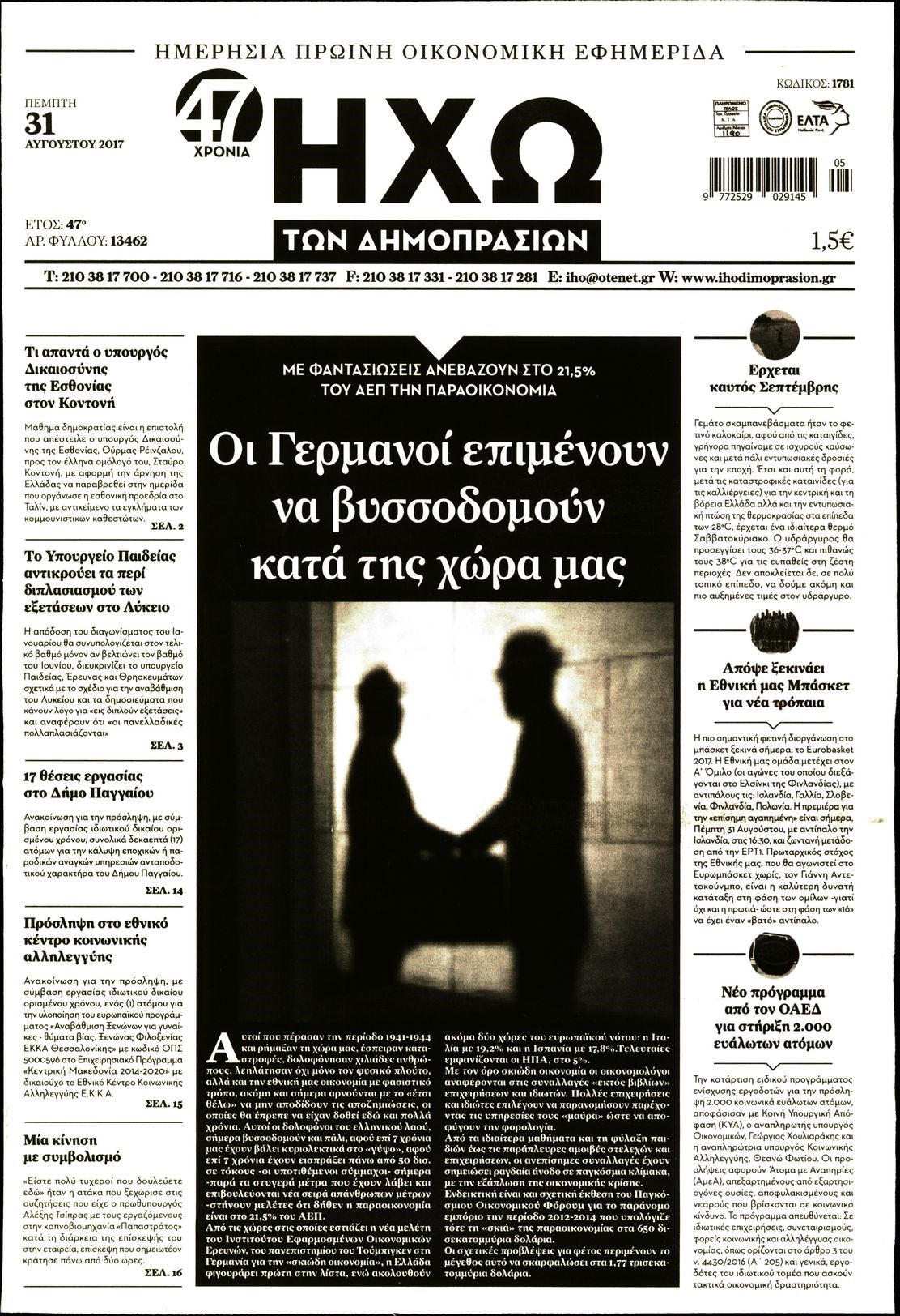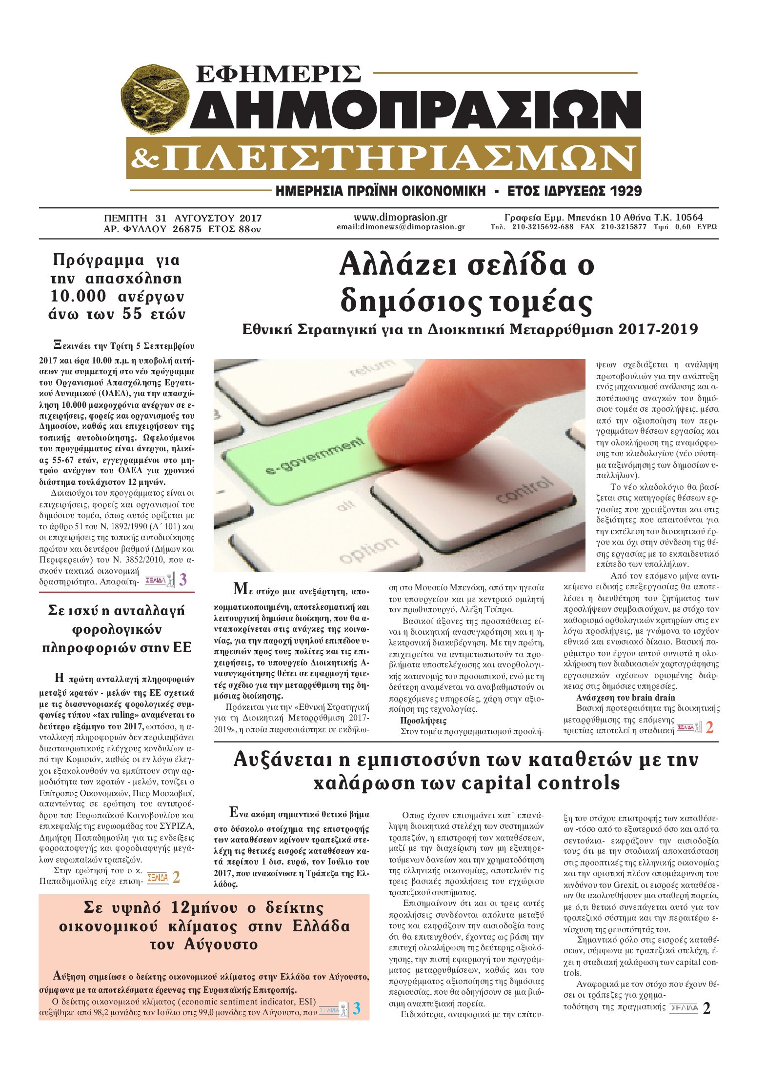 Οι οικονομικές εφημερίδες 31/8/2017 Enikos Newsroom 07:20, Πέμπτη 31 Αυγούστου 2017 Media Διαβάστε τα σημερινά πρωτοσέλιδα των οικονομικών εφημερίδων: ΟΙΚΟΝΟΜΙΚΕΣ ΕΦΗΜΕΡΙΔΕΣ ΠΡΩΤΟΣΕΛΙΔΑ Μοιράσου το: σχολίασε κι εσύ (0 σχόλια) Ακολουθήστε το enikos.gr στο Google News και μάθετε πρώτοι όλες τις ειδήσεις Δείτε όλες τις τελευταίες ειδήσεις από την Ελλάδα και τον Κόσμο στο enikos.gr Ειδήσεις Ροή Ειδήσεων 44 λεπτά πριν Ευρωπαϊκή Ένωση: Χωρίς συμφωνία, για την μακροπρόθεσμη χρηματοδότηση της Ουκρανίας, ολοκληρώθηκε η Σύνοδος Κορυφής στις Βρυξέλλες 4 ώρες πριν ΟΠΕΚΕΠΕ: Προφυλακιστέος ο φερόμενος αρχηγός και ο λογιστής της εγκληματικής οργάνωσης 5 ώρες πριν Αυξάνουν την πίεση προς την κυβέρνηση οι αγρότες: Κλείνουν παρακαμπτήριους και ανοίγουν διόδια – Τι θα γίνει τις γιορτές 5 ώρες πριν Φοινικούντα: Το Σάββατο απολογείται ο 30χρονος γιος γνωστού επιχειρηματία της Πλάκας που παραδόθηκε – Όσα είπε στους αστυνομικούς και ο ρόλος του στο έγκλημα 4 ώρες πριν ΑΕΚ – Κραϊόβα 3-2: Επική ανατροπή και πρόκριση στους «16» του Conference League η Ένωση 5 ώρες πριν Αρχαιολόγοι ανακάλυψαν ρωμαϊκά τεχνουργήματα από μια πόλη που δεν υπήρξε ποτέ – Τα τρία εντυπωσιακά κτίρια και ο αμφορέας με τις… σαρδέλες 6 ώρες πριν Ύπνος: Η απλή βραδινή ρουτίνα για να προστατεύσετε τα μαλλιά σας από το κρύο κατά τη διάρκεια του χειμώνα 7 ώρες πριν Manifesting: Πώς να συναντήσετε τον σύντροφο της ζωής σας, ανάλογα με τον μήνα γέννησής σας 2 ημέρες πριν 20 χρόνια τα Χριστούγεννα ξεκινούν στα Public με μεγάλη ποικιλία σε δώρα! 16 δευτερόλεπτα πριν Στη Φλόριντα σήμερα οι διαβουλεύσεις σχετικά με τα επόμενα στάδια για τη Λωρίδα της Γάζας 5 λεπτά πριν Σίσσυ Τουμάση: «Είμαι ασθενοφοβική πάρα πολύ και με πιάνει μια παράνοια μ’ αυτό» 29 λεπτά πριν Ντόναλντ Τραμπ: Δεν χρειάζομαι την έγκριση του Κογκρέσου για να διατάξω στρατιωτικά πλήγματα στη Βενεζουέλα 44 λεπτά πριν Ευρωπαϊκή Ένωση: Χωρίς συμφωνία, για την μακροπρόθεσμη χρηματοδότηση της Ουκρανίας, ολοκληρώθηκε η Σύνοδος Κορυφής στις Βρυξέλλες 60 λεπτά πριν GNTM: «Κλείδωσαν» οι τέσσερις φιναλίστ – Μεγάλη ανατροπή στις τελευταίες αποχωρήσεις ENIKOS NETWORK Σε περίοδο αυξημένης δραστηριότητας η γρίπη στην Ελλάδα-Μέτρα προστασίας από τον ΕΟΔΥ Σκέφτεστε συνέχεια συζητήσεις που έχετε κάνει; Τι σημαίνει αυτό, σύμφωνα με ειδικό Στεγαστικό: Τι λέει η ΠΟΜΙΔΑ για τα νέα μέτρα που ανακοίνωσε ο Κυριάκος Μητσοτάκης Λαγκάρντ: Αισιόδοξη για την ανάπτυξη της Ευρωζώνης, αβέβαιη για τον πληθωρισμό Χαρτογραφώντας το «σημείο χωρίς επιστροφή»: Για πρώτη φορά αποκαλύπτεται με λεπτομέρεια το ακανθώδες όριο της ατμόσφαιρας τ... Η Google καταργεί τη λειτουργία «dark web report» – Πώς θα μπορούν οι χρήστες να διαγράφουν τα δεδομένα τους περισσότερα 02:50 , Παρασκευή 19 Δεκεμβρίου 2025 GNTM: «Κλείδωσαν» οι τέσσερις φιναλίστ – Μεγάλη ανατροπή στις τελευταίες αποχωρήσεις Για προτελευταία φορά εμφανίστηκαν στο πλατό του GNTM οι φιναλίστ του φετινού κύκλου, το βράδυ... 17:45 , Πέμπτη 18 Δεκεμβρίου 2025 ROUK ZOUK: Εορταστικό επεισόδιο με καλεσμένους τους πρωταγωνιστές του «Γιατί ρε πατέρα» Το Σάββατο 20 Δεκεμβρίου στις 21:00, η Ζέτα Μακρυπούλια υποδέχεται εκλεκτούς ηθοποιούς που όλο... 17:20 , Πέμπτη 18 Δεκεμβρίου 2025 Άγιος έρωτας: Η Χριστίνα εξομολογείται στον πατέρα Νικόλαο, απόψε στις 21:00 στον Alpha Η Νότα αποφασίζει να εκδικηθεί τον Πέτρο και τον Στέφανο, για χάρη του Λούη, όμως τα πράγματα ... 16:50 , Πέμπτη 18 Δεκεμβρίου 2025 Να μ’ αγαπάς: Ζωή και Φωτεινή συμφιλι