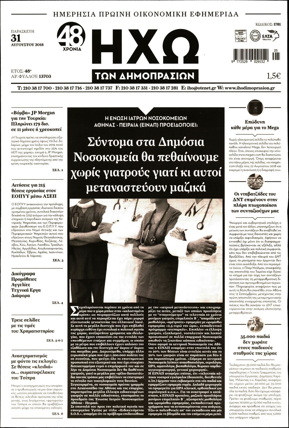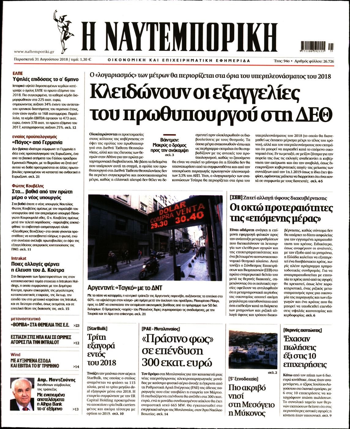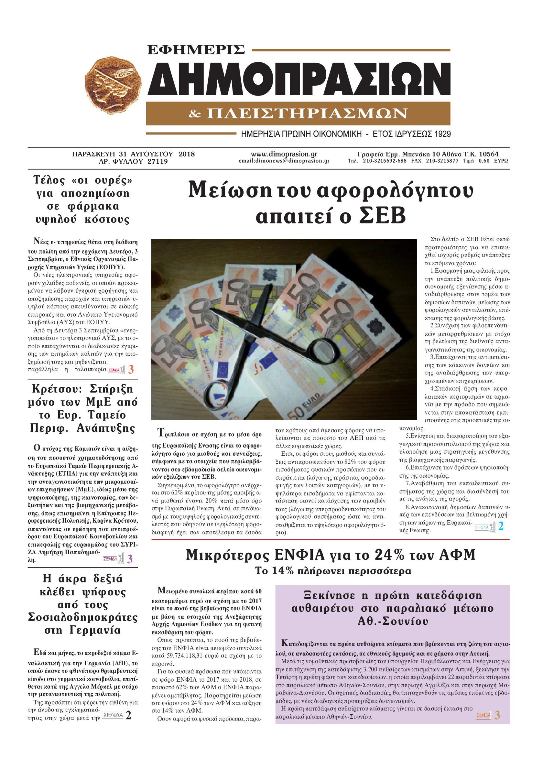 Οι οικονομικές εφημερίδες 31/8/2018 Enikos Newsroom 06:28, Παρασκευή 31 Αυγούστου 2018 Media Διαβάστε τα πρωτοσέλιδα των οικονομικών εφημερίδων. ΟΙΚΟΝΟΜΙΚΕΣ ΕΦΗΜΕΡΙΔΕΣ ΠΡΩΤΟΣΕΛΙΔΑ Μοιράσου το: σχολίασε κι εσύ (0 σχόλια) Ακολουθήστε το enikos.gr στο Google News και μάθετε πρώτοι όλες τις ειδήσεις Δείτε όλες τις τελευταίες ειδήσεις από την Ελλάδα και τον Κόσμο στο enikos.gr Ειδήσεις Ροή Ειδήσεων 2 ώρες πριν Αγρότες: Πολύωροι αποκλεισμοί στα τελωνεία Προμαχώνα, Εξοχής, Ευζώνων και Νίκης – Κλείνουν τον κόμβο Φιλώτα οι παραγωγοί στη Δυτική Μακεδονία 2 ώρες πριν Νίκος Παππάς: Ζητώ συγγνώμη για αυτό το επεισόδιο – Δεν τον γρονθοκόπησα 1 ώρα πριν Πούτιν: Η Ουκρανία δεν είναι έτοιμη για ειρηνευτικές συνομιλίες – ο ρωσικός στρατός προελαύνει σε όλα τα μέτωπα 42 λεπτά πριν Κρήτη: Στο Ρέθυμνο μεταφέρονται οι εκατοντάδες μετανάστες που διασώθηκαν ανοιχτά της Γαύδου 2 ώρες πριν Τρομακτικό βίντεο: Η στιγμή της έκρηξης στο τζετ που μετέφερε τον οδηγό του NASCAR, Γκρεγκ Μπιφλ και την οικογένειά του 3 ώρες πριν Αλλαγή σελίδας για 3 ζώδια – «Μία δύσκολη περίοδος φτάνει στο τέλος της» 2 ημέρες πριν 20 χρόνια τα Χριστούγεννα ξεκινούν στα Public με μεγάλη ποικιλία σε δώρα! 2 ώρες πριν Γεμάτος νεροχύτης; 5 σοβαρές ευθύνες που «φοβίζουν» όσους αφήνουν άπλυτα πιάτα 47 λεπτά πριν Ειδικός μοιράζεται 6 κόλπα για να διατηρείστε σε φόρμα με πάνω από 40 ώρες εργασίας την εβδομάδα: «Προπονηθείτε πριν από τη δουλειά, όχι μετά» 6 λεπτά πριν Αγρότες: Παραμένουν στα μπλόκα και ενισχύουν τις δράσεις τους σε Ημαθία, Πέλλα, Πιερία και Καβάλα 12 λεπτά πριν Γιώργος Μαζωνάκης: «Φοβόταν, θεώρησα ότι έπρεπε να τον προστατεύσω» – Τι λέει η τραγουδίστρια, Νωαίνα για τον Στέφανο Παπαδόπουλο 17 λεπτά πριν Βελόπουλος: Ό,τι και να κάνουν στην κυβέρνηση, όλοι οι υπαίτιοι του εγκλήματος των Τεμπών θα μπουν στην φυλακή 23 λεπτά πριν ΕΥΔΑΠ: 17 ερωτήσεις και απαντήσεις για τις αλλαγές στα τιμολόγια του νερού 30 λεπτά πριν Οδοντιατρικός Σύλλογος Αττικής: Προσοχή στις παραπλανητικές διαφημίσεις οδοντικών εμφυτευμάτων ENIKOS NETWORK Κίνδυνος παραπλάνησης από διαφημίσεις οδοντικών εμφυτευμάτων Καρκίνος του πνεύμονα: Έως 8.000 ζωές μπορούν να σωθούν με την έγκαιρη διάγνωση Αγορά πολυτελών κατοικιών: Αυτές είναι οι προτεραιότητες των αγοραστών – Σε ποιες περιοχές στρέφονται και τι επιλέγουν ΕΥΔΑΠ: Στο τραπέζι αλλαγές στους λογαριασμούς του νερού – Τι θα ισχύσει για ευάλωτα νοικοκυριά και επιχειρήσεις Χαρτογραφώντας το «σημείο χωρίς επιστροφή»: Για πρώτη φορά αποκαλύπτεται με λεπτομέρεια το ακανθώδες όριο της ατμόσφαιρας τ... Η Google καταργεί τη λειτουργία «dark web report» – Πώς θα μπορούν οι χρήστες να διαγράφουν τα δεδομένα τους περισσότερα 08:00 , Παρασκευή 19 Δεκεμβρίου 2025 Την Κυριακή με τη Realnews: Δωροεπιταγή 10€ Δωροεπιταγή αξίας 10€ για αγορές άνω των 60€ από τα πολυκαταστήματα FactoryOutlet H προσφορά ι... 05:48 , Παρασκευή 19 Δεκεμβρίου 2025 Οι οικονομικές εφημερίδες 19/12/2025 Διαβάστε τα πρωτοσέλιδα από τις οικονομικές εφημερίδες, σήμερα 19/12/2025. 05:43 , Παρασκευή 19 Δεκεμβρίου 2025 Οι αθλητικές εφημερίδες 19/12/2025 Διαβάστε τα πρωτοσέλιδα από τις αθλητικές εφημερίδες, σήμερα 19/12/2025. 05:38 , Παρασκευή 19 Δεκεμβρίου 2025 Οι πολιτικές εφημερίδες 19/12/2025 Διαβάστε τα πρωτοσέλιδα από τις πολιτικές εφημερίδες, σήμερα 19/12/2025. ΤΕΛΕΥΤΑΙΕΣ ΕΙΔΗΣΕΙΣ 6 λεπτά πριν Αγρότες: Παραμένουν στα μπλόκα και ενισχύουν τις... 12 λεπτά πριν Γιώργος Μαζωνάκης: «Φοβόταν, θεώρησα ότι έπρεπε να τον... 17 λεπτά πριν Βελ