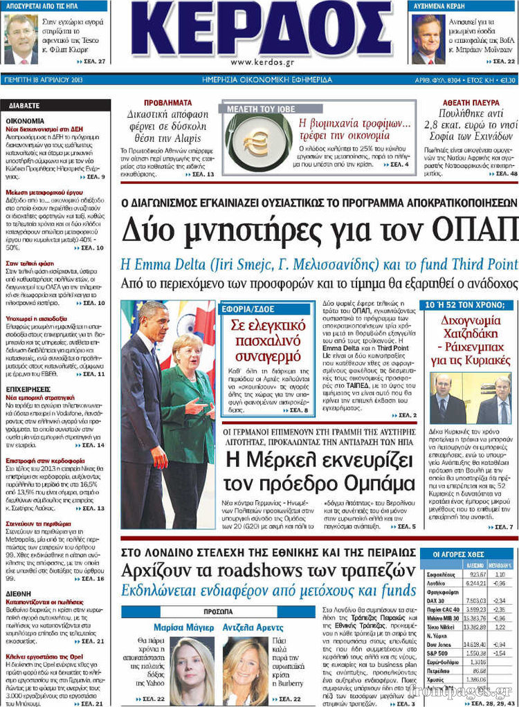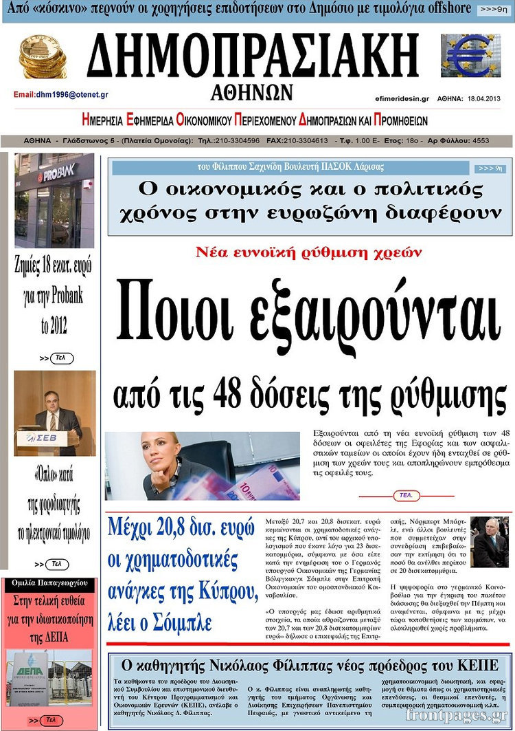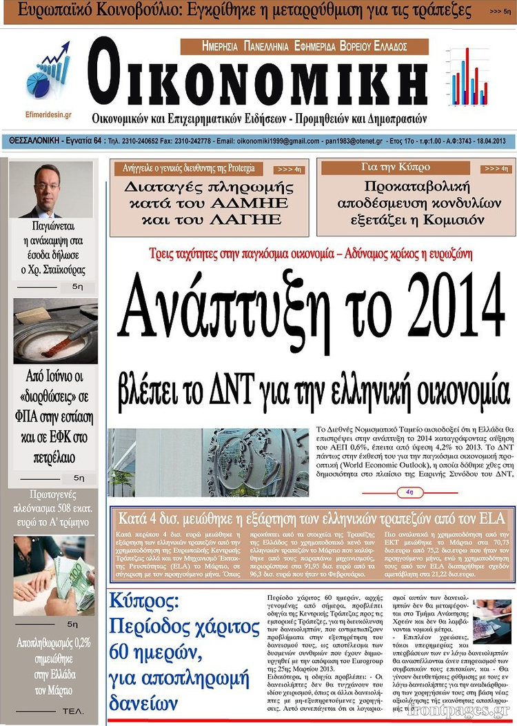 Οι οικονομικές εφημερίδες Enikos Newsroom 08:24, Πέμπτη 18 Απριλίου 2013 Media Οι οικονομικές εφημερίδες Τα πρωτοσέλιδα των οικονομικών εφημερίδων. ΕΦΗΜΕΡΙΔΕΣ ΟΙΚΟΝΟΜΙΚΕΣ ΕΦΗΜΕΡΙΔΕΣ ΠΡΩΤΟΣΕΛΙΔΑ Μοιράσου το: σχολίασε κι εσύ (0 σχόλια) Ακολουθήστε το enikos.gr στο Google News και μάθετε πρώτοι όλες τις ειδήσεις Δείτε όλες τις τελευταίες ειδήσεις από την Ελλάδα και τον Κόσμο στο enikos.gr Ειδήσεις Ροή Ειδήσεων 6 λεπτά πριν Κυψέλη: Επεισόδιο με μαχαίρωμα μέσα σε σχολείο – Τραυματίστηκε 14χρονη 1 ώρα πριν Βουλή: Κατατέθηκε το νομοσχέδιο για την αναδιάρθρωση των Ενόπλων Δυνάμεων – Όλα όσα προβλέπει 37 λεπτά πριν Παύλος Μαρινάκης: Στις 15:00 οι ανακοινώσεις Τσιάρα για τα αιτήματα των αγροτών – «Δεν γίνεται διάλογος με ταχυδρομικά περιστέρια» 3 ώρες πριν Σίδνεϊ: Τα ονόματα των θυμάτων από την τρομοκρατική επίθεση – Η 10χρονη Ματίλντα και ο επιζών του Ολοκαυτώματος που έσωσε τη γυναίκα του 4 ώρες πριν Δείτε LIVE το συνέδριο «Ελληνικός Τουρισμός, Μια Εθνική Υπόθεση!» 2 ώρες πριν Μακροζωία: 55χρονος που ισχυρίζεται ότι βιολογικά είναι 20 ετών μοιράζεται μια απλή συμβουλή για υγιή εγκέφαλο 4 ώρες πριν Τα 3 ζώδια που μπαίνουν σε μια νέα δυναμική εποχή – «Είστε έτοιμοι για όλα» 3 ώρες πριν Οι 8 φράσεις που δίνουν αμέσως την εντύπωση πως είστε δύσκολος άνθρωπος 5 ώρες πριν Κληρονόμησε 2,8 εκατ. ευρώ και φοβάται ότι οι άνδρες θα την πλησιάζουν για τα λεφτά – «Μήπως καλύτερα να το κρατήσω μυστικό;» 1 λεπτό πριν Κουτσούμπας: Πραγματικός ξεσηκωμός ο μεγαλειώδης αγώνας των αγροτών – Δώστε λύσεις τώρα κι αφήστε την κοροϊδία 6 λεπτά πριν Κυψέλη: Επεισόδιο με μαχαίρωμα μέσα σε σχολείο – Τραυματίστηκε 14χρονη 7 λεπτά πριν Σκέρτσος: Η μη υπαγωγή του ΟΠΕΚΕΠΕ στην ΑΑΔΕ θα φέρει ιδιότυπο αγροτικό Grexit 12 λεπτά πριν Θεσσαλονίκη: Δύσκολη… πίστα για τους αστυνομικούς ένα αγριογούρουνο – Έδωσαν αγώνα για να το πιάσουν – ΒΙΝΤΕΟ 17 λεπτά πριν Porto Leone: Στη γειτονιά με τα κόκκινα φανάρια – Στο τμήμα Γαλήνη και Γρηγόρης, ο Ντίνος Βούλγαρης σε σοκ ENIKOS NETWORK ΠΟΕΔΗΝ: Ανανέωση των συμβάσεων του ειδικού προγράμματος ΔΥΠΑ 55 ετών και άνω σε δομές Υγείας Γιατί τρώμε χωρίς να πεινάμε; Τα τρόφιμα που ανοίγουν την όρεξη ειδικά στους πιο νέους ΕΛΣΤΑΤ: Αύξηση 8,1% στο διαθέσιμο εισόδημα των νοικοκυριών και 5% στην κατανάλωση -Δείτε αναλυτικά τα στοιχεία Συνολικά 150 μόνιμες προσλήψεις στην ΕΑΒ: Ποιοι μπορούν να υποβάλουν αίτηση και μέχρι πότε Σύγχρονος Νοστράδαμος: Προειδοποιεί για «μεγάλο γεγονός» τους επόμενους μήνες που θα συγκλονίσει τη Βρετανία και τον κόσμο Τεστ παρατηρητικότητας: Μπορείτε να βρείτε τις 3 διαφορές στις εικόνες με έναν πιγκουίνο σε 14 δευτερόλεπτα περισσότερα 13:38 , Δευτέρα 15 Δεκεμβρίου 2025 Porto Leone: Στη γειτονιά με τα κόκκινα φανάρια – Στο τμήμα Γαλήνη και Γρηγόρης, ο Ντίνος Βούλγαρης σε σοκ Συγκλονιστική η συνέχεια της μεγάλης δραματικής σειράς του Apha «Porto Leone: Στη γειτονιά με ... 13:12 , Δευτέρα 15 Δεκεμβρίου 2025 Συνέδριο «Ελληνικός Τουρισμός 2025, Μια εθνική υπόθεση!» – Πώς χτίζεται το τουριστικό προϊόν του αύριο Τον καθοριστικό ρόλο των επενδύσεων, των στρατηγικών υποδομών και της ανάπτυξης του θεματικού ... 12:27 , Δευτέρα 15 Δεκεμβρίου 2025 Συνέδριο «Ελληνικός Τουρισμός 2025, Μια εθνική υπόθεση!» – Όλγα Κεφαλογιάννη: Στα 23,5 δισ. ευρώ τα τουριστικά έσοδα για το 2025 Τον πήχη στα 23,5 δισ. ευρώ σε ό,τι αφορά τις ταξιδιωτικές εισπράξεις για το 2025 έθεσε η υπου... 11:59 , Δευτέρα 15 Δεκεμβρίου 2025 Γιατί καθυστερεί η πρεμιέρα του «Survivor» – Το 