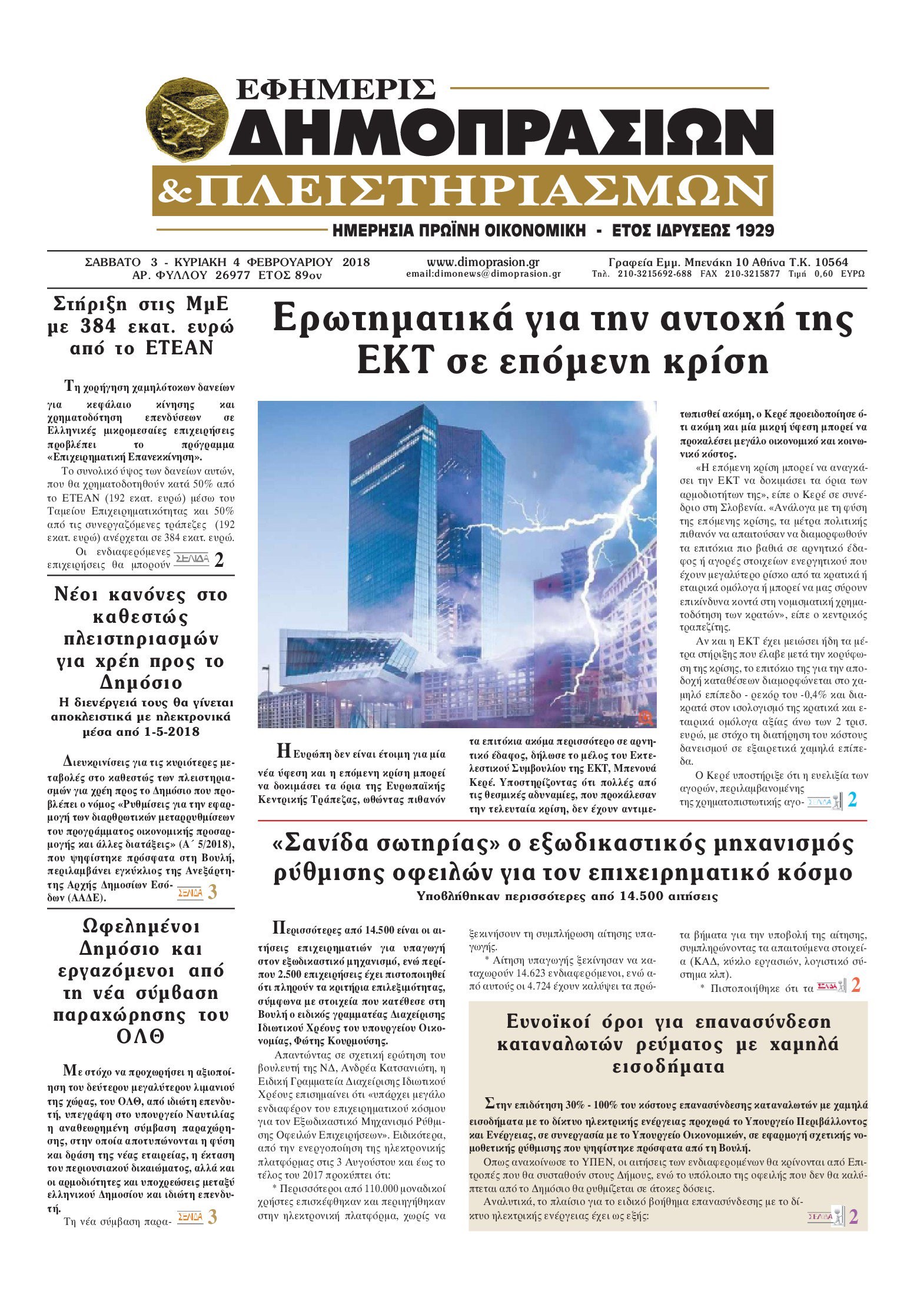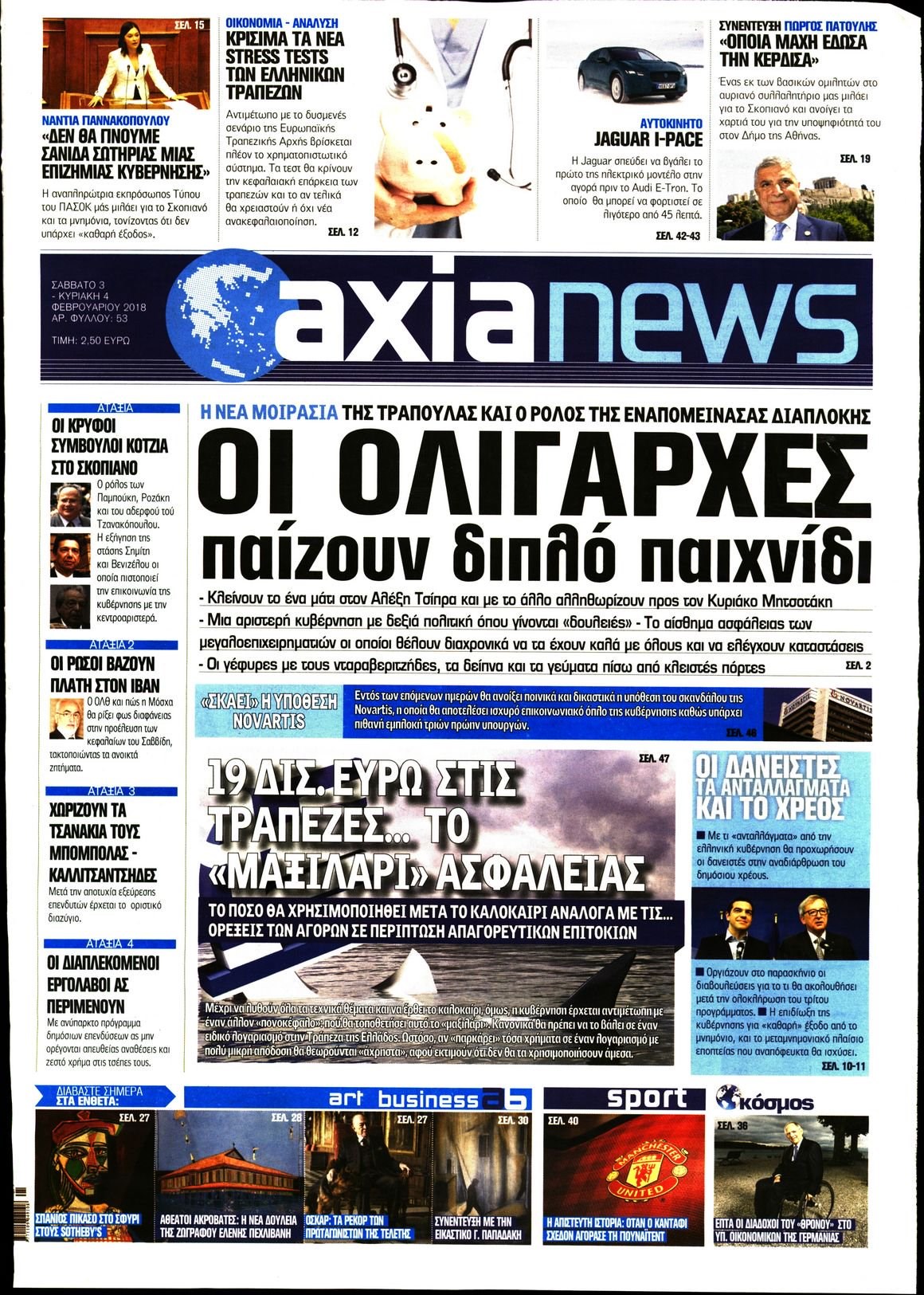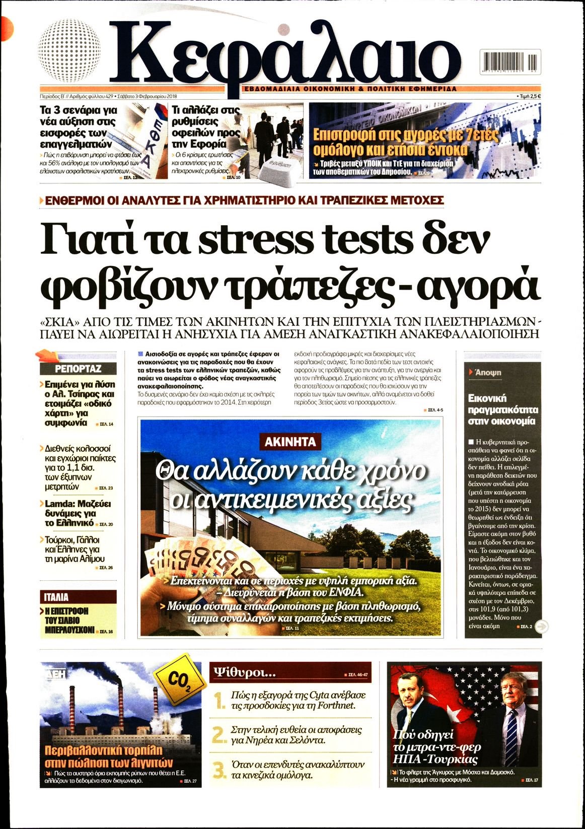 Οι οικονομικές εφημερίδες 3/2/2018 Enikos Newsroom 07:17, Σάββατο 03 Φεβρουαρίου 2018 Media Διαβάστε τα σημερινά πρωτοσέλιδα των οικονομικών εφημερίδων: ΟΙΚΟΝΟΜΙΚΕΣ ΕΦΗΜΕΡΙΔΕΣ ΠΡΩΤΟΣΕΛΙΔΑ Μοιράσου το: σχολίασε κι εσύ (0 σχόλια) Ακολουθήστε το enikos.gr στο Google News και μάθετε πρώτοι όλες τις ειδήσεις Δείτε όλες τις τελευταίες ειδήσεις από την Ελλάδα και τον Κόσμο στο enikos.gr Ειδήσεις Ροή Ειδήσεων 22 λεπτά πριν Αγρότες: Πολύωροι αποκλεισμοί στα τελωνεία Προμαχώνα, Εξοχής, Ευζώνων και Νίκης – Κλείνουν τον κόμβο Φιλώτα οι παραγωγοί στη Δυτική Μακεδονία 2 ώρες πριν Ευρωπαϊκό Συμβούλιο: Όλες οι λεπτομέρειες για το δάνειο των 90 δισ. ευρώ στην Ουκρανία – Τα συμπεράσματα της Συνόδου Κορυφής 1 ώρα πριν Αίγιο: 22χρονη κατήγγειλε ότι έπεσε θύμα βιασμού και ληστείας από συγγενικά της πρόσωπα 2 ώρες πριν Νίκος Παππάς: Δρομολογήθηκαν οι διαδικασίες για τη διαγραφή του από τον ΣΥΡΙΖΑ μέσα στις γιορτές 1 ώρα πριν Σφοδρές βροχές και καταιγίδες πλήττουν τα Ηνωμένα Αραβικά Εμιράτα: Ακυρώσεις πτήσεων, προβλήματα στην κυκλοφορία 40 λεπτά πριν Αλλαγή σελίδας για 3 ζώδια – «Μία δύσκολη περίοδος φτάνει στο τέλος της» 3 ώρες πριν Πώς το αρχαίο DNA του κυνηγού – συλλέκτη ξεκλείδωσε τα μυστικά της μακροζωίας 2 ημέρες πριν 20 χρόνια τα Χριστούγεννα ξεκινούν στα Public με μεγάλη ποικιλία σε δώρα! 2 ώρες πριν Ο σύζυγός της συμπεριφέρεται όπως το παιδί τους – «Χρησιμοποιεί αστείες δικαιολογίες για να μην κάνει δουλειές και να ξοδεύει λεφτά» 11 λεπτά πριν Έρχονται νέες κακοκαιρίες από αύριο – «Παρέλαση» βαρομετρικών χαμηλών φέρνει βροχές τα Χριστούγεννα και χιόνια την Πρωτοχρονιά 15 λεπτά πριν Εργατικό δυστύχημα στην Ελασσόνα – Νεκρός 59χρονος που έπεσε από ύψος 20 μέτρων 20 λεπτά πριν Ed Sheeran: Η εντυπωσιακή αλλαγή στο σώμα του – «Κάτω από όλα αυτά είμαι ένας καπνιστής που τρώει πίτσα και πίνει μπύρα» 22 λεπτά πριν Αγρότες: Πολύωροι αποκλεισμοί στα τελωνεία Προμαχώνα, Εξοχής, Ευζώνων και Νίκης – Κλείνουν τον κόμβο Φιλώτα οι παραγωγοί στη Δυτική Μακεδονία 25 λεπτά πριν Κόστα σε αγρότες: «Η Ευρώπη σας ακούει» – Μικρή αναβολή στην υπογραφή της συμφωνίας με την Mercosur, λέει η Φον Ντερ Λάιεν ENIKOS NETWORK Πότε μπορεί το χλωμό δέρμα να σχετίζεται με σοβαρή νόσο Ενίσχυση του μεταβολισμού: Η Νο1 άσκηση που πρέπει να κάνουν οι γυναίκες μετά τα 35 Απειλή για τον Προϋπολογισμό τα ληξιπρόθεσμα χρέη των ιδιωτών προς την εφορία – Τι δείχνουν τα στοιχεία Συντάξεις: Οι κερδισμένοι και οι χαμένοι από τις αυξήσεις – Αναλυτικός οδηγός Χαρτογραφώντας το «σημείο χωρίς επιστροφή»: Για πρώτη φορά αποκαλύπτεται με λεπτομέρεια το ακανθώδες όριο της ατμόσφαιρας τ... Η Google καταργεί τη λειτουργία «dark web report» – Πώς θα μπορούν οι χρήστες να διαγράφουν τα δεδομένα τους περισσότερα 08:00 , Παρασκευή 19 Δεκεμβρίου 2025 Την Κυριακή με τη Realnews: Δωροεπιταγή 10€ Δωροεπιταγή αξίας 10€ για αγορές άνω των 60€ από τα πολυκαταστήματα FactoryOutlet H προσφορά ι... 05:48 , Παρασκευή 19 Δεκεμβρίου 2025 Οι οικονομικές εφημερίδες 19/12/2025 Διαβάστε τα πρωτοσέλιδα από τις οικονομικές εφημερίδες, σήμερα 19/12/2025. 05:43 , Παρασκευή 19 Δεκεμβρίου 2025 Οι αθλητικές εφημερίδες 19/12/2025 Διαβάστε τα πρωτοσέλιδα από τις αθλητικές εφημερίδες, σήμερα 19/12/2025. 05:38 , Παρασκευή 19 Δεκεμβρίου 2025 Οι πολιτικές εφημερίδες 19/12/2025 Διαβάστε τα πρωτοσέλιδα από τις πολιτικές εφημερίδες, σήμερα 19/12/2025. ΤΕΛΕΥΤΑΙΕΣ ΕΙΔΗΣΕΙΣ 11 λεπτά πριν Έρχονται νέες κακοκαιρίες από αύριο – «Παρέλαση»... 15 λεπτά πριν Εργατικό δυστύχημα σ