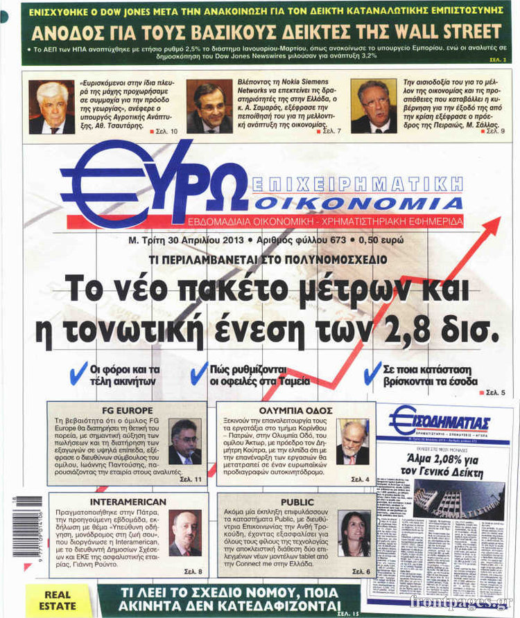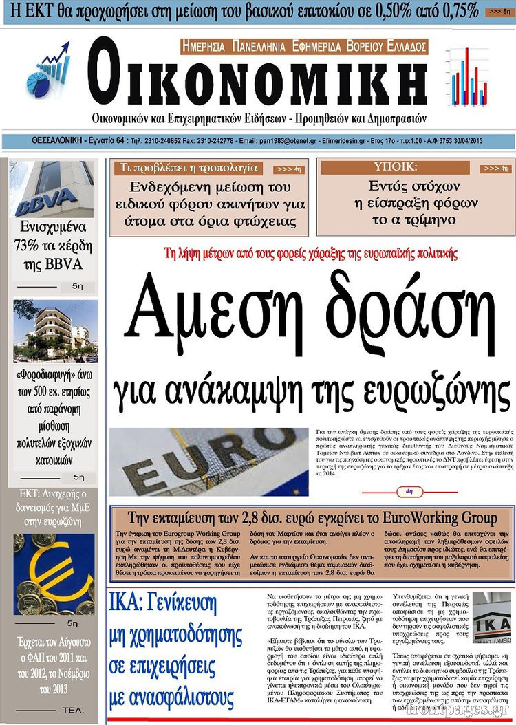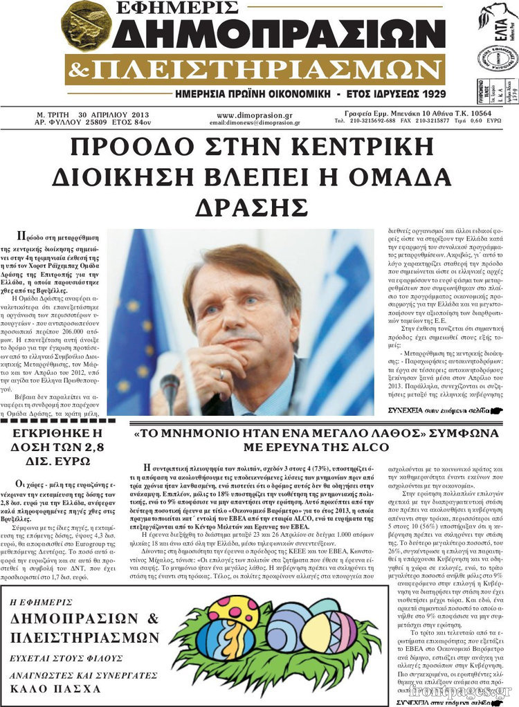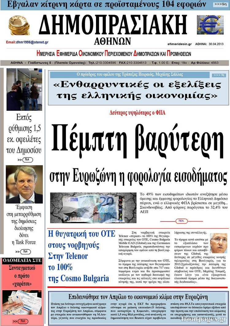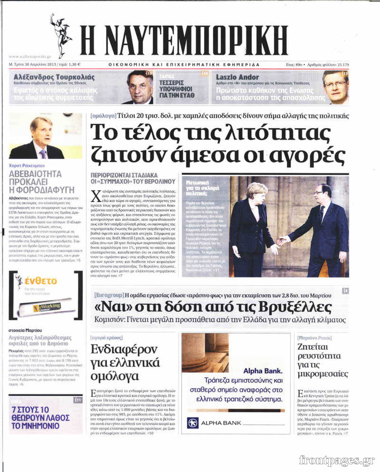 Οι οικονομικές εφημερίδες Enikos Newsroom 08:13, Τρίτη 30 Απριλίου 2013 Media Οι οικονομικές εφημερίδες Τα σημερινά πρωτοσέλιδα των οικονομικών εφημερίδων. ΕΦΗΜΕΡΙΔΕΣ ΟΙΚΟΝΟΜΙΚΕΣ ΕΦΗΜΕΡΙΔΕΣ ΠΡΩΤΟΣΕΛΙΔΑ Μοιράσου το: σχολίασε κι εσύ (0 σχόλια) Ακολουθήστε το enikos.gr στο Google News και μάθετε πρώτοι όλες τις ειδήσεις Δείτε όλες τις τελευταίες ειδήσεις από την Ελλάδα και τον Κόσμο στο enikos.gr Ειδήσεις Ροή Ειδήσεων 3 ώρες πριν ΣΥΡΙΖΑ: Διαγράφεται ο ευρωβουλευτής Νίκος Παππάς μετά την μήνυση δημοσιογράφου για ξυλοδαρμό 2 ώρες πριν Τουρκία: Επιδιώκει την επιστροφή των S-400 στη Ρωσία – Οι αμερικανικές πιέσεις 2 ώρες πριν ΟΠΕΚΕΠΕ: Ελεύθερες με όρους η σύζυγος και η αδελφή του φερόμενου αρχηγού – Τι υποστήριξαν 4 ώρες πριν Πώς στήθηκε η επιχείρηση «Ίπαλλος» που οδήγησε στη σύλληψη του «Έλληνα Εσκομπάρ» – «Ο πόλεμος ενάντια στους εμπόρους ναρκωτικών θα συνεχιστεί» 4 ώρες πριν Κυψέλη: Στη φυλακή η 16χρονη που μαχαίρωσε συμμαθήτριά της 4 ώρες πριν Τα 3 ζώδια που θα δουν τη ζωή τους να αλλάζει ριζικά το 2026 – «Όλα γίνονται καλύτερα σταδιακά» 9 ώρες πριν «Δεν είχα κλάψει από τότε που διαγνώστηκα με καρκίνο, ώσπου ένα τηλεφώνημα με έκανε να λυγίσω» – Η συγκλονιστική εξομολόγηση ενός άνδρα 5 ώρες πριν Ο σπάνιος σεισμός που έλυσε τα χέρια των επιστημόνων – Αποκάλυψε ακριβώς όσα αναζητούσαν 10 ώρες πριν 20 χρόνια τα Χριστούγεννα ξεκινούν στα Public με μεγάλη ποικιλία σε δώρα! 5 λεπτά πριν ΠΑΣΟΚ: Καταδικάζουμε τον ξυλοδαρμό και την τραμπούκικη συμπεριφορά του ευρωβουλευτή Νίκου Παππά σε βάρος του δημοσιογράφου Νίκου Γιαννόπουλου 10 λεπτά πριν Εξεταστική για ΟΠΕΚΕΠΕ – Σκέρτσος: Διαχρονικά τα θέματα του οργανισμού – Δεν έγινε καμία αναφορά μου σε ποινικές διαδικασίες 16 λεπτά πριν Συγκλονιστικό βίντεο: Τρόμος για τουρίστες που σώθηκαν την τελευταία στιγμή από λεωφορείο που κατρακυλούσε σε φαράγγι 21 λεπτά πριν Χριστίνα Μπόμπα: Η αποκάλυψη για το περιστατικό με την κόρη της – «Σκαρφάλωνε και μίλαγε μόνη της…» 26 λεπτά πριν Εξεταστική για ΟΠΕΚΕΠΕ: Μεγάλη ένταση μεταξύ Κωνσταντοπούλου και Λαζαρίδη – ΒΙΝΤΕΟ ENIKOS NETWORK 2,6 εκατομμύρια πολίτες έχουν ήδη εμβολιαστεί κατά της γρίπης Σοβαροί κίνδυνοι από τη λάθος χορήγηση φαρμάκου για τις αιμορραγίες-Συστάσεις προς τους γιατρούς Προκήρυξη ΑΣΕΠ για 4.276 μόνιμες προσλήψεις στο Δημόσιο: Βγήκαν τα προσωρινά αποτελέσματα – Ποιοι μπορούν να υποβάλουν ένσ... Υπουργείο Εργασίας: Ο οδικός χάρτης για την ενίσχυση του πλαισίου των Συλλογικών Διαπραγματεύσεων – Οι 5 άξονες του σχεδίου... Χαρτογραφώντας το «σημείο χωρίς επιστροφή»: Για πρώτη φορά αποκαλύπτεται με λεπτομέρεια το ακανθώδες όριο της ατμόσφαιρας τ... Η Google καταργεί τη λειτουργία «dark web report» – Πώς θα μπορούν οι χρήστες να διαγράφουν τα δεδομένα τους περισσότερα 12:35 , Τετάρτη 17 Δεκεμβρίου 2025 Μίρκα Παπακωνσταντίνου: «Δεν ήμουν αισιόδοξη για τα νούμερα – Είμαι ρεαλίστρια» Στα γυρίσματα του εορταστικού επεισοδίου της αγαπημένης σειράς “Το Σόι Σου”, βρέθηκε η κάμερα ... 12:12 , Τετάρτη 17 Δεκεμβρίου 2025 Ακούστε την εκπομπή του Νίκου Χατζηνικολάου 17/12/2025 Ακούστε την εκπομπή του Νίκου Χατζηνικολάου στον ραδιοφωνικό σταθμό RealFm 97,8, την Τετάρτη 1... 11:35 , Τετάρτη 17 Δεκεμβρίου 2025 Home Alone: Το σπίτι της ταινίας θα ανακαινιστεί – Επιστροφή στην αισθητική της δεκαετίας του ’90 Οι νέοι ιδιοκτήτες του πραγματικού σπιτιού που παρουσιάζεται στην κλασική ταινία του 1990 «Hom... 11:25 , Τετάρτη 17 Δεκεμβρίου 2025 Grand Hotel: Απόψε το τε