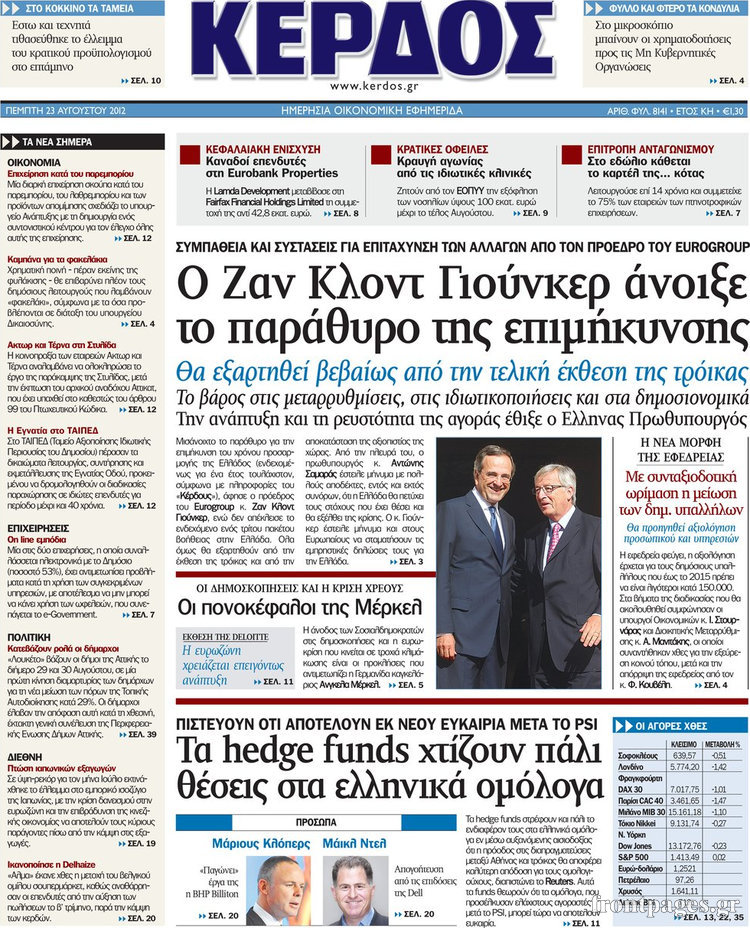 Τα σημερινά πρωτοσέλιδα των οικονιμικών εφημερίδων.