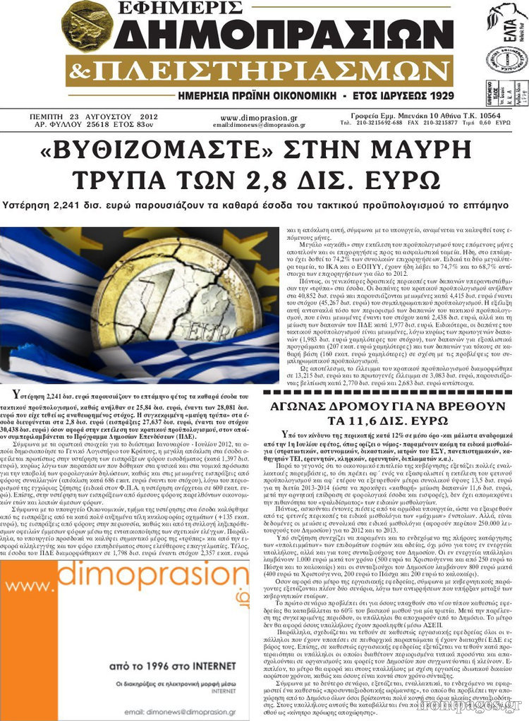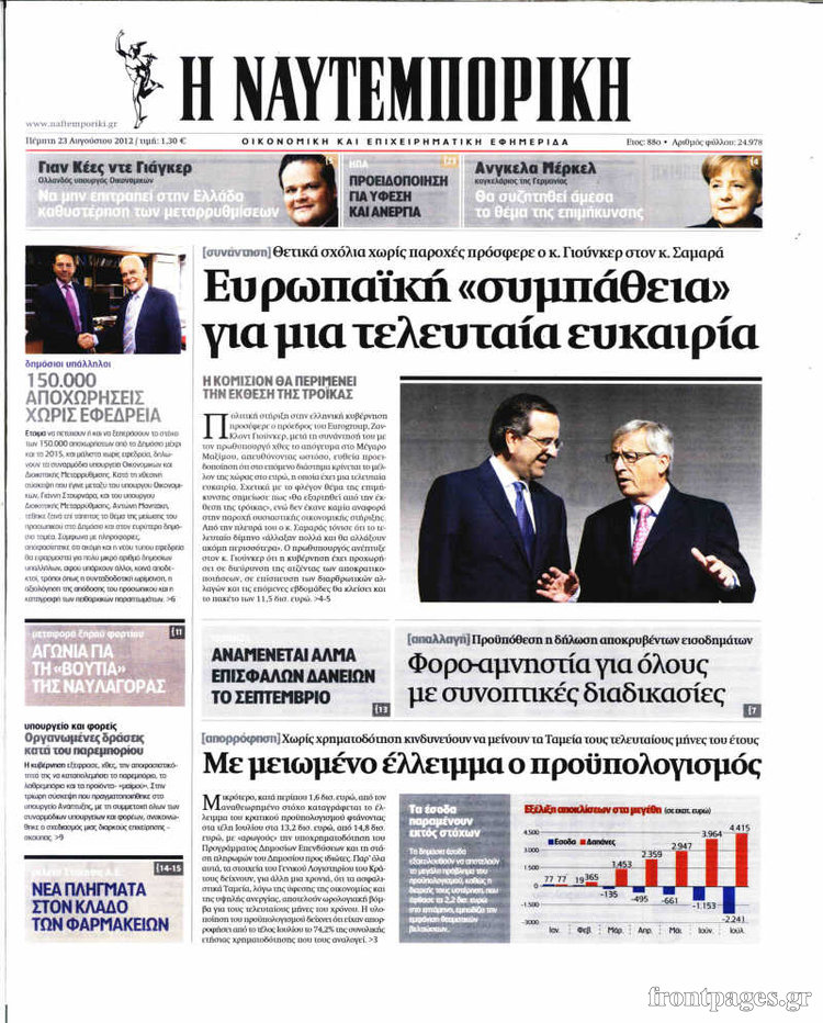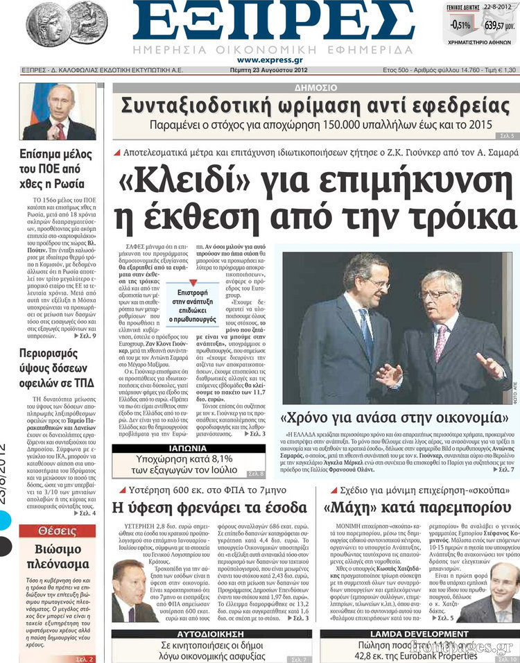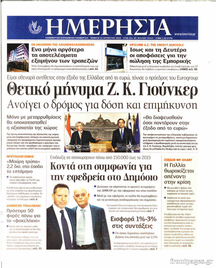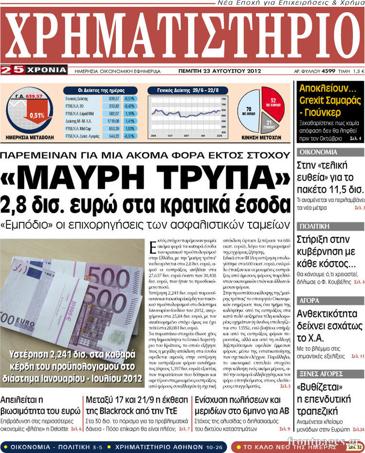 Τα σημερινά πρωτοσέλιδα των οικονιμικών εφημερίδων.