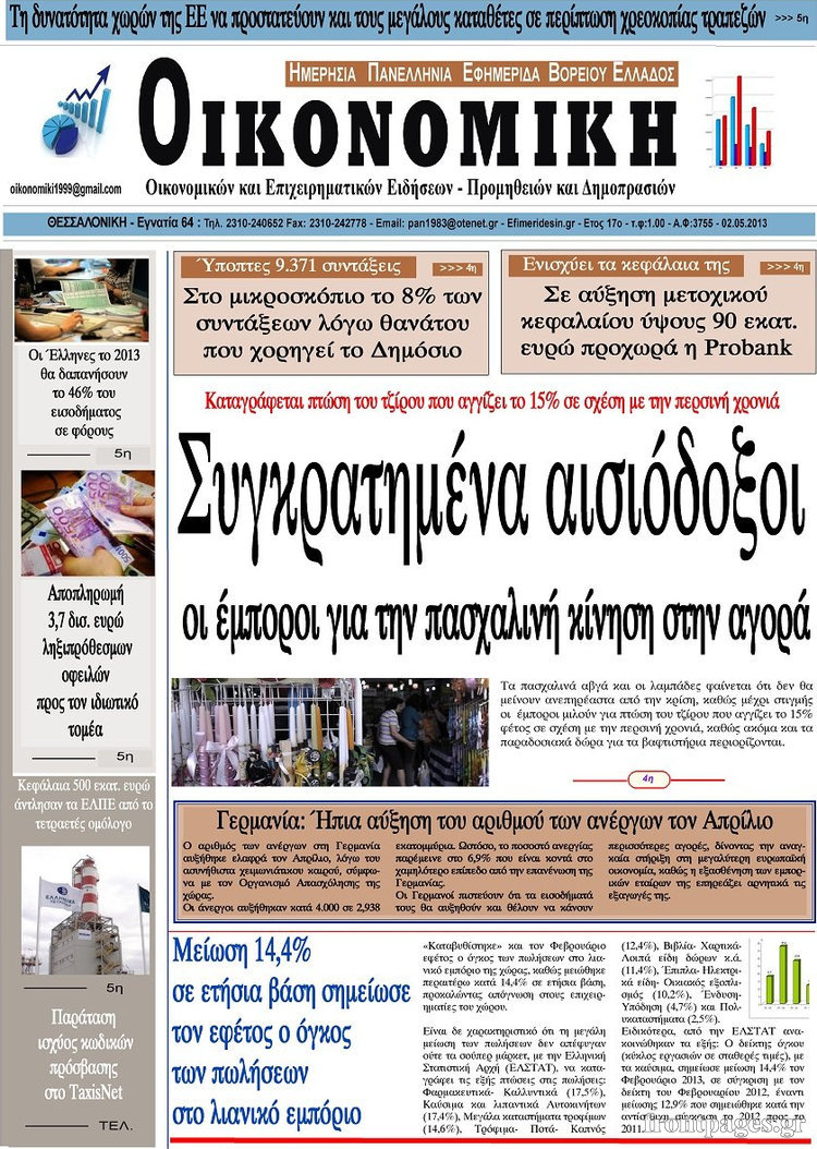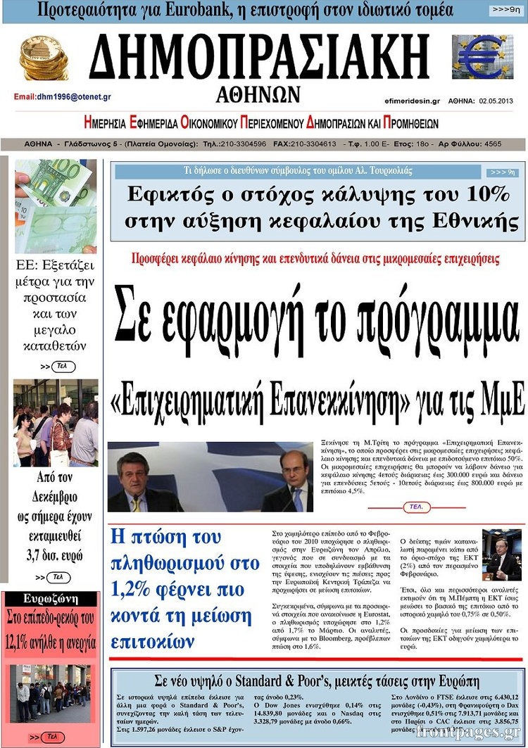 Οι οικονομικές εφημερίδες Enikos Newsroom 08:58, Πέμπτη 02 Μαΐου 2013 Media Οι οικονομικές εφημερίδες Τα πρωτοσέλιδα των οικονομικών εφημερίδων: ΕΦΗΜΕΡΙΔΑ ΟΙΚΟΝΟΜΙΚΕΣ ΕΦΗΜΕΡΙΔΕΣ ΠΡΩΤΟΣΕΛΙΔΑ Μοιράσου το: σχολίασε κι εσύ (0 σχόλια) Ακολουθήστε το enikos.gr στο Google News και μάθετε πρώτοι όλες τις ειδήσεις Δείτε όλες τις τελευταίες ειδήσεις από την Ελλάδα και τον Κόσμο στο enikos.gr Ειδήσεις Ροή Ειδήσεων 14 λεπτά πριν Η Ουκρανία χτύπησε τάνκερ του σκιώδους στόλου της Ρωσίας στη Μεσόγειο – Έπλεε νότια της Κρήτης 2 ώρες πριν Πούτιν: Η Ουκρανία δεν είναι έτοιμη για ειρηνευτικές συνομιλίες – ο ρωσικός στρατός προελαύνει σε όλα τα μέτωπα 3 ώρες πριν Νίκος Παππάς: Ζητώ συγγνώμη για αυτό το επεισόδιο – Δεν τον γρονθοκόπησα 57 λεπτά πριν Θεσσαλονίκη: Άφησαν τα ανήλικα παιδιά τους να κοιμούνται στην αυλή – Κάτοικος ειδοποίησε το «Χαμόγελο του Παιδιού» 18 λεπτά πριν Βουλή: Υπερψηφίστηκε το νομοσχέδιο για την ένταξη του ΟΠΕΚΕΠΕ στην ΑΑΔΕ 4 ώρες πριν Αλλαγή σελίδας για 3 ζώδια – «Μία δύσκολη περίοδος φτάνει στο τέλος της» 2 ημέρες πριν 20 χρόνια τα Χριστούγεννα ξεκινούν στα Public με μεγάλη ποικιλία σε δώρα! 3 ώρες πριν Γεμάτος νεροχύτης; 5 σοβαρές ευθύνες που «φοβίζουν» όσους αφήνουν άπλυτα πιάτα 2 ώρες πριν Ειδικός μοιράζεται 6 κόλπα για να διατηρείστε σε φόρμα με πάνω από 40 ώρες εργασίας την εβδομάδα: «Προπονηθείτε πριν από τη δουλειά, όχι μετά» 2 λεπτά πριν Κουτσούμπας: Οι αγρότες «ανοίγουν δρόμους» για να δυναμώσει ο αγώνας για το δίκιο και την επιβίωση όλου του λαού 6 λεπτά πριν Οι αγρότες έκλεισαν και τα δύο ρεύματα κυκλοφορίας στα διόδια των Μαλγάρων 11 λεπτά πριν Ανδρουλάκης για ΕΛΤΑ: Το σκάνδαλο αυτό είναι η ωμή εκδοχή του κράτους-λάφυρου 14 λεπτά πριν Η Ουκρανία χτύπησε τάνκερ του σκιώδους στόλου της Ρωσίας στη Μεσόγειο – Έπλεε νότια της Κρήτης 16 λεπτά πριν Βουλή: Εγκρίθηκε ο διορισμός της νέας διοικήτριας της Ανεξάρτητης Αρχής Ελέγχου της Αγοράς και Προστασίας του Καταναλωτή ENIKOS NETWORK Τάξη στις ιατρικές διαφημίσεις για την προστασία των πολιτών βάζει ο ΙΣΑ Μακροζωία: Τι παίζει πιο σημαντικό ρόλο ακόμα και από την διατροφή και την άσκηση, σύμφωνα με μελέτη e-ΕΦΚΑ: Νέα παράταση της προθεσμίας υποβολής για τις ΑΠΔ – Ποιες επιχειρήσεις αφορά Αγορά πολυτελών κατοικιών: Αυτές είναι οι προτεραιότητες των αγοραστών – Σε ποιες περιοχές στρέφονται και τι επιλέγουν Χαρτογραφώντας το «σημείο χωρίς επιστροφή»: Για πρώτη φορά αποκαλύπτεται με λεπτομέρεια το ακανθώδες όριο της ατμόσφαιρας τ... Η Google καταργεί τη λειτουργία «dark web report» – Πώς θα μπορούν οι χρήστες να διαγράφουν τα δεδομένα τους περισσότερα 08:00 , Παρασκευή 19 Δεκεμβρίου 2025 Την Κυριακή με τη Realnews: Δωροεπιταγή 10€ Δωροεπιταγή αξίας 10€ για αγορές άνω των 60€ από τα πολυκαταστήματα FactoryOutlet H προσφορά ι... 05:48 , Παρασκευή 19 Δεκεμβρίου 2025 Οι οικονομικές εφημερίδες 19/12/2025 Διαβάστε τα πρωτοσέλιδα από τις οικονομικές εφημερίδες, σήμερα 19/12/2025. 05:43 , Παρασκευή 19 Δεκεμβρίου 2025 Οι αθλητικές εφημερίδες 19/12/2025 Διαβάστε τα πρωτοσέλιδα από τις αθλητικές εφημερίδες, σήμερα 19/12/2025. 05:38 , Παρασκευή 19 Δεκεμβρίου 2025 Οι πολιτικές εφημερίδες 19/12/2025 Διαβάστε τα πρωτοσέλιδα από τις πολιτικές εφημερίδες, σήμερα 19/12/2025. ΤΕΛΕΥΤΑΙΕΣ ΕΙΔΗΣΕΙΣ 6 λεπτά πριν Οι αγρότες έκλεισαν και τα δύο ρεύματα κυκλοφορίας... 11 λεπτά πριν Ανδρουλάκης για ΕΛΤΑ: Το σκάνδαλο αυτό είναι η ωμή... 14 λεπτά πριν Η Ουκρανία χτύπησε τάνκερ του σκιώδους στόλου της... 16 λεπτά πριν Βουλή: Εγκρίθηκ