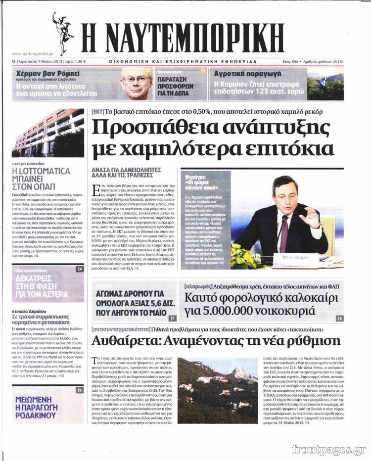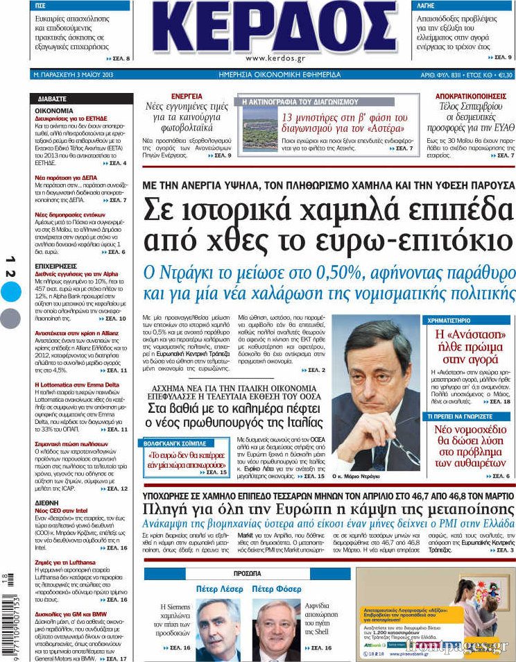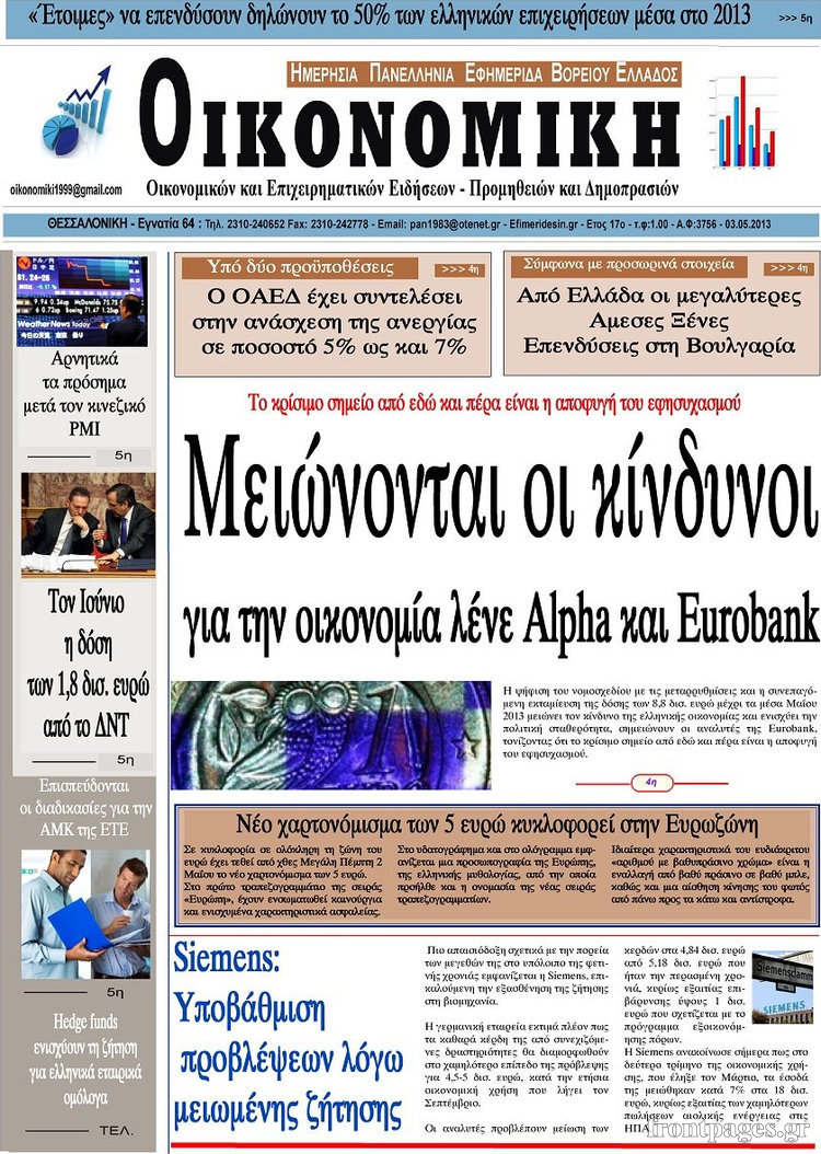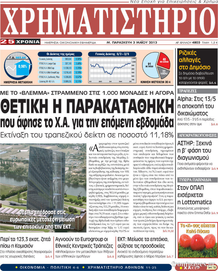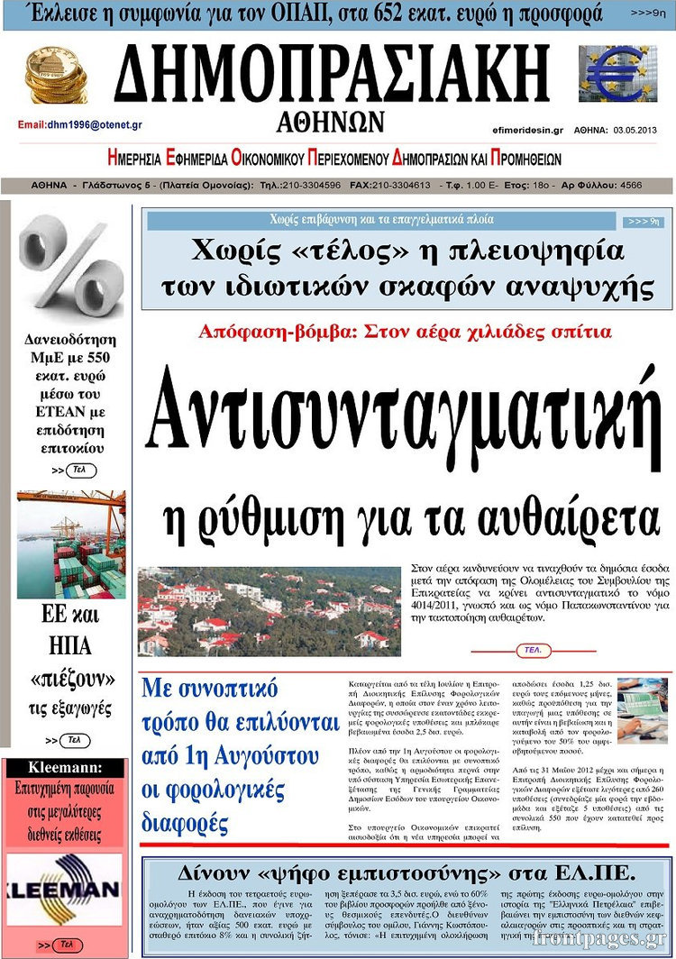 Οι οικονομικές εφημερίδες Enikos Newsroom 08:31, Παρασκευή 03 Μαΐου 2013 Media Οι οικονομικές εφημερίδες Διαβάστε τα πρωτοσέλιδα των οικονομικών εφημερίδων: ΕΦΗΜΕΡΙΔΕΣ ΟΙΚΟΝΟΜΙΚΕΣ ΕΦΗΜΕΡΙΔΕΣ ΠΡΩΤΟΣΕΛΙΔΑ Μοιράσου το: σχολίασε κι εσύ (0 σχόλια) Ακολουθήστε το enikos.gr στο Google News και μάθετε πρώτοι όλες τις ειδήσεις Δείτε όλες τις τελευταίες ειδήσεις από την Ελλάδα και τον Κόσμο στο enikos.gr Ειδήσεις Ροή Ειδήσεων 2 ώρες πριν Σίδνεϊ: Βίντεο με ηλικιωμένο ζευγάρι που όρμησε για να σταματήσει τον έναν δράστη – Συγκλονιστικές μαρτυρίες για τους «ήρωες μέχρι τέλους» 21 λεπτά πριν Κατρίνης: «Ο μικρός μου γιος οδηγούσε χωρίς δίπλωμα, πράξη αδικαιολόγητη και παράνομη – Ο νόμος ισχύει για όλους» 3 ώρες πριν Κυψέλη: Υπό κατάληψη το σχολείο που η 16χρονη μαχαίρωσε συμμαθήτριά της – Την είχαν διώξει από προηγούμενο 17 λεπτά πριν Τσιάρας: Καλούμε τους αγρότες να έρθουν να συζητήσουμε για την επίλυση του θέματος 2 ώρες πριν «Το θαύμα των Χριστουγέννων»: Σκύλος που εξαφανίστηκε το 2021 βρέθηκε σε καταφύγιο ζώων σε απόσταση 3.200 χιλιομέτρων – ΒΙΝΤΕΟ 1 ώρα πριν Τέλος η μοναξιά για 3 ζώδια μετά τις 16 Δεκεμβρίου – «Ξαναβρίσκετε τον εαυτό σας» 5 ώρες πριν Οπτική ψευδαίσθηση: Μόνο 1 στους 10 ανθρώπους θα βρει το κόκκινο αυγό σε 7 δευτερόλεπτα 3 ώρες πριν Ανακαλύφθηκε περίτεχνη μαρμάρινη μπανιέρα που επαναχρησιμοποιήθηκε ως κρήνη 2 ώρες πριν Η πεθερά της την κατηγορεί πως δεν την ταΐζει σωστά – «Δεν παραπονιέται όμως στον γιο της» 6 λεπτά πριν Οι άνθρωποι που φαίνονται «τυχεροί» στη ζωή τους, συνήθως έχουν αυτές τις 8 αθόρυβες συνήθειες 6 λεπτά πριν Καινούργιου: «Με την εγκυμοσύνη προς το παρόν ξεχνάω, δεν βλέπω, δεν ακούω…» 10 λεπτά πριν ΕΕ: Η Κομισιόν παρουσιάζει σήμερα σχέδιο για την αντιμετώπιση της στεγαστικής κρίσης – Προτείνει πλαφόν στα Airbnb 16 λεπτά πριν Ντόναλντ Τραμπ Τζούνιορ: Αρραβωνιάστηκε για τρίτη φορά – «Εκλεκτή» της καρδιάς του η κοσμική Μπετίνα Άντερσον 17 λεπτά πριν Τσιάρας: Καλούμε τους αγρότες να έρθουν να συζητήσουμε για την επίλυση του θέματος ENIKOS NETWORK Οι ρίζες της άνοιας ίσως βρίσκονται στην παιδική ηλικία – Τι έδειξαν πρόσφατες μελέτες Όμιλος ΠΡΟΣΥΦΑΠΕ: Επιστρέφει στην κοινωνία τμήμα της υπεραξίας που παράγει Τα μυστικά για τις μεταβιβάσεις ακινήτων – Αναλυτικός οδηγός Προϋπολογισμός 2026: Η ομιλία Μητσοτάκη στη Βουλή- Τι θα πει για το αγροτικό, το στεγαστικό και το πακέτο μέτρων του 2026 Σύγχρονος Νοστράδαμος: Προειδοποιεί για «μεγάλο γεγονός» τους επόμενους μήνες που θα συγκλονίσει τη Βρετανία και τον κόσμο Τεστ παρατηρητικότητας: Μπορείτε να βρείτε τις 3 διαφορές στις εικόνες με έναν πιγκουίνο σε 14 δευτερόλεπτα περισσότερα 09:58 , Τρίτη 16 Δεκεμβρίου 2025 LIVE – Ακούστε την εκπομπή του Νίκου Χατζηνικολάου 16/12/2025 Ακούστε την εκπομπή του Νίκου Χατζηνικολάου, στον Realfm 97,8. Ακούστε LIVE εδώ 09:26 , Τρίτη 16 Δεκεμβρίου 2025 Τηλεθέαση (15/12): Τα νούμερα για την prime time – Ποιες σειρές ξεχώρισαν Ξεκάθαρη πρωτιά στην τηλεθέαση κατέκτησε η σειρά «Μια νύχτα μόνο», η οποία βρέθηκε στην κορυφή... 08:00 , Τρίτη 16 Δεκεμβρίου 2025 Την Κυριακή με τη Realnews: Δωροεπιταγή 10€ Δωροεπιταγή αξίας 10€ για αγορές άνω των 60€ από τα πολυκαταστήματα FactoryOutlet H προσφορά ι... 05:48 , Τρίτη 16 Δεκεμβρίου 2025 Οι οικονομικές εφημερίδες 16/12/2025 Διαβάστε τα πρωτοσέλιδα από τις οικονομικές εφημερίδες, σήμερα 16/12/2025. ΤΕΛΕΥΤΑΙΕΣ ΕΙΔΗΣΕΙΣ 6 λεπτά πριν Καινούργιου: «Με την εγκυμοσύνη προς το παρόν ξεχνάω,... 10 λεπτά πριν ΕΕ: Η Κομισιόν παρουσι