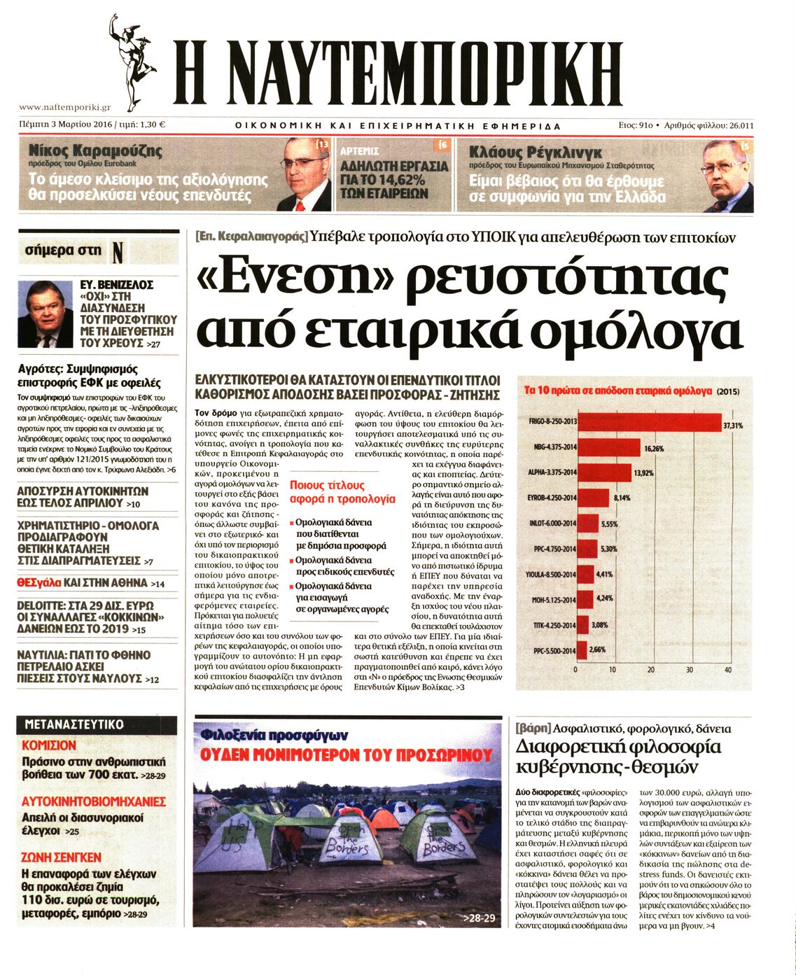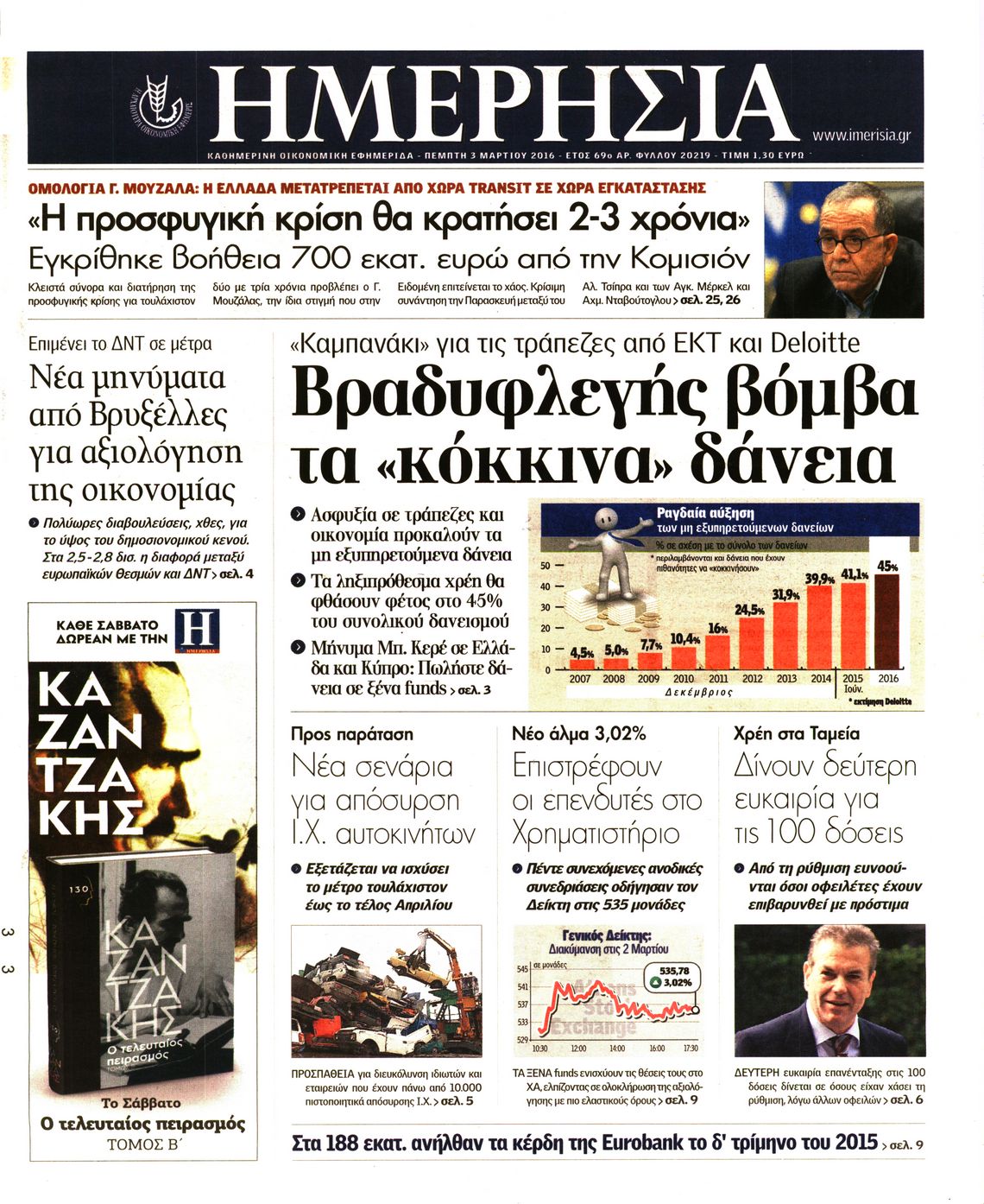 Οι οικονομικές εφημερίδες 3/3/2016 Enikos Newsroom 06:33, Πέμπτη 03 Μαρτίου 2016 Media Διαβάστε τα σημερινά πρωτοσέλιδα των οικονομικών εφημερίδων: ΟΙΚΟΝΟΜΙΚΕΣ ΕΦΗΜΕΡΙΔΕΣ ΠΡΩΤΟΣΕΛΙΔΑ Μοιράσου το: σχολίασε κι εσύ (0 σχόλια) Ακολουθήστε το enikos.gr στο Google News και μάθετε πρώτοι όλες τις ειδήσεις Δείτε όλες τις τελευταίες ειδήσεις από την Ελλάδα και τον Κόσμο στο enikos.gr Ειδήσεις Ροή Ειδήσεων 1 ώρα πριν ΣΥΡΙΖΑ: Διαγράφεται ο ευρωβουλευτής Νίκος Παππάς μετά την μήνυση δημοσιογράφου για ξυλοδαρμό 2 ώρες πριν Πώς στήθηκε η επιχείρηση «Ίπαλλος» που οδήγησε στη σύλληψη του «Έλληνα Εσκομπάρ» – «Ο πόλεμος ενάντια στους εμπόρους ναρκωτικών θα συνεχιστεί» 2 ώρες πριν Δίκη Χρυσής Αυγής: Την ενοχή και των 42 κατηγορουμένων ζητά η εισαγγελέας 2 ώρες πριν Κυψέλη: Στη φυλακή η 16χρονη που μαχαίρωσε συμμαθήτριά της 5 ώρες πριν Αμοργός: «Θα προσπαθήσω να το κάνω κάθε μέρα» – Ποιος είναι ο αγρότης που έστησε μόνος του το πρώτο μπλόκο στο νησί 2 ώρες πριν Τα 3 ζώδια που θα δουν τη ζωή τους να αλλάζει ριζικά το 2026 – «Όλα γίνονται καλύτερα σταδιακά» 7 ώρες πριν «Δεν είχα κλάψει από τότε που διαγνώστηκα με καρκίνο, ώσπου ένα τηλεφώνημα με έκανε να λυγίσω» – Η συγκλονιστική εξομολόγηση ενός άνδρα 3 ώρες πριν Ο σπάνιος σεισμός που έλυσε τα χέρια των επιστημόνων – Αποκάλυψε ακριβώς όσα αναζητούσαν 9 ώρες πριν 20 χρόνια τα Χριστούγεννα ξεκινούν στα Public με μεγάλη ποικιλία σε δώρα! 56 δευτερόλεπτα πριν Στις Βρυξέλλες ο Κυριάκος Μητσοτάκης για τη Σύνοδο Κορυφής ΕΕ-Δυτικών Βαλκανίων και τη συνεδρίαση του Ευρωπαϊκού Συμβουλίου 7 λεπτά πριν ΟΠΕΚΕΠΕ: Ελεύθερες με όρους η σύζυγος και η αδελφή του φερόμενου αρχηγού – Τι υποστήριξαν 9 λεπτά πριν Υπουργείο Εργασίας: Οι 5 άξονες του σχεδίου δράσης για την ενίσχυση των συλλογικών συμβάσεων – Δείτε την Υπουργική Απόφαση 13 λεπτά πριν Καβάλα: Βίντεο ντοκουμέντο από διάρρηξη σε καφετέρια – Έσπασαν την τζαμαρία, άρπαξαν το συρτάρι του ταμείου και έγιναν καπνός 18 λεπτά πριν ΑΣΕΠ: Οι προσωρινοί πίνακες για 4.276 θέσεις επιτυχόντων του πρώτου γραπτού διαγωνισμού – Η διαδικασία για τις ενστάσεις ENIKOS NETWORK Γιατί αναζητούμε τα Χριστούγεννα όλο και νωρίτερα; Ποιοι οι ψυχολογικοί και οι συναισθηματικοί λόγοι Σοβαροί κίνδυνοι από τη λάθος χορήγηση φαρμάκου για τις αιμορραγίες-Συστάσεις προς τους γιατρούς «Αναταράξεις» στην εφοδιαστική αλυσίδα από τα μπλόκα: Επιστολή του Συνδέσμου Θεσσαλικών Βιομηχανιών στον πρωθυπουργό -Τι αν... Δάνεια σε ελβετικό φράγκο: Αύριο η κατάθεση της τροπολογίας στη Βουλή – Όλες οι λεπτομέρειες Χαρτογραφώντας το «σημείο χωρίς επιστροφή»: Για πρώτη φορά αποκαλύπτεται με λεπτομέρεια το ακανθώδες όριο της ατμόσφαιρας τ... Η Google καταργεί τη λειτουργία «dark web report» – Πώς θα μπορούν οι χρήστες να διαγράφουν τα δεδομένα τους περισσότερα 12:35 , Τετάρτη 17 Δεκεμβρίου 2025 Μίρκα Παπακωνσταντίνου: «Δεν ήμουν αισιόδοξη για τα νούμερα – Είμαι ρεαλίστρια» Στα γυρίσματα του εορταστικού επεισοδίου της αγαπημένης σειράς “Το Σόι Σου”, βρέθηκε η κάμερα ... 12:12 , Τετάρτη 17 Δεκεμβρίου 2025 Ακούστε την εκπομπή του Νίκου Χατζηνικολάου 17/12/2025 Ακούστε την εκπομπή του Νίκου Χατζηνικολάου στον ραδιοφωνικό σταθμό RealFm 97,8, την Τετάρτη 1... 11:35 , Τετάρτη 17 Δεκεμβρίου 2025 Home Alone: Το σπίτι της ταινίας θα ανακαινιστεί – Επιστροφή στην αισθητική της δεκαετίας του ’90 Οι νέοι ιδιοκτήτες του πραγματικού σπιτιού που παρουσιάζεται στην κλασική ταινία του 1990 «Hom... 11:25 , Τετάρτη 17 Δεκεμβρίο