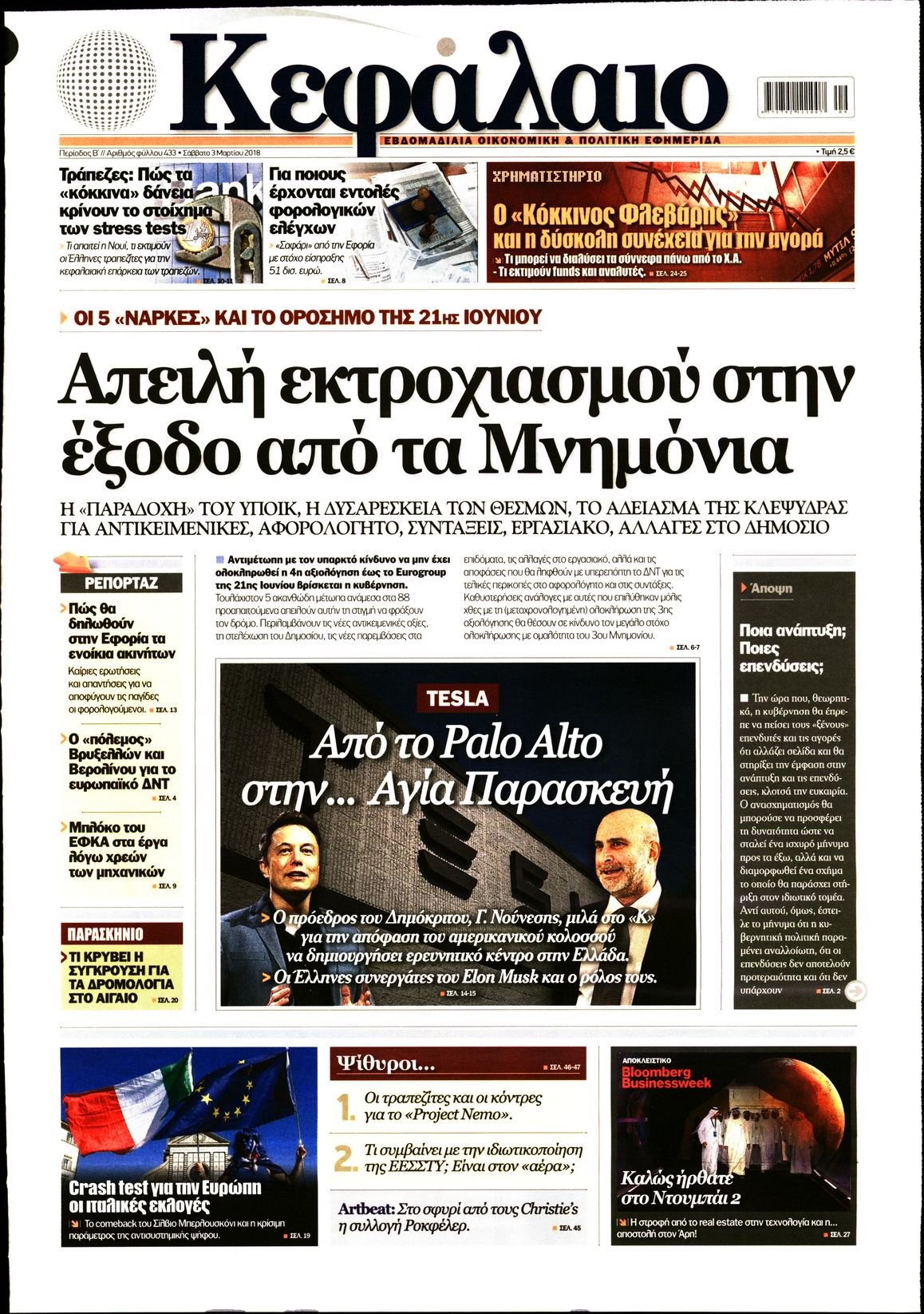 Οι οικονομικές εφημερίδες 3/3/2018 Enikos Newsroom 07:16, Σάββατο 03 Μαρτίου 2018 Media Διαβάστε τα σημερινά πρωτοσέλιδα των οικονομικών εφημερίδων: ΟΙΚΟΝΟΜΙΚΕΣ ΕΦΗΜΕΡΙΔΕΣ ΠΡΩΤΟΣΕΛΙΔΑ Μοιράσου το: σχολίασε κι εσύ (0 σχόλια) Ακολουθήστε το enikos.gr στο Google News και μάθετε πρώτοι όλες τις ειδήσεις Δείτε όλες τις τελευταίες ειδήσεις από την Ελλάδα και τον Κόσμο στο enikos.gr Ειδήσεις Ροή Ειδήσεων 2 ώρες πριν Αυξάνουν την πίεση προς την κυβέρνηση οι αγρότες: Κλείνουν παρακαμπτήριους και ανοίγουν διόδια – Τι θα γίνει τις γιορτές 38 λεπτά πριν ΟΠΕΚΕΠΕ: Προφυλακιστέος ο φερόμενος αρχηγός και ο λογιστής της εγκληματικής οργάνωσης 2 ώρες πριν Φοινικούντα: Το Σάββατο απολογείται ο 30χρονος γιος γνωστού επιχειρηματία της Πλάκας που παραδόθηκε – Όσα είπε στους αστυνομικούς και ο ρόλος του στο έγκλημα 1 ώρα πριν Μπορεί ο Μαδούρο να αντέξει τον αποκλεισμό του Τραμπ; Τι θα χρειαστεί η Ουάσινγκτον για να τον ανατρέψει 3 ώρες πριν Πρίγκιπας Ουίλιαμ – Κέιτ: Η νέα οικογενειακή φωτογραφία για τις Χριστουγεννιάτικες κάρτες του 2025 2 ώρες πριν Ύπνος: Η απλή βραδινή ρουτίνα για να προστατεύσετε τα μαλλιά σας από το κρύο κατά τη διάρκεια του χειμώνα 3 ώρες πριν Manifesting: Πώς να συναντήσετε τον σύντροφο της ζωής σας, ανάλογα με τον μήνα γέννησής σας 2 ημέρες πριν 20 χρόνια τα Χριστούγεννα ξεκινούν στα Public με μεγάλη ποικιλία σε δώρα! 1 ώρα πριν Αρχαιολόγοι ανακάλυψαν ρωμαϊκά τεχνουργήματα από μια πόλη που δεν υπήρξε ποτέ – Τα τρία εντυπωσιακά κτίρια και ο αμφορέας με τις… σαρδέλες 17 λεπτά πριν ΑΕΚ – Κραϊόβα 3-2: Επική ανατροπή και πρόκριση στους «16» του Conference League η Ένωση 38 λεπτά πριν ΟΠΕΚΕΠΕ: Προφυλακιστέος ο φερόμενος αρχηγός και ο λογιστής της εγκληματικής οργάνωσης 48 λεπτά πριν Αθηνά Μαξίμου: Η τρυφερή ανάρτηση για τα γενέθλια του Αιμίλιου Χειλάκη – «Είναι η εκλεκτική συγγένειά μου, η επιλογή και η ευθύνη μου» 1 ώρα πριν Παναθηναϊκός – Χάποελ Τελ Αβίβ 93-82: Με… φόρα από την Κωνσταντινούπολη 1 ώρα πριν Μπορεί ο Μαδούρο να αντέξει τον αποκλεισμό του Τραμπ; Τι θα χρειαστεί η Ουάσινγκτον για να τον ανατρέψει ENIKOS NETWORK Σε περίοδο αυξημένης δραστηριότητας η γρίπη στην Ελλάδα-Μέτρα προστασίας από τον ΕΟΔΥ Σκέφτεστε συνέχεια συζητήσεις που έχετε κάνει; Τι σημαίνει αυτό, σύμφωνα με ειδικό Στεγαστικό: Τι λέει η ΠΟΜΙΔΑ για τα νέα μέτρα που ανακοίνωσε ο Κυριάκος Μητσοτάκης Λαγκάρντ: Αισιόδοξη για την ανάπτυξη της Ευρωζώνης, αβέβαιη για τον πληθωρισμό Χαρτογραφώντας το «σημείο χωρίς επιστροφή»: Για πρώτη φορά αποκαλύπτεται με λεπτομέρεια το ακανθώδες όριο της ατμόσφαιρας τ... Η Google καταργεί τη λειτουργία «dark web report» – Πώς θα μπορούν οι χρήστες να διαγράφουν τα δεδομένα τους περισσότερα 17:45 , Πέμπτη 18 Δεκεμβρίου 2025 ROUK ZOUK: Εορταστικό επεισόδιο με καλεσμένους τους πρωταγωνιστές του «Γιατί ρε πατέρα» Το Σάββατο 20 Δεκεμβρίου στις 21:00, η Ζέτα Μακρυπούλια υποδέχεται εκλεκτούς ηθοποιούς που όλο... 17:20 , Πέμπτη 18 Δεκεμβρίου 2025 Άγιος έρωτας: Η Χριστίνα εξομολογείται στον πατέρα Νικόλαο, απόψε στις 21:00 στον Alpha Η Νότα αποφασίζει να εκδικηθεί τον Πέτρο και τον Στέφανο, για χάρη του Λούη, όμως τα πράγματα ... 16:50 , Πέμπτη 18 Δεκεμβρίου 2025 Να μ’ αγαπάς: Ζωή και Φωτεινή συμφιλιώνονται ως μάνα με κόρη, απόψε στις 20:00 Η ταυτότητα του Άγγελου αποκαλύπτεται στο νέο επεισόδιο της σειράς “Να μ’ αγαπάς... 15:52 , Πέμπτη 18 Δεκεμβρίου 2025 Το Σπίτι Δίπλα Στο Ποτάμι: Το καθηλωτικό τελευταίο επεισόδιο για το 2025 απόψε στις 22:30 Καθηλώνει το σημερινό