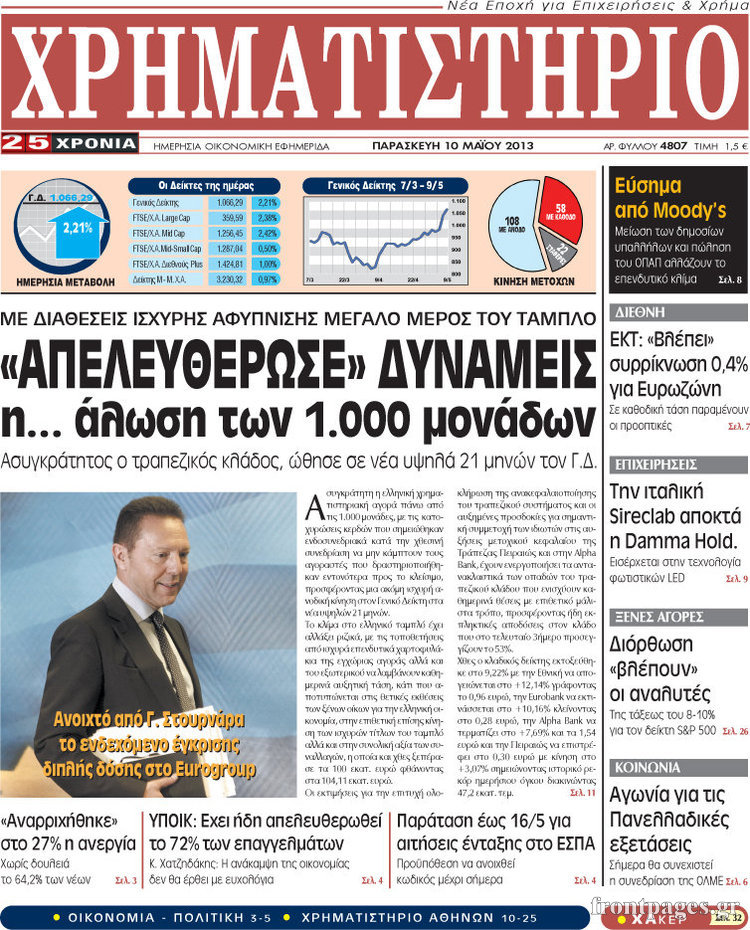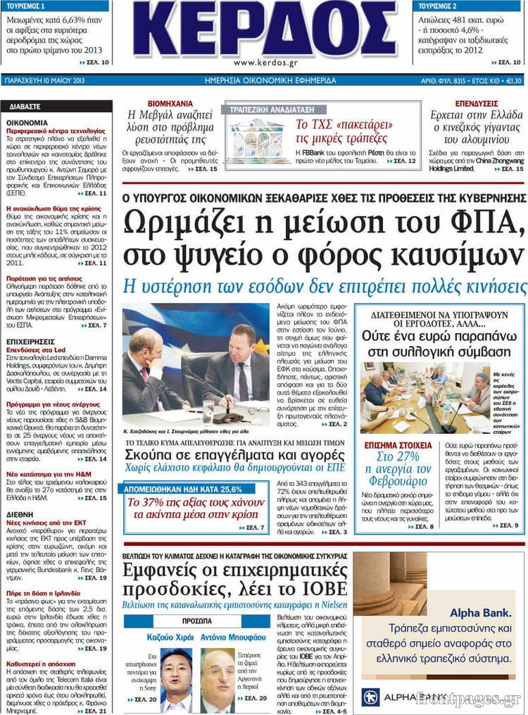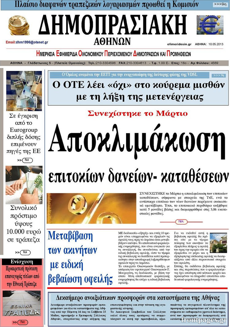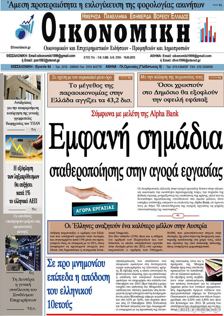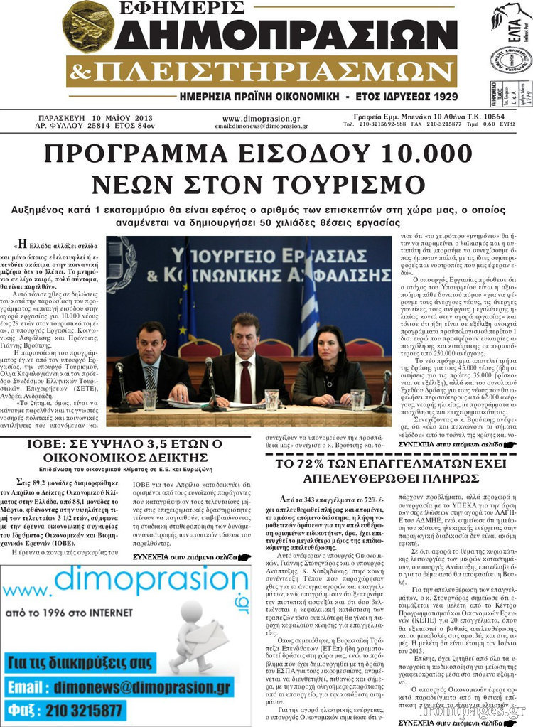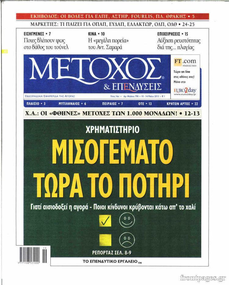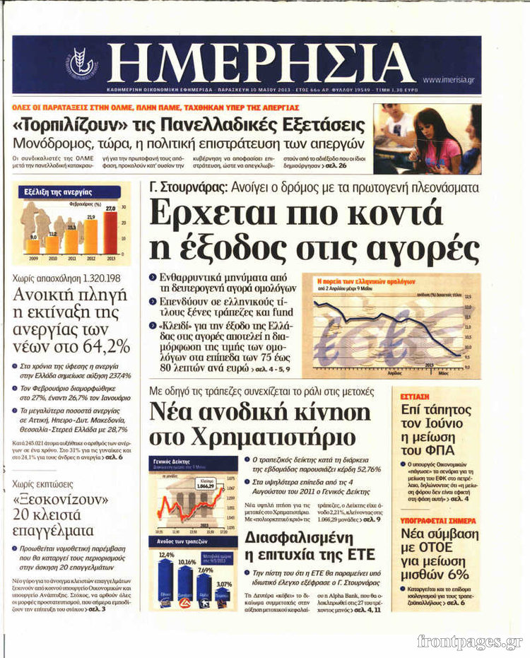 Οι οικονομικές εφημερίδες Enikos Newsroom 08:56, Παρασκευή 10 Μαΐου 2013 Media Οι οικονομικές εφημερίδες ΕΦΗΜΕΡΙΔΕΣ ΟΙΚΟΝΟΜΙΚΕΣ ΕΦΗΜΕΡΙΔΕΣ Μοιράσου το: σχολίασε κι εσύ (0 σχόλια) Ακολουθήστε το enikos.gr στο Google News και μάθετε πρώτοι όλες τις ειδήσεις Δείτε όλες τις τελευταίες ειδήσεις από την Ελλάδα και τον Κόσμο στο enikos.gr Ειδήσεις Ροή Ειδήσεων 2 ώρες πριν Νίκος Παππάς: «Είχα λάθος αντίδραση στη δική του δράση-πρόκληση – Δεν θα αναλύσω σε τι κατάσταση ήταν ο δημοσιογράφος» 40 λεπτά πριν Νίκος Γιαννόπουλος για Νίκο Παππά: «Είναι επικίνδυνος, θα του κάνω ασφαλιστικά» – ΒΙΝΤΕΟ 1 ώρα πριν Αλεξανδρούπολη: Πολυοργανική ανεπάρκεια λόγω υποσιτισμού η αιτία θανάτου του 3χρονου αγοριού 2 ώρες πριν Δημοσκόπηση Pulse: Η διαφορά ΝΔ-ΠΑΣΟΚ – Με ποια κριτήρια θα ψηφίσουν οι πολίτες στις επόμενες εκλογές 3 ώρες πριν Συγκλονιστικό βίντεο: Τρόμος για τουρίστες που σώθηκαν την τελευταία στιγμή από λεωφορείο που κατρακυλούσε σε φαράγγι 54 λεπτά πριν Ύπνος: Ειδικός εξηγεί τον πραγματικό λόγο που ξυπνάτε στις 4 τα ξημερώματα – Ο ρόλος των ορμονών και του κιρκάδιου ρυθμού 2 ώρες πριν Αριθμολογία: Οι άνθρωποι που έχουν γεννηθεί αυτές τις 4 ημερομηνίες, είναι τρυφεροί και αγαπούν ανιδιοτελώς 3 ώρες πριν Καθρέφτες μπάνιου: Το απλό κόλπο με την οδοντόκρεμα για να μην θολώνουν 14 ώρες πριν 20 χρόνια τα Χριστούγεννα ξεκινούν στα Public με μεγάλη ποικιλία σε δώρα! 5 λεπτά πριν Κυψέλη: Χωρίς την οικογένειά της δίπλα της απολογήθηκε η 16χρονη – «Της είχε επιτεθεί κάποιος για να την βιάσει, φοβήθηκε και κυκλοφορούσε με μαχαίρι» 10 λεπτά πριν «Αγριεύουν» οι αγρότες: «Δεν συντρέχει λόγος συνάντησης με τον πρωθυπουργό» – Ώρα αποφάσεων στη σύσκεψη της Πέμπτης 15 λεπτά πριν Χρίστος Αντωνιάδης: «Όποιος δεν έχει κάνει δίδυμα, δεν δικαιούται διά να ομιλεί» 24 λεπτά πριν Ρούτε: Η μεγαλύτερη επιτυχία εξωτερικής πολιτικής του Τραμπ είναι η δέσμευση των χωρών του ΝΑΤΟ για τις αμυντικές δαπάνες 30 λεπτά πριν Το Σπίτι Δίπλα Στο Ποτάμι: Σε κίνδυνο η υγεία του Απόστολου – Τι θα δούμε απόψε ENIKOS NETWORK Αϋπνία: Το κόλπο που θα σας βοηθήσει να κοιμηθείτε απόψε – Είναι απλό και έχει αποτέλεσμα 2,6 εκατομμύρια πολίτες έχουν ήδη εμβολιαστεί κατά της γρίπης Χειμερινές εκπτώσεις: Πότε αρχίζουν και τι πρέπει να προσέξουν οι καταναλωτές ΑΑΔΕ: Καταβλήθηκε η τέταρτη δόση επιστροφής ΕΦΚ αγροτικού πετρελαίου – Οδηγίες για τη διόρθωση παραστατικών Χαρτογραφώντας το «σημείο χωρίς επιστροφή»: Για πρώτη φορά αποκαλύπτεται με λεπτομέρεια το ακανθώδες όριο της ατμόσφαιρας τ... Η Google καταργεί τη λειτουργία «dark web report» – Πώς θα μπορούν οι χρήστες να διαγράφουν τα δεδομένα τους περισσότερα 22:24 , Τετάρτη 17 Δεκεμβρίου 2025 Το Σπίτι Δίπλα Στο Ποτάμι: Σε κίνδυνο η υγεία του Απόστολου – Τι θα δούμε απόψε “Το Σπίτι Δίπλα στο Ποτάμι” ξετυλίγει το νήμα της ζωής των πέντε αδελφών με καταισ... 21:14 , Τετάρτη 17 Δεκεμβρίου 2025 Παιχνίδια Εκδίκησης: Θα καταφέρει ο Χρήστος να κλονίσει την εμπιστοσύνη της Μάγιας απέναντι στον Άγη; Τα «Παιχνίδια Εκδίκησης» έρχονται απόψε στις 22:30, στον Αντ1, με το τελευταίο επεισόδιο της χ... 20:57 , Τετάρτη 17 Δεκεμβρίου 2025 Άγιος Έρωτας: Η Χλόη καταθέτει εναντίον του πατέρα της και ο Χάρης αποκαλύπτει στον Κλεάνθη ότι δεν είναι ο βιολογικός του πατέρας. Γεμάτο αποκαλύψεις είναι το νέο επεισόδιο της σειράς “Άγιος Έρωτας” απόψε στις 21:... 20:15 , Τετάρτη 17 Δεκεμβρίου 2025 Η ανακοίνωση της ΕΣΗΕΑ για την επίθεση του Ευρωβουλευτή Νίκου Παππά κατ