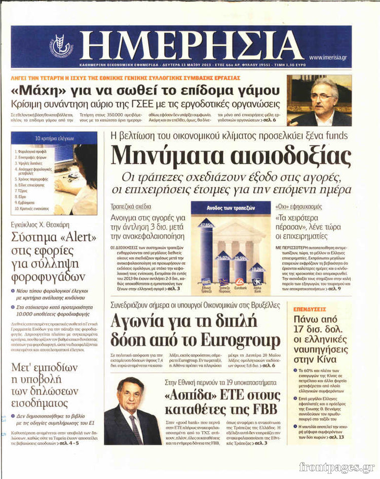 Οι οικονομικές εφημερίδες Enikos Newsroom 09:30, Δευτέρα 13 Μαΐου 2013 Media Οι οικονομικές εφημερίδες Διαβάστε τα πρωτοσέλιδα των οικονομικών εφημερίδων: ΕΦΗΜΕΡΙΔΕΣ ΟΙΚΟΝΟΜΙΚΕΣ ΕΦΗΜΕΡΙΔΕΣ ΠΡΩΤΟΣΕΛΙΔΑ Μοιράσου το: σχολίασε κι εσύ (0 σχόλια) Ακολουθήστε το enikos.gr στο Google News και μάθετε πρώτοι όλες τις ειδήσεις Δείτε όλες τις τελευταίες ειδήσεις από την Ελλάδα και τον Κόσμο στο enikos.gr Ειδήσεις Ροή Ειδήσεων 10 ώρες πριν Μητσοτάκης: Αναγκαία η μεταρρύθμιση του πρωτογενούς τομέα – Τα 6 νέα μέτρα για το στεγαστικό και οι αναφορές σε «Ιθάκη» και «πολιτικούς του καναπέ» 9 ώρες πριν Δάνεια σε ελβετικό φράγκο: Τα βασικά σημεία της ρύθμισης – ανάσας για 40.000 δανειολήπτες – Αναλυτικός οδηγός με ερωτήσεις και απαντήσεις 8 ώρες πριν Κυψέλη: Εξιτήριο πήρε η 14χρονη μαθήτρια που μαχαιρώθηκε από την 16χρονη σε σχολείο – «Θέλω να βοηθήσω το παιδί, έχει μπλέξει με κακές παρέες» 8 ώρες πριν Τραμπ: Γιατί κατέθεσε τώρα την αγωγή κατά του BBC – Πώς η κίνησή του εξυπηρετεί το νέο δόγμα του για «αντίσταση» στην Ευρώπη, υπέρ των συντηρητικών 9 ώρες πριν ΟΠΕΚΕΠΕ – Παράνομες επιδοτήσεις: Ελεύθεροι με περιοριστικούς όρους και οι 7 κατηγορούμενοι που απολογήθηκαν σήμερα 53 λεπτά πριν Οπτική ψευδαίσθηση: Μόνο αν είσαι ο Σέρλοκ Χολμς θα βρεις τον σκύλο σε 15 δευτερόλεπτα 1 ώρα πριν Υγεία του εντέρου: Προσθέστε 1 superfood στα scrambled eggs για καλύτερη πέψη και ευεξία 2 ώρες πριν Τα ζώδια σήμερα, Τετάρτη 17 Δεκεμβρίου: Κριοί, η αυτοπεποίθησή σας ενισχύεται 8 ώρες πριν Ανακαλύφθηκε βυθισμένη πέτρινη κατασκευή ανοιχτά της Κριμαίας – Αποτελεί μέρος αρχαίας ελληνικής αποικίας 52 λεπτά πριν Την Κυριακή με τη Realnews: Δωροεπιταγή 10€ 1 λεπτό πριν Εορτολόγιο: Ποιοι γιορτάζουν σήμερα 17 Δεκεμβρίου 8 λεπτά πριν Την Κυριακή με τη Realnews: Ό,τι και αν αγοράσεις, σκανάρεις και κερδίζεις! 13 λεπτά πριν Βενεζουέλα: «Παράλογος» ο αμερικανικός αποκλεισμός των πετρελαιοφόρων 22 λεπτά πριν ΔΕΔΔΗΕ: Διακοπές ρεύματος σήμερα (17/12) στην Αθήνα και σε άλλες 13 περιοχές της Αττικής ENIKOS NETWORK Δείτε αν έχετε άριστη στερεοσκοπική όραση – Εντοπίστε τον κρυμμένο αριθμό στην εικόνα σε 15 δεύτερα Το δημητριακό της Ισπανικής κατάκτησης που μπορεί να ενισχύσει την καρδιά και να αποκαταστήσει τους μύες Πιερρακάκης: Ο προϋπολογισμός συμβάλλει ουσιαστικά στην ενίσχυση της αγοραστικής δύναμης της πλειονότητας των εργαζομένων e-ΕΦΚΑ: Παρατείνεται η προθεσμία για την υποβολή ΑΠΔ – Ποιους αφορά Σύγχρονος Νοστράδαμος: Προειδοποιεί για «μεγάλο γεγονός» τους επόμενους μήνες που θα συγκλονίσει τη Βρετανία και τον κόσμο Τεστ παρατηρητικότητας: Μπορείτε να βρείτε τις 3 διαφορές στις εικόνες με έναν πιγκουίνο σε 14 δευτερόλεπτα περισσότερα 07:00 , Τετάρτη 17 Δεκεμβρίου 2025 Την Κυριακή με τη Realnews: Ό,τι και αν αγοράσεις, σκανάρεις και κερδίζεις! Την Κυριακή με τη Realnews: Ό,τι και αν αγοράσεις, σκανάρεις και κερδίζεις! Με το PADU app, το... 05:48 , Τετάρτη 17 Δεκεμβρίου 2025 Οι οικονομικές εφημερίδες 17/12/2025 Διαβάστε τα πρωτοσέλιδα από τις οικονομικές εφημερίδες, σήμερα 17/12/2025. 05:43 , Τετάρτη 17 Δεκεμβρίου 2025 Οι αθλητικές εφημερίδες 17/12/2025 Διαβάστε τα πρωτοσέλιδα από τις αθλητικές εφημερίδες, σήμερα 17/12/2025. 05:38 , Τετάρτη 17 Δεκεμβρίου 2025 Οι πολιτικές εφημερίδες 17/12/2025 Διαβάστε τα πρωτοσέλιδα από τις πολιτικές εφημερίδες, σήμερα 17/12/2025. ΤΕΛΕΥΤΑΙΕΣ ΕΙΔΗΣΕΙΣ 8 λεπτά πριν Την Κυριακή με τη Realnews: Ό,τι και αν αγοράσεις,... 13 λεπτά πριν Βενεζουέλα: «Παράλογος» ο αμερικανικός αποκλεισμός... 22 λεπτά πρι