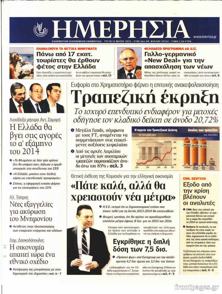 Οι οικονομικές εφημερίδες Enikos Newsroom 09:10, Τρίτη 14 Μαΐου 2013 Media Οι οικονομικές εφημερίδες Δείτε τα πρωτοσέλιδα των οικονομικών εφημερίδων: ΕΦΗΜΕΡΙΔΕΣ ΟΙΚΟΝΟΜΙΚΕΣ ΕΦΗΜΕΡΙΔΕΣ ΠΡΩΤΟΣΕΛΙΔΑ Μοιράσου το: σχολίασε κι εσύ (0 σχόλια) Ακολουθήστε το enikos.gr στο Google News και μάθετε πρώτοι όλες τις ειδήσεις Δείτε όλες τις τελευταίες ειδήσεις από την Ελλάδα και τον Κόσμο στο enikos.gr Ειδήσεις Ροή Ειδήσεων 53 λεπτά πριν ΣΥΡΙΖΑ: Διαγράφεται ο ευρωβουλευτής Νίκος Παππάς μετά την μήνυση δημοσιογράφου για ξυλοδαρμό 2 ώρες πριν Πώς στήθηκε η επιχείρηση «Ίπαλλος» που οδήγησε στη σύλληψη του «Έλληνα Εσκομπάρ» – «Ο πόλεμος ενάντια στους εμπόρους ναρκωτικών θα συνεχιστεί» 2 ώρες πριν Δίκη Χρυσής Αυγής: Την ενοχή και των 42 κατηγορουμένων ζητά η εισαγγελέας 2 ώρες πριν Κυψέλη: Στη φυλακή η 16χρονη που μαχαίρωσε συμμαθήτριά της 5 ώρες πριν Αμοργός: «Θα προσπαθήσω να το κάνω κάθε μέρα» – Ποιος είναι ο αγρότης που έστησε μόνος του το πρώτο μπλόκο στο νησί 2 ώρες πριν Τα 3 ζώδια που θα δουν τη ζωή τους να αλλάζει ριζικά το 2026 – «Όλα γίνονται καλύτερα σταδιακά» 7 ώρες πριν «Δεν είχα κλάψει από τότε που διαγνώστηκα με καρκίνο, ώσπου ένα τηλεφώνημα με έκανε να λυγίσω» – Η συγκλονιστική εξομολόγηση ενός άνδρα 3 ώρες πριν Ο σπάνιος σεισμός που έλυσε τα χέρια των επιστημόνων – Αποκάλυψε ακριβώς όσα αναζητούσαν 9 ώρες πριν 20 χρόνια τα Χριστούγεννα ξεκινούν στα Public με μεγάλη ποικιλία σε δώρα! 2 λεπτά πριν Καβάλα: Βίντεο ντοκουμέντο από διάρρηξη σε καφετέρια – Έσπασαν την τζαμαρία, άρπαξαν το συρτάρι του ταμείου και έγιναν καπνός 8 λεπτά πριν ΑΣΕΠ: Οι προσωρινοί πίνακες για 4.276 θέσεις επιτυχόντων του πρώτου γραπτού διαγωνισμού – Η διαδικασία για τις ενστάσεις 13 λεπτά πριν Αίγινα: Βλάβη στον υποθαλάσσιο αγωγό του νησιού – «Προσωρινά από τις γεωτρήσεις του Δήμου η κάλυψη των αναγκών ύδρευσης» 20 λεπτά πριν Βασιλιάς Κάρολος: Η κίνηση απομόνωσης προς τον αδελφό του Άντριου, στο γεύμα των Χριστουγέννων 24 λεπτά πριν Παύλος Μαρινάκης για Νίκο Παππά: Έπρεπε να χειροδικήσει για να αναγκαστεί ο ΣΥΡΙΖΑ να τον διαγράψει ENIKOS NETWORK Γιατί αναζητούμε τα Χριστούγεννα όλο και νωρίτερα; Ποιοι οι ψυχολογικοί και οι συναισθηματικοί λόγοι Σοβαροί κίνδυνοι από τη λάθος χορήγηση φαρμάκου για τις αιμορραγίες-Συστάσεις προς τους γιατρούς «Αναταράξεις» στην εφοδιαστική αλυσίδα από τα μπλόκα: Επιστολή του Συνδέσμου Θεσσαλικών Βιομηχανιών στον πρωθυπουργό -Τι αν... Δάνεια σε ελβετικό φράγκο: Αύριο η κατάθεση της τροπολογίας στη Βουλή – Όλες οι λεπτομέρειες Χαρτογραφώντας το «σημείο χωρίς επιστροφή»: Για πρώτη φορά αποκαλύπτεται με λεπτομέρεια το ακανθώδες όριο της ατμόσφαιρας τ... Η Google καταργεί τη λειτουργία «dark web report» – Πώς θα μπορούν οι χρήστες να διαγράφουν τα δεδομένα τους περισσότερα 12:35 , Τετάρτη 17 Δεκεμβρίου 2025 Μίρκα Παπακωνσταντίνου: «Δεν ήμουν αισιόδοξη για τα νούμερα – Είμαι ρεαλίστρια» Στα γυρίσματα του εορταστικού επεισοδίου της αγαπημένης σειράς “Το Σόι Σου”, βρέθηκε η κάμερα ... 12:12 , Τετάρτη 17 Δεκεμβρίου 2025 Ακούστε την εκπομπή του Νίκου Χατζηνικολάου 17/12/2025 Ακούστε την εκπομπή του Νίκου Χατζηνικολάου στον ραδιοφωνικό σταθμό RealFm 97,8, την Τετάρτη 1... 11:35 , Τετάρτη 17 Δεκεμβρίου 2025 Home Alone: Το σπίτι της ταινίας θα ανακαινιστεί – Επιστροφή στην αισθητική της δεκαετίας του ’90 Οι νέοι ιδιοκτήτες του πραγματικού σπιτιού που παρουσιάζεται στην κλασική ταινία του 1990 «Hom... 11:25 , Τετάρτη 17 Δεκεμβρίου 2025 Grand Hote