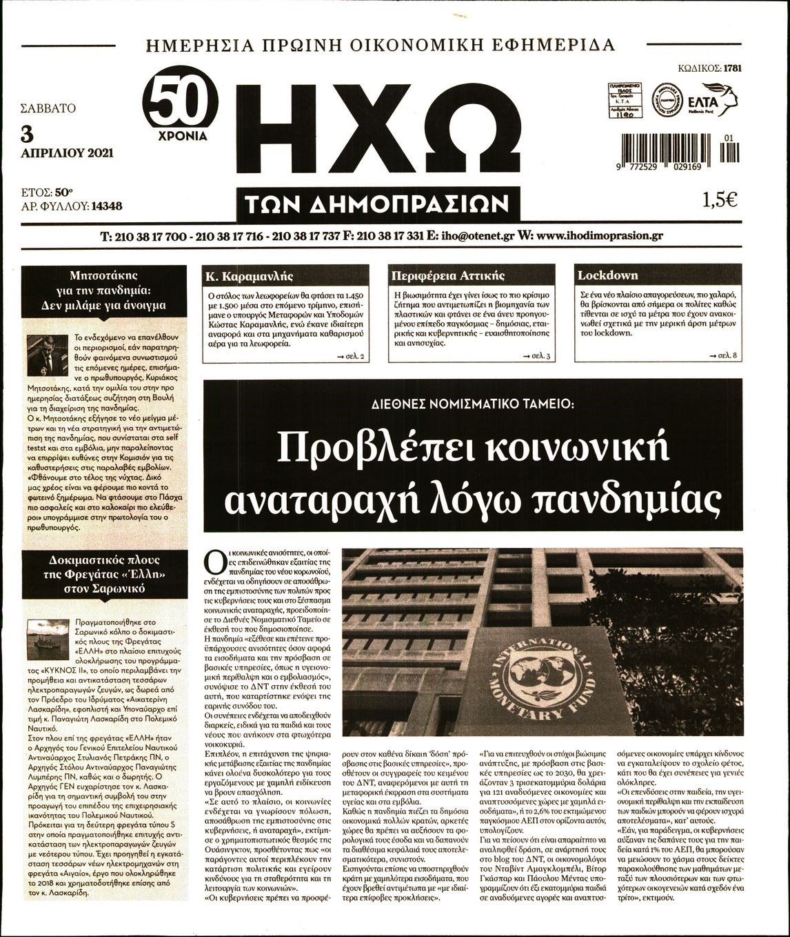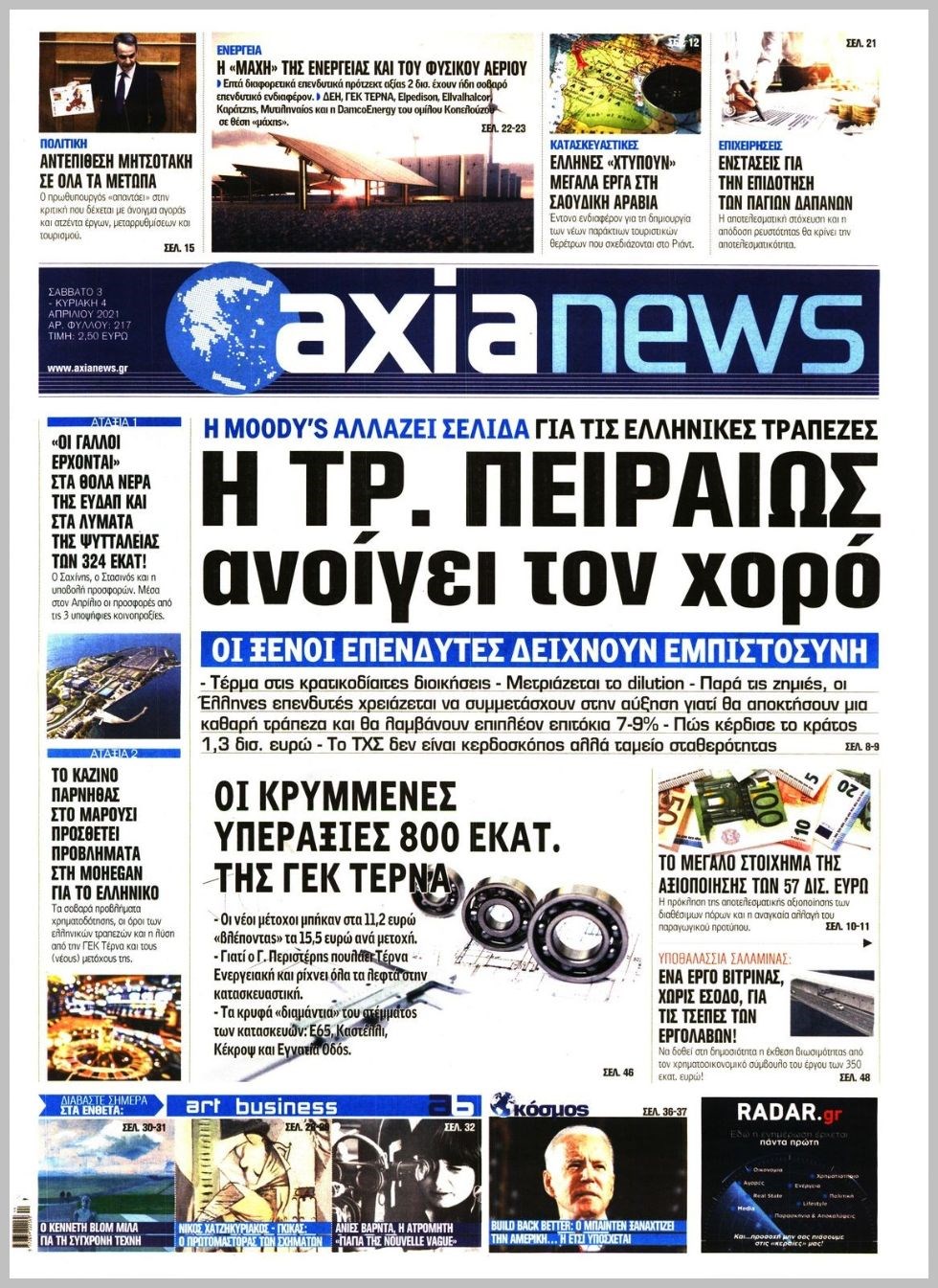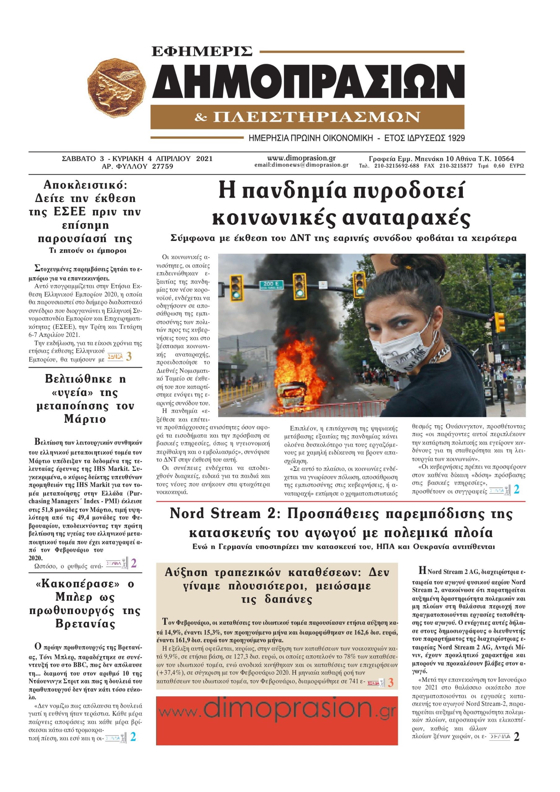 Οι οικονομικές εφημερίδες 3/4/2021 Διονύσης Νίκκας 07:30, Σάββατο 03 Απριλίου 2021 Media Διαβάστε τα πρωτοσέλιδα των οικονομικών εφημερίδων… ΟΙΚΟΝΟΜΙΚΕΣ ΕΦΗΜΕΡΙΔΕΣ Μοιράσου το: σχολίασε κι εσύ (0 σχόλια) Ακολουθήστε το enikos.gr στο Google News και μάθετε πρώτοι όλες τις ειδήσεις Δείτε όλες τις τελευταίες ειδήσεις από την Ελλάδα και τον Κόσμο στο enikos.gr Ειδήσεις Ροή Ειδήσεων 3 ώρες πριν Χριστούγεννα στα μπλόκα: Επιμένουν στις κινητοποιήσεις τους οι αγρότες – Ανοίγουν τα διόδια το Σαββατοκύριακο 3 ώρες πριν Ουκρανία: Η άνευ προηγουμένου επίθεση σε ρωσικό τάνκερ στη Μεσόγειο και το μήνυμα προς στον Πούτιν – Το «μακρύ χέρι» του Κιέβου 2 ώρες πριν Πούτιν: Τα μηνύματα σε Ευρώπη και ΝΑΤΟ από το μαραθώνιο «σόου» του – Η απαίτηση για «σεβασμό» και η ειρήνη «με τους όρους» της Μόσχας 3 ώρες πριν Τραμπ: Δεν αποκλείει την πιθανότητα ενός πολέμου στη Βενεζουέλα – «Ο Μαδούρο ξέρει καλύτερα από τον καθένα τι ακριβώς θέλω» 4 ώρες πριν Συνεχίζει να προκαλεί ο Μίτσκοσκι: «Για μένα το όνομα Μακεδονία είναι ιερό» 3 ώρες πριν Ανακαλύφθηκαν αρχαία χρυσά νομίσματα 2.200 ετών που απεικονίζουν τον θεό Απόλλωνα – Η άγνωστη σύνδεση με τον Φίλιππο Β΄ της Μακεδονίας 3 ώρες πριν Ύπνος: Μια κρυφή κατάσταση του εγκεφάλου πριν από τον ύπνο μπορεί να είναι το “κλειδί” για υψηλή ευφυΐα και δημιουργικότητα 4 ώρες πριν Αριθμολογία: Οι άνθρωποι που έχουν γεννηθεί αυτές τις 4 ημερομηνίες, συχνά παρεξηγούνται – «Η καλοσύνη τους κρύβει τεράστια δύναμη» 5 ώρες πριν Ξεχάστε το καθάρισμα το Σαββατοκύριακο: Ο «κανόνας των 20 λεπτών» που θα σας λύσει τα χέρια 20 λεπτά πριν Συρία: Μαζικά πλήγματα των ΗΠΑ σε θέσεις του Ισλαμικού Κράτους – Χέγκσεθ: «Δεν είναι αρχή πολέμου, είναι μια δήλωση εκδίκησης» για το θάνατο των στρατιωτών μας 32 λεπτά πριν Ουκρανία: Ολοκληρώθηκαν οι συνομιλίες με τους Αμερικανούς κι Ευρωπαίους διαπραγματευτές 47 λεπτά πριν Μπαρτσελόνα – Μπασκόνια 134-124: Οι «μπλαουγκράνα» πήραν το ματς της χρονιάς ύστερα από τρεις παρατάσεις 1 ώρα πριν Φαίη Σκορδά: «Παλιότερα τα κομπλιμέντα τα προσπερνούσα, τώρα τα έχω ανάγκη» 1 ώρα πριν Βασίλης Σπανούλης: Δεν εμφανίστηκε ούτε ένας δημοσιογράφος στην συνέντευξη Τύπου – «Καλησπέρα στον… κανέναν», δείτε βίντεο ENIKOS NETWORK Το ΕΚΑΒ τιμήθηκε από την Ακαδημία Αθηνών για τα 40 χρόνια προσφοράς του Έχετε πραγματικά μεγάλη καρδιά; 10 χαρακτηριστικά όσων έχουν καλοσύνη Αναστολή μέτρων αναγκαστικής εκτέλεσης για κτηνοτρόφους που πλήττονται από την ευλογιά των αιγοπροβάτων Πλήρης επάρκεια προϊόντων στις λαϊκές της Αττικής, παρά τις αγροτικές κινητοποιήσεις – Τι απαντούν οι πωλητές Χαρτογραφώντας το «σημείο χωρίς επιστροφή»: Για πρώτη φορά αποκαλύπτεται με λεπτομέρεια το ακανθώδες όριο της ατμόσφαιρας τ... Η Google καταργεί τη λειτουργία «dark web report» – Πώς θα μπορούν οι χρήστες να διαγράφουν τα δεδομένα τους περισσότερα 22:42 , Παρασκευή 19 Δεκεμβρίου 2025 Γιώργος Γιαννόπουλος για “Το σόι σου”: “Είναι ευτυχία και ευλογία αυτή η σειρά” «Είναι ευτυχία και ευλογία η συγκυρία αυτής της σειράς», θα πει ο Γιώργος Γιαννόπουλος -ο αγαπ... 20:37 , Παρασκευή 19 Δεκεμβρίου 2025 Don’t Forget The Lyrics: Η Έλλη Κοκκίνου υποδέχεται 4 παίκτες που θα κάνουν τα πάντα για να μη χάσουν ούτε… μισή λέξη από τους στίχους Το «Don’t Forget The Lyrics» επιστρέφει απόψε, Παρασκευή 19 Δεκεμβρίου, στις 21:00 με νέο επει... 19:31 , Παρασκευή 19 Δεκεμβρίου 2025 GNTM: Απόψε ο μεγάλος τελικός για τους 4 φιναλίστ Έπειτα από μήνες γεμάτους μόδα
