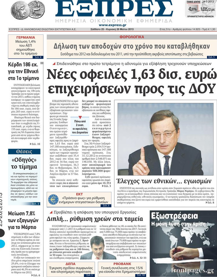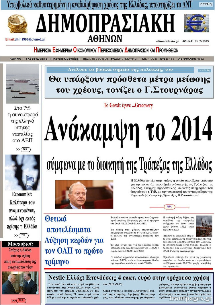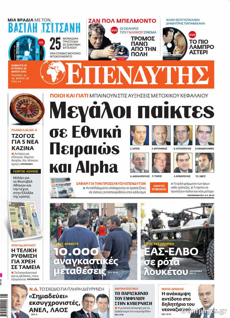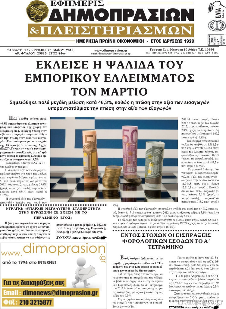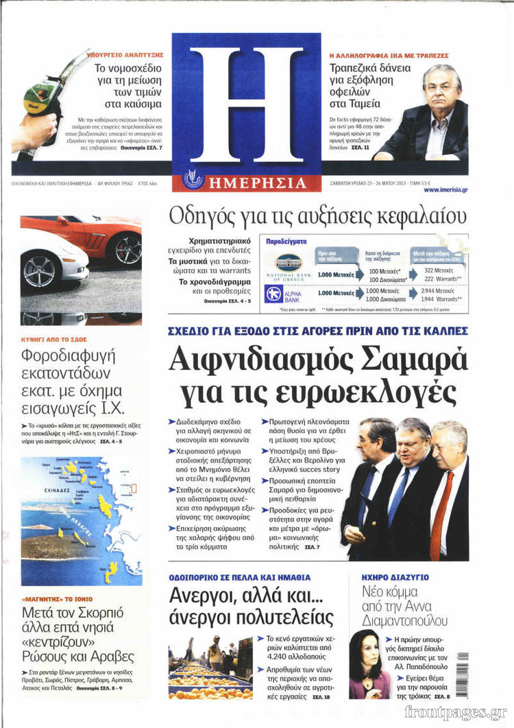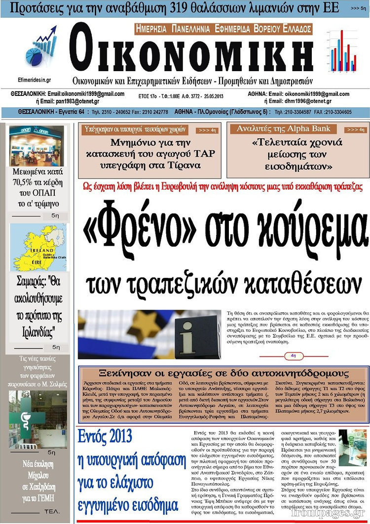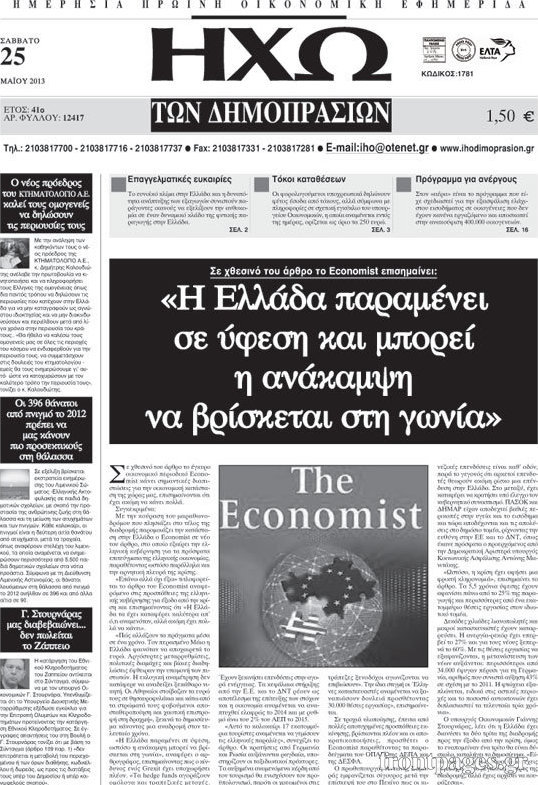 Οι οικονομικές εφημερίδες Enikos Newsroom 09:45, Σάββατο 25 Μαΐου 2013 Media Οι οικονομικές εφημερίδες ΕΦΗΜΕΡΙΔΕΣ ΟΙΚΟΝΟΜΙΚΕΣ ΕΦΗΜΕΡΙΔΕΣ Μοιράσου το: σχολίασε κι εσύ (0 σχόλια) Ακολουθήστε το enikos.gr στο Google News και μάθετε πρώτοι όλες τις ειδήσεις Δείτε όλες τις τελευταίες ειδήσεις από την Ελλάδα και τον Κόσμο στο enikos.gr Ειδήσεις Ροή Ειδήσεων 2 ώρες πριν Εκτός ευρωομάδας ΣΥΡΙΖΑ ο Νίκος Παππάς μετά την επίθεση στον δημοσιογράφο Νίκο Γιαννόπουλο – Η μήνυση και οι νέες δηλώσεις 3 ώρες πριν «Αγριεύουν» οι αγρότες: «Δεν συντρέχει λόγος συνάντησης με τον πρωθυπουργό» – Ώρα αποφάσεων στη σύσκεψη της Πέμπτης 3 ώρες πριν Κυψέλη: Χωρίς την οικογένειά της δίπλα της απολογήθηκε η 16χρονη – «Της είχε επιτεθεί κάποιος για να την βιάσει, φοβήθηκε και κυκλοφορούσε με μαχαίρι» 2 ώρες πριν Politico: Το πρόβλημα της Ευρώπης δεν είναι το Βέλγιο αλλά ο Ντόναλντ Τραμπ 4 ώρες πριν Αλεξανδρούπολη: Πολυοργανική ανεπάρκεια λόγω υποσιτισμού η αιτία θανάτου του 3χρονου αγοριού 2 ώρες πριν Μυστήριο με τεράστιες κυκλικές πέτρες 200 κιλών – Ανακαλύφθηκαν τυχαία κατά τη διάρκεια οδικών έργων και κανείς δεν ξέρει από πού προέρχονται 3 ώρες πριν Ύπνος: Ειδικός εξηγεί τον πραγματικό λόγο που ξυπνάτε στις 4 τα ξημερώματα – Ο ρόλος των ορμονών και του κιρκάδιου ρυθμού 4 ώρες πριν Αριθμολογία: Οι άνθρωποι που έχουν γεννηθεί αυτές τις 4 ημερομηνίες, είναι τρυφεροί και αγαπούν ανιδιοτελώς 16 ώρες πριν 20 χρόνια τα Χριστούγεννα ξεκινούν στα Public με μεγάλη ποικιλία σε δώρα! 19 δευτερόλεπτα πριν Μουντιάλ 2026: Η νέα ταξιδιωτική απαγόρευση του Ντόναλντ Τραμπ πλήττει (και) τους οπαδούς Σενεγάλης – Ακτής Ελεφαντοστού 12 λεπτά πριν Κυριάκος Μητσοτάκης: Στις Βρυξέλλες για την Σύνοδο Κορυφής ΕΕ και Δυτικών Βαλκανίων – Δείτε φωτογραφίες 24 λεπτά πριν Σάρα Εσκενάζυ: Η πρώτη ανάρτηση για το θάνατο του πατέρα της, Αλμπέρτο Εσκενάζυ και η επιθυμία της οικογένειας 40 λεπτά πριν Παρί Σεν Ζερμέν – Φλαμένγκο 2-1 πεν. (1-1 κ.δ.): Οι Γάλλοι σήκωσαν και το Διηπειρωτικό με ήρωα τον Σαφόνοφ που έπιασε 4 πέναλτι 55 λεπτά πριν Βέλγους πολιτικούς και επικεφαλής χρηματοπιστωτικών ιδρυμάτων στοχοποιεί η Μόσχα για τα κατασχεθέντα περιουσιακά στοιχεία ENIKOS NETWORK Αϋπνία: Το κόλπο που θα σας βοηθήσει να κοιμηθείτε απόψε – Είναι απλό και έχει αποτέλεσμα 2,6 εκατομμύρια πολίτες έχουν ήδη εμβολιαστεί κατά της γρίπης ΕΛΣΤΑΤ: Τι δείχνουν τα νέα στοιχεία για τις ηλεκτρονικές παραγγελίες των επιχειρήσεων ΚΕΠΕ: Οι 3 διακριτές συμβολές των ΜμΕ και της μεταποίησης στην ελληνική οικονομία Χαρτογραφώντας το «σημείο χωρίς επιστροφή»: Για πρώτη φορά αποκαλύπτεται με λεπτομέρεια το ακανθώδες όριο της ατμόσφαιρας τ... Η Google καταργεί τη λειτουργία «dark web report» – Πώς θα μπορούν οι χρήστες να διαγράφουν τα δεδομένα τους περισσότερα 22:24 , Τετάρτη 17 Δεκεμβρίου 2025 Το Σπίτι Δίπλα Στο Ποτάμι: Σε κίνδυνο η υγεία του Απόστολου – Τι θα δούμε απόψε “Το Σπίτι Δίπλα στο Ποτάμι” ξετυλίγει το νήμα της ζωής των πέντε αδελφών με καταισ... 21:14 , Τετάρτη 17 Δεκεμβρίου 2025 Παιχνίδια Εκδίκησης: Θα καταφέρει ο Χρήστος να κλονίσει την εμπιστοσύνη της Μάγιας απέναντι στον Άγη; Τα «Παιχνίδια Εκδίκησης» έρχονται απόψε στις 22:30, στον Αντ1, με το τελευταίο επεισόδιο της χ... 20:57 , Τετάρτη 17 Δεκεμβρίου 2025 Άγιος Έρωτας: Η Χλόη καταθέτει εναντίον του πατέρα της και ο Χάρης αποκαλύπτει στον Κλεάνθη ότι δεν είναι ο βιολογικός του πατέρας. Γεμάτο αποκαλύψεις είναι το νέο επεισόδιο της σειράς “Άγιος Έρ