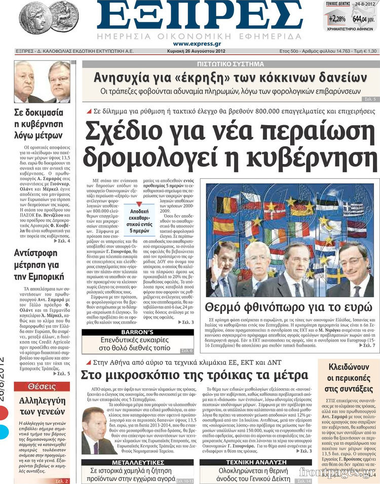 Διαβάστε τα πρωτοσέλιδα των οικονομικών εφημερίδων.