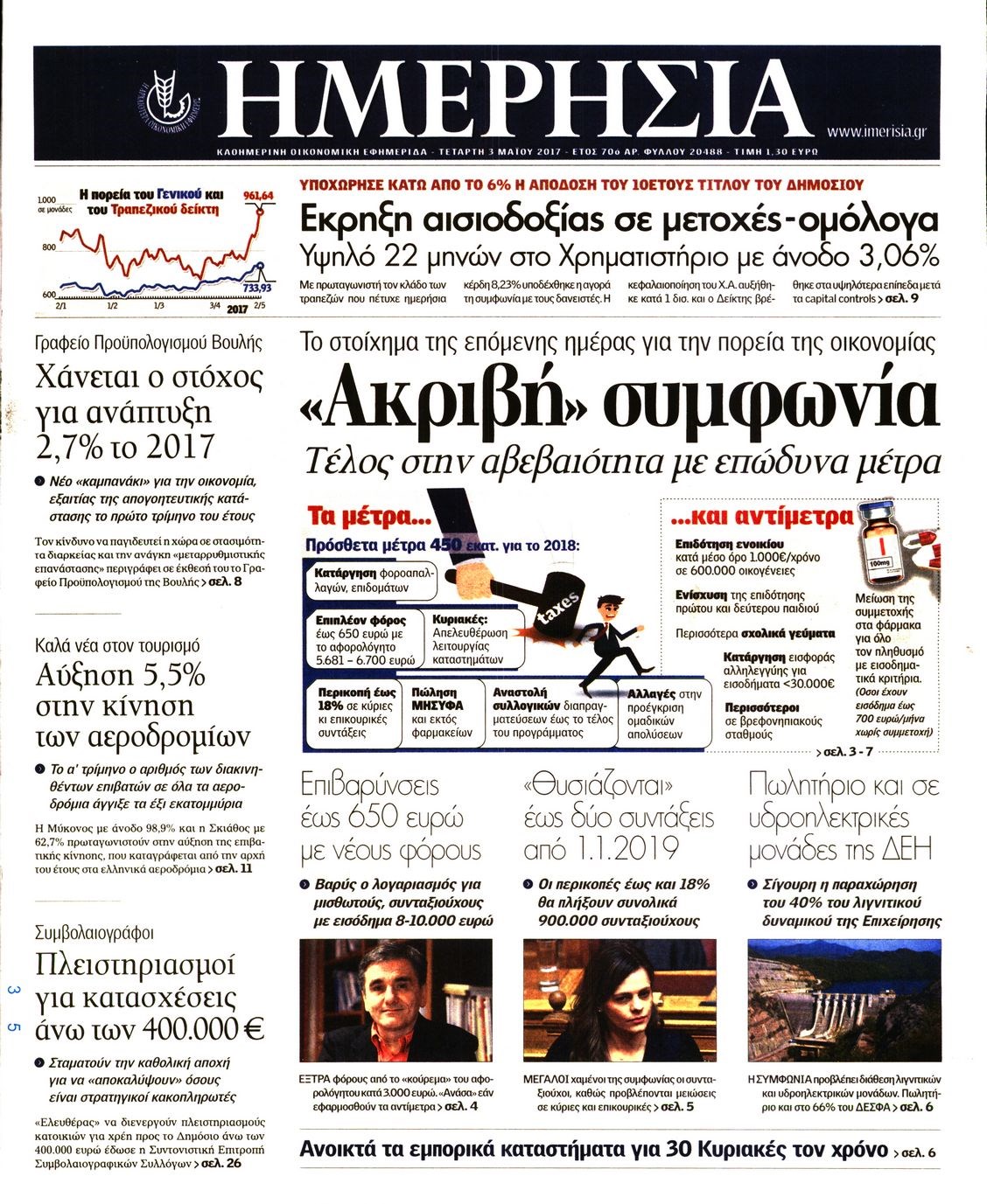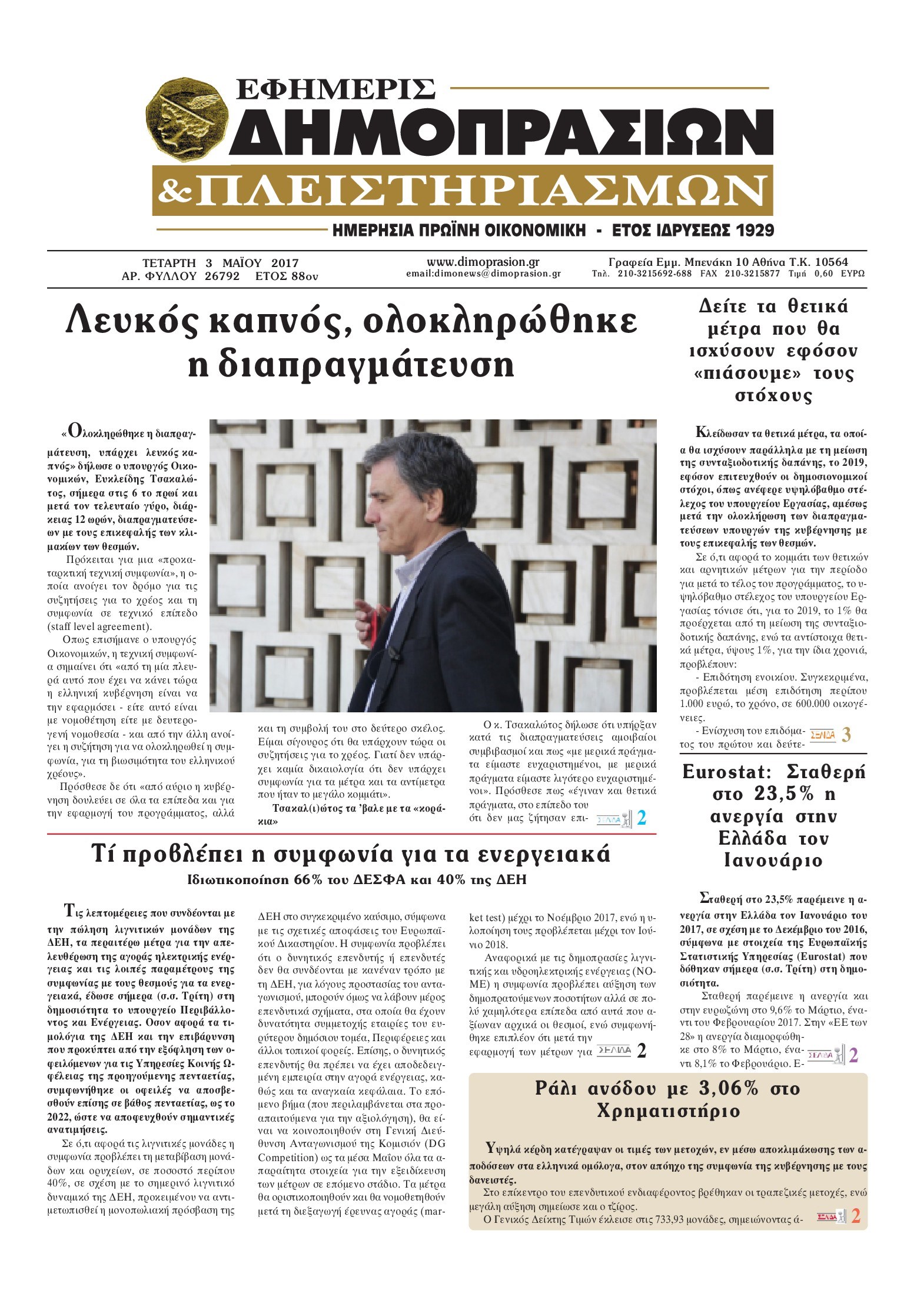 Οι οικονομικές εφημερίδες 3/5/2017 Enikos Newsroom 06:43, Τετάρτη 03 Μαΐου 2017 Media Διαβάστε τα σημερινά πρωτοσέλιδα των οικονομικών εφημερίδων: ΟΙΚΟΝΟΜΙΚΕΣ ΕΦΗΜΕΡΙΔΕΣ ΠΡΩΤΟΣΕΛΙΔΑ Μοιράσου το: σχολίασε κι εσύ (0 σχόλια) Ακολουθήστε το enikos.gr στο Google News και μάθετε πρώτοι όλες τις ειδήσεις Δείτε όλες τις τελευταίες ειδήσεις από την Ελλάδα και τον Κόσμο στο enikos.gr Ειδήσεις Ροή Ειδήσεων 3 λεπτά πριν Ευρωπαϊκή Ένωση: Συμφωνία για δάνειο 90 δισ. ευρώ στην Ουκρανία τη διετία 2026-2027 5 ώρες πριν ΟΠΕΚΕΠΕ: Προφυλακιστέος ο φερόμενος αρχηγός και ο λογιστής της εγκληματικής οργάνωσης 6 ώρες πριν Αυξάνουν την πίεση προς την κυβέρνηση οι αγρότες: Κλείνουν παρακαμπτήριους και ανοίγουν διόδια – Τι θα γίνει τις γιορτές 6 ώρες πριν Φοινικούντα: Το Σάββατο απολογείται ο 30χρονος γιος γνωστού επιχειρηματία της Πλάκας που παραδόθηκε – Όσα είπε στους αστυνομικούς και ο ρόλος του στο έγκλημα 4 ώρες πριν ΑΕΚ – Κραϊόβα 3-2: Επική ανατροπή και πρόκριση στους «16» του Conference League η Ένωση 5 ώρες πριν Αρχαιολόγοι ανακάλυψαν ρωμαϊκά τεχνουργήματα από μια πόλη που δεν υπήρξε ποτέ – Τα τρία εντυπωσιακά κτίρια και ο αμφορέας με τις… σαρδέλες 6 ώρες πριν Ύπνος: Η απλή βραδινή ρουτίνα για να προστατεύσετε τα μαλλιά σας από το κρύο κατά τη διάρκεια του χειμώνα 7 ώρες πριν Manifesting: Πώς να συναντήσετε τον σύντροφο της ζωής σας, ανάλογα με τον μήνα γέννησής σας 2 ημέρες πριν 20 χρόνια τα Χριστούγεννα ξεκινούν στα Public με μεγάλη ποικιλία σε δώρα! 3 λεπτά πριν Ευρωπαϊκή Ένωση: Συμφωνία για δάνειο 90 δισ. ευρώ στην Ουκρανία τη διετία 2026-2027 26 λεπτά πριν Αιματηρή βομβιστική επίθεση στην Υεμένη: Τουλάχιστον τρεις νεκροί και 13 τραυματίες 29 λεπτά πριν Στη Φλόριντα σήμερα οι διαβουλεύσεις σχετικά με τα επόμενα στάδια για τη Λωρίδα της Γάζας 34 λεπτά πριν Σίσσυ Τουμάση: «Είμαι ασθενοφοβική πάρα πολύ και με πιάνει μια παράνοια μ’ αυτό» 58 λεπτά πριν Ντόναλντ Τραμπ: Δεν χρειάζομαι την έγκριση του Κογκρέσου για να διατάξω στρατιωτικά πλήγματα στη Βενεζουέλα ENIKOS NETWORK Σε περίοδο αυξημένης δραστηριότητας η γρίπη στην Ελλάδα-Μέτρα προστασίας από τον ΕΟΔΥ Σκέφτεστε συνέχεια συζητήσεις που έχετε κάνει; Τι σημαίνει αυτό, σύμφωνα με ειδικό Στεγαστικό: Τι λέει η ΠΟΜΙΔΑ για τα νέα μέτρα που ανακοίνωσε ο Κυριάκος Μητσοτάκης Λαγκάρντ: Αισιόδοξη για την ανάπτυξη της Ευρωζώνης, αβέβαιη για τον πληθωρισμό Χαρτογραφώντας το «σημείο χωρίς επιστροφή»: Για πρώτη φορά αποκαλύπτεται με λεπτομέρεια το ακανθώδες όριο της ατμόσφαιρας τ... Η Google καταργεί τη λειτουργία «dark web report» – Πώς θα μπορούν οι χρήστες να διαγράφουν τα δεδομένα τους περισσότερα 02:50 , Παρασκευή 19 Δεκεμβρίου 2025 GNTM: «Κλείδωσαν» οι τέσσερις φιναλίστ – Μεγάλη ανατροπή στις τελευταίες αποχωρήσεις Για προτελευταία φορά εμφανίστηκαν στο πλατό του GNTM οι φιναλίστ του φετινού κύκλου, το βράδυ... 17:45 , Πέμπτη 18 Δεκεμβρίου 2025 ROUK ZOUK: Εορταστικό επεισόδιο με καλεσμένους τους πρωταγωνιστές του «Γιατί ρε πατέρα» Το Σάββατο 20 Δεκεμβρίου στις 21:00, η Ζέτα Μακρυπούλια υποδέχεται εκλεκτούς ηθοποιούς που όλο... 17:20 , Πέμπτη 18 Δεκεμβρίου 2025 Άγιος έρωτας: Η Χριστίνα εξομολογείται στον πατέρα Νικόλαο, απόψε στις 21:00 στον Alpha Η Νότα αποφασίζει να εκδικηθεί τον Πέτρο και τον Στέφανο, για χάρη του Λούη, όμως τα πράγματα ... 16:50 , Πέμπτη 18 Δεκεμβρίου 2025 Να μ’ αγαπάς: Ζωή και Φωτεινή συμφιλιώνονται ως μάνα με κόρη, απόψε στις 20:00 Η ταυτότητα του Άγγελου αποκαλύπτεται στο νέο επεισόδιο της σειράς “Να μ’ αγαπάς..