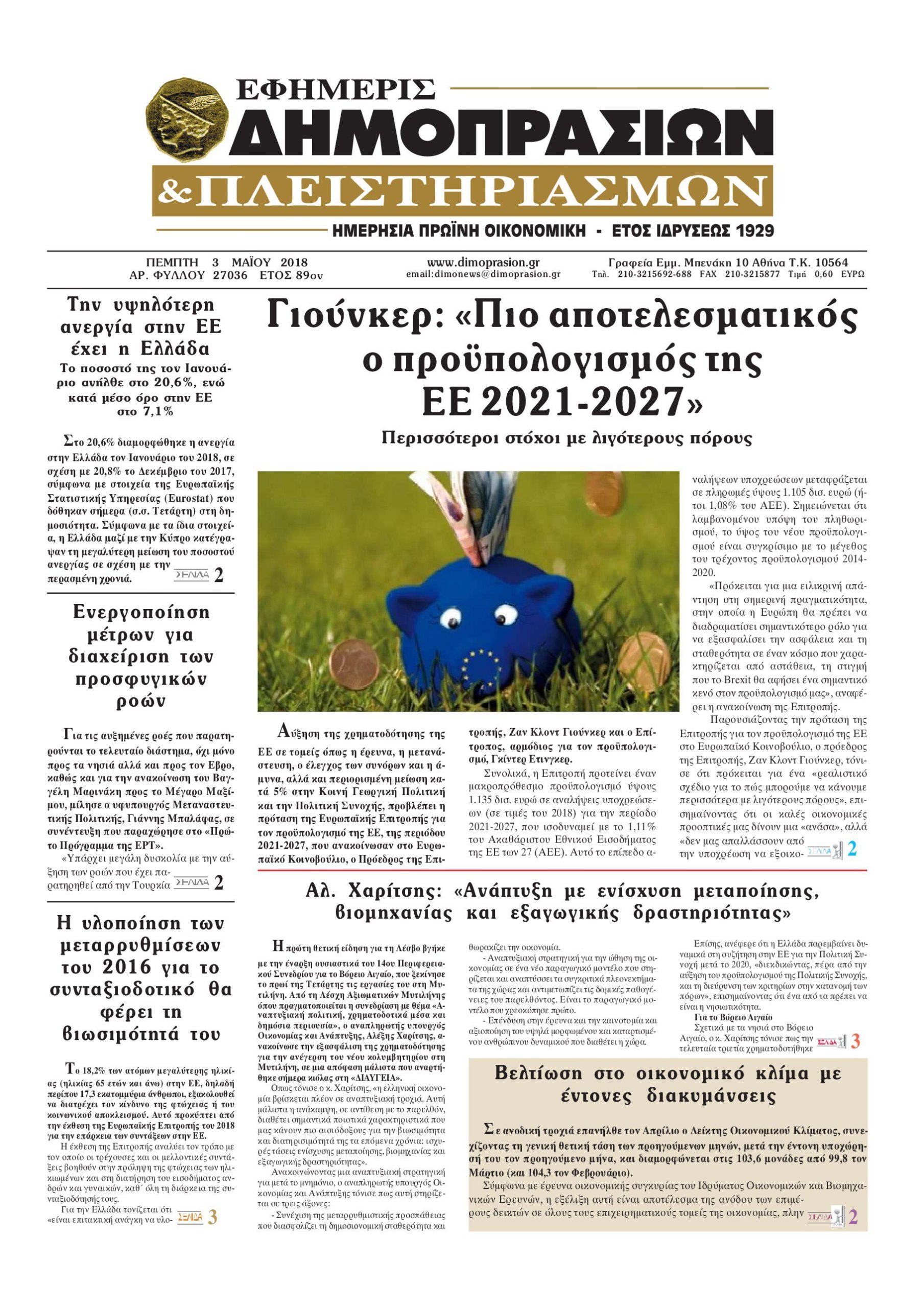 Οι οικονομικές εφημερίδες 3/5/2018 Enikos Newsroom 07:55, Πέμπτη 03 Μαΐου 2018 Media Διαβάστε τα σημερινά πρωτοσέλιδα των οικονομικών εφημερίδων: ΟΙΚΟΝΟΜΙΚΕΣ ΕΦΗΜΕΡΙΔΕΣ ΠΡΩΤΟΣΕΛΙΔΑ Μοιράσου το: σχολίασε κι εσύ (0 σχόλια) Ακολουθήστε το enikos.gr στο Google News και μάθετε πρώτοι όλες τις ειδήσεις Δείτε όλες τις τελευταίες ειδήσεις από την Ελλάδα και τον Κόσμο στο enikos.gr Ειδήσεις Ροή Ειδήσεων 3 ώρες πριν Αυξάνουν την πίεση προς την κυβέρνηση οι αγρότες: Κλείνουν παρακαμπτήριους και ανοίγουν διόδια – Τι θα γίνει τις γιορτές 1 ώρα πριν ΟΠΕΚΕΠΕ: Προφυλακιστέος ο φερόμενος αρχηγός και ο λογιστής της εγκληματικής οργάνωσης 2 ώρες πριν Φοινικούντα: Το Σάββατο απολογείται ο 30χρονος γιος γνωστού επιχειρηματία της Πλάκας που παραδόθηκε – Όσα είπε στους αστυνομικούς και ο ρόλος του στο έγκλημα 2 ώρες πριν Μπορεί ο Μαδούρο να αντέξει τον αποκλεισμό του Τραμπ; Τι θα χρειαστεί η Ουάσινγκτον για να τον ανατρέψει 4 ώρες πριν Πρίγκιπας Ουίλιαμ – Κέιτ: Η νέα οικογενειακή φωτογραφία για τις Χριστουγεννιάτικες κάρτες του 2025 3 ώρες πριν Ύπνος: Η απλή βραδινή ρουτίνα για να προστατεύσετε τα μαλλιά σας από το κρύο κατά τη διάρκεια του χειμώνα 4 ώρες πριν Manifesting: Πώς να συναντήσετε τον σύντροφο της ζωής σας, ανάλογα με τον μήνα γέννησής σας 2 ημέρες πριν 20 χρόνια τα Χριστούγεννα ξεκινούν στα Public με μεγάλη ποικιλία σε δώρα! 2 ώρες πριν Αρχαιολόγοι ανακάλυψαν ρωμαϊκά τεχνουργήματα από μια πόλη που δεν υπήρξε ποτέ – Τα τρία εντυπωσιακά κτίρια και ο αμφορέας με τις… σαρδέλες 4 λεπτά πριν Νέος πρέσβης της Μεγάλης Βρετανίας στις ΗΠΑ ο Κρίστιαν Τέρνερ 7 λεπτά πριν Conference League: Με Νόα, Ντρίτα, Άλκμααρ ή Τσέλιε στους «16» η ΑΕΚ 16 λεπτά πριν Conference League: Απευθείας στους «16» η ΑΕΚ Λάρνακας και η Ρακόβ των Σβάρνα και Κωνσταντόπουλου – Τα αποτελέσματα και η βαθμολογία, 3η η ΑΕΚ 26 λεπτά πριν Σε ομάδες που συνδέονται με το ρωσικό κράτος αποδίδει η Δανία δύο κυβερνοεπιθέσεις που δέχθηκε 40 λεπτά πριν Βαθμολογία UEFA: Η Πολωνία προσπέρασε την Ελλάδα ENIKOS NETWORK Σε περίοδο αυξημένης δραστηριότητας η γρίπη στην Ελλάδα-Μέτρα προστασίας από τον ΕΟΔΥ Σκέφτεστε συνέχεια συζητήσεις που έχετε κάνει; Τι σημαίνει αυτό, σύμφωνα με ειδικό Στεγαστικό: Τι λέει η ΠΟΜΙΔΑ για τα νέα μέτρα που ανακοίνωσε ο Κυριάκος Μητσοτάκης Λαγκάρντ: Αισιόδοξη για την ανάπτυξη της Ευρωζώνης, αβέβαιη για τον πληθωρισμό Χαρτογραφώντας το «σημείο χωρίς επιστροφή»: Για πρώτη φορά αποκαλύπτεται με λεπτομέρεια το ακανθώδες όριο της ατμόσφαιρας τ... Η Google καταργεί τη λειτουργία «dark web report» – Πώς θα μπορούν οι χρήστες να διαγράφουν τα δεδομένα τους περισσότερα 17:45 , Πέμπτη 18 Δεκεμβρίου 2025 ROUK ZOUK: Εορταστικό επεισόδιο με καλεσμένους τους πρωταγωνιστές του «Γιατί ρε πατέρα» Το Σάββατο 20 Δεκεμβρίου στις 21:00, η Ζέτα Μακρυπούλια υποδέχεται εκλεκτούς ηθοποιούς που όλο... 17:20 , Πέμπτη 18 Δεκεμβρίου 2025 Άγιος έρωτας: Η Χριστίνα εξομολογείται στον πατέρα Νικόλαο, απόψε στις 21:00 στον Alpha Η Νότα αποφασίζει να εκδικηθεί τον Πέτρο και τον Στέφανο, για χάρη του Λούη, όμως τα πράγματα ... 16:50 , Πέμπτη 18 Δεκεμβρίου 2025 Να μ’ αγαπάς: Ζωή και Φωτεινή συμφιλιώνονται ως μάνα με κόρη, απόψε στις 20:00 Η ταυτότητα του Άγγελου αποκαλύπτεται στο νέο επεισόδιο της σειράς “Να μ’ αγαπάς... 15:52 , Πέμπτη 18 Δεκεμβρίου 2025 Το Σπίτι Δίπλα Στο Ποτάμι: Το καθηλωτικό τελευταίο επεισόδιο για το 2025 απόψε στις 22:30 Καθηλώνει το σημερινό επεισόδιο της σειράς “Το Σπίτι Δίπλα Στο Ποτάμι” που έρχεται... ΤΕΛΕΥΤΑΙΕΣ ΕΙ