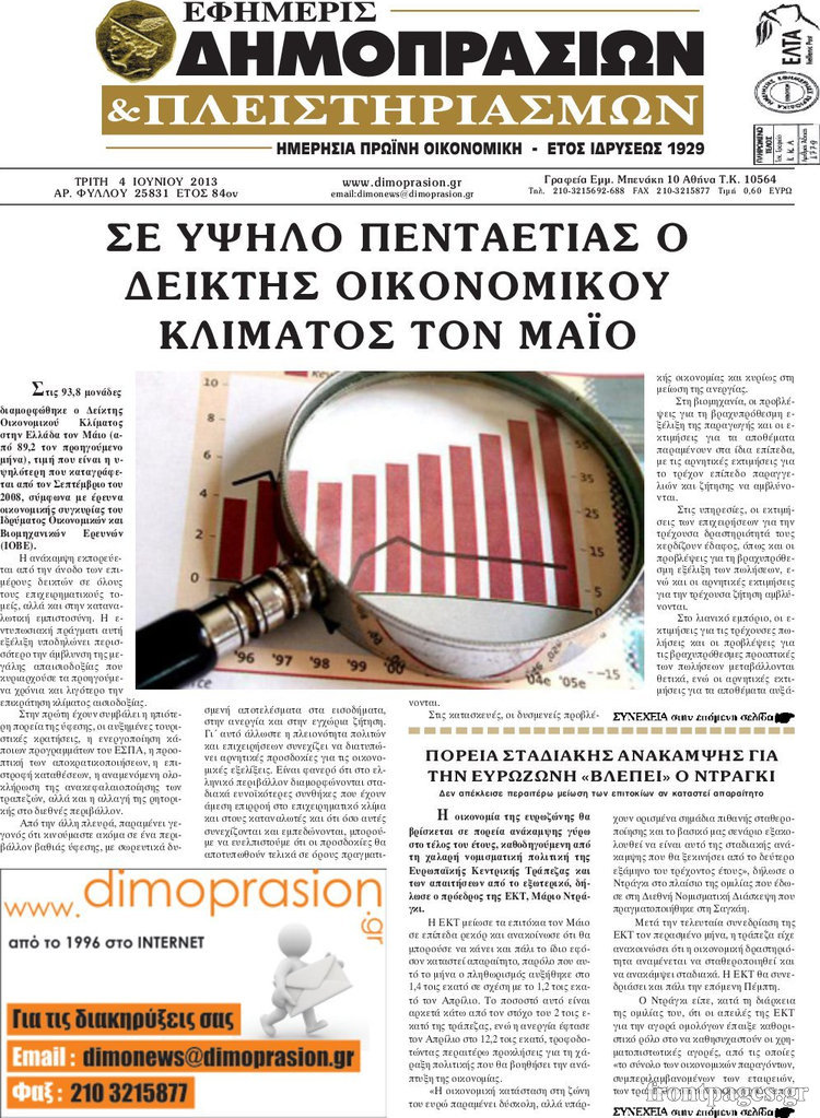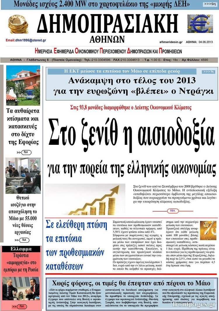 Οι oικονομικές εφημερίδες Enikos Newsroom 09:25, Τρίτη 04 Ιουνίου 2013 Media Οι oικονομικές εφημερίδες Διαβάστε τα πρωτοσέλιδα των οικονομικών εφημερίδων: ΕΦΗΜΕΡΙΔΕΣ ΟΙΚΟΝΟΜΙΚΕΣ ΕΦΗΜΕΡΙΔΕΣ ΠΡΩΤΟΣΕΛΙΔΑ Μοιράσου το: σχολίασε κι εσύ (0 σχόλια) Ακολουθήστε το enikos.gr στο Google News και μάθετε πρώτοι όλες τις ειδήσεις Δείτε όλες τις τελευταίες ειδήσεις από την Ελλάδα και τον Κόσμο στο enikos.gr Ειδήσεις Ροή Ειδήσεων 5 ώρες πριν Εκτός ευρωομάδας ΣΥΡΙΖΑ ο Νίκος Παππάς μετά την επίθεση στον δημοσιογράφο Νίκο Γιαννόπουλο – Η μήνυση και οι νέες δηλώσεις 5 ώρες πριν «Αγριεύουν» οι αγρότες: «Δεν συντρέχει λόγος συνάντησης με τον πρωθυπουργό» – Ώρα αποφάσεων στη σύσκεψη της Πέμπτης 5 ώρες πριν Κυψέλη: Χωρίς την οικογένειά της δίπλα της απολογήθηκε η 16χρονη – «Της είχε επιτεθεί κάποιος για να την βιάσει, φοβήθηκε και κυκλοφορούσε με μαχαίρι» 5 ώρες πριν Politico: Το πρόβλημα της Ευρώπης δεν είναι το Βέλγιο αλλά ο Ντόναλντ Τραμπ 6 ώρες πριν Αλεξανδρούπολη: Πολυοργανική ανεπάρκεια λόγω υποσιτισμού η αιτία θανάτου του 3χρονου αγοριού 5 ώρες πριν Μυστήριο με τεράστιες κυκλικές πέτρες 200 κιλών – Ανακαλύφθηκαν τυχαία κατά τη διάρκεια οδικών έργων και κανείς δεν ξέρει από πού προέρχονται 6 ώρες πριν Ύπνος: Ειδικός εξηγεί τον πραγματικό λόγο που ξυπνάτε στις 4 τα ξημερώματα – Ο ρόλος των ορμονών και του κιρκάδιου ρυθμού 7 ώρες πριν Αριθμολογία: Οι άνθρωποι που έχουν γεννηθεί αυτές τις 4 ημερομηνίες, είναι τρυφεροί και αγαπούν ανιδιοτελώς 19 ώρες πριν 20 χρόνια τα Χριστούγεννα ξεκινούν στα Public με μεγάλη ποικιλία σε δώρα! 12 λεπτά πριν GNTM: Με δάκρυα τον αποχαιρέτησε η Ηλιάνα Παπαγεωργίου πριν από τον ημιτελικό – «Αισθάνομαι πολύ παράξενα» 26 λεπτά πριν Αμερικανικά στρατεύματα στον Ισημερινό για «προσωρινή» επιχείρηση κατά των ναρκωτικών 42 λεπτά πριν Βραζιλία: Το Κογκρέσο ενέκρινε σχέδιο νόμου για τη μείωση της ποινής του πρώην προέδρου Μπολσονάρου 56 λεπτά πριν Ένταση στο περιφερειακό συμβούλιο Δυτικής Μακεδονίας: Φωνές, σπρωξιές και διακοπή – Δείτε βίντεο 1 ώρα πριν Σουδάν: Επιδρομή drone σε χωριό του Νότιου Κορντοφάν – Οκτώ νεκροί ENIKOS NETWORK Αϋπνία: Το κόλπο που θα σας βοηθήσει να κοιμηθείτε απόψε – Είναι απλό και έχει αποτέλεσμα 2,6 εκατομμύρια πολίτες έχουν ήδη εμβολιαστεί κατά της γρίπης ΕΛΣΤΑΤ: Τι δείχνουν τα νέα στοιχεία για τις ηλεκτρονικές παραγγελίες των επιχειρήσεων ΚΕΠΕ: Οι 3 διακριτές συμβολές των ΜμΕ και της μεταποίησης στην ελληνική οικονομία Χαρτογραφώντας το «σημείο χωρίς επιστροφή»: Για πρώτη φορά αποκαλύπτεται με λεπτομέρεια το ακανθώδες όριο της ατμόσφαιρας τ... Η Google καταργεί τη λειτουργία «dark web report» – Πώς θα μπορούν οι χρήστες να διαγράφουν τα δεδομένα τους περισσότερα 02:30 , Πέμπτη 18 Δεκεμβρίου 2025 Αλ Τσαντίρι Νιουζ: Η κόρη της Πάολα στο κοινό – Η ατάκα Λαζόπουλου που την έκανε να «κοκκινήσει» Γιορτινή διάθεση και ευχάριστες στιγμές γέμισε η αποψινή, τελευταία για το 2025, εκπομπή του «... 22:24 , Τετάρτη 17 Δεκεμβρίου 2025 Το Σπίτι Δίπλα Στο Ποτάμι: Σε κίνδυνο η υγεία του Απόστολου – Τι θα δούμε απόψε “Το Σπίτι Δίπλα στο Ποτάμι” ξετυλίγει το νήμα της ζωής των πέντε αδελφών με καταισ... 21:14 , Τετάρτη 17 Δεκεμβρίου 2025 Παιχνίδια Εκδίκησης: Θα καταφέρει ο Χρήστος να κλονίσει την εμπιστοσύνη της Μάγιας απέναντι στον Άγη; Τα «Παιχνίδια Εκδίκησης» έρχονται απόψε στις 22:30, στον Αντ1, με το τελευταίο επεισόδιο της χ... 20:57 , Τετάρτη 17 Δεκεμβρίου 2025 Άγιος Έρωτας: Η Χλόη καταθέτει εναντίον του πατ