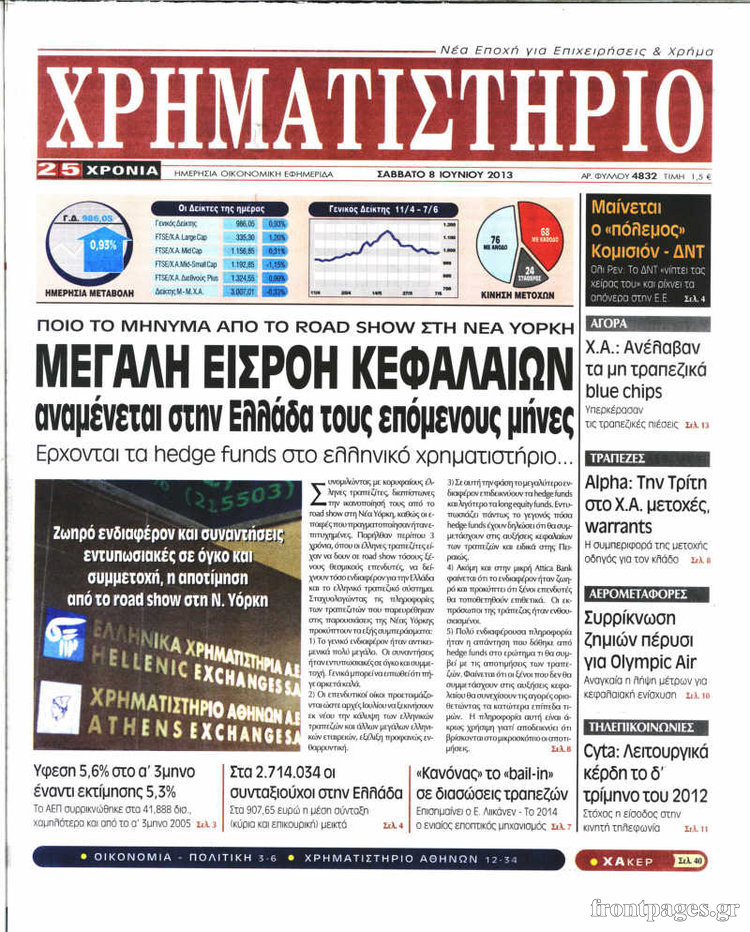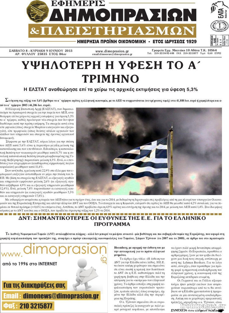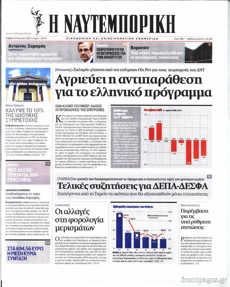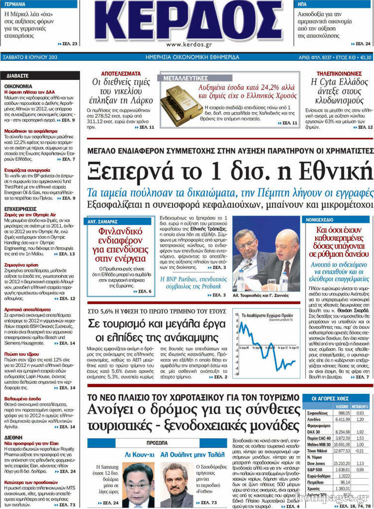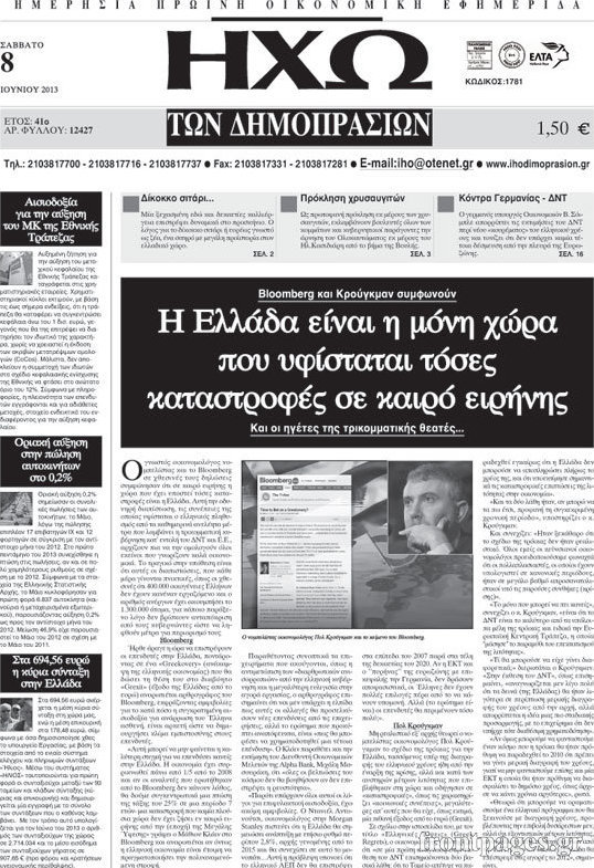 Οι οικονομικές εφημερίδες Enikos Newsroom 08:40, Σάββατο 08 Ιουνίου 2013 Media Οι οικονομικές εφημερίδες ΟΙΚΟΝΟΜΙΚΕΣ ΕΦΗΜΕΡΙΔΕΣ ΠΡΩΤΟΣΕΛΙΔΑ Μοιράσου το: σχολίασε κι εσύ (0 σχόλια) Ακολουθήστε το enikos.gr στο Google News και μάθετε πρώτοι όλες τις ειδήσεις Δείτε όλες τις τελευταίες ειδήσεις από την Ελλάδα και τον Κόσμο στο enikos.gr Ειδήσεις Ροή Ειδήσεων 2 ώρες πριν Νίκος Παππάς: «Είχα λάθος αντίδραση στη δική του δράση-πρόκληση – Δεν θα αναλύσω σε τι κατάσταση ήταν ο δημοσιογράφος» 1 ώρα πριν Αλεξανδρούπολη: Πολυοργανική ανεπάρκεια λόγω υποσιτισμού η αιτία θανάτου του 3χρονου αγοριού 2 ώρες πριν Δημοσκόπηση Pulse: Η διαφορά ΝΔ-ΠΑΣΟΚ – Με ποια κριτήρια θα ψηφίσουν οι πολίτες στις επόμενες εκλογές 2 ώρες πριν Αγρότες: Άνοιξαν τον μεθοριακό σταθμό του Προμαχώνα – Κανονικά περνούν τα φορτηγά 3 ώρες πριν Συγκλονιστικό βίντεο: Τρόμος για τουρίστες που σώθηκαν την τελευταία στιγμή από λεωφορείο που κατρακυλούσε σε φαράγγι 2 ώρες πριν Αριθμολογία: Οι άνθρωποι που έχουν γεννηθεί αυτές τις 4 ημερομηνίες, είναι τρυφεροί και αγαπούν ανιδιοτελώς 4 ώρες πριν Οι άνθρωποι που θυμούνται τα όνειρά τους, συνήθως μοιράζονται αυτά τα 6 σπάνια χαρακτηριστικά 3 ώρες πριν Καθρέφτες μπάνιου: Το απλό κόλπο με την οδοντόκρεμα για να μην θολώνουν 13 ώρες πριν 20 χρόνια τα Χριστούγεννα ξεκινούν στα Public με μεγάλη ποικιλία σε δώρα! 2 λεπτά πριν Ρούτε: Η μεγαλύτερη επιτυχία εξωτερικής πολιτικής του Τραμπ είναι η δέσμευση των χωρών του ΝΑΤΟ για τις αμυντικές δαπάνες 8 λεπτά πριν Το Σπίτι Δίπλα Στο Ποτάμι: Σε κίνδυνο η υγεία του Απόστολου – Τι θα δούμε απόψε 17 λεπτά πριν Νίκος Γιαννόπουλος για Νίκο Παππά: «Είναι επικίνδυνος, θα του κάνω ασφαλιστικά» – ΒΙΝΤΕΟ 21 λεπτά πριν ΟΠΕΚΕΠΕ – Παράνομες επιδοτήσεις: Ελεύθεροι με περιοριστικούς όρους ακόμη τρεις κατηγορούμενοι – Ανάμεσα τους και η σύζυγος του λογιστή 28 λεπτά πριν Συγγενείς θυμάτων τρομοκρατίας: «Ο Κουφοντίνας να μην πάρει με κρατικά χρήματα, αυτό που κάποτε “αγόραζε” με αίμα» ENIKOS NETWORK Αϋπνία: Το κόλπο που θα σας βοηθήσει να κοιμηθείτε απόψε – Είναι απλό και έχει αποτέλεσμα 2,6 εκατομμύρια πολίτες έχουν ήδη εμβολιαστεί κατά της γρίπης Χειμερινές εκπτώσεις: Πότε αρχίζουν και τι πρέπει να προσέξουν οι καταναλωτές ΑΑΔΕ: Καταβλήθηκε η τέταρτη δόση επιστροφής ΕΦΚ αγροτικού πετρελαίου – Οδηγίες για τη διόρθωση παραστατικών Χαρτογραφώντας το «σημείο χωρίς επιστροφή»: Για πρώτη φορά αποκαλύπτεται με λεπτομέρεια το ακανθώδες όριο της ατμόσφαιρας τ... Η Google καταργεί τη λειτουργία «dark web report» – Πώς θα μπορούν οι χρήστες να διαγράφουν τα δεδομένα τους περισσότερα 22:24 , Τετάρτη 17 Δεκεμβρίου 2025 Το Σπίτι Δίπλα Στο Ποτάμι: Σε κίνδυνο η υγεία του Απόστολου – Τι θα δούμε απόψε “Το Σπίτι Δίπλα στο Ποτάμι” ξετυλίγει το νήμα της ζωής των πέντε αδελφών με καταισ... 21:14 , Τετάρτη 17 Δεκεμβρίου 2025 Παιχνίδια Εκδίκησης: Θα καταφέρει ο Χρήστος να κλονίσει την εμπιστοσύνη της Μάγιας απέναντι στον Άγη; Τα «Παιχνίδια Εκδίκησης» έρχονται απόψε στις 22:30, στον Αντ1, με το τελευταίο επεισόδιο της χ... 20:57 , Τετάρτη 17 Δεκεμβρίου 2025 Άγιος Έρωτας: Η Χλόη καταθέτει εναντίον του πατέρα της και ο Χάρης αποκαλύπτει στον Κλεάνθη ότι δεν είναι ο βιολογικός του πατέρας. Γεμάτο αποκαλύψεις είναι το νέο επεισόδιο της σειράς “Άγιος Έρωτας” απόψε στις 21:... 20:15 , Τετάρτη 17 Δεκεμβρίου 2025 Η ανακοίνωση της ΕΣΗΕΑ για την επίθεση του Ευρωβουλευτή Νίκου Παππά κατά του δημοσιογράφου Νίκου Γιαννόπουλου «
