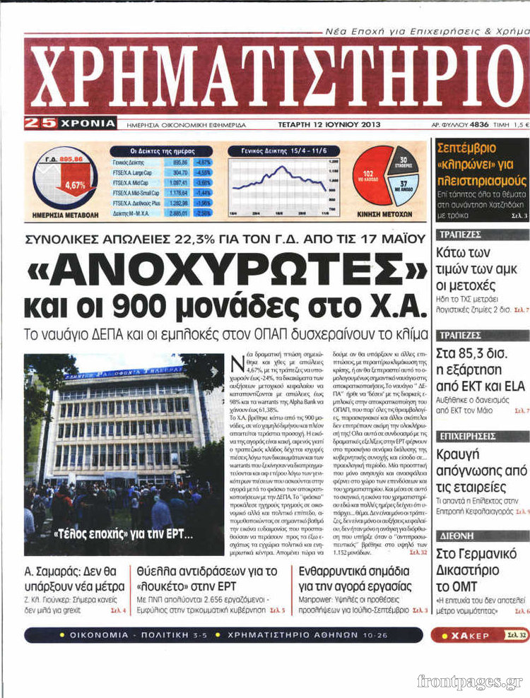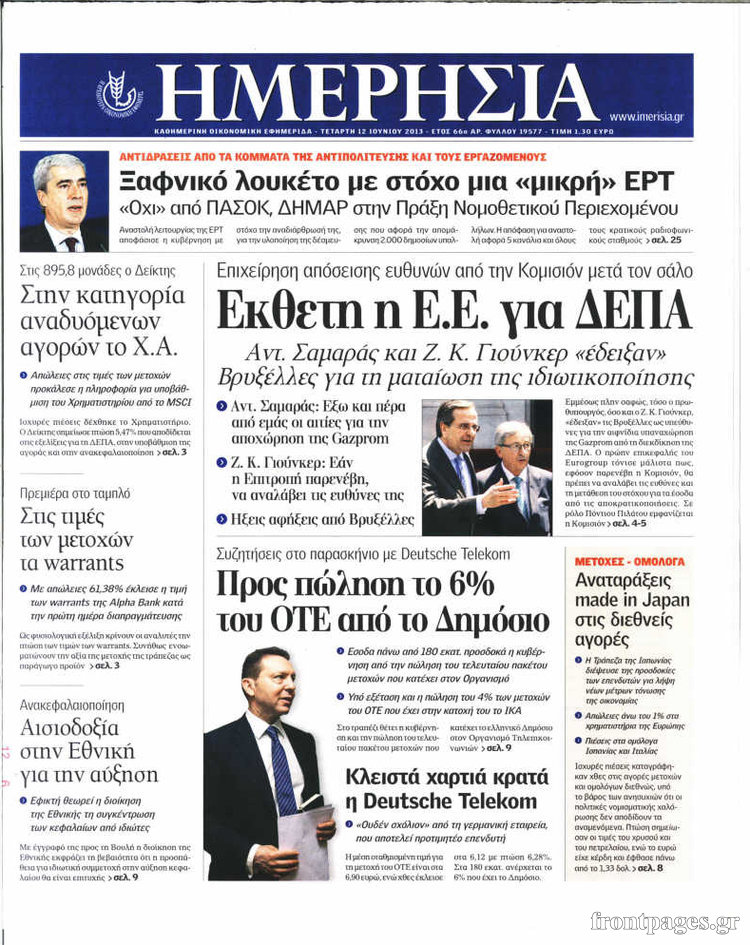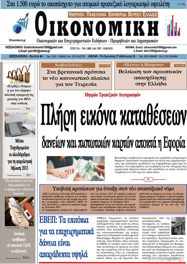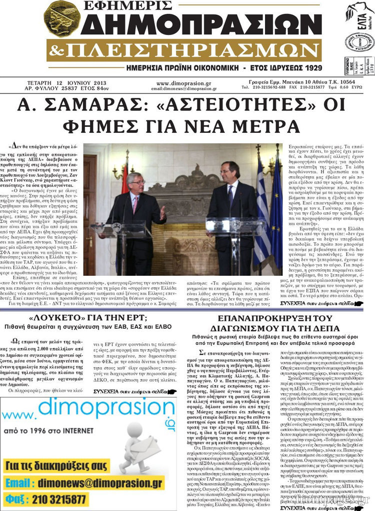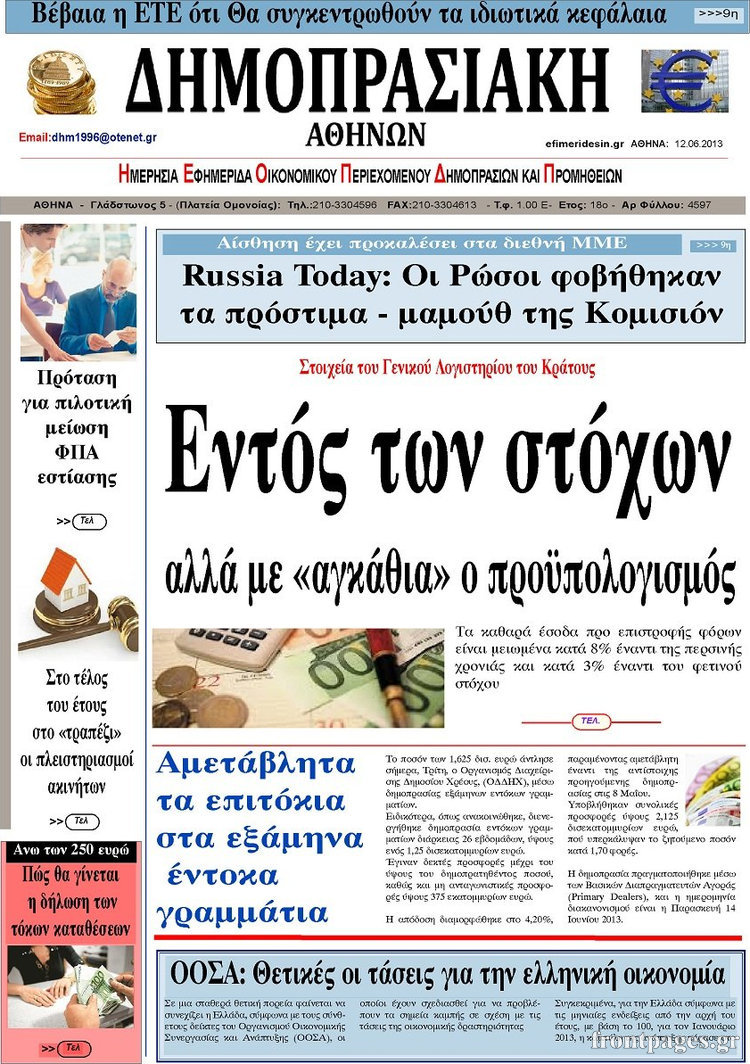 Οι oικονομικές εφημερίδες Enikos Newsroom 09:56, Τετάρτη 12 Ιουνίου 2013 Media Οι oικονομικές εφημερίδες Διαβάστε τα πρωτοσέλιδα των οικονομικών εφημερίδων: ΕΦΗΜΕΡΙΔΕΣ ΟΙΚΟΝΟΜΙΚΕΣ ΕΦΗΜΕΡΙΔΕΣ ΠΡΩΤΟΣΕΛΙΔΑ Μοιράσου το: σχολίασε κι εσύ (0 σχόλια) Ακολουθήστε το enikos.gr στο Google News και μάθετε πρώτοι όλες τις ειδήσεις Δείτε όλες τις τελευταίες ειδήσεις από την Ελλάδα και τον Κόσμο στο enikos.gr Ειδήσεις Ροή Ειδήσεων 2 ώρες πριν Σίδνεϊ: Βίντεο με ηλικιωμένο ζευγάρι που όρμησε για να σταματήσει τον έναν δράστη – Συγκλονιστικές μαρτυρίες για τους «ήρωες μέχρι τέλους» 6 λεπτά πριν Κατρίνης: «Ο μικρός μου γιος οδηγούσε χωρίς δίπλωμα, πράξη αδικαιολόγητη και παράνομη – Ο νόμος ισχύει για όλους» 2 ώρες πριν Προϋπολογισμός 2026: Σήμερα η ομιλία Μητσοτάκη στη Βουλή – Μέτρα για νέους, μεσαία τάξη και στεγαστικό 3 ώρες πριν Κυψέλη: Υπό κατάληψη το σχολείο που η 16χρονη μαχαίρωσε συμμαθήτριά της – Την είχαν διώξει από προηγούμενο 2 ώρες πριν «Το θαύμα των Χριστουγέννων»: Σκύλος που εξαφανίστηκε το 2021 βρέθηκε σε καταφύγιο ζώων σε απόσταση 3.200 χιλιομέτρων – ΒΙΝΤΕΟ 49 λεπτά πριν Τέλος η μοναξιά για 3 ζώδια μετά τις 16 Δεκεμβρίου – «Ξαναβρίσκετε τον εαυτό σας» 5 ώρες πριν Οπτική ψευδαίσθηση: Μόνο 1 στους 10 ανθρώπους θα βρει το κόκκινο αυγό σε 7 δευτερόλεπτα 3 ώρες πριν Ανακαλύφθηκε περίτεχνη μαρμάρινη μπανιέρα που επαναχρησιμοποιήθηκε ως κρήνη 2 ώρες πριν Η πεθερά της την κατηγορεί πως δεν την ταΐζει σωστά – «Δεν παραπονιέται όμως στον γιο της» 2 λεπτά πριν Τσιάρας: Καλούμε τους αγρότες να έρθουν να συζητήσουμε για την επίλυση του θέματος 5 λεπτά πριν ΟΠΕΚΕΠΕ – Κρήτη: Ενώπιον του Ευρωπαίου ανακριτή οι 8 από τους 16 συλληφθέντες – Αναζητούνται κι άλλοι εμπλεκόμενοι 6 λεπτά πριν Κατρίνης: «Ο μικρός μου γιος οδηγούσε χωρίς δίπλωμα, πράξη αδικαιολόγητη και παράνομη – Ο νόμος ισχύει για όλους» 10 λεπτά πριν Αυστραλία: Ο Πρωθυπουργός επισκέφθηκε τον «ήρωα» της παραλίας Μπόνταϊ – «Ενσαρκώνει ό,τι καλύτερο έχει η χώρα μας» 15 λεπτά πριν Σάμος: Διασώθηκαν 28 μετανάστες – Σε εξέλιξη έρευνες για αγνοούμενους ENIKOS NETWORK Προ των πυλών έξαρση της γρίπης στην Ελλάδα – Σε επαγρύπνηση οι αρχές για το νέο στέλεχος Κ Μικρές κόκκινες κηλίδες στο δέρμα: Πότε μπορεί να είναι σύμπτωμα πάθησης Προϋπολογισμός 2026: Η ομιλία Μητσοτάκη στη Βουλή- Τι θα πει για το αγροτικό, το στεγαστικό και το πακέτο μέτρων του 2026 Φορολογικές δηλώσεις 2026: Στις 16 Μαρτίου αρχίζει η υποβολή – Νέες κατηγορίες στις προσυμπληρωμένες Σύγχρονος Νοστράδαμος: Προειδοποιεί για «μεγάλο γεγονός» τους επόμενους μήνες που θα συγκλονίσει τη Βρετανία και τον κόσμο Τεστ παρατηρητικότητας: Μπορείτε να βρείτε τις 3 διαφορές στις εικόνες με έναν πιγκουίνο σε 14 δευτερόλεπτα περισσότερα 09:58 , Τρίτη 16 Δεκεμβρίου 2025 LIVE – Ακούστε την εκπομπή του Νίκου Χατζηνικολάου 16/12/2025 Ακούστε την εκπομπή του Νίκου Χατζηνικολάου, στον Realfm 97,8. Ακούστε LIVE εδώ 09:26 , Τρίτη 16 Δεκεμβρίου 2025 Τηλεθέαση (15/12): Τα νούμερα για την prime time – Ποιες σειρές ξεχώρισαν Ξεκάθαρη πρωτιά στην τηλεθέαση κατέκτησε η σειρά «Μια νύχτα μόνο», η οποία βρέθηκε στην κορυφή... 08:00 , Τρίτη 16 Δεκεμβρίου 2025 Την Κυριακή με τη Realnews: Δωροεπιταγή 10€ Δωροεπιταγή αξίας 10€ για αγορές άνω των 60€ από τα πολυκαταστήματα FactoryOutlet H προσφορά ι... 05:48 , Τρίτη 16 Δεκεμβρίου 2025 Οι οικονομικές εφημερίδες 16/12/2025 Διαβάστε τα πρωτοσέλιδα από τις οικονομικές εφημερίδες, σήμερα 16/12/2025. ΤΕΛΕΥΤΑΙΕΣ ΕΙΔΗΣΕΙΣ 2 λεπτά πριν Τσιάρας: Καλούμε