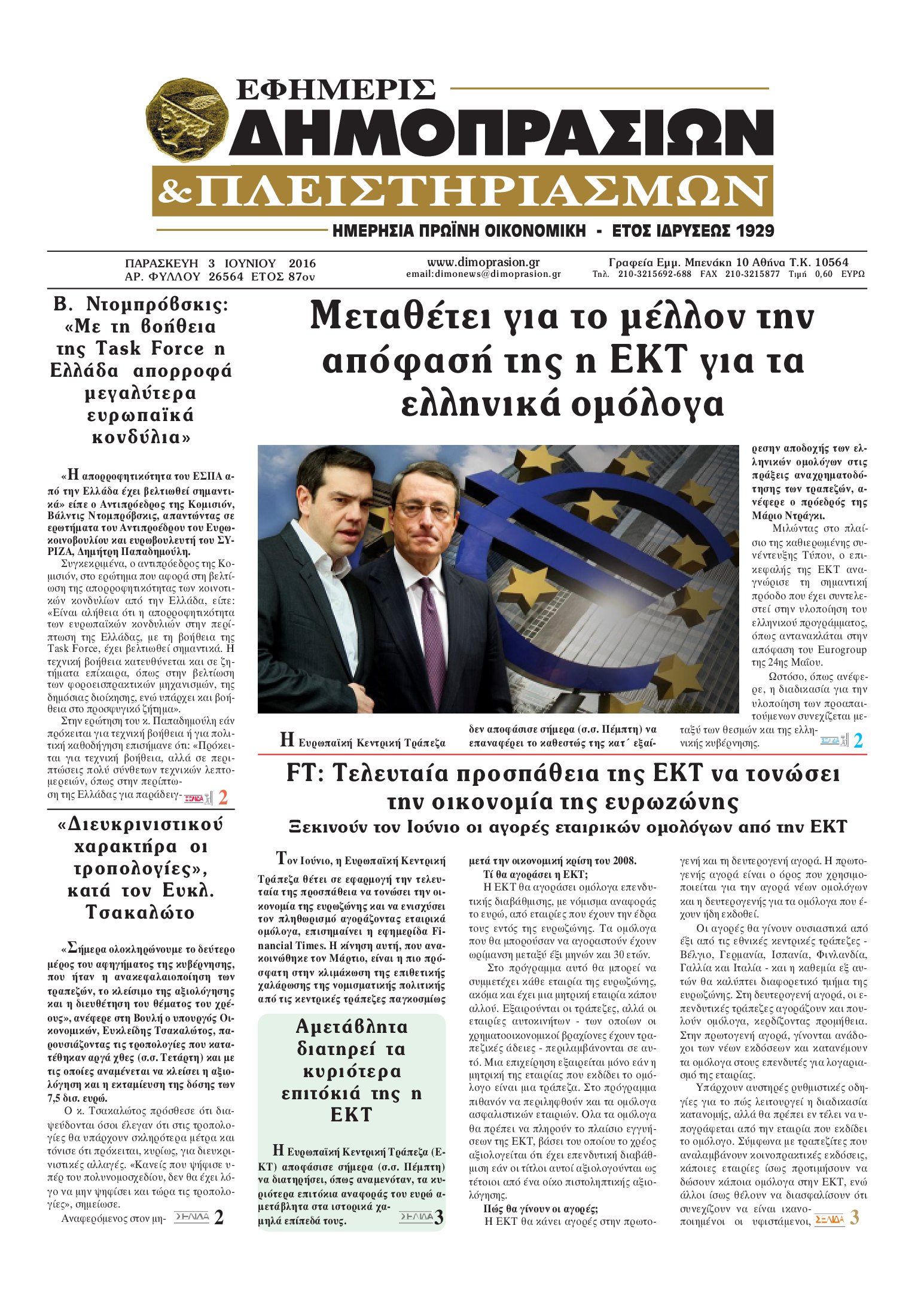 Οι οικονομικές εφημερίδες 3/6/2016 Enikos Newsroom 05:13, Παρασκευή 03 Ιουνίου 2016 Media Διαβάστε τα σημερινά πρωτοσέλιδα των οικονομικών εφημερίδων: \ ΟΙΚΟΝΟΜΙΚΕΣ ΕΦΗΜΕΡΙΔΕΣ ΠΡΩΤΟΣΕΛΙΔΑ Μοιράσου το: σχολίασε κι εσύ (0 σχόλια) Ακολουθήστε το enikos.gr στο Google News και μάθετε πρώτοι όλες τις ειδήσεις Δείτε όλες τις τελευταίες ειδήσεις από την Ελλάδα και τον Κόσμο στο enikos.gr Ειδήσεις Ροή Ειδήσεων 2 ώρες πριν Αγρότες: «Όχι στον διάλογο, μας εμπαίζει η κυβέρνηση» – Αποφάσισαν κλιμάκωση των κινητοποιήσεων, τι θα γίνει τα Χριστούγεννα 2 ώρες πριν Την πρώτη Belharra παρέλαβε η χώρα μας, υψώθηκε η ελληνική σημαία στη φρεγάτα «Κίμων» – Δένδιας: «Το ισχυρότερο Πολεμικό Ναυτικό που είχε ποτέ ο ελληνισμός» 6 λεπτά πριν Γιώργος Μαζωνάκης: «Έχει υποστεί ένα σωρό εκβιαστικές πρακτικές – Του είπαν ότι θα του βάλουν τον συγκεκριμένο άνθρωπο να τον καταγγείλει» 1 ώρα πριν Μιχάλης Χουρδάκης: «Είμαι διαθέσιμος να συμβάλω στην προσωρινή κάλυψη του ιατρείου της Ψερίμου» – Η επιστολή στον Άδωνι Γεωργιάδη 2 ώρες πριν Εξώδικο Γεωργιάδη στην Κωνσταντοπούλου – «Με κατηγόρησε ότι έχω καταδικαστεί για παιδεραστία» 3 ώρες πριν Τα 5 ζώδια που θα ευνοηθούν στα οικονομικά τους το 2026 – «Τραβούν το χρήμα σαν μαγνήτες» 8 ώρες πριν Αν κάνετε συνεχώς αυτά τα 8 πράγματα με τα κατοικίδιά σας, σας λείπει η ανθρώπινη επαφή 4 ώρες πριν Αυτό που κρύβεται κάτω από τη Γροιλανδία θα μπορούσε να ανατρέψει όσα γνωρίζουμε για την άνοδο της στάθμης των θαλασσών 1 ημέρα πριν 20 χρόνια τα Χριστούγεννα ξεκινούν στα Public με μεγάλη ποικιλία σε δώρα! 6 λεπτά πριν Γιώργος Μαζωνάκης: «Έχει υποστεί ένα σωρό εκβιαστικές πρακτικές – Του είπαν ότι θα του βάλουν τον συγκεκριμένο άνθρωπο να τον καταγγείλει» 12 λεπτά πριν Μητσοτάκης: Η φρεγάτα «Κίμων» είναι η καλύτερη απόδειξη ότι οι Ένοπλες Δυνάμεις μας περνούν πια σε μια νέα εποχή – ΒΙΝΤΕΟ 17 λεπτά πριν Πάμε Στοίχημα: Περισσότερα από 29 εκατομμύρια ευρώ σε κέρδη μοίρασε την προηγούμενη εβδομάδα 22 λεπτά πριν Το Ισλαμικό Κράτος αποκαλεί τις δολοφονίες στην Αυστραλία «πηγή υπερηφάνειας» – Δεν αναλαμβάνει την ευθύνη για την επίθεση 26 λεπτά πριν Εύβοια: Πτώμα άνδρα εντοπίστηκε σε πυλωτή ENIKOS NETWORK ΕΟΔΥ: Δωρεάν τεστ για HIV, Ηπατίτιδες, Σύφιλη, Χλαμύδια, Γονόρροια 100 χρόνια ΠΙΣ: Ένας αιώνας προσφοράς στην Ιατρική και την κοινωνία Αμετάβλητα για τέταρτη συνεχόμενη φορά τα επιτόκια της ΕΚΤ – Ποιες είναι οι προβλέψεις για τον πληθωρισμό και την οικονομία... Χριστούγεννα και Πρωτοχρονιά: Δείτε πόσα χρήματα θα πάρουν ως αμοιβή όσοι εργαστούν Χαρτογραφώντας το «σημείο χωρίς επιστροφή»: Για πρώτη φορά αποκαλύπτεται με λεπτομέρεια το ακανθώδες όριο της ατμόσφαιρας τ... Η Google καταργεί τη λειτουργία «dark web report» – Πώς θα μπορούν οι χρήστες να διαγράφουν τα δεδομένα τους περισσότερα 17:45 , Πέμπτη 18 Δεκεμβρίου 2025 ROUK ZOUK: Εορταστικό επεισόδιο με καλεσμένους τους πρωταγωνιστές του «Γιατί ρε πατέρα» Το Σάββατο 20 Δεκεμβρίου στις 21:00, η Ζέτα Μακρυπούλια υποδέχεται εκλεκτούς ηθοποιούς που όλο... 17:20 , Πέμπτη 18 Δεκεμβρίου 2025 Άγιος έρωτας: Η Χριστίνα εξομολογείται στον πατέρα Νικόλαο, απόψε στις 21:00 στον Alpha Η Νότα αποφασίζει να εκδικηθεί τον Πέτρο και τον Στέφανο, για χάρη του Λούη, όμως τα πράγματα ... 16:50 , Πέμπτη 18 Δεκεμβρίου 2025 Να μ’ αγαπάς: Ζωή και Φωτεινή συμφιλιώνονται ως μάνα με κόρη, απόψε στις 20:00 Η ταυτότητα του Άγγελου αποκαλύπτεται στο νέο επεισόδιο της σειράς “Να μ’ αγαπάς... 15:52 , Πέμπτη 18 Δεκεμβρίου 2025 