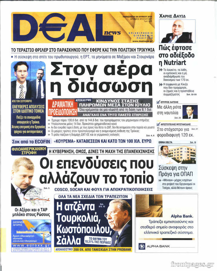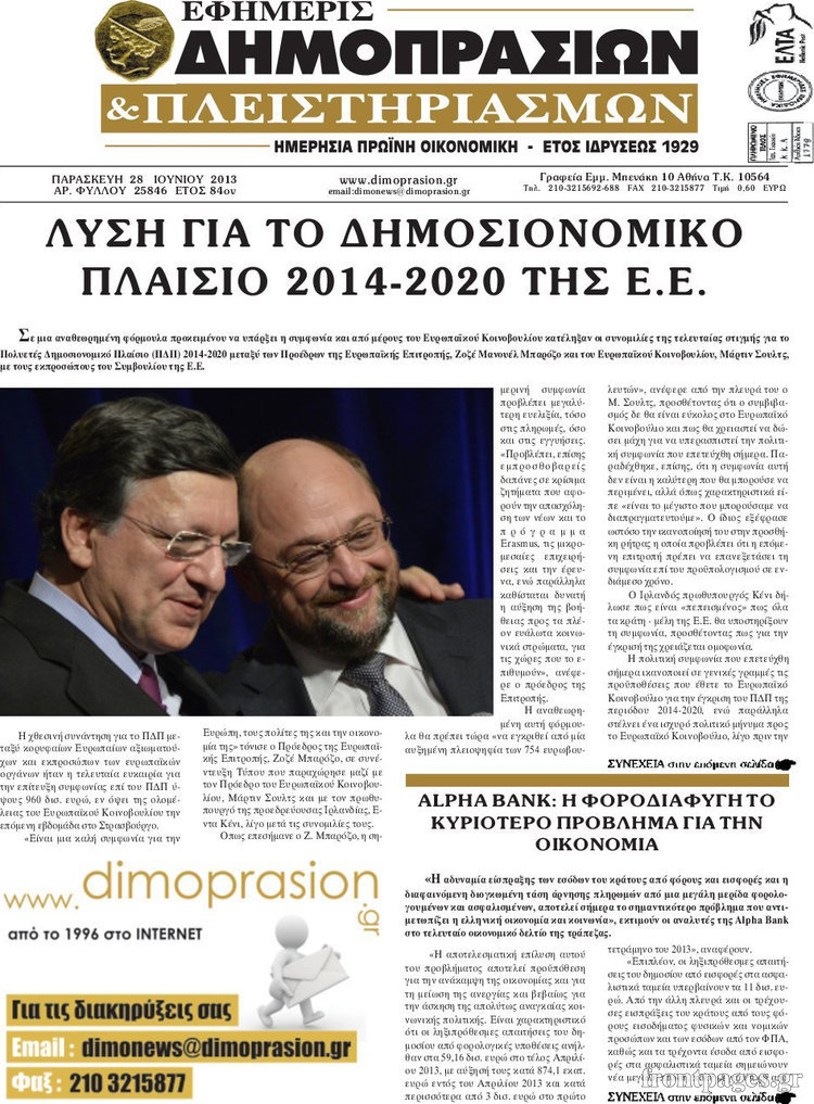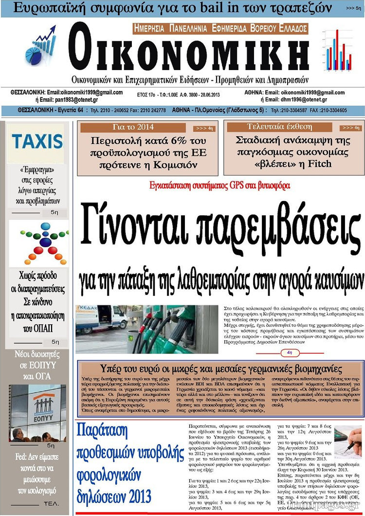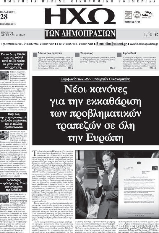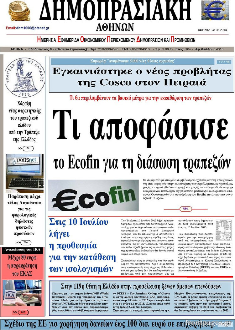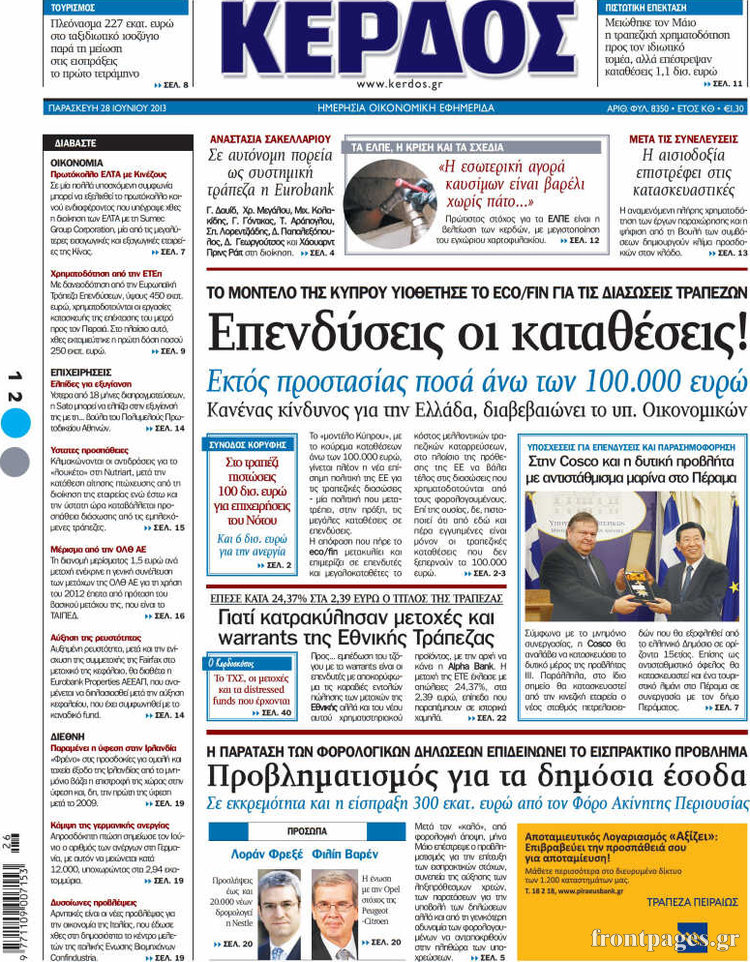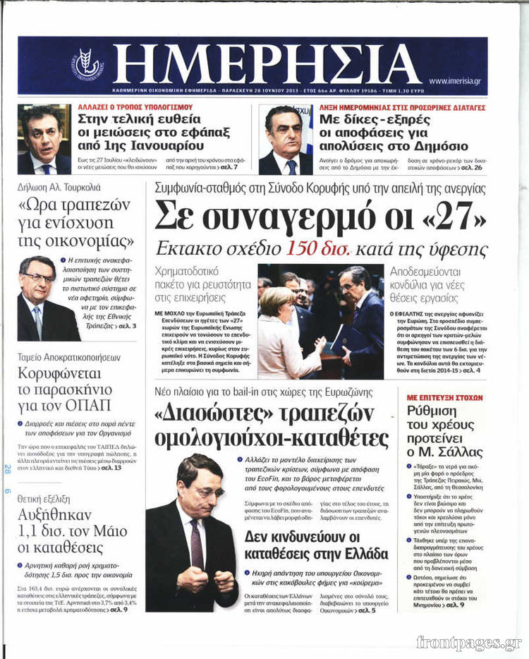 Οι oικονομικές εφημερίδες Enikos Newsroom 08:55, Παρασκευή 28 Ιουνίου 2013 Media Οι oικονομικές εφημερίδες Διαβάστε τα πρωτοσέλιδα των οικονομικών εφημερίδων: ΕΦΗΜΕΡΙΔΕΣ ΟΙΚΟΝΟΜΙΚΕΣ ΕΦΗΜΕΡΙΔΕΣ ΠΡΩΤΟΣΕΛΙΔΑ Μοιράσου το: σχολίασε κι εσύ (0 σχόλια) Ακολουθήστε το enikos.gr στο Google News και μάθετε πρώτοι όλες τις ειδήσεις Δείτε όλες τις τελευταίες ειδήσεις από την Ελλάδα και τον Κόσμο στο enikos.gr Ειδήσεις Ροή Ειδήσεων 10 ώρες πριν Μητσοτάκης: Αναγκαία η μεταρρύθμιση του πρωτογενούς τομέα – Τα 6 νέα μέτρα για το στεγαστικό και οι αναφορές σε «Ιθάκη» και «πολιτικούς του καναπέ» 9 ώρες πριν Δάνεια σε ελβετικό φράγκο: Τα βασικά σημεία της ρύθμισης – ανάσας για 40.000 δανειολήπτες – Αναλυτικός οδηγός με ερωτήσεις και απαντήσεις 8 ώρες πριν Κυψέλη: Εξιτήριο πήρε η 14χρονη μαθήτρια που μαχαιρώθηκε από την 16χρονη σε σχολείο – «Θέλω να βοηθήσω το παιδί, έχει μπλέξει με κακές παρέες» 8 ώρες πριν Τραμπ: Γιατί κατέθεσε τώρα την αγωγή κατά του BBC – Πώς η κίνησή του εξυπηρετεί το νέο δόγμα του για «αντίσταση» στην Ευρώπη, υπέρ των συντηρητικών 9 ώρες πριν ΟΠΕΚΕΠΕ – Παράνομες επιδοτήσεις: Ελεύθεροι με περιοριστικούς όρους και οι 7 κατηγορούμενοι που απολογήθηκαν σήμερα 53 λεπτά πριν Οπτική ψευδαίσθηση: Μόνο αν είσαι ο Σέρλοκ Χολμς θα βρεις τον σκύλο σε 15 δευτερόλεπτα 1 ώρα πριν Υγεία του εντέρου: Προσθέστε 1 superfood στα scrambled eggs για καλύτερη πέψη και ευεξία 2 ώρες πριν Τα ζώδια σήμερα, Τετάρτη 17 Δεκεμβρίου: Κριοί, η αυτοπεποίθησή σας ενισχύεται 8 ώρες πριν Ανακαλύφθηκε βυθισμένη πέτρινη κατασκευή ανοιχτά της Κριμαίας – Αποτελεί μέρος αρχαίας ελληνικής αποικίας 52 λεπτά πριν Την Κυριακή με τη Realnews: Δωροεπιταγή 10€ 1 λεπτό πριν Εορτολόγιο: Ποιοι γιορτάζουν σήμερα 17 Δεκεμβρίου 8 λεπτά πριν Την Κυριακή με τη Realnews: Ό,τι και αν αγοράσεις, σκανάρεις και κερδίζεις! 13 λεπτά πριν Βενεζουέλα: «Παράλογος» ο αμερικανικός αποκλεισμός των πετρελαιοφόρων 22 λεπτά πριν ΔΕΔΔΗΕ: Διακοπές ρεύματος σήμερα (17/12) στην Αθήνα και σε άλλες 13 περιοχές της Αττικής ENIKOS NETWORK Δείτε αν έχετε άριστη στερεοσκοπική όραση – Εντοπίστε τον κρυμμένο αριθμό στην εικόνα σε 15 δεύτερα Το δημητριακό της Ισπανικής κατάκτησης που μπορεί να ενισχύσει την καρδιά και να αποκαταστήσει τους μύες Πιερρακάκης: Ο προϋπολογισμός συμβάλλει ουσιαστικά στην ενίσχυση της αγοραστικής δύναμης της πλειονότητας των εργαζομένων e-ΕΦΚΑ: Παρατείνεται η προθεσμία για την υποβολή ΑΠΔ – Ποιους αφορά Σύγχρονος Νοστράδαμος: Προειδοποιεί για «μεγάλο γεγονός» τους επόμενους μήνες που θα συγκλονίσει τη Βρετανία και τον κόσμο Τεστ παρατηρητικότητας: Μπορείτε να βρείτε τις 3 διαφορές στις εικόνες με έναν πιγκουίνο σε 14 δευτερόλεπτα περισσότερα 07:00 , Τετάρτη 17 Δεκεμβρίου 2025 Την Κυριακή με τη Realnews: Ό,τι και αν αγοράσεις, σκανάρεις και κερδίζεις! Την Κυριακή με τη Realnews: Ό,τι και αν αγοράσεις, σκανάρεις και κερδίζεις! Με το PADU app, το... 05:48 , Τετάρτη 17 Δεκεμβρίου 2025 Οι οικονομικές εφημερίδες 17/12/2025 Διαβάστε τα πρωτοσέλιδα από τις οικονομικές εφημερίδες, σήμερα 17/12/2025. 05:43 , Τετάρτη 17 Δεκεμβρίου 2025 Οι αθλητικές εφημερίδες 17/12/2025 Διαβάστε τα πρωτοσέλιδα από τις αθλητικές εφημερίδες, σήμερα 17/12/2025. 05:38 , Τετάρτη 17 Δεκεμβρίου 2025 Οι πολιτικές εφημερίδες 17/12/2025 Διαβάστε τα πρωτοσέλιδα από τις πολιτικές εφημερίδες, σήμερα 17/12/2025. ΤΕΛΕΥΤΑΙΕΣ ΕΙΔΗΣΕΙΣ 8 λεπτά πριν Την Κυριακή με τη Realnews: Ό,τι και αν αγοράσεις,... 13 λεπτά πριν Βενεζουέλα: «Παράλογος» ο αμερικανικός αποκλεισμός... 22 λεπτά 