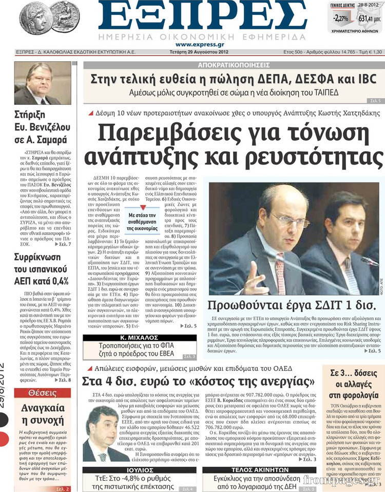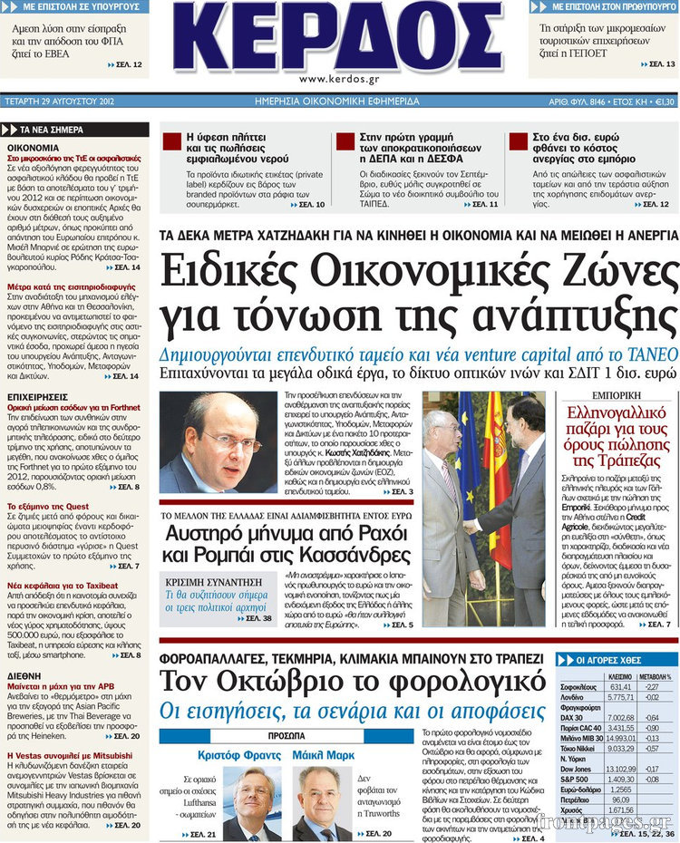 Διαβάστε τα πρωτοσέλιδα του οικονομικού Τύπου…
