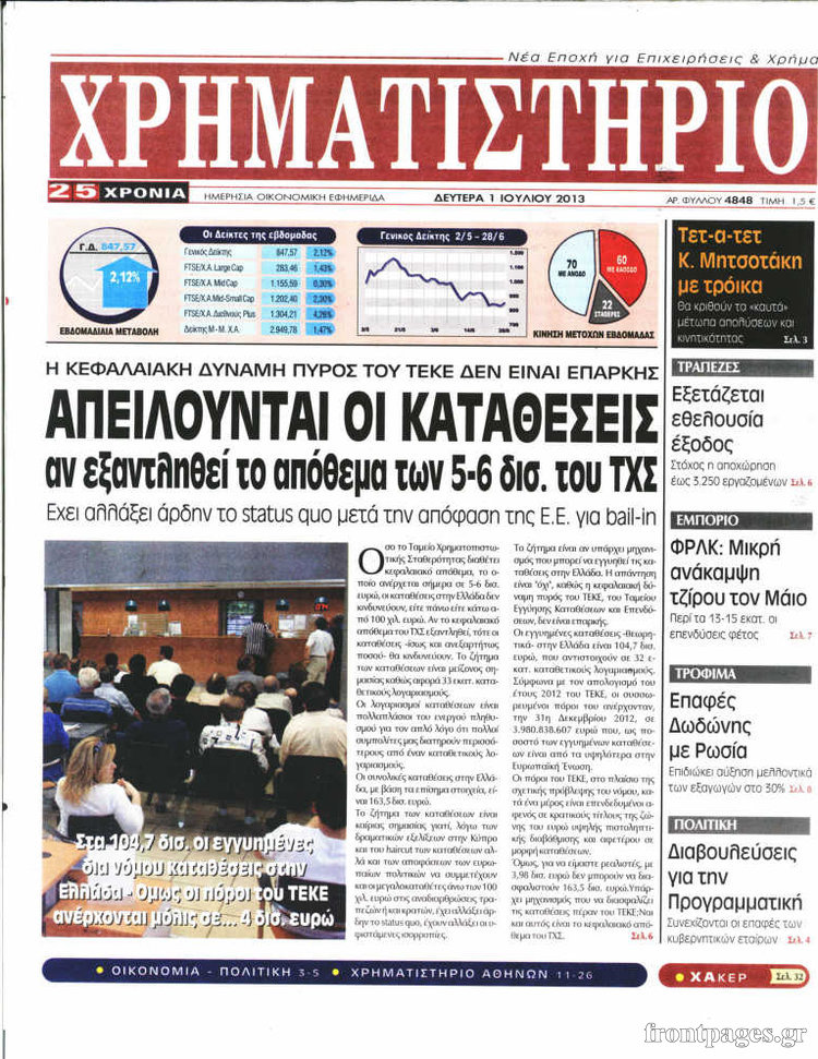 Οι oικονομικές εφημερίδες Enikos Newsroom 08:46, Δευτέρα 01 Ιουλίου 2013 Media Οι oικονομικές εφημερίδες Διαβάστε τα πρωτοσέλιδα των οικονομικών εφημερίδων: ΟΙΚΟΝΟΜΙΚΕΣ ΕΦΗΜΕΡΙΔΕΣ Μοιράσου το: σχολίασε κι εσύ (0 σχόλια) Ακολουθήστε το enikos.gr στο Google News και μάθετε πρώτοι όλες τις ειδήσεις Δείτε όλες τις τελευταίες ειδήσεις από την Ελλάδα και τον Κόσμο στο enikos.gr Ειδήσεις Ροή Ειδήσεων 2 ώρες πριν Σίδνεϊ: Βίντεο με ηλικιωμένο ζευγάρι που όρμησε για να σταματήσει τον έναν δράστη – Συγκλονιστικές μαρτυρίες για τους «ήρωες μέχρι τέλους» 23 λεπτά πριν Κατρίνης: «Ο μικρός μου γιος οδηγούσε χωρίς δίπλωμα, πράξη αδικαιολόγητη και παράνομη – Ο νόμος ισχύει για όλους» 3 ώρες πριν Κυψέλη: Υπό κατάληψη το σχολείο που η 16χρονη μαχαίρωσε συμμαθήτριά της – Την είχαν διώξει από προηγούμενο 19 λεπτά πριν Τσιάρας: Καλούμε τους αγρότες να έρθουν να συζητήσουμε για την επίλυση του θέματος 2 ώρες πριν «Το θαύμα των Χριστουγέννων»: Σκύλος που εξαφανίστηκε το 2021 βρέθηκε σε καταφύγιο ζώων σε απόσταση 3.200 χιλιομέτρων – ΒΙΝΤΕΟ 1 ώρα πριν Τέλος η μοναξιά για 3 ζώδια μετά τις 16 Δεκεμβρίου – «Ξαναβρίσκετε τον εαυτό σας» 5 ώρες πριν Οπτική ψευδαίσθηση: Μόνο 1 στους 10 ανθρώπους θα βρει το κόκκινο αυγό σε 7 δευτερόλεπτα 3 ώρες πριν Ανακαλύφθηκε περίτεχνη μαρμάρινη μπανιέρα που επαναχρησιμοποιήθηκε ως κρήνη 2 ώρες πριν Η πεθερά της την κατηγορεί πως δεν την ταΐζει σωστά – «Δεν παραπονιέται όμως στον γιο της» 7 λεπτά πριν Οι άνθρωποι που φαίνονται «τυχεροί» στη ζωή τους, συνήθως έχουν αυτές τις 8 αθόρυβες συνήθειες 7 λεπτά πριν Καινούργιου: «Με την εγκυμοσύνη προς το παρόν ξεχνάω, δεν βλέπω, δεν ακούω…» 12 λεπτά πριν ΕΕ: Η Κομισιόν παρουσιάζει σήμερα σχέδιο για την αντιμετώπιση της στεγαστικής κρίσης – Προτείνει πλαφόν στα Airbnb 17 λεπτά πριν Ντόναλντ Τραμπ Τζούνιορ: Αρραβωνιάστηκε για τρίτη φορά – «Εκλεκτή» της καρδιάς του η κοσμική Μπετίνα Άντερσον 19 λεπτά πριν Τσιάρας: Καλούμε τους αγρότες να έρθουν να συζητήσουμε για την επίλυση του θέματος ENIKOS NETWORK Οι ρίζες της άνοιας ίσως βρίσκονται στην παιδική ηλικία – Τι έδειξαν πρόσφατες μελέτες Όμιλος ΠΡΟΣΥΦΑΠΕ: Επιστρέφει στην κοινωνία τμήμα της υπεραξίας που παράγει Τα μυστικά για τις μεταβιβάσεις ακινήτων – Αναλυτικός οδηγός Προϋπολογισμός 2026: Η ομιλία Μητσοτάκη στη Βουλή- Τι θα πει για το αγροτικό, το στεγαστικό και το πακέτο μέτρων του 2026 Σύγχρονος Νοστράδαμος: Προειδοποιεί για «μεγάλο γεγονός» τους επόμενους μήνες που θα συγκλονίσει τη Βρετανία και τον κόσμο Τεστ παρατηρητικότητας: Μπορείτε να βρείτε τις 3 διαφορές στις εικόνες με έναν πιγκουίνο σε 14 δευτερόλεπτα περισσότερα 09:58 , Τρίτη 16 Δεκεμβρίου 2025 LIVE – Ακούστε την εκπομπή του Νίκου Χατζηνικολάου 16/12/2025 Ακούστε την εκπομπή του Νίκου Χατζηνικολάου, στον Realfm 97,8. Ακούστε LIVE εδώ 09:26 , Τρίτη 16 Δεκεμβρίου 2025 Τηλεθέαση (15/12): Τα νούμερα για την prime time – Ποιες σειρές ξεχώρισαν Ξεκάθαρη πρωτιά στην τηλεθέαση κατέκτησε η σειρά «Μια νύχτα μόνο», η οποία βρέθηκε στην κορυφή... 08:00 , Τρίτη 16 Δεκεμβρίου 2025 Την Κυριακή με τη Realnews: Δωροεπιταγή 10€ Δωροεπιταγή αξίας 10€ για αγορές άνω των 60€ από τα πολυκαταστήματα FactoryOutlet H προσφορά ι... 05:48 , Τρίτη 16 Δεκεμβρίου 2025 Οι οικονομικές εφημερίδες 16/12/2025 Διαβάστε τα πρωτοσέλιδα από τις οικονομικές εφημερίδες, σήμερα 16/12/2025. ΤΕΛΕΥΤΑΙΕΣ ΕΙΔΗΣΕΙΣ 7 λεπτά πριν Οι άνθρωποι που φαίνονται «τυχεροί» στη ζωή τους,... 7 λεπτά πριν Καινούργιου: «Με την εγκυμοσύνη προς το παρόν ξεχνά