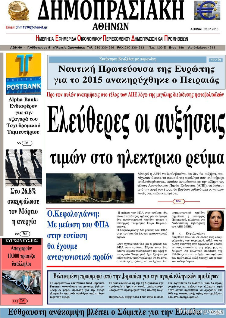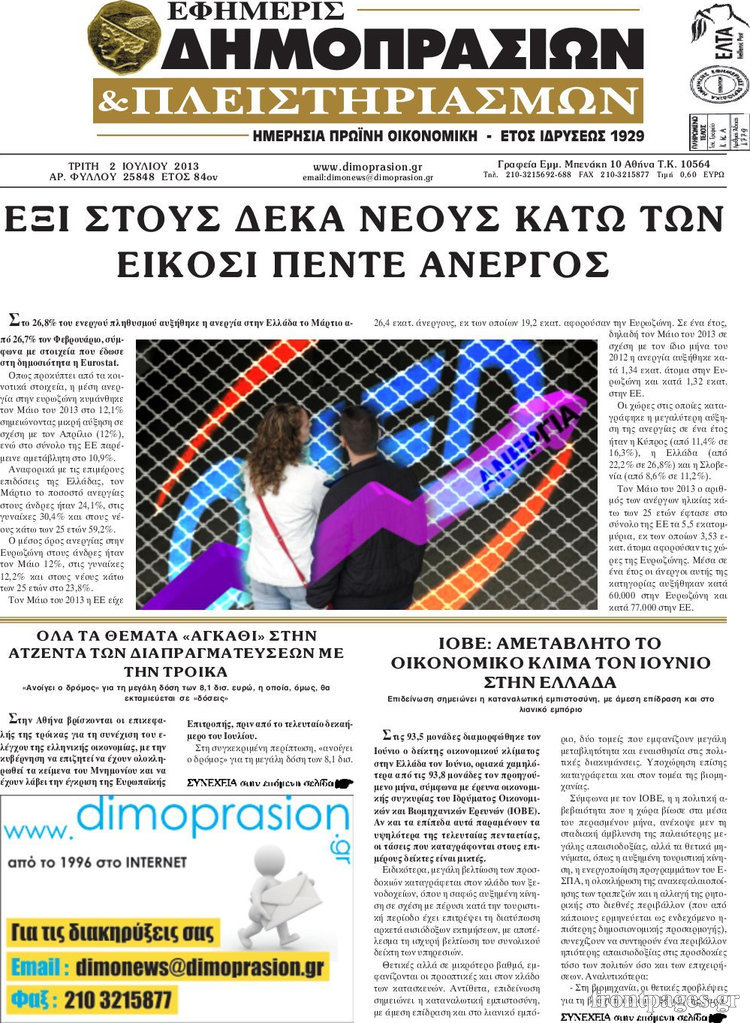 Οι oικονομικές εφημερίδες Enikos Newsroom 08:56, Τρίτη 02 Ιουλίου 2013 Media Οι oικονομικές εφημερίδες Διαβάστε τα πρωτοσέλιδα των οικονομικών εφημερίδων: ΕΦΗΜΕΡΙΔΕΣ ΟΙΚΟΝΟΜΙΚΕΣ ΕΦΗΜΕΡΙΔΕΣ ΠΡΩΤΟΣΕΛΙΔΑ Μοιράσου το: σχολίασε κι εσύ (0 σχόλια) Ακολουθήστε το enikos.gr στο Google News και μάθετε πρώτοι όλες τις ειδήσεις Δείτε όλες τις τελευταίες ειδήσεις από την Ελλάδα και τον Κόσμο στο enikos.gr Ειδήσεις Ροή Ειδήσεων 2 ώρες πριν Πώς δρούσε το κύκλωμα που διακινούσε ναρκωτικά σε σχολεία – Υπέβαλαν σε βασανιστήρια όσους δεν τηρούσαν τους «κανόνες πειθαρχίας» 3 ώρες πριν Αγρότες: Γιορτές στα μπλόκα με ανοιχτά διόδια – Δικογραφία στα Ιωάννινα για το σήκωμα των μπαρών 2 ώρες πριν Ζελένσκι: Οι Αμερικανοί πρότειναν συνάντηση Ουκρανίας, ΗΠΑ, Ρωσίας στο Μαϊάμι 2 ώρες πριν Αττική: Εξαρθρώθηκε εγκληματική οργάνωση που έκλεβε οχήματα, τα παραποιούσε και τα μεταπωλούσε σε πολίτες – Πώς δρούσε το κύκλωμα 1 ώρα πριν Μικαέλα Μπέντχαους: Ο πρώτος άνθρωπος σε αναπηρικό αμαξίδιο που ταξίδεψε στο διάστημα – ΒΙΝΤΕΟ 3 ώρες πριν Η τύχη χαμογελά σε 3 ζώδια έως τις 28 Δεκεμβρίου – «Προσέξτε τις επιλογές σας και η επιμονή σας θα ανταμειφθεί» 7 ώρες πριν Διαιτολόγος αποκαλύπτει 9 πρωινές συνήθειες που «λιώνουν» το κοιλιακό λίπος – «Υποστηρίζουν την υγιεινή απώλεια βάρους» 4 ώρες πριν Μία ανεκμετάλλευτη πηγή θα μπορούσε να προσφέρει ανεξάντλητη ενέργεια – Οι επιστήμονες ίσως γνωρίζουν πώς να την ξεκλειδώσουν 10 ώρες πριν Enerwave: Το νέο «ρεύμα» στη λιανική ενέργειας που αλλάζει την εμπειρία του καταναλωτή 3 λεπτά πριν Φωτιά σε αυτοκίνητο στην Λεωφόρο Κηφισίας στο ύψος της Φιλοθέης – Μεγάλο μποτιλιάρισμα στο σημείο 8 λεπτά πριν Πηνελόπη Πλάκα: Η εξομολόγηση για την προσωπική της ζωή – «Γούσταρα πάρα πολύ την ελευθερία μου» 19 λεπτά πριν Λούλα: Προειδοποιεί πως μια επέμβαση των ΗΠΑ στη Βενεζουέλα θα μπορούσε να είναι καταστροφική 28 λεπτά πριν Τραμπ: Πώς περνάει τις γιορτές των Χριστουγέννων – Τα δώρα που κάνει στα εγγόνια του 41 λεπτά πριν HOTΕΛ ΕΛVIRA: Η Ελβίρα μαθαίνει πως ο Χάρι μένει κρυφά στο ξενοδοχείο του Παντελή ENIKOS NETWORK Οι γυναίκες αποκαλύπτουν το πιο ελκυστικό πράγμα που μπορεί να κάνει ένας άνδρας Ομορφιά και αντιγήρανση: Ειδικοί μιλούν για συσκευές περιποίησης του δέρματος Ολοκληρώθηκαν πληρωμές 22,16 εκατ. ευρώ για το μεταφορικό ισοδύναμο – Κικίλιας: Στηρίζουμε τη νησιωτικότητα Η Realnews στο www.pressreader.com Χαρτογραφώντας το «σημείο χωρίς επιστροφή»: Για πρώτη φορά αποκαλύπτεται με λεπτομέρεια το ακανθώδες όριο της ατμόσφαιρας τ... Η Google καταργεί τη λειτουργία «dark web report» – Πώς θα μπορούν οι χρήστες να διαγράφουν τα δεδομένα τους περισσότερα 18:19 , Σάββατο 20 Δεκεμβρίου 2025 HOTΕΛ ΕΛVIRA: Η Ελβίρα μαθαίνει πως ο Χάρι μένει κρυφά στο ξενοδοχείο του Παντελή Συνεχίζονται οι εκλογές για πρόεδρο, στο νέο επεισόδιο της κωμικής σειράς του MEGA, HOTΕΛ ΕΛVI... 14:04 , Σάββατο 20 Δεκεμβρίου 2025 Η Realnews αυτής της Κυριακής (21/12/2025) Με τίτλο: «Ασπίδα προστασίας για την Ελλάδα» κυκλοφορεί, αυτήν την Κυριακή, η Realnews. Σημαντ... 12:53 , Σάββατο 20 Δεκεμβρίου 2025 Να μ’ αγαπάς: Το παρελθόν έρχεται στο φως – Καταιγιστικές εξελίξεις στα τελευταία επεισόδια του 2025 Ο Άγγελος αποκαλύπτεται, η Φωτεινή ανησυχεί για τον Λευτέρη και η Ζωή έρχεται αντιμέτωπη με το... 11:41 , Σάββατο 20 Δεκεμβρίου 2025 «Η αγάπη δεν χάνεται ποτέ»: Η μικρού μήκους ταινία κινουμένων σχεδίων που θέτει ερωτήματα για τη ζωή και τον θάνατο Ο θάνατος είναι ένα από τα πιο σκληρά θέματα 