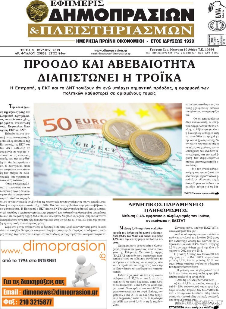 Οι oικονομικές εφημερίδες Enikos Newsroom 09:04, Τρίτη 09 Ιουλίου 2013 Media Οι oικονομικές εφημερίδες Διαβάστε τα πρωτοσέλιδα των οικονομικών εφημερίδων: ΕΦΗΜΕΡΙΔΕΣ ΟΙΚΟΝΟΜΙΚΕΣ ΕΦΗΜΕΡΙΔΕΣ ΠΡΩΤΟΣΕΛΙΔΑ Μοιράσου το: σχολίασε κι εσύ (0 σχόλια) Ακολουθήστε το enikos.gr στο Google News και μάθετε πρώτοι όλες τις ειδήσεις Δείτε όλες τις τελευταίες ειδήσεις από την Ελλάδα και τον Κόσμο στο enikos.gr Ειδήσεις Ροή Ειδήσεων 4 ώρες πριν Εκτός ευρωομάδας ΣΥΡΙΖΑ ο Νίκος Παππάς μετά την επίθεση στον δημοσιογράφο Νίκο Γιαννόπουλο – Η μήνυση και οι νέες δηλώσεις 4 ώρες πριν «Αγριεύουν» οι αγρότες: «Δεν συντρέχει λόγος συνάντησης με τον πρωθυπουργό» – Ώρα αποφάσεων στη σύσκεψη της Πέμπτης 4 ώρες πριν Κυψέλη: Χωρίς την οικογένειά της δίπλα της απολογήθηκε η 16χρονη – «Της είχε επιτεθεί κάποιος για να την βιάσει, φοβήθηκε και κυκλοφορούσε με μαχαίρι» 3 ώρες πριν Politico: Το πρόβλημα της Ευρώπης δεν είναι το Βέλγιο αλλά ο Ντόναλντ Τραμπ 5 ώρες πριν Αλεξανδρούπολη: Πολυοργανική ανεπάρκεια λόγω υποσιτισμού η αιτία θανάτου του 3χρονου αγοριού 4 ώρες πριν Μυστήριο με τεράστιες κυκλικές πέτρες 200 κιλών – Ανακαλύφθηκαν τυχαία κατά τη διάρκεια οδικών έργων και κανείς δεν ξέρει από πού προέρχονται 5 ώρες πριν Ύπνος: Ειδικός εξηγεί τον πραγματικό λόγο που ξυπνάτε στις 4 τα ξημερώματα – Ο ρόλος των ορμονών και του κιρκάδιου ρυθμού 6 ώρες πριν Αριθμολογία: Οι άνθρωποι που έχουν γεννηθεί αυτές τις 4 ημερομηνίες, είναι τρυφεροί και αγαπούν ανιδιοτελώς 17 ώρες πριν 20 χρόνια τα Χριστούγεννα ξεκινούν στα Public με μεγάλη ποικιλία σε δώρα! 56 δευτερόλεπτα πριν Σουδάν: Επιδρομή drone σε χωριό του Νότιου Κορντοφάν – Οκτώ νεκροί 17 λεπτά πριν Αλ Τσαντίρι Νιουζ: Η κόρη της Πάολα στο κοινό – Η ατάκα Λαζόπουλου που την έκανε να «κοκκινήσει» 31 λεπτά πριν Ρωσία: Ουκρανικές δυνάμεις έπληξαν πλοίο στο λιμάνι του Ροστόφ – Αναφορές για θύματα 47 λεπτά πριν Βρυξέλλες: Νυχτερινό… μπλόκο αγροτών μπροστά από το κτίριο της Ευρωπαϊκής Επιτροπής – Πάνω από 100 τρακτέρ απέκλεισαν την λεωφόρο 1 ώρα πριν Euroleague: Απρόσμενη ήττα για την Μονακό του Βασίλη Σπανούλη – Η βαθμολογία μετά το τέλος της 16ης αγωνιστικής ENIKOS NETWORK Αϋπνία: Το κόλπο που θα σας βοηθήσει να κοιμηθείτε απόψε – Είναι απλό και έχει αποτέλεσμα 2,6 εκατομμύρια πολίτες έχουν ήδη εμβολιαστεί κατά της γρίπης ΕΛΣΤΑΤ: Τι δείχνουν τα νέα στοιχεία για τις ηλεκτρονικές παραγγελίες των επιχειρήσεων ΚΕΠΕ: Οι 3 διακριτές συμβολές των ΜμΕ και της μεταποίησης στην ελληνική οικονομία Χαρτογραφώντας το «σημείο χωρίς επιστροφή»: Για πρώτη φορά αποκαλύπτεται με λεπτομέρεια το ακανθώδες όριο της ατμόσφαιρας τ... Η Google καταργεί τη λειτουργία «dark web report» – Πώς θα μπορούν οι χρήστες να διαγράφουν τα δεδομένα τους περισσότερα 02:30 , Πέμπτη 18 Δεκεμβρίου 2025 Αλ Τσαντίρι Νιουζ: Η κόρη της Πάολα στο κοινό – Η ατάκα Λαζόπουλου που την έκανε να «κοκκινήσει» Γιορτινή διάθεση και ευχάριστες στιγμές γέμισε η αποψινή, τελευταία για το 2025, εκπομπή του «... 22:24 , Τετάρτη 17 Δεκεμβρίου 2025 Το Σπίτι Δίπλα Στο Ποτάμι: Σε κίνδυνο η υγεία του Απόστολου – Τι θα δούμε απόψε “Το Σπίτι Δίπλα στο Ποτάμι” ξετυλίγει το νήμα της ζωής των πέντε αδελφών με καταισ... 21:14 , Τετάρτη 17 Δεκεμβρίου 2025 Παιχνίδια Εκδίκησης: Θα καταφέρει ο Χρήστος να κλονίσει την εμπιστοσύνη της Μάγιας απέναντι στον Άγη; Τα «Παιχνίδια Εκδίκησης» έρχονται απόψε στις 22:30, στον Αντ1, με το τελευταίο επεισόδιο της χ... 20:57 , Τετάρτη 17 Δεκεμβρίου 2025 Άγιος Έρωτας: 