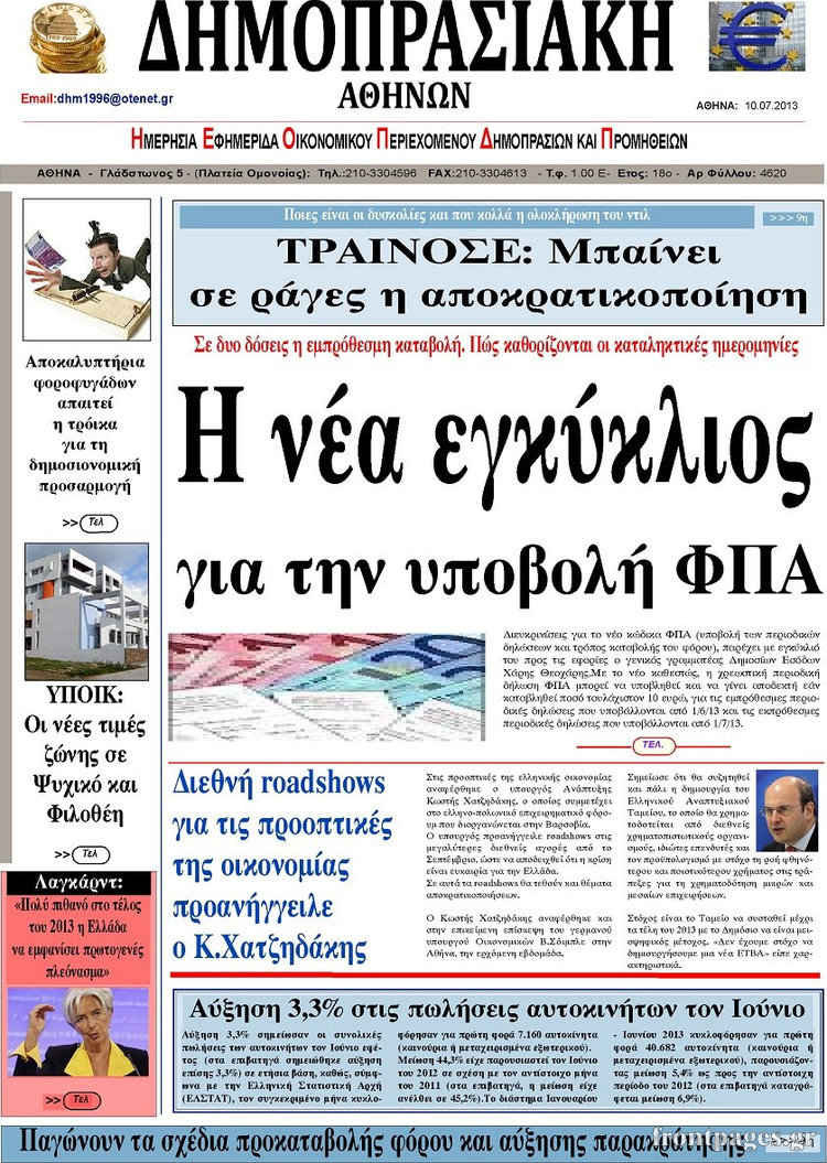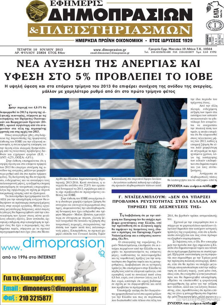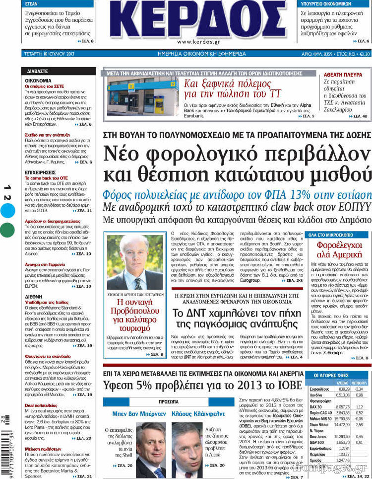 Οι oικονομικές εφημερίδες Enikos Newsroom 09:16, Τετάρτη 10 Ιουλίου 2013 Media Οι oικονομικές εφημερίδες Διαβάστε τα πρωτοσέλιδα των οικονομικών εφημερίδων: ΕΦΗΜΕΡΙΔΕΣ ΟΙΚΟΝΟΜΙΚΕΣ ΕΦΗΜΕΡΙΔΕΣ ΠΡΩΤΟΣΕΛΙΔΑ Μοιράσου το: σχολίασε κι εσύ (0 σχόλια) Ακολουθήστε το enikos.gr στο Google News και μάθετε πρώτοι όλες τις ειδήσεις Δείτε όλες τις τελευταίες ειδήσεις από την Ελλάδα και τον Κόσμο στο enikos.gr Ειδήσεις Ροή Ειδήσεων 57 λεπτά πριν Αυξάνουν την πίεση προς την κυβέρνηση οι αγρότες: Κλείνουν παρακαμπτήριους και ανοίγουν διόδια – Τι θα γίνει τις γιορτές 48 λεπτά πριν Φοινικούντα: Το Σάββατο απολογείται ο 30χρονος γιος γνωστού επιχειρηματία της Πλάκας που παραδόθηκε – Όσα είπε στους αστυνομικούς και ο ρόλος του στο έγκλημα 30 λεπτά πριν Μπορεί ο Μαδούρο να αντέξει τον αποκλεισμό του Τραμπ; Τι θα χρειαστεί η Ουάσινγκτον για να τον ανατρέψει 2 ώρες πριν Δημοσκόπηση Metron Analysis: Στις 10 μονάδες η διαφορά ΝΔ-ΠΑΣΟΚ, στην 3η θέση η Πλεύση Ελευθερίας – 8 στους 10 στηρίζουν τον αγώνα των αγροτών 2 ώρες πριν Πρίγκιπας Ουίλιαμ – Κέιτ: Η νέα οικογενειακή φωτογραφία για τις Χριστουγεννιάτικες κάρτες του 2025 2 ώρες πριν Ύπνος: Η απλή βραδινή ρουτίνα για να προστατεύσετε τα μαλλιά σας από το κρύο κατά τη διάρκεια του χειμώνα 3 ώρες πριν Manifesting: Πώς να συναντήσετε τον σύντροφο της ζωής σας, ανάλογα με τον μήνα γέννησής σας 2 ημέρες πριν 20 χρόνια τα Χριστούγεννα ξεκινούν στα Public με μεγάλη ποικιλία σε δώρα! 33 λεπτά πριν Αρχαιολόγοι ανακάλυψαν ρωμαϊκά τεχνουργήματα από μια πόλη που δεν υπήρξε ποτέ – Τα τρία εντυπωσιακά κτίρια και ο αμφορέας με τις… σαρδέλες 14 λεπτά πριν Παναθηναϊκός – Χάποελ Τελ Αβίβ 93-82: Με… φόρα από την Κωνσταντινούπολη 30 λεπτά πριν Μπορεί ο Μαδούρο να αντέξει τον αποκλεισμό του Τραμπ; Τι θα χρειαστεί η Ουάσινγκτον για να τον ανατρέψει 33 λεπτά πριν Αρχαιολόγοι ανακάλυψαν ρωμαϊκά τεχνουργήματα από μια πόλη που δεν υπήρξε ποτέ – Τα τρία εντυπωσιακά κτίρια και ο αμφορέας με τις… σαρδέλες 35 λεπτά πριν Στο ΟΑΚΑ για το «Παναθηναϊκός – Χάποελ» η Κίμπερλι Γκίλφοϊλ – ΦΩΤΟ 43 λεπτά πριν Ούρσουλα φον ντερ Λάιεν: Μετατίθεται για τον Ιανουάριο η υπογραφή της εμπορικής συμφωνίας «ΕΕ-MERCOSUR» ENIKOS NETWORK Σε περίοδο αυξημένης δραστηριότητας η γρίπη στην Ελλάδα-Μέτρα προστασίας από τον ΕΟΔΥ Σκέφτεστε συνέχεια συζητήσεις που έχετε κάνει; Τι σημαίνει αυτό, σύμφωνα με ειδικό Στεγαστικό: Τι λέει η ΠΟΜΙΔΑ για τα νέα μέτρα που ανακοίνωσε ο Κυριάκος Μητσοτάκης Λαγκάρντ: Αισιόδοξη για την ανάπτυξη της Ευρωζώνης, αβέβαιη για τον πληθωρισμό Χαρτογραφώντας το «σημείο χωρίς επιστροφή»: Για πρώτη φορά αποκαλύπτεται με λεπτομέρεια το ακανθώδες όριο της ατμόσφαιρας τ... Η Google καταργεί τη λειτουργία «dark web report» – Πώς θα μπορούν οι χρήστες να διαγράφουν τα δεδομένα τους περισσότερα 17:45 , Πέμπτη 18 Δεκεμβρίου 2025 ROUK ZOUK: Εορταστικό επεισόδιο με καλεσμένους τους πρωταγωνιστές του «Γιατί ρε πατέρα» Το Σάββατο 20 Δεκεμβρίου στις 21:00, η Ζέτα Μακρυπούλια υποδέχεται εκλεκτούς ηθοποιούς που όλο... 17:20 , Πέμπτη 18 Δεκεμβρίου 2025 Άγιος έρωτας: Η Χριστίνα εξομολογείται στον πατέρα Νικόλαο, απόψε στις 21:00 στον Alpha Η Νότα αποφασίζει να εκδικηθεί τον Πέτρο και τον Στέφανο, για χάρη του Λούη, όμως τα πράγματα ... 16:50 , Πέμπτη 18 Δεκεμβρίου 2025 Να μ’ αγαπάς: Ζωή και Φωτεινή συμφιλιώνονται ως μάνα με κόρη, απόψε στις 20:00 Η ταυτότητα του Άγγελου αποκαλύπτεται στο νέο επεισόδιο της σειράς “Να μ’ αγαπάς... 15:52 , Πέμπτη 18 Δεκεμβρίου 2025 Το Σπίτι Δίπλα Σ