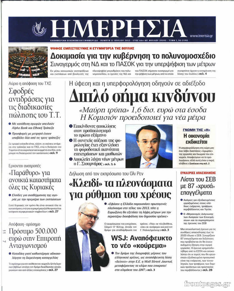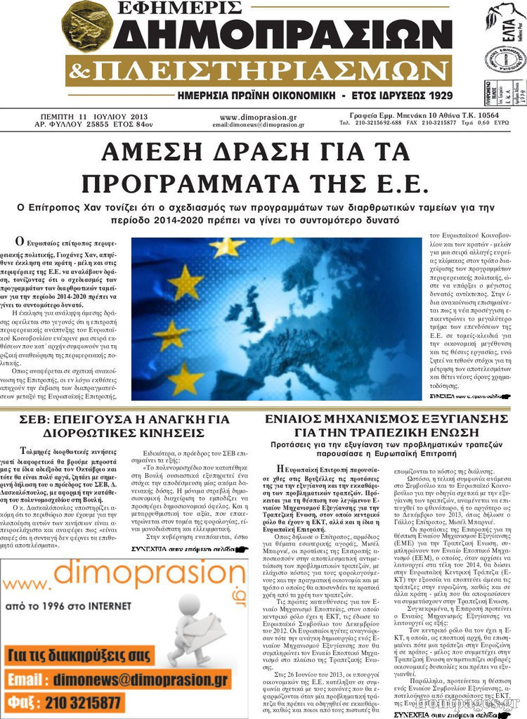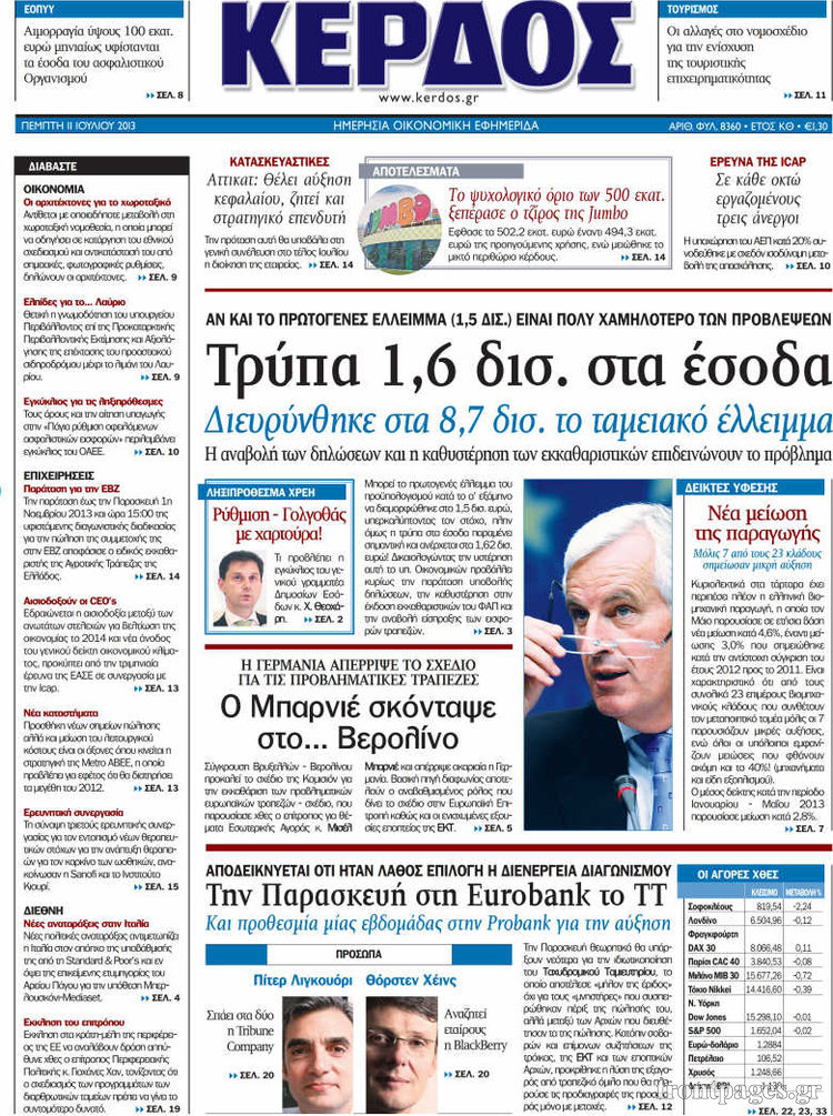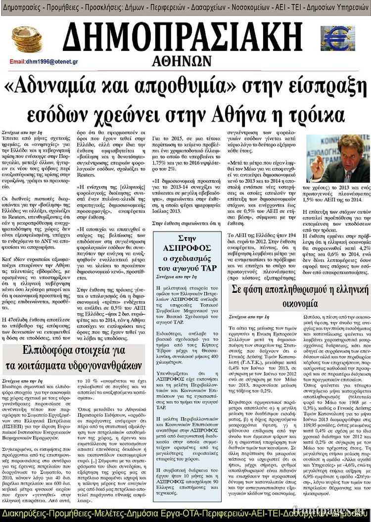 Οι oικονομικές εφημερίδες Enikos Newsroom 08:35, Πέμπτη 11 Ιουλίου 2013 Media Οι oικονομικές εφημερίδες Διαβάστε τα πρωτοσέλιδα των οικονομικών εφημερίδων: ΕΦΗΜΕΡΙΔΕΣ ΟΙΚΟΝΟΜΙΚΕΣ ΕΦΗΜΕΡΙΔΕΣ ΠΡΩΤΟΣΕΛΙΔΑ Μοιράσου το: σχολίασε κι εσύ (0 σχόλια) Ακολουθήστε το enikos.gr στο Google News και μάθετε πρώτοι όλες τις ειδήσεις Δείτε όλες τις τελευταίες ειδήσεις από την Ελλάδα και τον Κόσμο στο enikos.gr Ειδήσεις Ροή Ειδήσεων 1 ώρα πριν Νίκος Παππάς: «Είχα λάθος αντίδραση στη δική του δράση-πρόκληση – Δεν θα αναλύσω σε τι κατάσταση ήταν ο δημοσιογράφος» 16 λεπτά πριν Αλεξανδρούπολη: Πολυοργανική ανεπάρκεια λόγω υποσιτισμού η αιτία θανάτου του 3χρονου αγοριού 55 λεπτά πριν Δημοσκόπηση Pulse: Η διαφορά ΝΔ-ΠΑΣΟΚ – Με ποια κριτήρια θα ψηφίσουν οι πολίτες στις επόμενες εκλογές 1 ώρα πριν Αγρότες: Άνοιξαν τον μεθοριακό σταθμό του Προμαχώνα – Κανονικά περνούν τα φορτηγά 2 ώρες πριν Συγκλονιστικό βίντεο: Τρόμος για τουρίστες που σώθηκαν την τελευταία στιγμή από λεωφορείο που κατρακυλούσε σε φαράγγι 48 λεπτά πριν Αριθμολογία: Οι άνθρωποι που έχουν γεννηθεί αυτές τις 4 ημερομηνίες, είναι τρυφεροί και αγαπούν ανιδιοτελώς 3 ώρες πριν Οι άνθρωποι που θυμούνται τα όνειρά τους, συνήθως μοιράζονται αυτά τα 6 σπάνια χαρακτηριστικά 2 ώρες πριν Καθρέφτες μπάνιου: Το απλό κόλπο με την οδοντόκρεμα για να μην θολώνουν 12 ώρες πριν 20 χρόνια τα Χριστούγεννα ξεκινούν στα Public με μεγάλη ποικιλία σε δώρα! 9 λεπτά πριν Δημοσκόπηση MRB: Πρώτη η ΝΔ με 22,6%, στο 10,9% το ΠΑΣΟΚ – Το 80% των πολιτών στηρίζει τους αγρότες, τι λένε για Τσίπρα και Καρυστιανού 16 λεπτά πριν Αλεξανδρούπολη: Πολυοργανική ανεπάρκεια λόγω υποσιτισμού η αιτία θανάτου του 3χρονου αγοριού 24 λεπτά πριν LEFT: Ξεκίνησαν οι διαδικασίες για τη διαγραφή του Νίκου Παππά από την ομάδα της Αριστεράς στο Ευρωκοινοβούλιο 30 λεπτά πριν Λεωφόρος Αλεξάνδρας: Απειλή για βόμβα έξω από κολέγιο – Στο σημείο το ΤΕΕΜ 35 λεπτά πριν Παιχνίδια Εκδίκησης: Θα καταφέρει ο Χρήστος να κλονίσει την εμπιστοσύνη της Μάγιας απέναντι στον Άγη; ENIKOS NETWORK Αϋπνία: Το κόλπο που θα σας βοηθήσει να κοιμηθείτε απόψε – Είναι απλό και έχει αποτέλεσμα 2,6 εκατομμύρια πολίτες έχουν ήδη εμβολιαστεί κατά της γρίπης Πώς θα γίνει η πληρωμή αγροτεμαχίων έως 20 στρέμματα παρά τα ζητήματα ΚΑΕΚ ΟΠΕΚΕΠΕ – ΕΛΓΑ: Ολοκληρώθηκαν πληρωμές 487,9 εκατ. ευρώ – Θα καταβληθούν ακόμα 600 εκατ. έως τις 31 Δεκεμβρίου Χαρτογραφώντας το «σημείο χωρίς επιστροφή»: Για πρώτη φορά αποκαλύπτεται με λεπτομέρεια το ακανθώδες όριο της ατμόσφαιρας τ... Η Google καταργεί τη λειτουργία «dark web report» – Πώς θα μπορούν οι χρήστες να διαγράφουν τα δεδομένα τους περισσότερα 21:14 , Τετάρτη 17 Δεκεμβρίου 2025 Παιχνίδια Εκδίκησης: Θα καταφέρει ο Χρήστος να κλονίσει την εμπιστοσύνη της Μάγιας απέναντι στον Άγη; Τα «Παιχνίδια Εκδίκησης» έρχονται απόψε στις 22:30, στον Αντ1, με το τελευταίο επεισόδιο της χ... 20:57 , Τετάρτη 17 Δεκεμβρίου 2025 Άγιος Έρωτας: Η Χλόη καταθέτει εναντίον του πατέρα της και ο Χάρης αποκαλύπτει στον Κλεάνθη ότι δεν είναι ο βιολογικός του πατέρας. Γεμάτο αποκαλύψεις είναι το νέο επεισόδιο της σειράς “Άγιος Έρωτας” απόψε στις 21:... 20:15 , Τετάρτη 17 Δεκεμβρίου 2025 Η ανακοίνωση της ΕΣΗΕΑ για την επίθεση του Ευρωβουλευτή Νίκου Παππά κατά του δημοσιογράφου Νίκου Γιαννόπουλου «Το Δ.Σ. της ΕΣΗΕΑ καταδικάζει απερίφραστα την ενέργεια του Ευρωβουλευτή του ΣΥΡΙΖΑ Νίκου Παππ... 12:35 , Τετάρτη 17 Δεκεμβρίου 2025 Μίρκα Παπακωνσταντίνου: «Δεν ήμουν αισιόδοξη για 