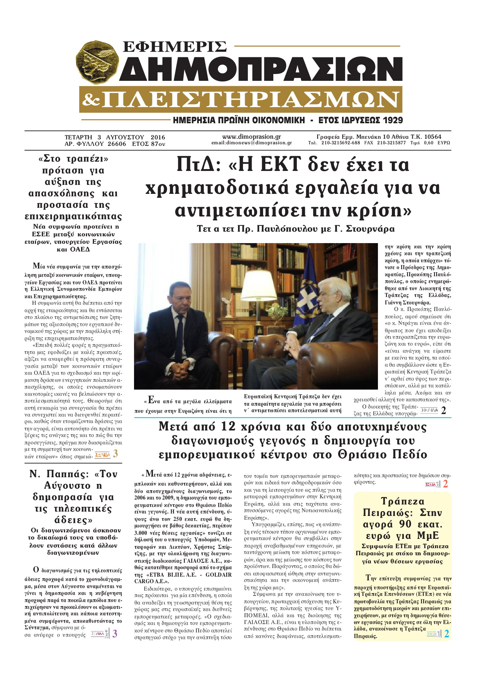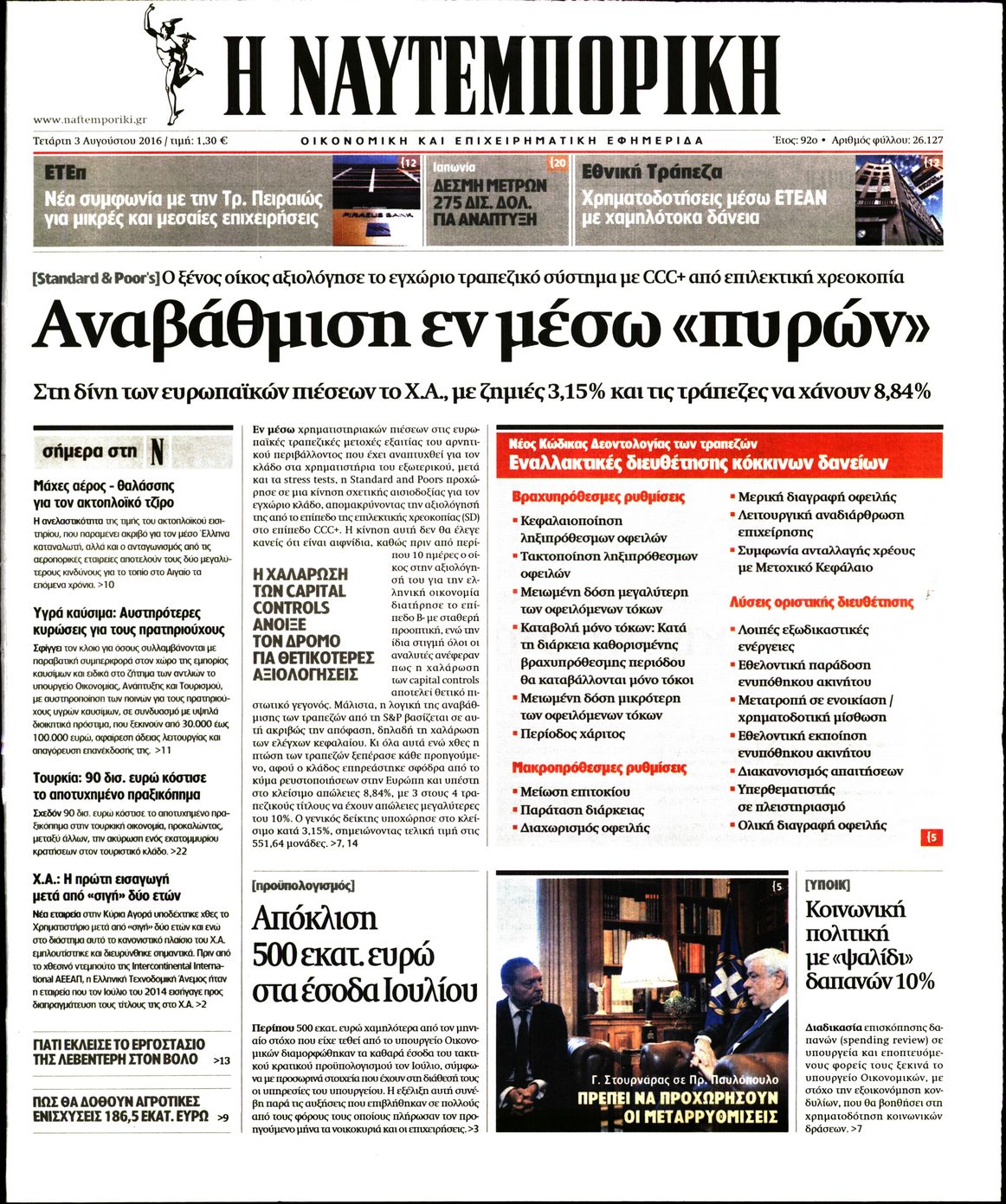 Οι οικονομικές εφημερίδες 3/8/2016 Enikos Newsroom 04:52, Τετάρτη 03 Αυγούστου 2016 Media Διαβάστε τα σημερινά πρωτοσέλιδα των οικονομικών εφημερίδων: ΟΙΚΟΝΟΜΙΚΕΣ ΕΦΗΜΕΡΙΔΕΣ ΠΡΩΤΟΣΕΛΙΔΑ Μοιράσου το: σχολίασε κι εσύ (0 σχόλια) Ακολουθήστε το enikos.gr στο Google News και μάθετε πρώτοι όλες τις ειδήσεις Δείτε όλες τις τελευταίες ειδήσεις από την Ελλάδα και τον Κόσμο στο enikos.gr Ειδήσεις Ροή Ειδήσεων 3 ώρες πριν Αυξάνουν την πίεση προς την κυβέρνηση οι αγρότες: Κλείνουν παρακαμπτήριους και ανοίγουν διόδια – Τι θα γίνει τις γιορτές 1 ώρα πριν ΟΠΕΚΕΠΕ: Προφυλακιστέος ο φερόμενος αρχηγός και ο λογιστής της εγκληματικής οργάνωσης 2 ώρες πριν Φοινικούντα: Το Σάββατο απολογείται ο 30χρονος γιος γνωστού επιχειρηματία της Πλάκας που παραδόθηκε – Όσα είπε στους αστυνομικούς και ο ρόλος του στο έγκλημα 2 ώρες πριν Μπορεί ο Μαδούρο να αντέξει τον αποκλεισμό του Τραμπ; Τι θα χρειαστεί η Ουάσινγκτον για να τον ανατρέψει 4 ώρες πριν Πρίγκιπας Ουίλιαμ – Κέιτ: Η νέα οικογενειακή φωτογραφία για τις Χριστουγεννιάτικες κάρτες του 2025 3 ώρες πριν Ύπνος: Η απλή βραδινή ρουτίνα για να προστατεύσετε τα μαλλιά σας από το κρύο κατά τη διάρκεια του χειμώνα 4 ώρες πριν Manifesting: Πώς να συναντήσετε τον σύντροφο της ζωής σας, ανάλογα με τον μήνα γέννησής σας 2 ημέρες πριν 20 χρόνια τα Χριστούγεννα ξεκινούν στα Public με μεγάλη ποικιλία σε δώρα! 2 ώρες πριν Αρχαιολόγοι ανακάλυψαν ρωμαϊκά τεχνουργήματα από μια πόλη που δεν υπήρξε ποτέ – Τα τρία εντυπωσιακά κτίρια και ο αμφορέας με τις… σαρδέλες 6 λεπτά πριν Νέος πρέσβης της Μεγάλης Βρετανίας στις ΗΠΑ ο Κρίστιαν Τέρνερ 10 λεπτά πριν Conference League: Με Νόα, Ντρίτα, Άλκμααρ ή Τσέλιε στους «16» η ΑΕΚ 18 λεπτά πριν Conference League: Απευθείας στους «16» η ΑΕΚ Λάρνακας και η Ρακόβ των Σβάρνα και Κωνσταντόπουλου – Τα αποτελέσματα και η βαθμολογία, 3η η ΑΕΚ 28 λεπτά πριν Σε ομάδες που συνδέονται με το ρωσικό κράτος αποδίδει η Δανία δύο κυβερνοεπιθέσεις που δέχθηκε 43 λεπτά πριν Βαθμολογία UEFA: Η Πολωνία προσπέρασε την Ελλάδα ENIKOS NETWORK Σε περίοδο αυξημένης δραστηριότητας η γρίπη στην Ελλάδα-Μέτρα προστασίας από τον ΕΟΔΥ Σκέφτεστε συνέχεια συζητήσεις που έχετε κάνει; Τι σημαίνει αυτό, σύμφωνα με ειδικό Στεγαστικό: Τι λέει η ΠΟΜΙΔΑ για τα νέα μέτρα που ανακοίνωσε ο Κυριάκος Μητσοτάκης Λαγκάρντ: Αισιόδοξη για την ανάπτυξη της Ευρωζώνης, αβέβαιη για τον πληθωρισμό Χαρτογραφώντας το «σημείο χωρίς επιστροφή»: Για πρώτη φορά αποκαλύπτεται με λεπτομέρεια το ακανθώδες όριο της ατμόσφαιρας τ... Η Google καταργεί τη λειτουργία «dark web report» – Πώς θα μπορούν οι χρήστες να διαγράφουν τα δεδομένα τους περισσότερα 17:45 , Πέμπτη 18 Δεκεμβρίου 2025 ROUK ZOUK: Εορταστικό επεισόδιο με καλεσμένους τους πρωταγωνιστές του «Γιατί ρε πατέρα» Το Σάββατο 20 Δεκεμβρίου στις 21:00, η Ζέτα Μακρυπούλια υποδέχεται εκλεκτούς ηθοποιούς που όλο... 17:20 , Πέμπτη 18 Δεκεμβρίου 2025 Άγιος έρωτας: Η Χριστίνα εξομολογείται στον πατέρα Νικόλαο, απόψε στις 21:00 στον Alpha Η Νότα αποφασίζει να εκδικηθεί τον Πέτρο και τον Στέφανο, για χάρη του Λούη, όμως τα πράγματα ... 16:50 , Πέμπτη 18 Δεκεμβρίου 2025 Να μ’ αγαπάς: Ζωή και Φωτεινή συμφιλιώνονται ως μάνα με κόρη, απόψε στις 20:00 Η ταυτότητα του Άγγελου αποκαλύπτεται στο νέο επεισόδιο της σειράς “Να μ’ αγαπάς... 15:52 , Πέμπτη 18 Δεκεμβρίου 2025 Το Σπίτι Δίπλα Στο Ποτάμι: Το καθηλωτικό τελευταίο επεισόδιο για το 2025 απόψε στις 22:30 Καθηλώνει το σημερινό επεισόδιο της σειράς “Το Σπίτι Δίπλα Στο Ποτάμι” που έρχεται... ΤΕΛΕΥΤΑ