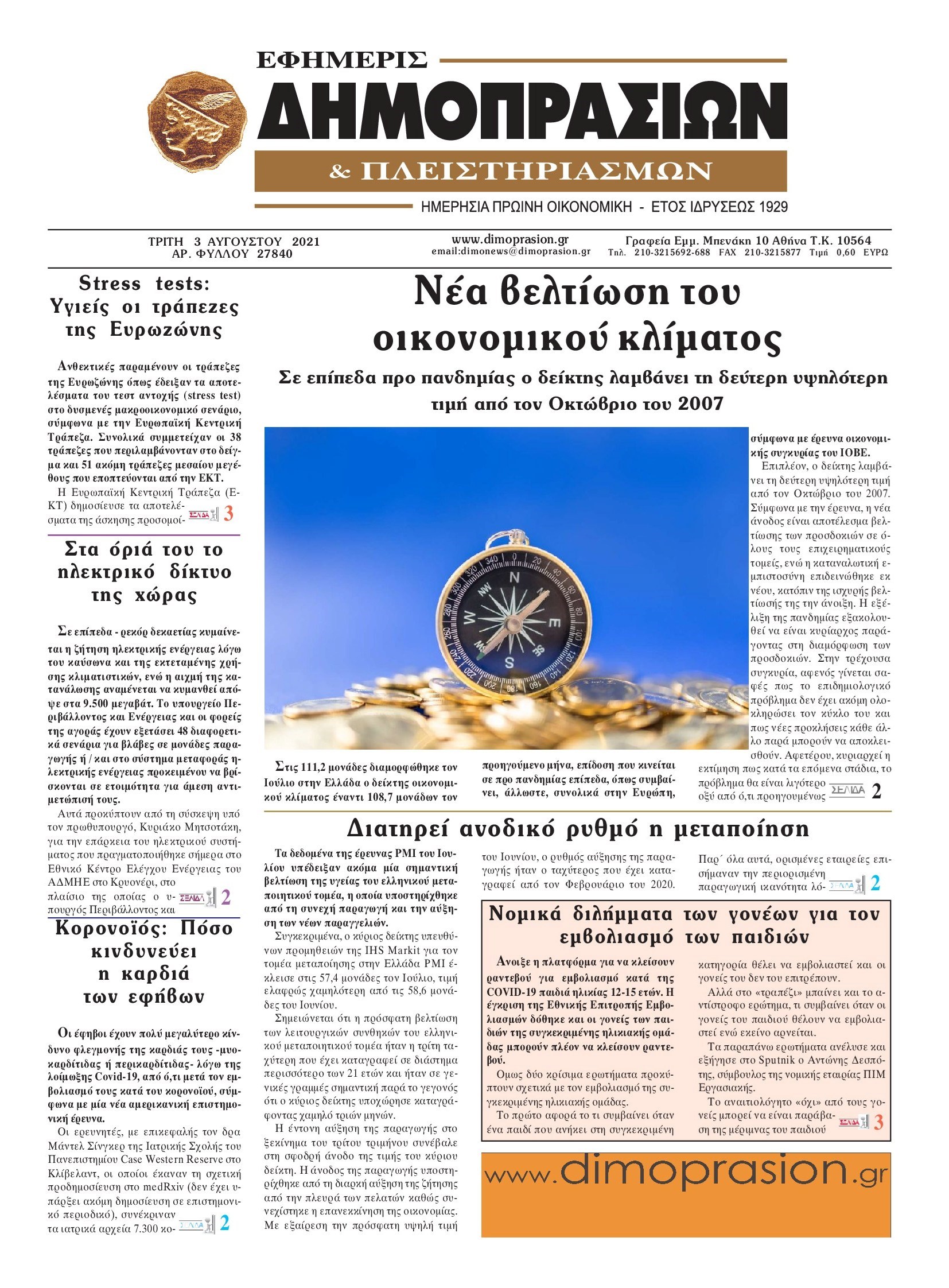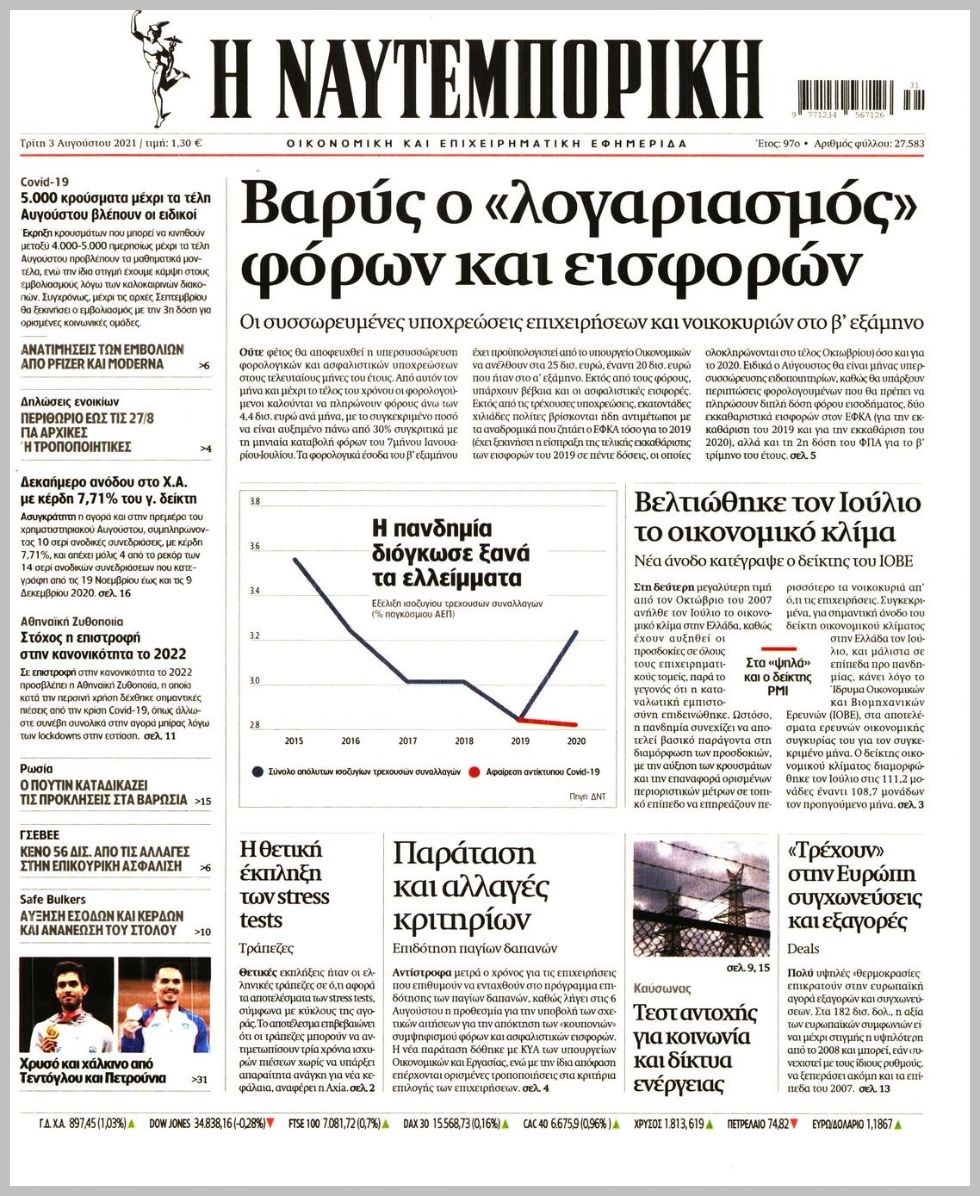 Οι οικονομικές εφημερίδες 3/8/2021 Διονύσης Νίκκας 06:55, Τρίτη 03 Αυγούστου 2021 Media Διαβάστε τα πρωτοσέλιδα των οικονομικών εφημερίδων… ΟΙΚΟΝΟΜΙΚΕΣ ΕΦΗΜΕΡΙΔΕΣ Μοιράσου το: σχολίασε κι εσύ (0 σχόλια) Ακολουθήστε το enikos.gr στο Google News και μάθετε πρώτοι όλες τις ειδήσεις Δείτε όλες τις τελευταίες ειδήσεις από την Ελλάδα και τον Κόσμο στο enikos.gr Ειδήσεις Ροή Ειδήσεων 2 ώρες πριν Νίκος Παππάς: Άφαντος παραμένει ο ευρωβουλευτής μετά την επίθεση στον Νίκο Γιαννόπουλο 23 λεπτά πριν Βρυξέλλες: Ένταση με τους αγρότες – Πέταξαν πατάτες και κροτίδες 2 ώρες πριν Συναγερμός και στην Ελλάδα για τη «σούπερ γρίπη»: Πόσο σοβαρή είναι και ποιοι θεωρούνται πιο ευάλωτοι – 3 ειδικοί μιλούν στο enikos.gr 1 ώρα πριν Μητσοτάκης: Η Ελλάδα στηρίζει την Ουκρανία και θα υποστηρίξει οποιαδήποτε λύση της παρέχει χρηματοδοτική σταθερότητα 25 λεπτά πριν Γαλλία: Το δικαστήριο έκρινε ένοχο τον «διεστραμμένο» αναισθησιολόγο για τη δολοφονία 12 ασθενών – Είχε το παρατσούκλι «Δρ. Θάνατος» 3 ώρες πριν Τα 4 ζώδια που λαμβάνουν ένα ισχυρό σημάδι από το σύμπαν – «Αποκαλύπτεται κάτι που μπορεί να αλλάξει τη ζωή μας» 4 ώρες πριν Η σύζυγός του παραπονιέται για τα χρήματα που της δίνει για ψώνια κάθε μήνα – «Λέει ότι νιώθει φτωχή και της είπα να βρει δουλειά» 2 ώρες πριν Αν κάνετε συνεχώς αυτά τα 8 πράγματα με τα κατοικίδιά σας, σας λείπει η ανθρώπινη επαφή 1 ημέρα πριν 20 χρόνια τα Χριστούγεννα ξεκινούν στα Public με μεγάλη ποικιλία σε δώρα! 5 λεπτά πριν ΑΠΕΥΘΕΙΑΣ – Η ενημέρωση από τον Κυβερνητικό Εκπρόσωπο 5 λεπτά πριν Ανδρουλάκης: Απαράδεκτη η πρόταση της Κομισιόν για μείωση των κονδυλίων της ΚΑΠ – Τι είπε για τις αγροτικές κινητοποιήσεις 10 λεπτά πριν Ιράν: Η θάλασσα «βάφτηκε» κόκκινη στο νησί Χορμούζ – Η εξήγηση Κολυδά για το εντυπωσιακό φαινόμενο 15 λεπτά πριν Άρης Μαλιαγρός: Το βίντεο – αφιέρωμα στον ηθοποιό από την Finos Film: – «Τιμάμε τον γλυκύτατο κύριο με το μονόκλ» 18 λεπτά πριν Ο Π.Σ.Α.Ε. ΜΜΕ τιμάει την ημέρα Αλληλεγγύης ENIKOS NETWORK Τι περιλαμβάνει το σχέδιο της ΕΕ για την καρδιαγγειακή υγεία-Οι προτάσεις της Ελληνικής Καρδιολογικής Εταιρείας Σύγχρονες τεχνικές αποκατάστασης χόνδρινων βλαβών & διατήρησης της άρθρωσης Ενοίκια: Τι αλλάζει με τη νέα τροπολογία στην πληρωμή Ειδικό επιδοτούμενο πρόγραμμα κατάρτισης από ΔΥΠΑ και ΕΛΓΟ – ΔΗΜΗΤΡΑ: Έως αύριο οι ενστάσεις – Όσα πρέπει να γνωρίζετε Χαρτογραφώντας το «σημείο χωρίς επιστροφή»: Για πρώτη φορά αποκαλύπτεται με λεπτομέρεια το ακανθώδες όριο της ατμόσφαιρας τ... Η Google καταργεί τη λειτουργία «dark web report» – Πώς θα μπορούν οι χρήστες να διαγράφουν τα δεδομένα τους περισσότερα 08:00 , Πέμπτη 18 Δεκεμβρίου 2025 Την Κυριακή με τη Realnews: Δωροεπιταγή 10€ Δωροεπιταγή αξίας 10€ για αγορές άνω των 60€ από τα πολυκαταστήματα FactoryOutlet H προσφορά ι... 07:50 , Πέμπτη 18 Δεκεμβρίου 2025 «Το σόι σου»: Backstage στα γυρίσματα για το εορταστικό επεισόδιο «Το σόι σου» φορά τα γιορτινά του για τα Χριστούγεννα και η Όλγα Λαφαζάνη, με την κάμερα του «... 07:36 , Πέμπτη 18 Δεκεμβρίου 2025 Οι αθλητικές μεταδόσεις 18/12/2025 – Πού θα δείτε τον αγώνα της ΑΕΚ με την Κραϊόβα για το Conference League Τα ματς ΑΕΚ – Ουνιβερσιτάτεα Κραϊόβα για το Conference League και Παναθηναϊκός – Χάποελ Τελ Αβ... 05:48 , Πέμπτη 18 Δεκεμβρίου 2025 Οι οικονομικές εφημερίδες 18/12/2025 Διαβάστε τα πρωτοσέλιδα από τις οικονομικές εφημερίδες, σήμερα 18/12/2025. ΤΕΛΕΥΤΑΙΕΣ ΕΙΔΗΣΕΙΣ 5 λεπτά πριν ΑΠΕΥΘΕΙΑΣ – Η ενημέρωση από τον Κυβερνητικό... 5 λεπτά πριν Ανδρουλάκης: Απ