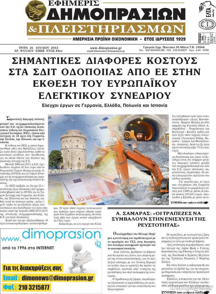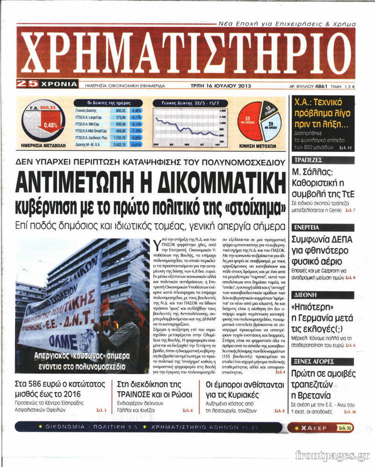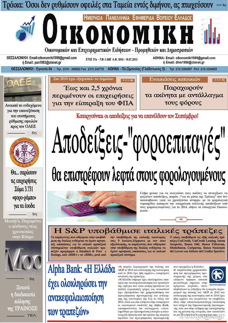 Οι oικονομικές εφημερίδες Enikos Newsroom 09:02, Τρίτη 16 Ιουλίου 2013 Media Οι oικονομικές εφημερίδες Διαβάστε τα πρωτοσέλιδα των οικονομικών εφημερίδων: ΕΦΗΜΕΡΙΔΕΣ ΟΙΚΟΝΟΜΙΚΕΣ ΕΦΗΜΕΡΙΔΕΣ ΠΡΩΤΟΣΕΛΙΔΑ Μοιράσου το: σχολίασε κι εσύ (0 σχόλια) Ακολουθήστε το enikos.gr στο Google News και μάθετε πρώτοι όλες τις ειδήσεις Δείτε όλες τις τελευταίες ειδήσεις από την Ελλάδα και τον Κόσμο στο enikos.gr Ειδήσεις Ροή Ειδήσεων 4 ώρες πριν «Βιολάντα»: Αυτά είναι τα κρίσιμα σχέδια των εγκαταστάσεων που κατέθεσε η επιχείρηση στις αρμόδιες υπηρεσίες – Αποκάλυψη enikos.gr 2 ώρες πριν Αρχεία Επστάιν: Σάλος με τις αποκαλύψεις για τους φίλους του καταδικασμένου χρηματιστή – Οι Ρωσίδες, ο Γκέιτς, τα ΣΜΝ, τα ελικόπτερα και ο Μασκ 2 ώρες πριν Τροχαίο δυστύχημα στη Ρουμανία: Θρήνος στις κηδείες των 2 φιλάθλων του ΠΑΟΚ – Το Σάββατο η εξόδιος ακολουθία για τους 3 νέους από την Αλεξάνδρεια Ημαθίας 2 ώρες πριν Βιολάντα: Διευρυμένη εισαγγελική έρευνα για τα αίτια της τραγωδίας στα Τρίκαλα – Οι αποκαλύψεις για το αδήλωτο υπόγειο, οι καταθέσεις-«φωτιά» και το νέο βίντεο 6 ώρες πριν Νίκος Κούρκουλος: Η συνέντευξη στο «Ενώπιος Ενωπίω» και τον Νίκο Χατζηνικολάου το 1994 – Τι είχε πει για τα παιδικά του χρόνια, το θέατρο και την προσωπική του ζωή 3 ώρες πριν Αριθμολογία: Οι 3 πιο ανιδιοτελείς ημερομηνίες γέννησης – «Είναι οι πιο γενναιόδωροι και δοτικοί άνθρωποι» 3 ώρες πριν Ύπνος: Η μέθοδος αναπνοής που «διώχνει τις αρνητικές σκέψεις», σύμφωνα με ειδικούς 2 ώρες πριν Στο φως η πρώτη αραμαϊκή επιγραφή ενός ξεχασμένου ελληνιστικού βασιλείου – Για μοναδική ανακάλυψη που ξαναγράφει την ιστορία μιλούν οι αρχαιολόγοι 9 ώρες πριν Allwyn: Η νέα εποχή του ΟΠΑΠ – Νέο brand, περισσότερη διασκέδαση και σύγχρονες εμπειρίες ψυχαγωγίας για τους πελάτες 14 λεπτά πριν Βιλερμπάν – Παναθηναϊκός 78-79: Επιστροφή στις νίκες με πρωταγωνιστή τον Σλούκα – Όλα τα αποτελέσματα και η βαθμολογία 37 λεπτά πριν Σε δημόσια ηλεκτρονική διαβούλευση το νομοσχέδιο για την επιστολική ψήφο των αποδήμων 47 λεπτά πριν Προς κατάργηση το όριο των 100ml για υγρά στο αεροπλάνο – Πού έχουν αυξηθεί τα όρια και τι ισχύει για το «Ελ. Βενιζέλος» 1 ώρα πριν Κίμπερλι Γκίλφοϊλ: «Η Ελλάδα δεν είναι παθητικός θεατής στο ενεργειακό μέλλον της Ευρώπης, είναι πρωταγωνιστής» 2 ώρες πριν Αρχεία Επστάιν: Σάλος με τις αποκαλύψεις για τους φίλους του καταδικασμένου χρηματιστή – Οι Ρωσίδες, ο Γκέιτς, τα ΣΜΝ, τα ελικόπτερα και ο Μασκ ENIKOS NETWORK Τα 8 πράγματα που κάνουν οι πιο ευτυχισμένοι άνθρωποι για να νιώθουν πάντα νέοι Πώς επηρεάζει η ηλικία την υγεία της εγκυμοσύνης; ΗΠΑ: Πέφτει κατακόρυφα η τιμή του χρυσού και του ασημιού, μετά την επιλογή του Κέβιν Γουόρς για την ηγεσία της Fed Τράπεζα της Ελλάδας: Αύξηση πάνω από 80 δισ. ευρώ στις καταθέσεις νοικοκυριών από το 2019 – Σε υψηλό 15ετίας τον Δεκέμβριο Google Search: Αναβαθμίζει τις δυνατότητες AI με Gemini 3 και Follow-up ερωτήσεις Κουίζ: Πόσο καλός είσαι στην ελληνική μυθολογία; Δοκίμασε τις γνώσεις σου και κάνε το 3 στα 3 περισσότερα 21:42 , Παρασκευή 30 Ιανουαρίου 2026 Το σόι σου: Η Λυδία ψάχνει απεγνωσμένα για δουλειά Ένα ακόμη σπαρταριστό επεισόδιο της πολυαγαπημένης σειράς “Το σόι σου” έρχεται την... 19:40 , Παρασκευή 30 Ιανουαρίου 2026 Η Εταιρεία Ελλήνων Σκηνοθετών τιμά τον Σμαραγδή και τον «Καποδίστρια» του «Του αξίζουν συγχαρητήρια…». Οι Έλληνες σκηνοθέτες συγχαίρουν τον Γιάννη Σμαραγδή για το... 19:03 , Παρασκευή 30 Ιανουαρίου 2026 Νίκος Κούρκουλος: Η συνέ