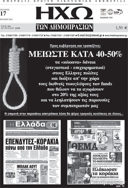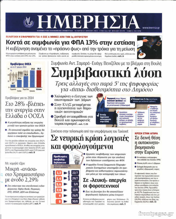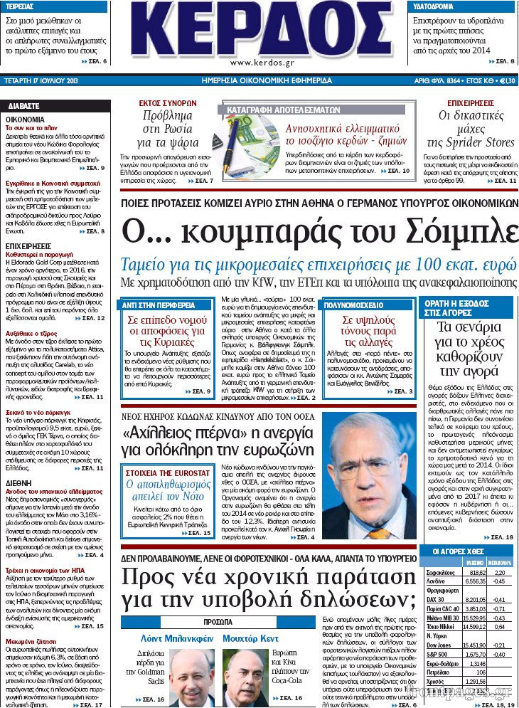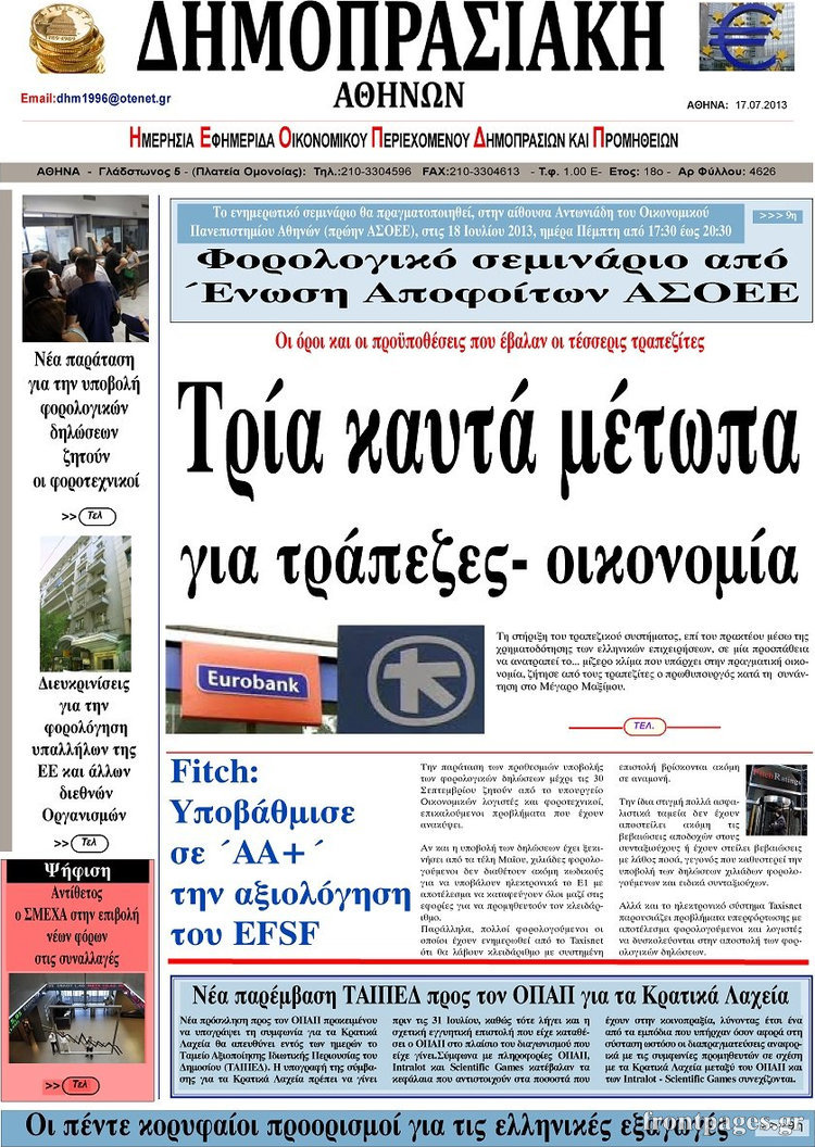 Οι oικονομικές εφημερίδες Enikos Newsroom 08:49, Τετάρτη 17 Ιουλίου 2013 Media Οι oικονομικές εφημερίδες Διαβάστε τα πρωτοσέλιδα των οικονομικών εφημερίδων: ΕΦΗΜΕΡΙΔΕΣ ΟΙΚΟΝΟΜΙΚΕΣ ΕΦΗΜΕΡΙΔΕΣ ΠΡΩΤΟΣΕΛΙΔΑ Μοιράσου το: σχολίασε κι εσύ (0 σχόλια) Ακολουθήστε το enikos.gr στο Google News και μάθετε πρώτοι όλες τις ειδήσεις Δείτε όλες τις τελευταίες ειδήσεις από την Ελλάδα και τον Κόσμο στο enikos.gr Ειδήσεις Ροή Ειδήσεων 2 ώρες πριν Αυξάνουν την πίεση προς την κυβέρνηση οι αγρότες: Κλείνουν παρακαμπτήριους και ανοίγουν διόδια – Τι θα γίνει τις γιορτές 24 λεπτά πριν ΟΠΕΚΕΠΕ: Προφυλακιστέος ο φερόμενος αρχηγός και ο λογιστής της εγκληματικής οργάνωσης 1 ώρα πριν Φοινικούντα: Το Σάββατο απολογείται ο 30χρονος γιος γνωστού επιχειρηματία της Πλάκας που παραδόθηκε – Όσα είπε στους αστυνομικούς και ο ρόλος του στο έγκλημα 1 ώρα πριν Μπορεί ο Μαδούρο να αντέξει τον αποκλεισμό του Τραμπ; Τι θα χρειαστεί η Ουάσινγκτον για να τον ανατρέψει 3 ώρες πριν Πρίγκιπας Ουίλιαμ – Κέιτ: Η νέα οικογενειακή φωτογραφία για τις Χριστουγεννιάτικες κάρτες του 2025 2 ώρες πριν Ύπνος: Η απλή βραδινή ρουτίνα για να προστατεύσετε τα μαλλιά σας από το κρύο κατά τη διάρκεια του χειμώνα 3 ώρες πριν Manifesting: Πώς να συναντήσετε τον σύντροφο της ζωής σας, ανάλογα με τον μήνα γέννησής σας 2 ημέρες πριν 20 χρόνια τα Χριστούγεννα ξεκινούν στα Public με μεγάλη ποικιλία σε δώρα! 1 ώρα πριν Αρχαιολόγοι ανακάλυψαν ρωμαϊκά τεχνουργήματα από μια πόλη που δεν υπήρξε ποτέ – Τα τρία εντυπωσιακά κτίρια και ο αμφορέας με τις… σαρδέλες 4 λεπτά πριν ΑΕΚ – Κραϊόβα 3-2: Επική ανατροπή και πρόκριση στους «16» του Conference League η Ένωση 24 λεπτά πριν ΟΠΕΚΕΠΕ: Προφυλακιστέος ο φερόμενος αρχηγός και ο λογιστής της εγκληματικής οργάνωσης 35 λεπτά πριν Αθηνά Μαξίμου: Η τρυφερή ανάρτηση για τα γενέθλια του Αιμίλιου Χειλάκη – «Είναι η εκλεκτική συγγένειά μου, η επιλογή και η ευθύνη μου» 50 λεπτά πριν Παναθηναϊκός – Χάποελ Τελ Αβίβ 93-82: Με… φόρα από την Κωνσταντινούπολη 1 ώρα πριν Μπορεί ο Μαδούρο να αντέξει τον αποκλεισμό του Τραμπ; Τι θα χρειαστεί η Ουάσινγκτον για να τον ανατρέψει ENIKOS NETWORK Σε περίοδο αυξημένης δραστηριότητας η γρίπη στην Ελλάδα-Μέτρα προστασίας από τον ΕΟΔΥ Σκέφτεστε συνέχεια συζητήσεις που έχετε κάνει; Τι σημαίνει αυτό, σύμφωνα με ειδικό Στεγαστικό: Τι λέει η ΠΟΜΙΔΑ για τα νέα μέτρα που ανακοίνωσε ο Κυριάκος Μητσοτάκης Λαγκάρντ: Αισιόδοξη για την ανάπτυξη της Ευρωζώνης, αβέβαιη για τον πληθωρισμό Χαρτογραφώντας το «σημείο χωρίς επιστροφή»: Για πρώτη φορά αποκαλύπτεται με λεπτομέρεια το ακανθώδες όριο της ατμόσφαιρας τ... Η Google καταργεί τη λειτουργία «dark web report» – Πώς θα μπορούν οι χρήστες να διαγράφουν τα δεδομένα τους περισσότερα 17:45 , Πέμπτη 18 Δεκεμβρίου 2025 ROUK ZOUK: Εορταστικό επεισόδιο με καλεσμένους τους πρωταγωνιστές του «Γιατί ρε πατέρα» Το Σάββατο 20 Δεκεμβρίου στις 21:00, η Ζέτα Μακρυπούλια υποδέχεται εκλεκτούς ηθοποιούς που όλο... 17:20 , Πέμπτη 18 Δεκεμβρίου 2025 Άγιος έρωτας: Η Χριστίνα εξομολογείται στον πατέρα Νικόλαο, απόψε στις 21:00 στον Alpha Η Νότα αποφασίζει να εκδικηθεί τον Πέτρο και τον Στέφανο, για χάρη του Λούη, όμως τα πράγματα ... 16:50 , Πέμπτη 18 Δεκεμβρίου 2025 Να μ’ αγαπάς: Ζωή και Φωτεινή συμφιλιώνονται ως μάνα με κόρη, απόψε στις 20:00 Η ταυτότητα του Άγγελου αποκαλύπτεται στο νέο επεισόδιο της σειράς “Να μ’ αγαπάς... 15:52 , Πέμπτη 18 Δεκεμβρίου 2025 Το Σπίτι Δίπλα Στο Ποτάμι: Το καθηλωτικό τελευταίο επεισόδιο για το 2025 απόψε στις 22