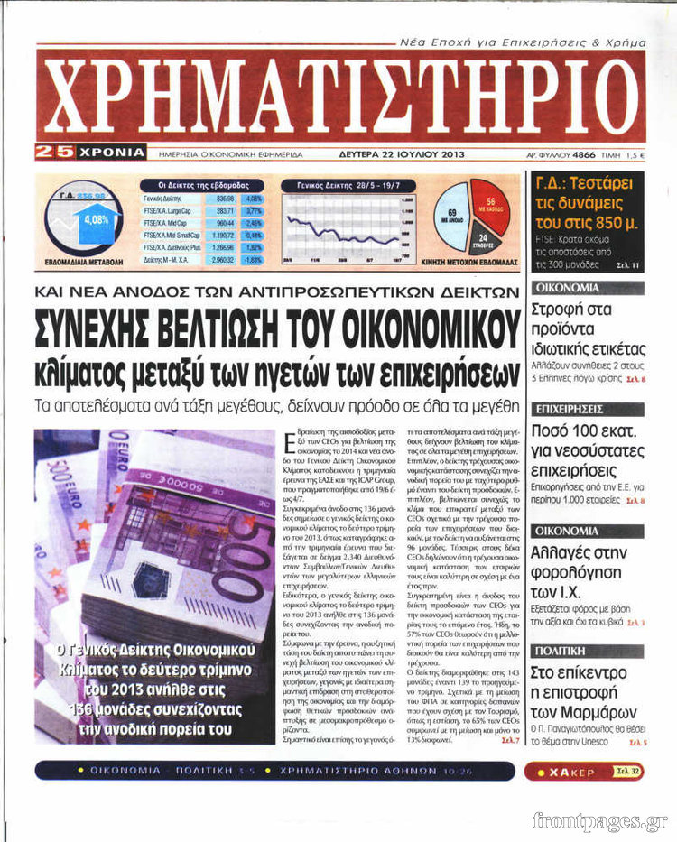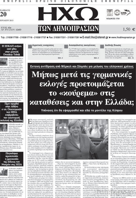 Οι oικονομικές εφημερίδες Enikos Newsroom 09:09, Δευτέρα 22 Ιουλίου 2013 Media Οι oικονομικές εφημερίδες Διαβάστε τα πρωτοσέλιδα των οικονομικών εφημερίδων: ΕΦΗΜΕΡΙΔΑ ΟΙΚΟΝΟΜΙΚΕΣ ΕΦΗΜΕΡΙΔΕΣ ΠΡΩΤΟΣΕΛΙΔΑ Μοιράσου το: σχολίασε κι εσύ (0 σχόλια) Ακολουθήστε το enikos.gr στο Google News και μάθετε πρώτοι όλες τις ειδήσεις Δείτε όλες τις τελευταίες ειδήσεις από την Ελλάδα και τον Κόσμο στο enikos.gr Ειδήσεις Ροή Ειδήσεων 36 λεπτά πριν Δημοσκόπηση Metron Analysis: Στις 10 μονάδες η διαφορά ΝΔ-ΠΑΣΟΚ, στην 3η θέση η Πλεύση Ελευθερίας – 8 στους 10 στηρίζουν τον αγώνα των αγροτών 5 ώρες πριν Αγρότες: «Όχι στον διάλογο, μας εμπαίζει η κυβέρνηση» – Αποφάσισαν κλιμάκωση των κινητοποιήσεων, τι θα γίνει τα Χριστούγεννα 25 λεπτά πριν Νίκος Παππάς στον ΑΝΤ1: «Δεν κρύβομαι – Μετά το συμβάν ακολούθησα κανονικά το πρόγραμμά μου» – ΒΙΝΤΕΟ 2 ώρες πριν Αθήνα: Εξαρθρώθηκε εγκληματική οργάνωση που διακινούσε ναρκωτικά σε μορφή σοκολάτας – Δύο τράπερ ανάμεσα στους 4 συλληφθέντες – ΒΙΝΤΕΟ 17 λεπτά πριν Διαμαντής Καραναστάσης: Οδηγούσε υπό την επήρεια αλκοόλ – Του αφαιρέθηκε το δίπλωμα και του επιβλήθηκε πρόστιμο 350 ευρώ 48 λεπτά πριν Manifesting: Πώς να συναντήσετε τον σύντροφο της ζωής σας, ανάλογα με τον μήνα γέννησής σας 3 ώρες πριν Γάμος: 11 ψυχρές αλλά ευγενικές φράσεις, που λέει ένας άνδρας όταν σκέφτεται τον χωρισμό 2 ώρες πριν Σφουγγάρισμα: Η συνήθεια που θα σας βοηθήσει να διατηρήσετε το σπίτι σας καθαρό και τακτοποιημένο 2 ημέρες πριν 20 χρόνια τα Χριστούγεννα ξεκινούν στα Public με μεγάλη ποικιλία σε δώρα! 2 λεπτά πριν Θεσσαλονίκη: Προθεσμία για την επόμενη εβδομάδα έλαβαν οι συλληφθέντες για το κύκλωμα trafficking – Οι οίκοι ανοχής, τα «φρουτάκια» και οι ρόλοι 10 λεπτά πριν Πρίγκιπας Ουίλιαμ – Κέιτ: Η νέα οικογενειακή φωτογραφία για τις Χριστουγεννιάτικες κάρτες του 2025 17 λεπτά πριν Διαμαντής Καραναστάσης: Οδηγούσε υπό την επήρεια αλκοόλ – Του αφαιρέθηκε το δίπλωμα και του επιβλήθηκε πρόστιμο 350 ευρώ 25 λεπτά πριν Νίκος Παππάς στον ΑΝΤ1: «Δεν κρύβομαι – Μετά το συμβάν ακολούθησα κανονικά το πρόγραμμά μου» – ΒΙΝΤΕΟ 27 λεπτά πριν Αγρότες: Άνοιξε ο μεθοριακός σταθμός του Προμαχώνα για τα φορτηγά ENIKOS NETWORK Σε περίοδο αυξημένης δραστηριότητας η γρίπη στην Ελλάδα-Μέτρα προστασίας από τον ΕΟΔΥ Σκέφτεστε συνέχεια συζητήσεις που έχετε κάνει; Τι σημαίνει αυτό, σύμφωνα με ειδικό ΕΛΤΑ: Αυτό είναι το νέο σχέδιο μετασχηματισμού του Οργανισμού- Τι δήλωσαν Πιερρακάκης και Παπαστεργίου ΕΛΣΤΑΤ: Τι δείχνουν τα νέα στοιχεία για τον μόνιμο πληθυσμό στην Ελλάδα Χαρτογραφώντας το «σημείο χωρίς επιστροφή»: Για πρώτη φορά αποκαλύπτεται με λεπτομέρεια το ακανθώδες όριο της ατμόσφαιρας τ... Η Google καταργεί τη λειτουργία «dark web report» – Πώς θα μπορούν οι χρήστες να διαγράφουν τα δεδομένα τους περισσότερα 17:45 , Πέμπτη 18 Δεκεμβρίου 2025 ROUK ZOUK: Εορταστικό επεισόδιο με καλεσμένους τους πρωταγωνιστές του «Γιατί ρε πατέρα» Το Σάββατο 20 Δεκεμβρίου στις 21:00, η Ζέτα Μακρυπούλια υποδέχεται εκλεκτούς ηθοποιούς που όλο... 17:20 , Πέμπτη 18 Δεκεμβρίου 2025 Άγιος έρωτας: Η Χριστίνα εξομολογείται στον πατέρα Νικόλαο, απόψε στις 21:00 στον Alpha Η Νότα αποφασίζει να εκδικηθεί τον Πέτρο και τον Στέφανο, για χάρη του Λούη, όμως τα πράγματα ... 16:50 , Πέμπτη 18 Δεκεμβρίου 2025 Να μ’ αγαπάς: Ζωή και Φωτεινή συμφιλιώνονται ως μάνα με κόρη, απόψε στις 20:00 Η ταυτότητα του Άγγελου αποκαλύπτεται στο νέο επεισόδιο της σειράς “Να μ’ αγαπάς... 15:52 , Πέμπτη 18 Δεκεμβρίου 2025 Το Σπίτι Δίπλα Στο 