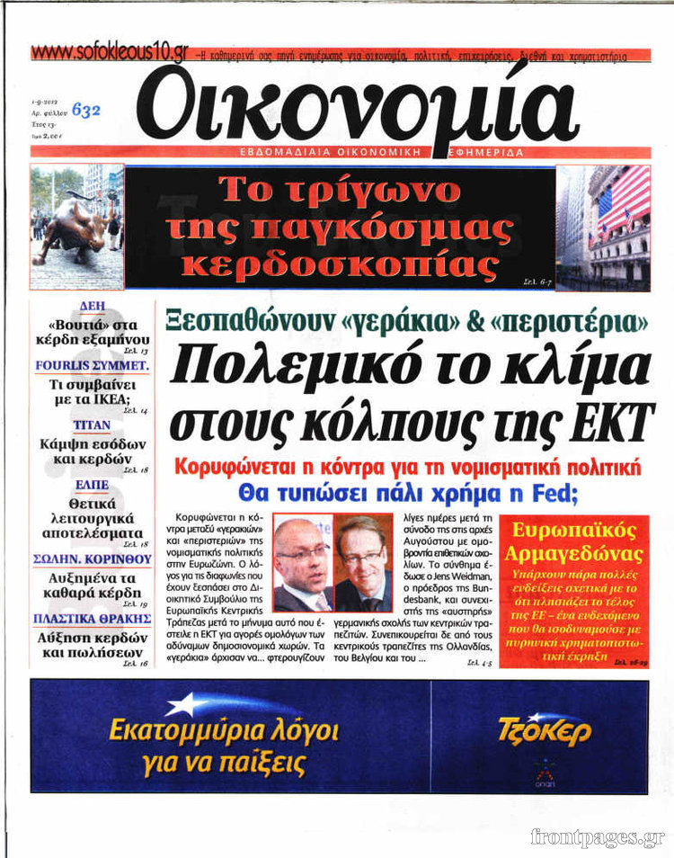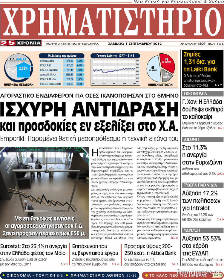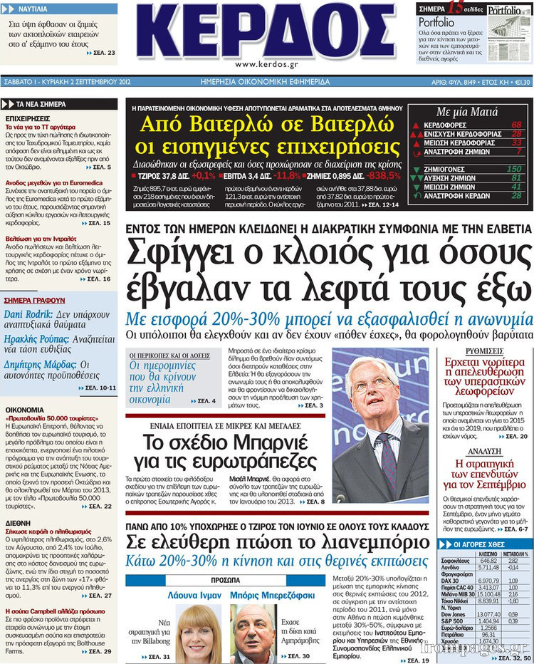 Διαβάστε τα πρωτοσέλιδα του οικονομικού Τύπου…