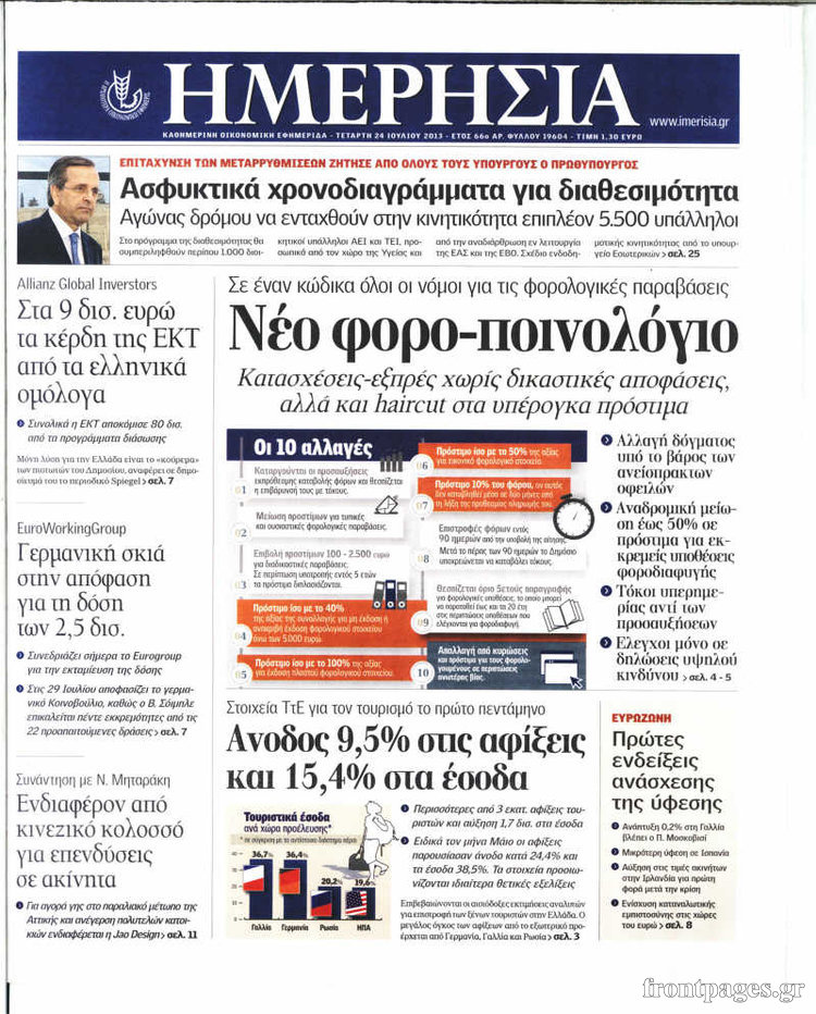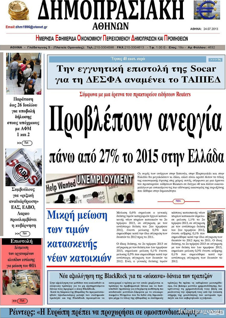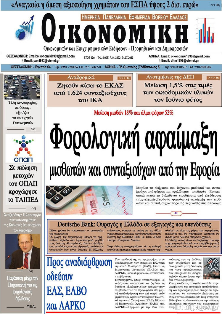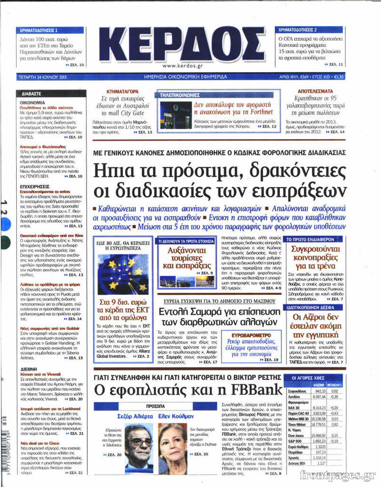 Οι oικονομικές εφημερίδες Enikos Newsroom 08:32, Τετάρτη 24 Ιουλίου 2013 Media Οι oικονομικές εφημερίδες Διαβάστε τα πρωτοσέλιδα των οικονομικών εφημερίδων. ΕΦΗΜΕΡΙΔΕΣ ΟΙΚΟΝΟΜΙΚΕΣ ΕΦΗΜΕΡΙΔΕΣ ΠΡΩΤΟΣΕΛΙΔΑ Μοιράσου το: σχολίασε κι εσύ (0 σχόλια) Ακολουθήστε το enikos.gr στο Google News και μάθετε πρώτοι όλες τις ειδήσεις Δείτε όλες τις τελευταίες ειδήσεις από την Ελλάδα και τον Κόσμο στο enikos.gr Ειδήσεις Ροή Ειδήσεων 6 ώρες πριν Μητσοτάκης: Αναγκαία η μεταρρύθμιση του πρωτογενούς τομέα – Τα 6 νέα μέτρα για το στεγαστικό και οι αναφορές σε «Ιθάκη» και «πολιτικούς του καναπέ» 5 ώρες πριν Δάνεια σε ελβετικό φράγκο: Τα βασικά σημεία της ρύθμισης – ανάσας για 40.000 δανειολήπτες – Αναλυτικός οδηγός με ερωτήσεις και απαντήσεις 5 ώρες πριν Κυψέλη: Εξιτήριο πήρε η 14χρονη μαθήτρια που μαχαιρώθηκε από την 16χρονη σε σχολείο – «Θέλω να βοηθήσω το παιδί, έχει μπλέξει με κακές παρέες» 5 ώρες πριν Τραμπ: Γιατί κατέθεσε τώρα την αγωγή κατά του BBC – Πώς η κίνησή του εξυπηρετεί το νέο δόγμα του για «αντίσταση» στην Ευρώπη, υπέρ των συντηρητικών 5 ώρες πριν ΟΠΕΚΕΠΕ – Παράνομες επιδοτήσεις: Ελεύθεροι με περιοριστικούς όρους και οι 7 κατηγορούμενοι που απολογήθηκαν σήμερα 5 ώρες πριν Ανακαλύφθηκε βυθισμένη πέτρινη κατασκευή ανοιχτά της Κριμαίας – Αποτελεί μέρος αρχαίας ελληνικής αποικίας 6 ώρες πριν Ύπνος: Αυτό μπορεί να είναι το χειρότερο λάθος για το βιολογικό ρολόι σας, σύμφωνα με ειδικό 7 ώρες πριν Αριθμολογία: Οι άνθρωποι που έχουν γεννηθεί αυτές τις 3 ημερομηνίες, προσελκύουν μεγάλη τύχη πριν από το τέλος του 2025 9 ώρες πριν Οι 7 συμπεριφορές που μαρτυρούν ότι ένας άνδρας επενδύει μακροπρόθεσμα σε μια σχέση 52 δευτερόλεπτα πριν Ντόναλντ Τραμπ: Ξένη τρομοκρατική οργάνωση η Βενεζουέλα – Πλήρης αποκλεισμός των δεξαμενόπλοιων από και προς το Καράκας 16 λεπτά πριν Παναγιώτης Μπουγιούρης: «Έχω μια αφέλεια σε σχέση με τη δουλειά μου» 31 λεπτά πριν Παναθηναϊκός: Η έντονη επιθυμία του Ματίας Λεσόρ να επιστρέψει στα γήπεδα – «Μου λείπει πολύ το γ@@@@». 46 λεπτά πριν Νίκος Πλακιάς: Η Μαρία Καρυστιανού πλέον θα κρίνεται ως πολιτικός και όχι ως συγγενής 1 ώρα πριν Ντόναλντ Τραμπ: Κάλυψε απόλυτα την προσωπάρχη του Λευκού Οίκου: «Ναι, έχω προσωπικότητα αλκοολικού» ENIKOS NETWORK Αίτημα ΙΣΑ για την εξαίρεση των προσωπικών γιατρών από τις κατ’ οίκον επισκέψεις Η σκανδιναβική μέθοδος στον ύπνο που μπορεί να σώσει έναν γάμο Πιερρακάκης: Ο προϋπολογισμός συμβάλλει ουσιαστικά στην ενίσχυση της αγοραστικής δύναμης της πλειονότητας των εργαζομένων e-ΕΦΚΑ: Παρατείνεται η προθεσμία για την υποβολή ΑΠΔ – Ποιους αφορά Σύγχρονος Νοστράδαμος: Προειδοποιεί για «μεγάλο γεγονός» τους επόμενους μήνες που θα συγκλονίσει τη Βρετανία και τον κόσμο Τεστ παρατηρητικότητας: Μπορείτε να βρείτε τις 3 διαφορές στις εικόνες με έναν πιγκουίνο σε 14 δευτερόλεπτα περισσότερα 20:06 , Τρίτη 16 Δεκεμβρίου 2025 Ο ΣΚΑΙ καταγγέλλει τον ΕΚΚΟΜΕΔ Επιστολή με την οποία καταγράφει την έντονη διαμαρτυρία του προς τον διευθύνοντα σύμβουλο του... 17:40 , Τρίτη 16 Δεκεμβρίου 2025 Eurovision: Στις 4 Ιανουαρίου αποκαλύπτονται τα 28 τραγούδια του ελληνικού τελικού Η αγωνία τελειώνει, η γιορτή της Eurovision αρχίζει στην ΕΡΤ από τις πρώτες ημέρες της νέας χρ... 17:09 , Τρίτη 16 Δεκεμβρίου 2025 Alter Ego Media: Βαθύτατη θλίψη και ειλικρινή συλλυπητήρια για την απώλεια της Ειρήνης Μαρινάκη Τη βαθύτατη θλίψη και τα ειλικρινή συλλυπητήριά της εκφράζει η Alter Ego Media για τον θάνατο ... 13:00 , Τρίτη 16