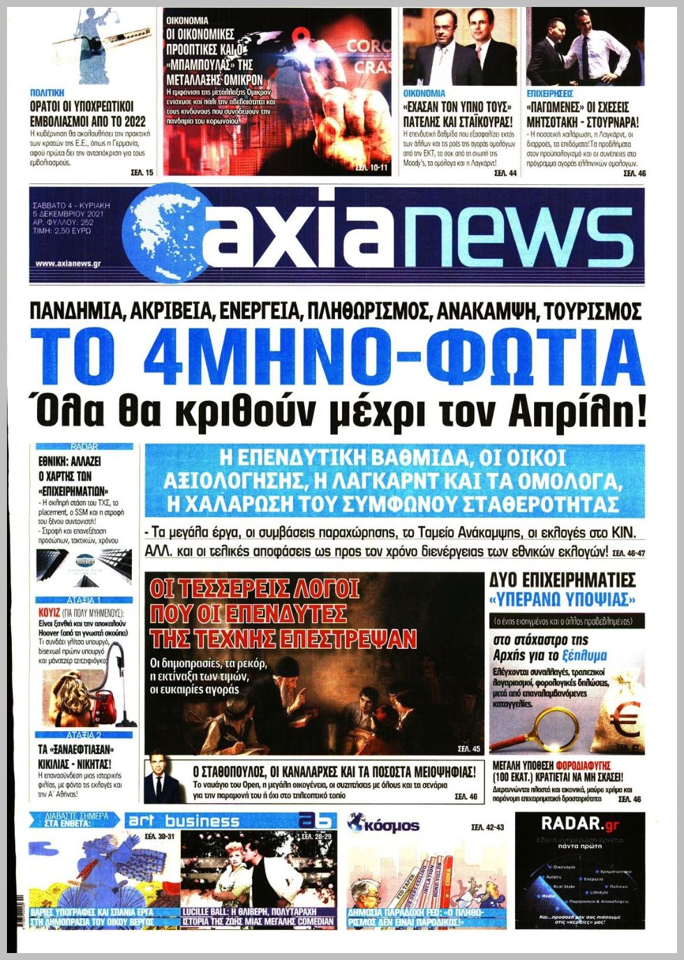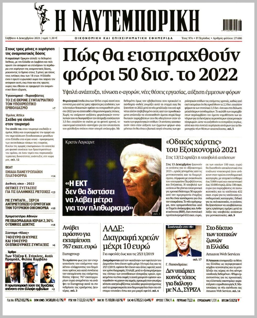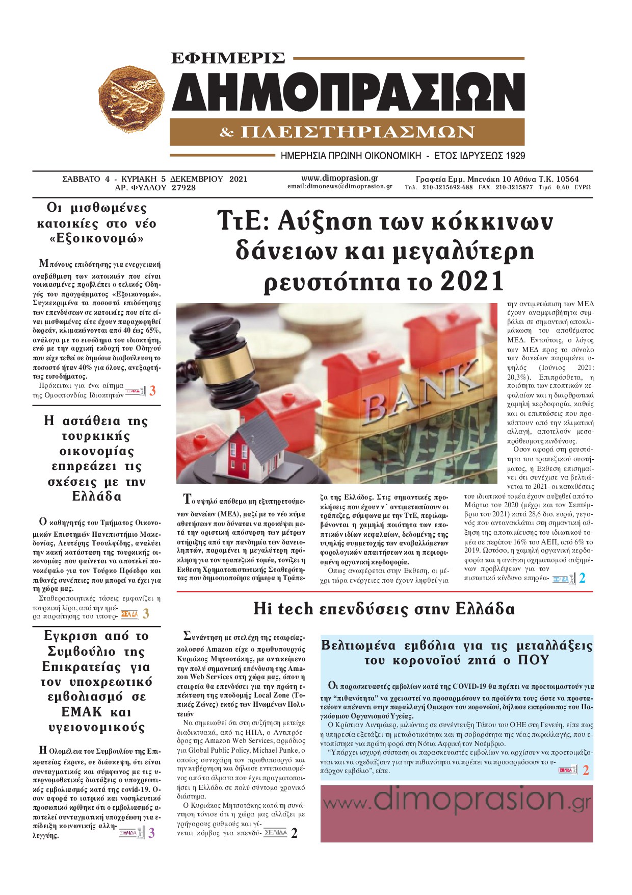 Οι οικονομικές εφημερίδες 4/12/2021 Διονύσης Νίκκας 07:33, Σάββατο 04 Δεκεμβρίου 2021 Media Διαβάστε τα πρωτοσέλιδα από τις οικονομικές εφημερίδες… ΟΙΚΟΝΟΜΙΚΕΣ ΕΦΗΜΕΡΙΔΕΣ Μοιράσου το: σχολίασε κι εσύ (0 σχόλια) Ακολουθήστε το enikos.gr στο Google News και μάθετε πρώτοι όλες τις ειδήσεις Δείτε όλες τις τελευταίες ειδήσεις από την Ελλάδα και τον Κόσμο στο enikos.gr Ειδήσεις Ροή Ειδήσεων 1 ώρα πριν Ευρωπαϊκή Ένωση: Συμφωνία για δάνειο 90 δισ. ευρώ στην Ουκρανία τη διετία 2026-2027 6 ώρες πριν ΟΠΕΚΕΠΕ: Προφυλακιστέος ο φερόμενος αρχηγός και ο λογιστής της εγκληματικής οργάνωσης 7 ώρες πριν Αυξάνουν την πίεση προς την κυβέρνηση οι αγρότες: Κλείνουν παρακαμπτήριους και ανοίγουν διόδια – Τι θα γίνει τις γιορτές 7 ώρες πριν Φοινικούντα: Το Σάββατο απολογείται ο 30χρονος γιος γνωστού επιχειρηματία της Πλάκας που παραδόθηκε – Όσα είπε στους αστυνομικούς και ο ρόλος του στο έγκλημα 5 ώρες πριν ΑΕΚ – Κραϊόβα 3-2: Επική ανατροπή και πρόκριση στους «16» του Conference League η Ένωση 6 ώρες πριν Αρχαιολόγοι ανακάλυψαν ρωμαϊκά τεχνουργήματα από μια πόλη που δεν υπήρξε ποτέ – Τα τρία εντυπωσιακά κτίρια και ο αμφορέας με τις… σαρδέλες 7 ώρες πριν Ύπνος: Η απλή βραδινή ρουτίνα για να προστατεύσετε τα μαλλιά σας από το κρύο κατά τη διάρκεια του χειμώνα 8 ώρες πριν Manifesting: Πώς να συναντήσετε τον σύντροφο της ζωής σας, ανάλογα με τον μήνα γέννησής σας 2 ημέρες πριν 20 χρόνια τα Χριστούγεννα ξεκινούν στα Public με μεγάλη ποικιλία σε δώρα! 26 δευτερόλεπτα πριν Εφημερεύοντα φαρμακεία σε Αθήνα και Θεσσαλονίκη (19/12) 7 λεπτά πριν Η TikTok στις ΗΠΑ πωλείται σε Oracle, Silver Lake και MGX – Οι λεπτομέρειες του «deal» 15 λεπτά πριν Αλεξάντερ Λουκασένκο: Η Λευκορωσία βρίσκεται κοντά στην αποκατάσταση των σχέσεών της με τις ΗΠΑ 31 λεπτά πριν Αυστραλία: Κήρυξε την Κυριακή (21/12) ημέρα εθνικού πένθους για τη φονική επίθεση στην παραλία Μπόνταϊ 41 λεπτά πριν Ρόδος: Δάσκαλος καράτε καταδικάστηκε για ασέλγεια σε ανήλικες αθλήτριες – Μαρτυρίες για αγγίγματα σε ευαίσθητα σημεία ENIKOS NETWORK Σε περίοδο αυξημένης δραστηριότητας η γρίπη στην Ελλάδα-Μέτρα προστασίας από τον ΕΟΔΥ Σκέφτεστε συνέχεια συζητήσεις που έχετε κάνει; Τι σημαίνει αυτό, σύμφωνα με ειδικό Στεγαστικό: Τι λέει η ΠΟΜΙΔΑ για τα νέα μέτρα που ανακοίνωσε ο Κυριάκος Μητσοτάκης Λαγκάρντ: Αισιόδοξη για την ανάπτυξη της Ευρωζώνης, αβέβαιη για τον πληθωρισμό Χαρτογραφώντας το «σημείο χωρίς επιστροφή»: Για πρώτη φορά αποκαλύπτεται με λεπτομέρεια το ακανθώδες όριο της ατμόσφαιρας τ... Η Google καταργεί τη λειτουργία «dark web report» – Πώς θα μπορούν οι χρήστες να διαγράφουν τα δεδομένα τους περισσότερα 02:50 , Παρασκευή 19 Δεκεμβρίου 2025 GNTM: «Κλείδωσαν» οι τέσσερις φιναλίστ – Μεγάλη ανατροπή στις τελευταίες αποχωρήσεις Για προτελευταία φορά εμφανίστηκαν στο πλατό του GNTM οι φιναλίστ του φετινού κύκλου, το βράδυ... 17:45 , Πέμπτη 18 Δεκεμβρίου 2025 ROUK ZOUK: Εορταστικό επεισόδιο με καλεσμένους τους πρωταγωνιστές του «Γιατί ρε πατέρα» Το Σάββατο 20 Δεκεμβρίου στις 21:00, η Ζέτα Μακρυπούλια υποδέχεται εκλεκτούς ηθοποιούς που όλο... 17:20 , Πέμπτη 18 Δεκεμβρίου 2025 Άγιος έρωτας: Η Χριστίνα εξομολογείται στον πατέρα Νικόλαο, απόψε στις 21:00 στον Alpha Η Νότα αποφασίζει να εκδικηθεί τον Πέτρο και τον Στέφανο, για χάρη του Λούη, όμως τα πράγματα ... 16:50 , Πέμπτη 18 Δεκεμβρίου 2025 Να μ’ αγαπάς: Ζωή και Φωτεινή συμφιλιώνονται ως μάνα με κόρη, απόψε στις 20:00 Η ταυτότητα του Άγγελου αποκαλύπτεται στο νέο επεισόδιο της σειράς “Να μ’ αγαπάς.