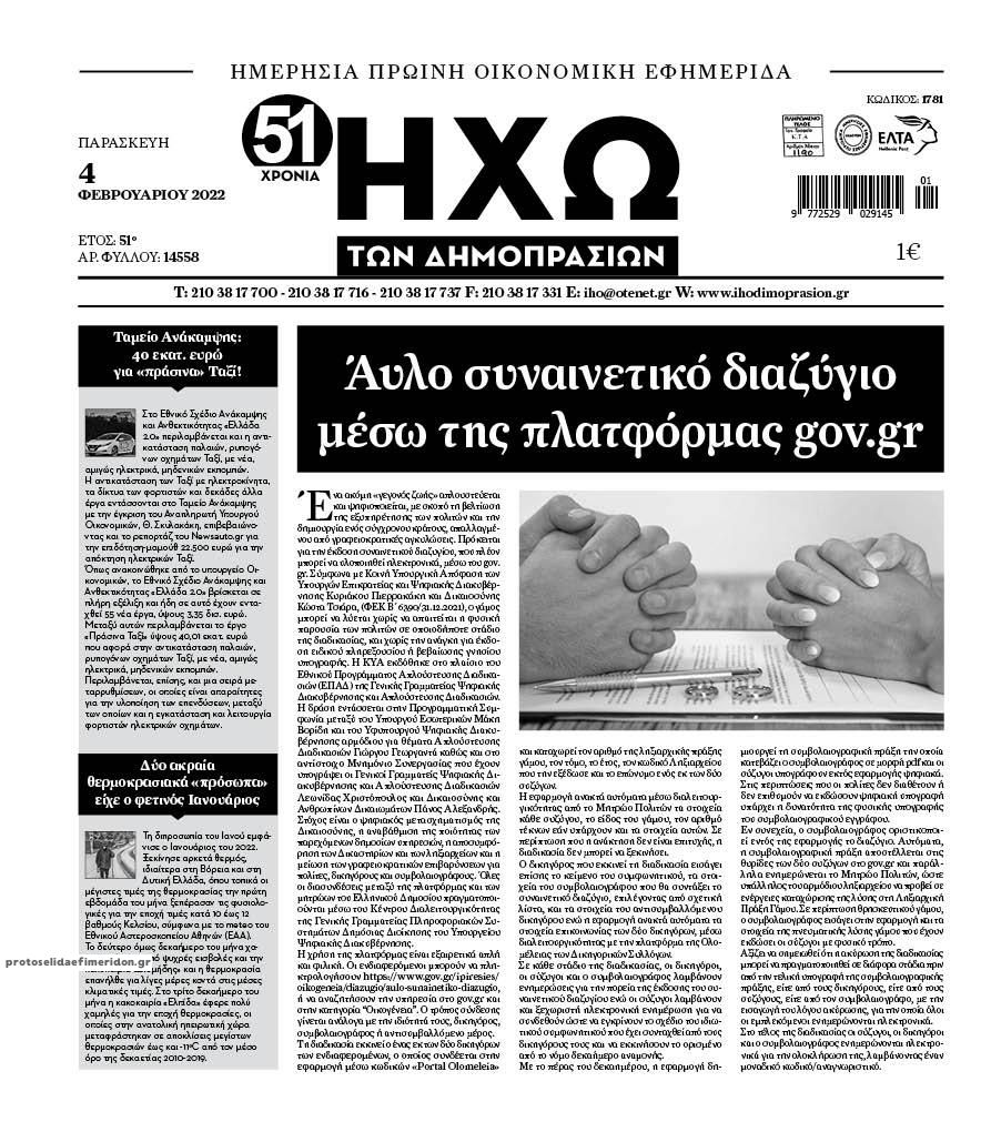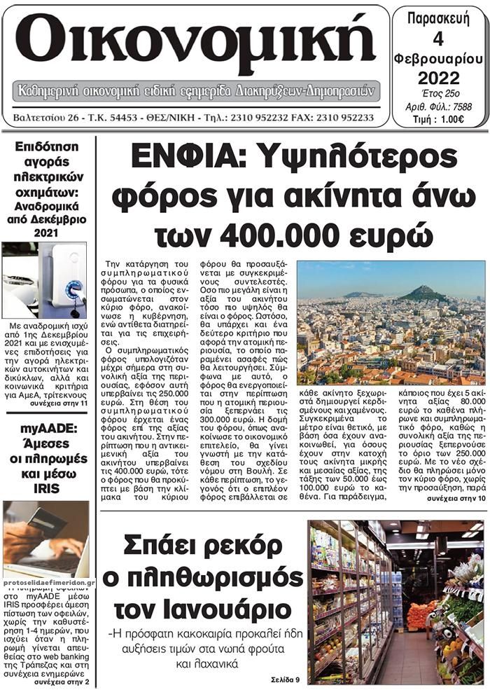 Οι οικονομικές εφημερίδες 4/2/2022 Διονύσης Νίκκας 06:44, Παρασκευή 04 Φεβρουαρίου 2022 Media Διαβάστε τα πρωτοσέλιδα από τις οικονομικές εφημερίδες… ΟΙΚΟΝΟΜΙΚΕΣ ΕΦΗΜΕΡΙΔΕΣ Μοιράσου το: σχολίασε κι εσύ (0 σχόλια) Ακολουθήστε το enikos.gr στο Google News και μάθετε πρώτοι όλες τις ειδήσεις Δείτε όλες τις τελευταίες ειδήσεις από την Ελλάδα και τον Κόσμο στο enikos.gr Ειδήσεις Ροή Ειδήσεων 49 λεπτά πριν Σίδνεϊ: Τα ονόματα των θυμάτων από την τρομοκρατική επίθεση – Η 10χρονη Ματίλντα και ο επιζών του Ολοκαυτώματος που έσωσε τη γυναίκα του 2 ώρες πριν Η διαδρομή του σκάφους με την τεράστια ποσότητα κοκαΐνης που κατασχέθηκε στο λιμάνι του Πειραιά – Συνελήφθη και γνωστός «βαρώνος» 2 ώρες πριν Κυβέρνηση: Οι κόκκινες γραμμές στη διαπραγμάτευση με τους αγρότες – Τι ζητούν οι εκπρόσωποι των μπλόκων 4 ώρες πριν Σοκ στο Χόλιγουντ: Νεκροί από μαχαιριές ο σκηνοθέτης Ρομπ Ράινερ και η σύζυγός του – Αναφορές ότι τους σκότωσε ο γιος τους 2 ώρες πριν Δείτε LIVE το συνέδριο «Ελληνικός Τουρισμός, Μια Εθνική Υπόθεση!» 9 λεπτά πριν Μακροζωία: 55χρονος που ισχυρίζεται ότι βιολογικά είναι 20 ετών μοιράζεται μια απλή συμβουλή για υγιή εγκέφαλο 2 ώρες πριν Τα 3 ζώδια που μπαίνουν σε μια νέα δυναμική εποχή – «Είστε έτοιμοι για όλα» 1 ώρα πριν Οι 8 φράσεις που δίνουν αμέσως την εντύπωση πως είστε δύσκολος άνθρωπος 3 ώρες πριν Κληρονόμησε 2,8 εκατ. ευρώ και φοβάται ότι οι άνδρες θα την πλησιάζουν για τα λεφτά – «Μήπως καλύτερα να το κρατήσω μυστικό;» 4 λεπτά πριν Απεργία 16ης Δεκεμβρίου: Ποιοι συμμετέχουν – Τι ισχύει για τα Μέσα Μαζικής Μεταφοράς 9 λεπτά πριν Μακροζωία: 55χρονος που ισχυρίζεται ότι βιολογικά είναι 20 ετών μοιράζεται μια απλή συμβουλή για υγιή εγκέφαλο 12 λεπτά πριν Γιατί καθυστερεί η πρεμιέρα του «Survivor» – Το παρασκήνιο 13 λεπτά πριν Συνέδριο «Ελληνικός Τουρισμός 2025, Μια εθνική υπόθεση!» – Χάρης Δούκας: «Η Αθήνα δεν είναι πια εποχικός προορισμός» – Στοίχημα η βιώσιμη διαχείριση του τουρισμού 17 λεπτά πριν Ισπανία: Επιβολή προστίμου 64 εκατομμυρίων ευρώ στην πλατφόρμα Airbnb ENIKOS NETWORK Νέα φάρμακα για την παχυσαρκία: Υπάρχει κίνδυνος καρκίνου; Αρτηριακή πλάκα: Ειδικός στη μακροζωία εξηγεί πώς μπορεί να αντιστραφεί μέσα σε 12 μήνες Συντάξεις Ιανουαρίου 2026: Ποια ταμεία πληρώνουν πρώτα Νέες θέσεις εργασίας σε δήμο: Αρχίζει σήμερα η υποβολή αιτήσεων-Ποιες ειδικότητες αφορά Σύγχρονος Νοστράδαμος: Προειδοποιεί για «μεγάλο γεγονός» τους επόμενους μήνες που θα συγκλονίσει τη Βρετανία και τον κόσμο Τεστ παρατηρητικότητας: Μπορείτε να βρείτε τις 3 διαφορές στις εικόνες με έναν πιγκουίνο σε 14 δευτερόλεπτα περισσότερα 11:59 , Δευτέρα 15 Δεκεμβρίου 2025 Γιατί καθυστερεί η πρεμιέρα του «Survivor» – Το παρασκήνιο Μετατίθεται για αργότερα η πρεμιέρα του «Survivor» στην prime time του ΣΚΑΪ, κλείνοντας τη χρο... 11:58 , Δευτέρα 15 Δεκεμβρίου 2025 Συνέδριο «Ελληνικός Τουρισμός 2025, Μια εθνική υπόθεση!» – Χάρης Δούκας: «Η Αθήνα δεν είναι πια εποχικός προορισμός» – Στοίχημα η βιώσιμη διαχείριση του τουρισμού Στις προκλήσεις που δημιουργεί η ραγδαία αύξηση του τουρισμού σε τοπικό επίπεδο, αναφέρθηκε στ... 11:44 , Δευτέρα 15 Δεκεμβρίου 2025 Συνέδριο «Ελληνικός Τουρισμός 2025, Μια εθνική υπόθεση!» – Νίκος Χαρδαλιάς: Η πολυκεντρική ταυτότητα της Αττικής είναι το απόλυτο στρατηγικό μας πλεονέκτημα «Ο τουρισμός είναι ένας κρίσιμος παράγοντας για την οικονομική ανάπτυξη της χώρας και τη δημιο... 11:43 , Δευτέρα 15 Δεκεμβρίου 2025 Μάχη γοήτρου για την κ